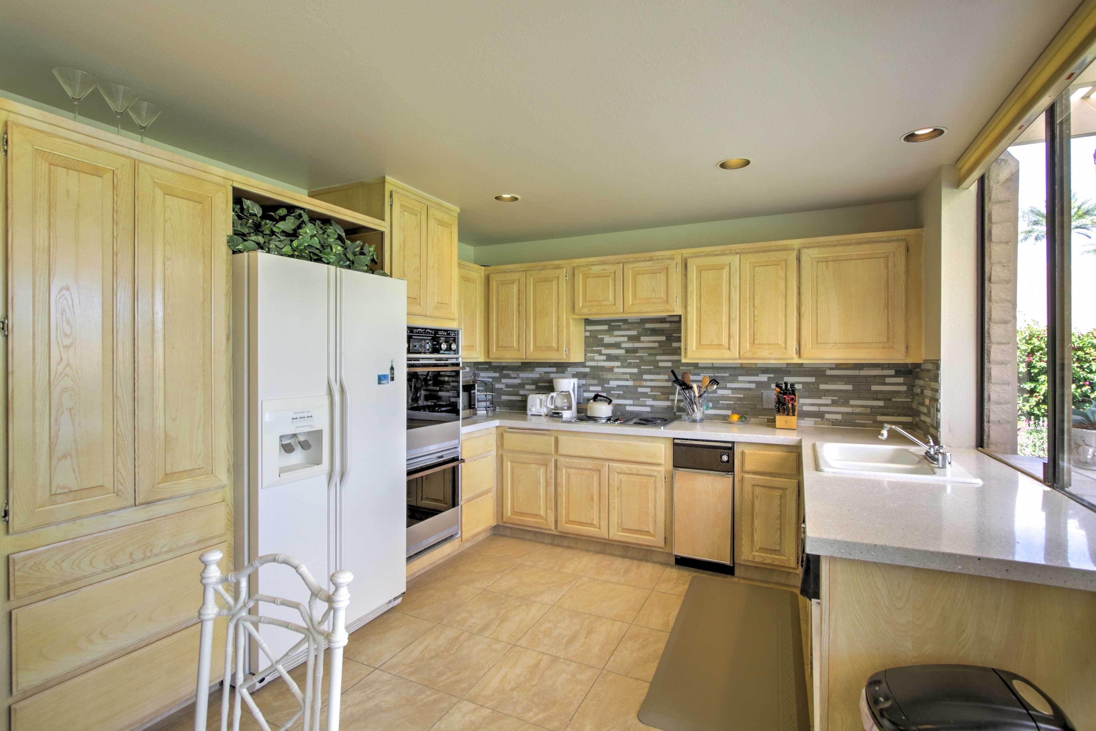 Indian Wells Desert Paradise w/ Mtn View + Patio! Calling all golfers and snowbirds! Come 'home' to this roomy Indian Wells vacation rental, located in the Dorado Villas community. The 3-bedroom, 3-bath condo offers breathtaking views, a full kitchen, spacious bedrooms, and a tastefully decorated patio perfect for hanging out with friends and family. Take a stroll down the greenbelt to 1 of 9 spar...