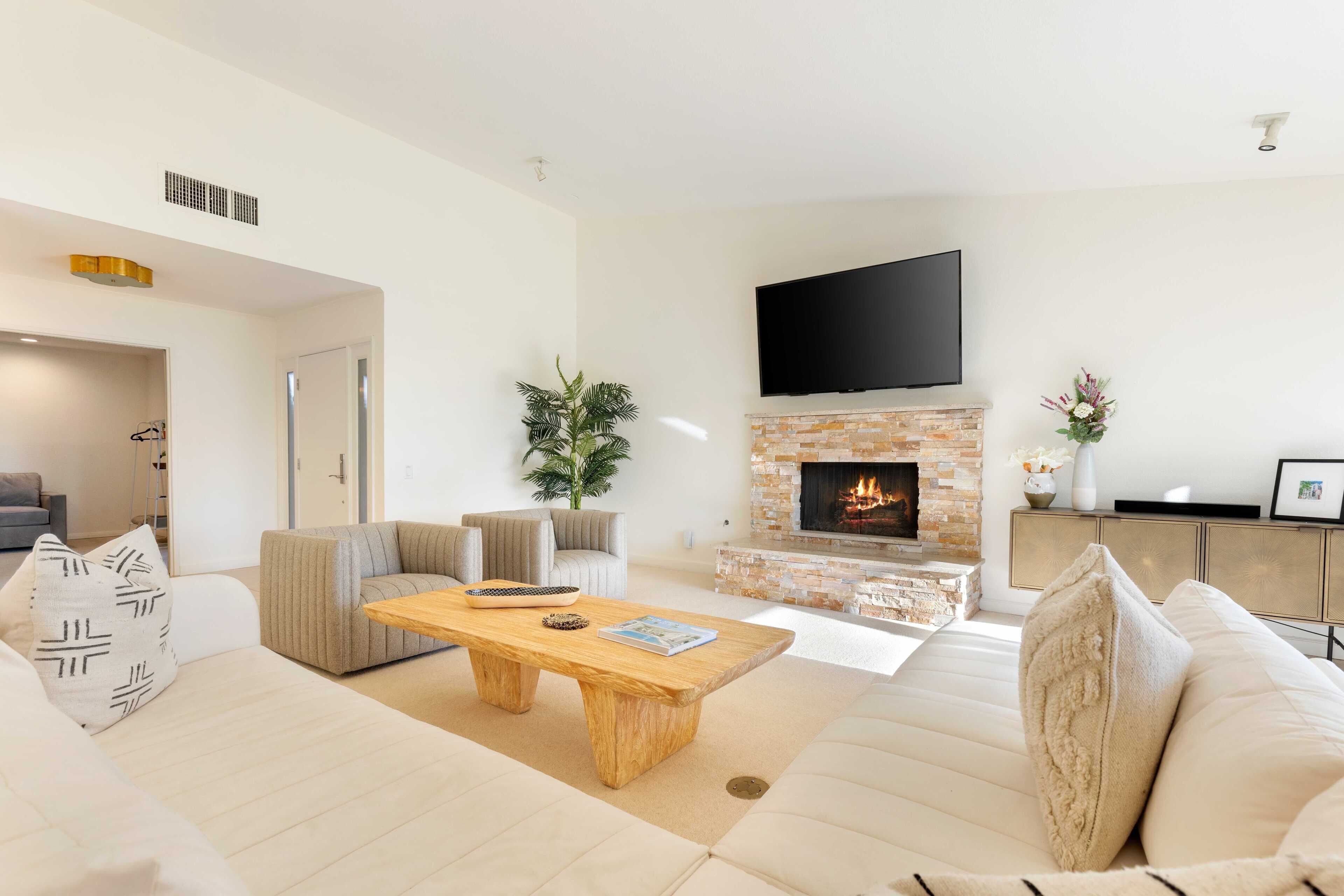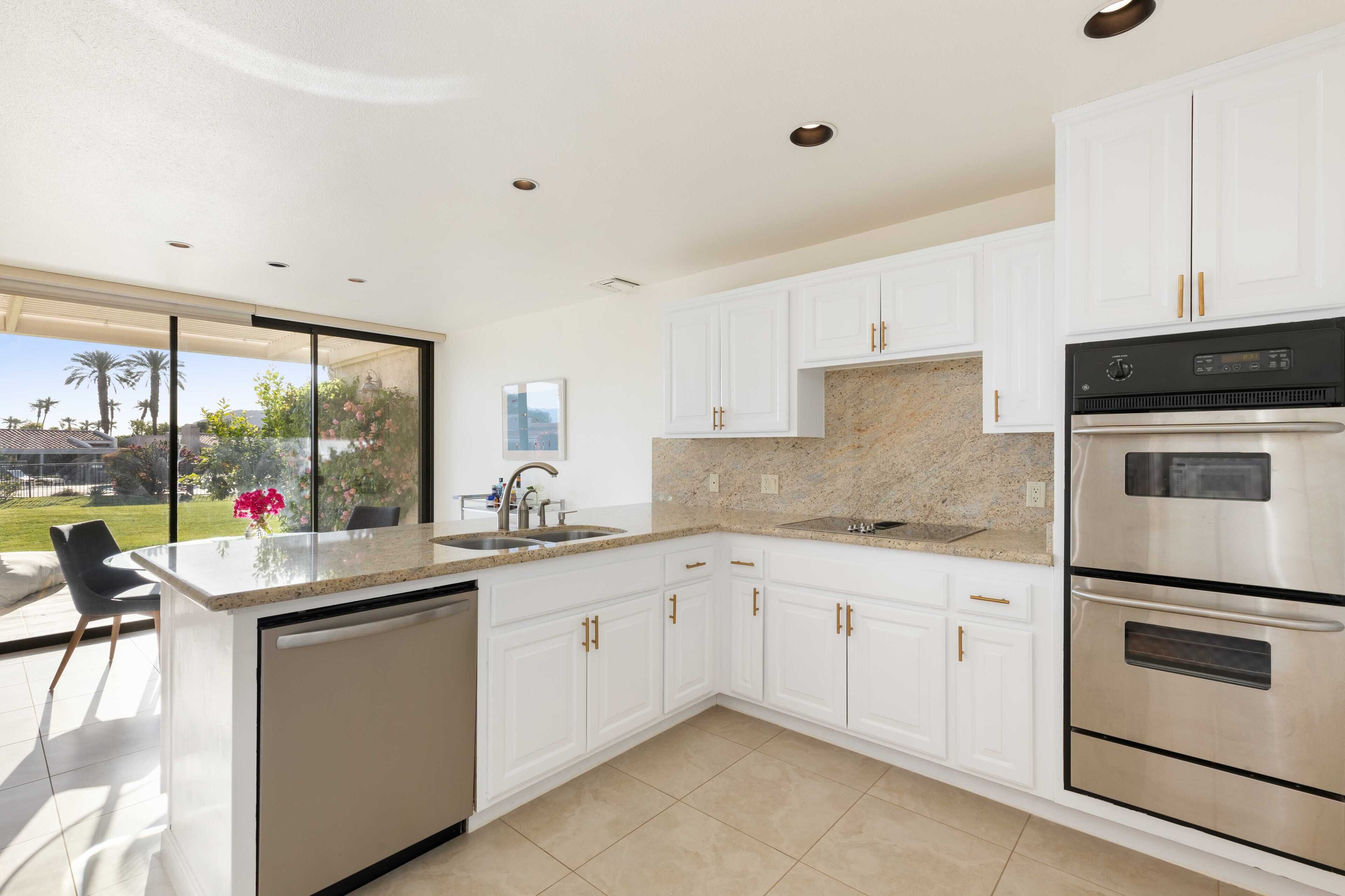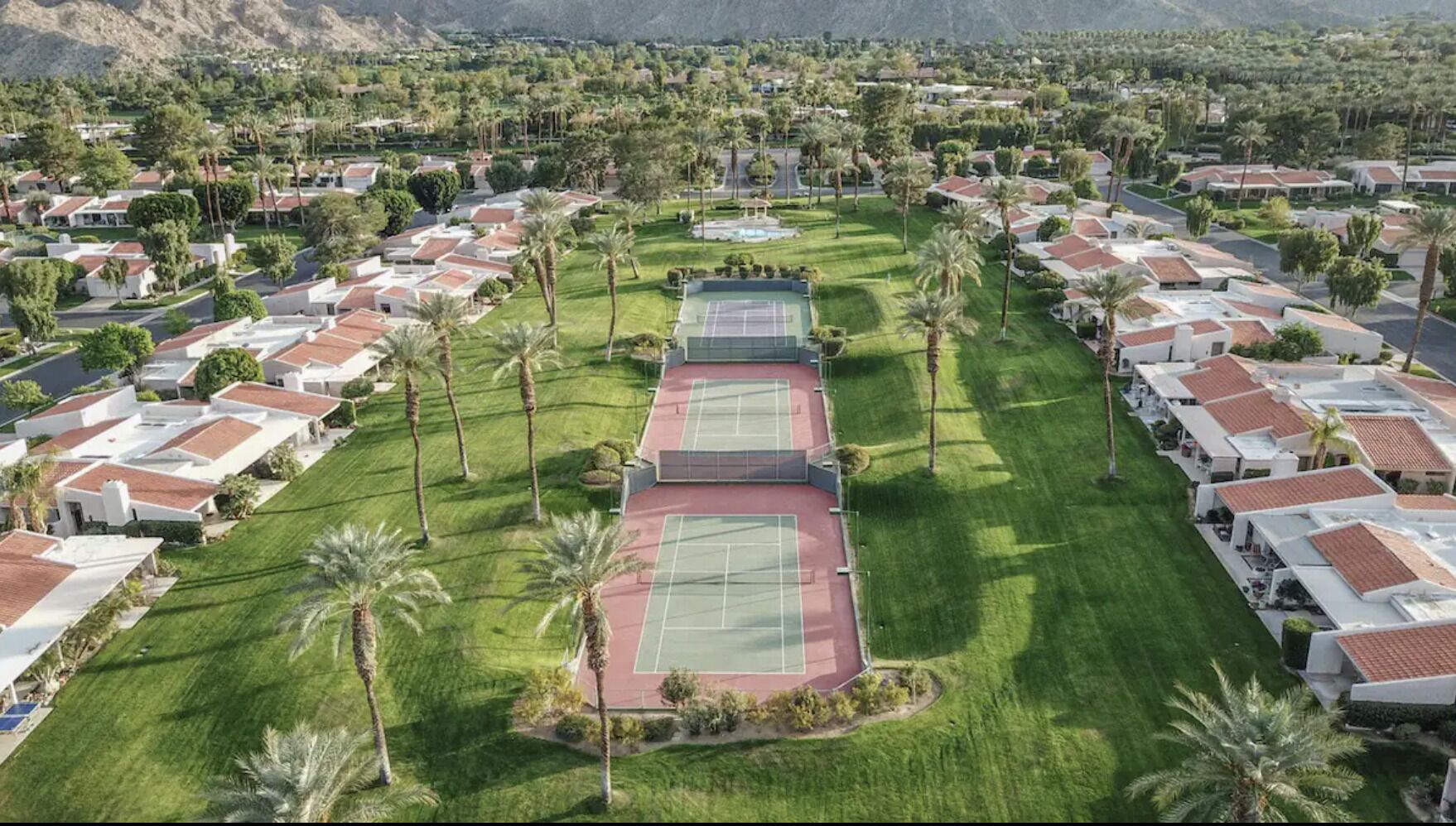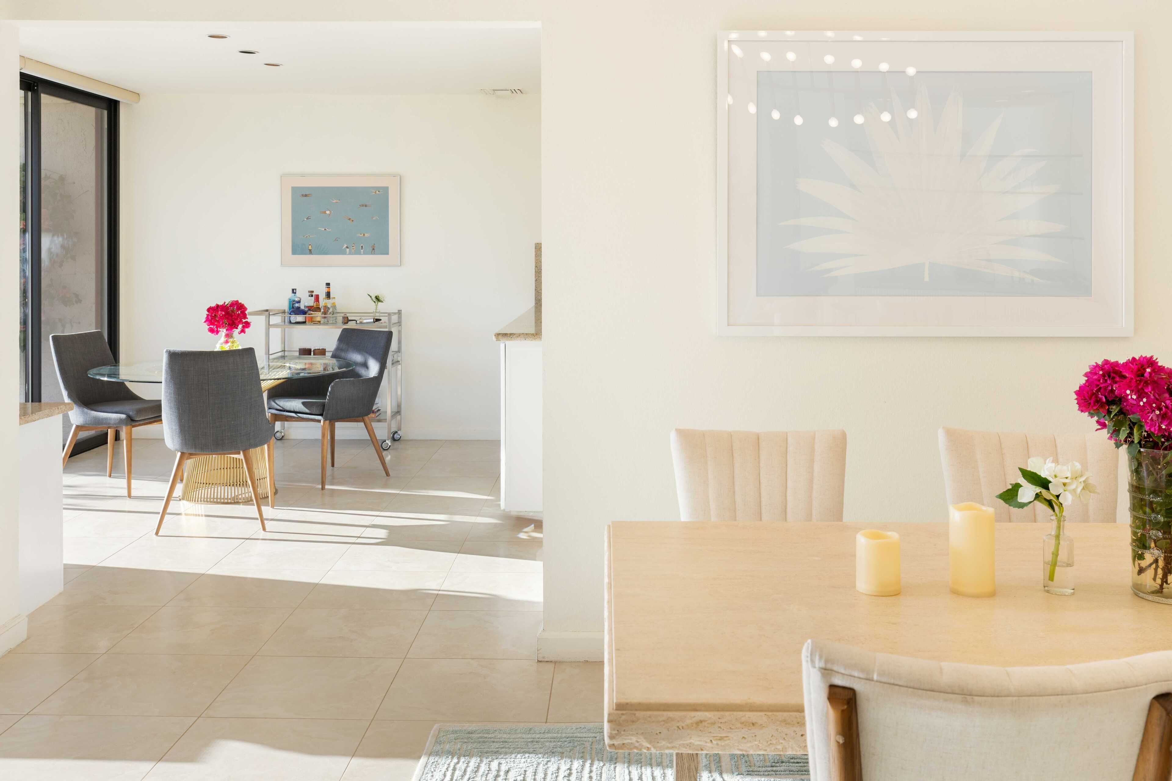 3 Bedroom Home in Indian Wells w/ Pools & Tennis Courts Located in the heart of Indian Wells, this spacious 3 bedroom, 3 bathroom home is the perfect place to relax and recharge in a community with multiple pools and tennis courts.The community features multiple pools and tennis courts, and is situated just minutes away from El Paseo shops, Indian Wells Tennis Garden, and multiple golf clubs.The spaceThe home features 3 bedrooms and 3 full bathrooms. Each bedroom enjoys its own en suite full bathroom, allowing for plenty of privacy. Each bedroom also has its own access to a patio area (the primary suite enjoys its own patio).The home's living room and dining area are spacious and light filled, with tall ceilings and neutral tones. It's the perfect place to lounge and relax. The living room also features a large flat screen TV (no cable, but you can sign into Netflix, HBO and other streaming services).The living room, dining room and kitchen are all open concept and provide access to the back back patio where you can enjoy the incredible desert view. The home makes for great indoor/outdoor living and is only steps away from one of the many community pools and hot tubs. And for those that play tennis, there are multiple tennis courts in the community to enjoy - also just steps from the back door.The back patio also features a gas grill, outdoor seating area, and 2 bean bag lounge chairs that are the best place to enjoy a cocktail or coffee.The kitchen is stocked with cooking utensils and equipment plus a Keurig for those that make coffee at home.Bedroom #1: The primary suite has a king bed with premium mattress, en suite bathroom with dual sinks and large shower, and an oversized walk in closet. The primary bedroom also has a large flat screen TV and a nice private patio with chaise lounges, misters, and is accented with beautiful pink bougainvillea plants.Bedroom #2: The guest bedroom pays homage to the fun Palm Springs vibe, with tastefully vibrant wallpaper and a stunning rose colored sofa. The bedroom also has a king bed with premium mattress and has an en-suite bathroom. All our guests have complimented how wonderful the shower is in this bathroom! The bedroom also overlooks a patio with a charming tree that attracts all the hummingbirds... you're sure to see a few if the weather is right!Bedroom #3: The third bedroom can function as an office space or bedroom. It features a premium pull out sofa from West Elm, a beautiful desk, and clothing rack with storage for all of your outfits and personal items. This bedroom/office also has an en-suite bathroom with spacious countertops, oversized mirror, and a shower with tub. The home has a 2 car garage plus driveway parking.