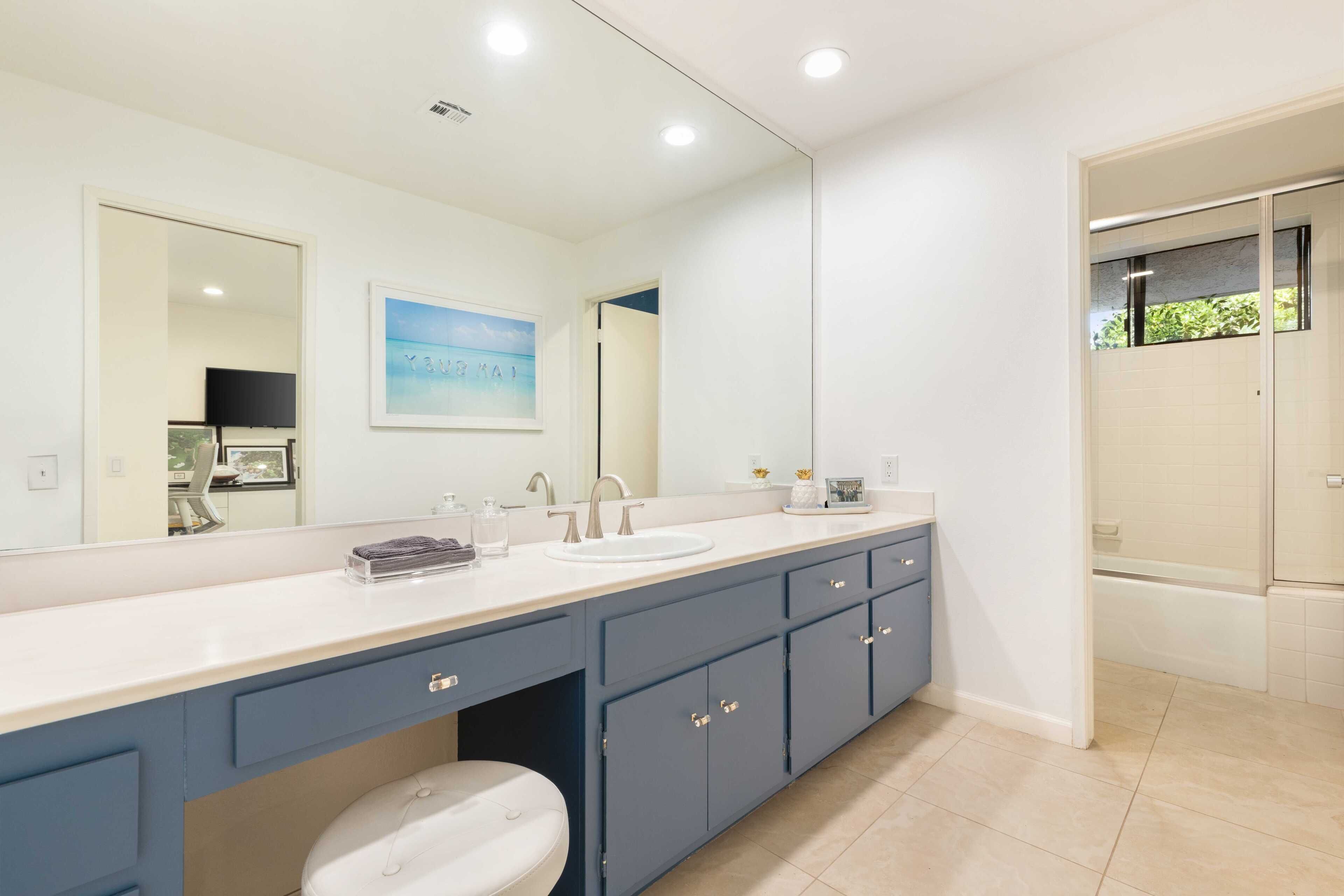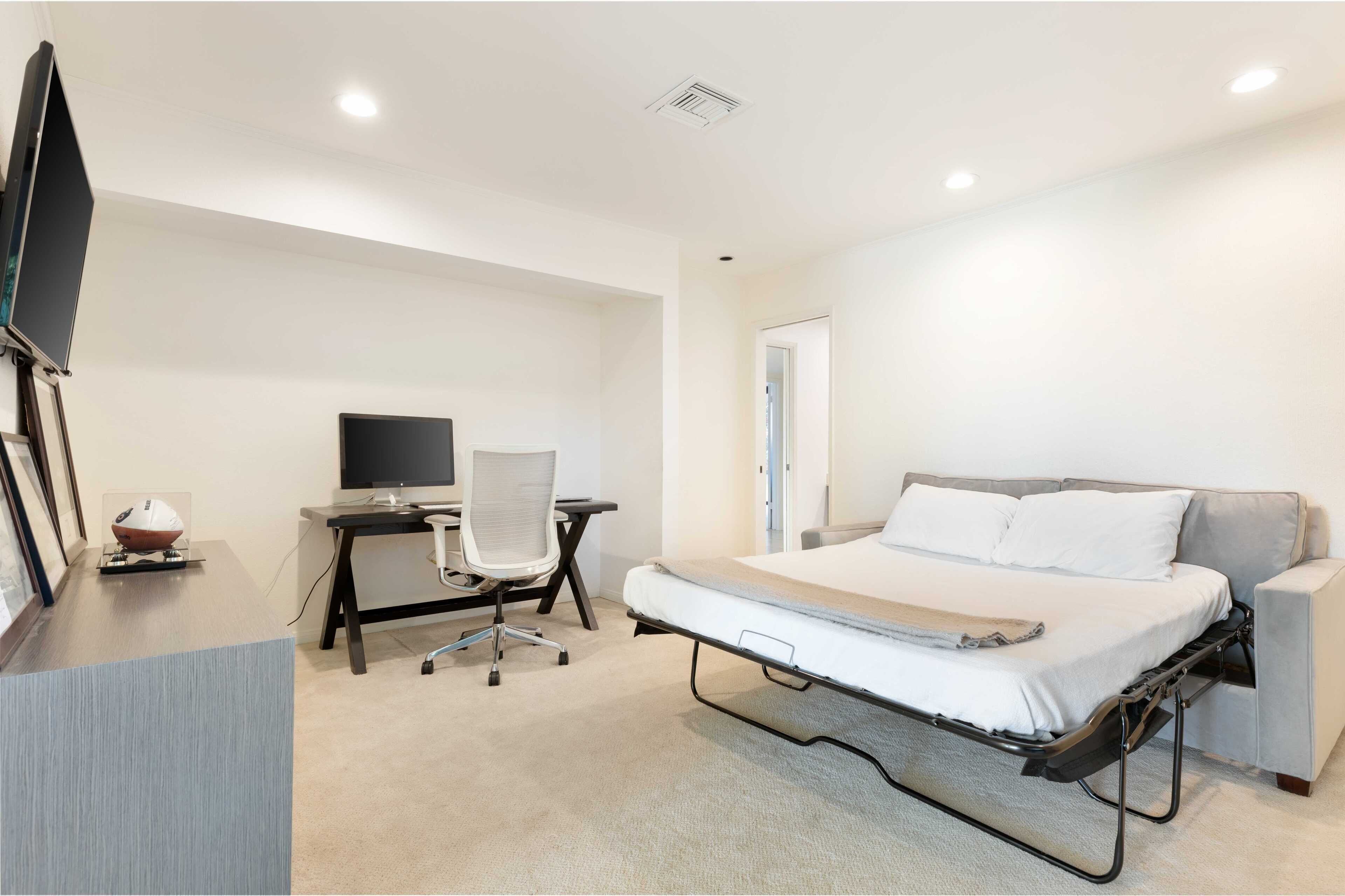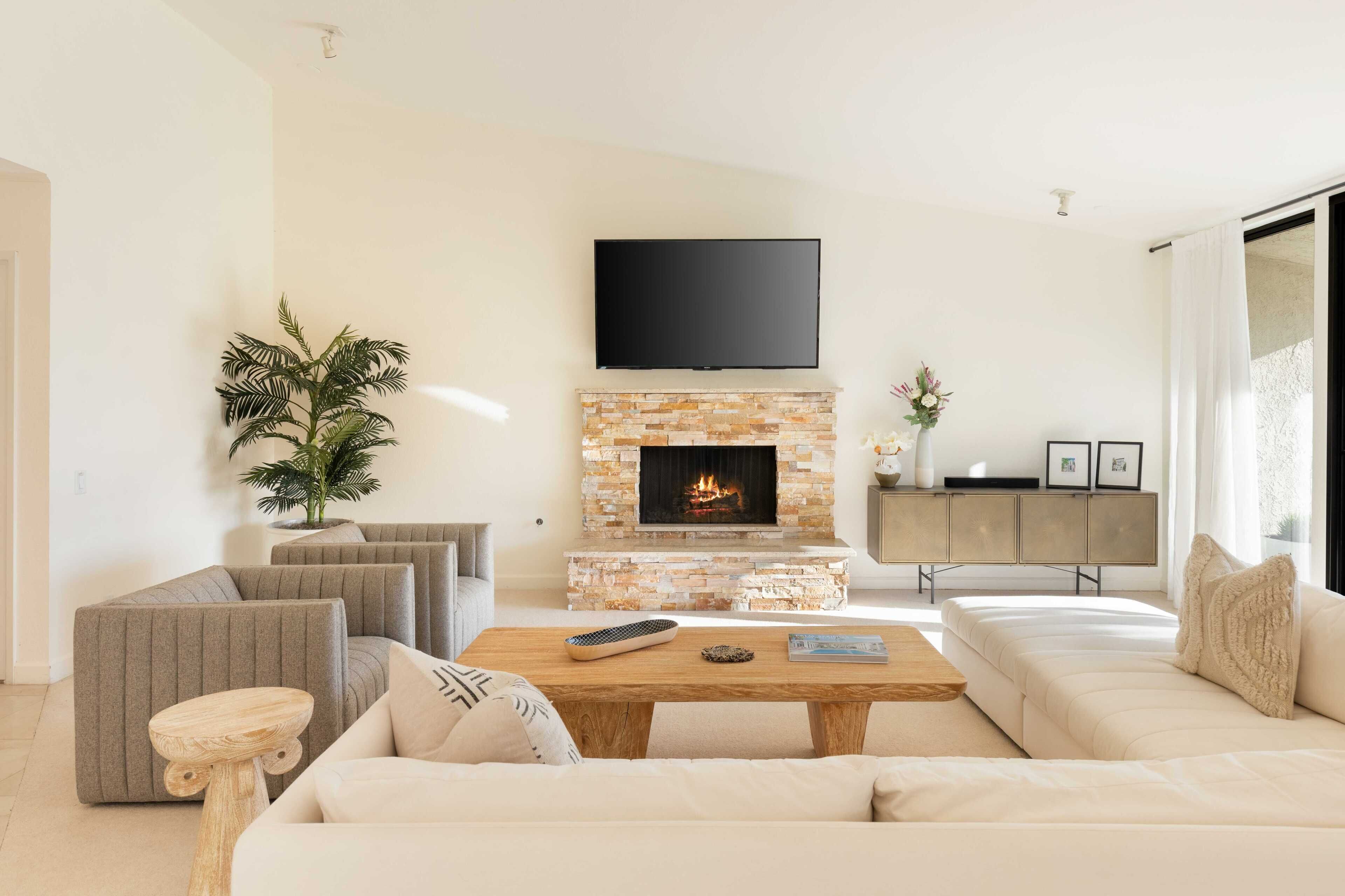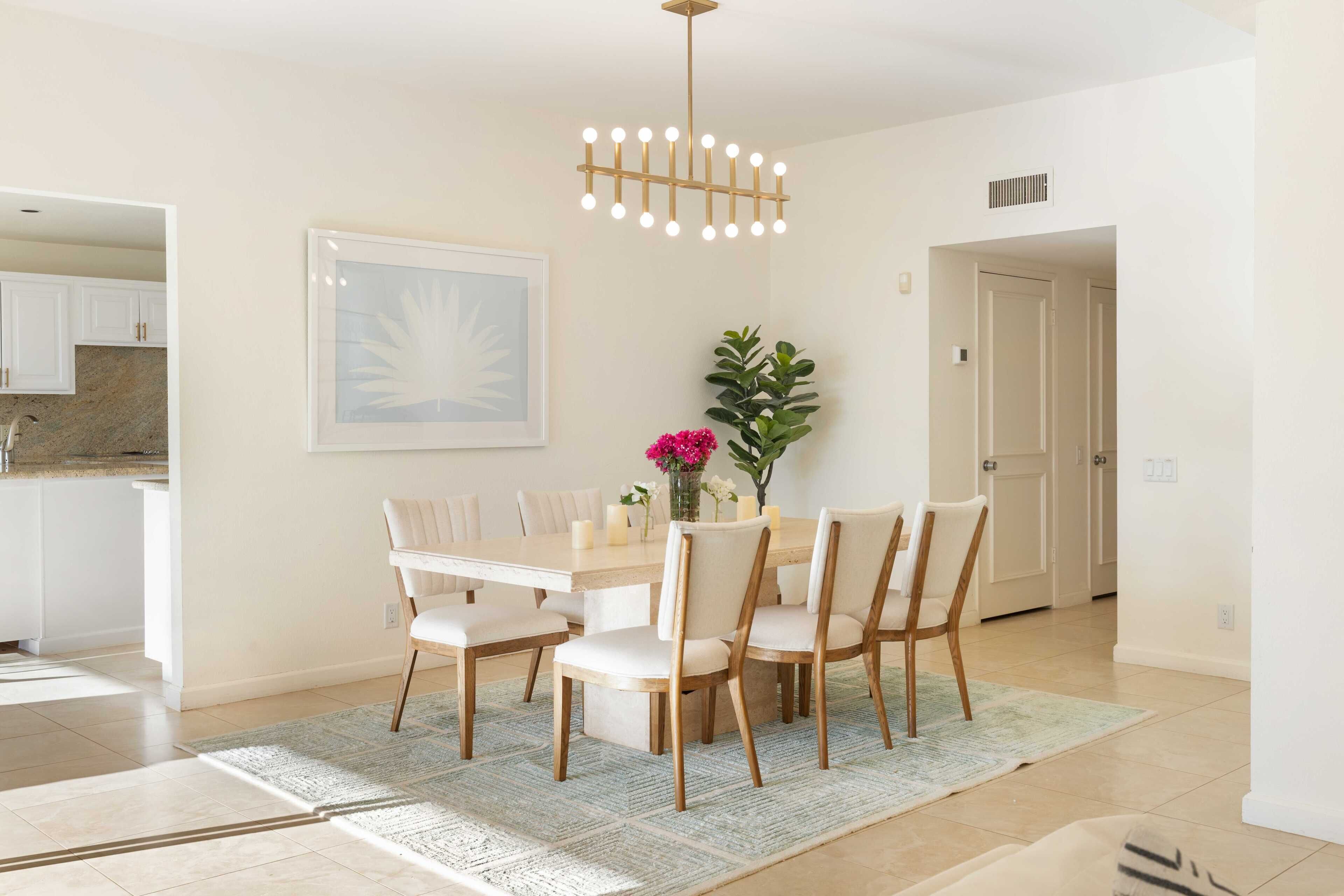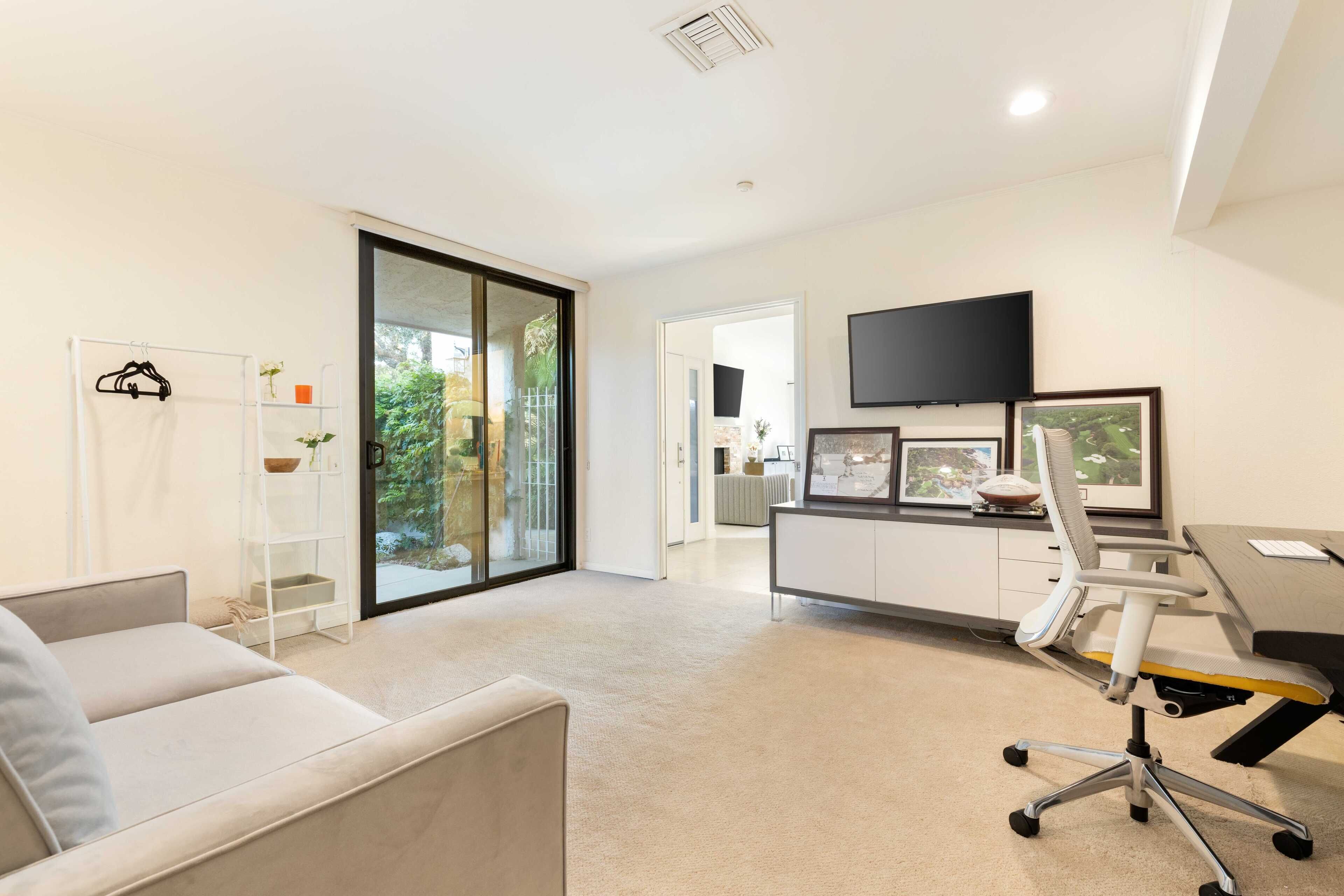 3 Bedroom Home in Indian Wells w/ Pools & Tennis Courts Located in the heart of Indian Wells, this spacious 3 bedroom, 3 bathroom home is the perfect place to relax and recharge in a community with multiple pools and tennis courts.The community features multiple pools and tennis courts, and is situated just minutes away from El Paseo shops, Indian Wells Tennis Garden, and multiple golf clubs.The spaceThe home features 3 bedrooms and 3 full bathrooms. Each bedroom enjoys its own en suite full bathroom, allowing for plenty of privacy. Each bedroom also has its own access to a patio area (the primary suite enjoys its own patio).The home's living room and dining area are spacious and light filled, with tall ceilings and neutral tones. It's the perfect place to lounge and relax. The living room also features a large flat screen TV (no cable, but you can sign into Netflix, HBO and other streaming services).The living room, dining room and kitchen are all open concept and provide access to the back back patio where you can enjoy the incredible desert view. The home makes for great indoor/outdoor living and is only steps away from one of the many community pools and hot tubs. And for those that play tennis, there are multiple tennis courts in the community to enjoy - also just steps from the back door.The back patio also features a gas grill, outdoor seating area, and 2 bean bag lounge chairs that are the best place to enjoy a cocktail or coffee.The kitchen is stocked with cooking utensils and equipment plus a Keurig for those that make coffee at home.Bedroom #1: The primary suite has a king bed with premium mattress, en suite bathroom with dual sinks and large shower, and an oversized walk in closet. The primary bedroom also has a large flat screen TV and a nice private patio with chaise lounges, misters, and is accented with beautiful pink bougainvillea plants.Bedroom #2: The guest bedroom pays homage to the fun Palm Springs vibe, with tastefully vibrant wallpaper and a stunning rose colored sofa. The bedroom also has a king bed with premium mattress and has an en-suite bathroom. All our guests have complimented how wonderful the shower is in this bathroom! The bedroom also overlooks a patio with a charming tree that attracts all the hummingbirds... you're sure to see a few if the weather is right!Bedroom #3: The third bedroom can function as an office space or bedroom. It features a premium pull out sofa from West Elm, a beautiful desk, and clothing rack with storage for all of your outfits and personal items. This bedroom/office also has an en-suite bathroom with spacious countertops, oversized mirror, and a shower with tub. The home has a 2 car garage plus driveway parking.