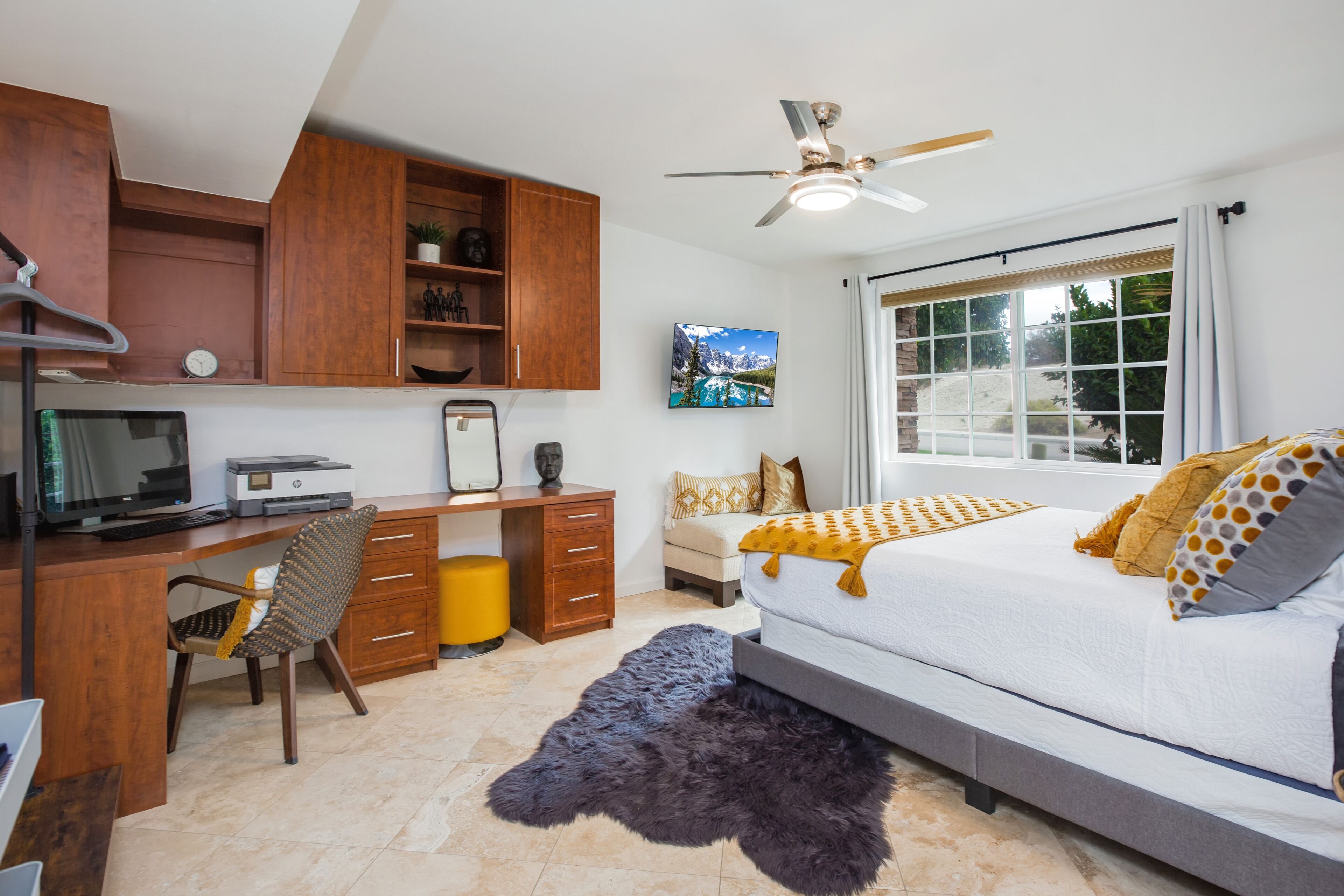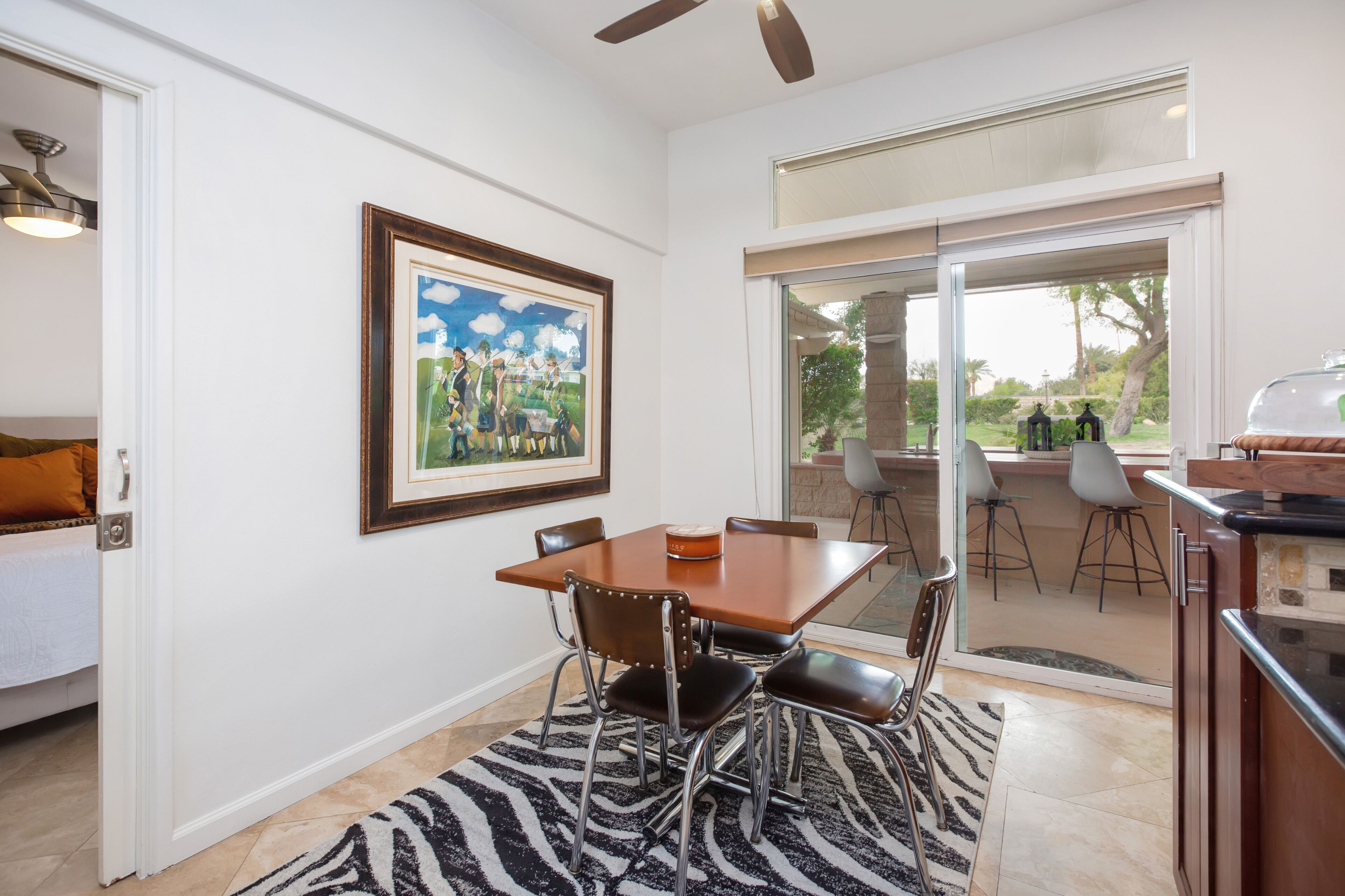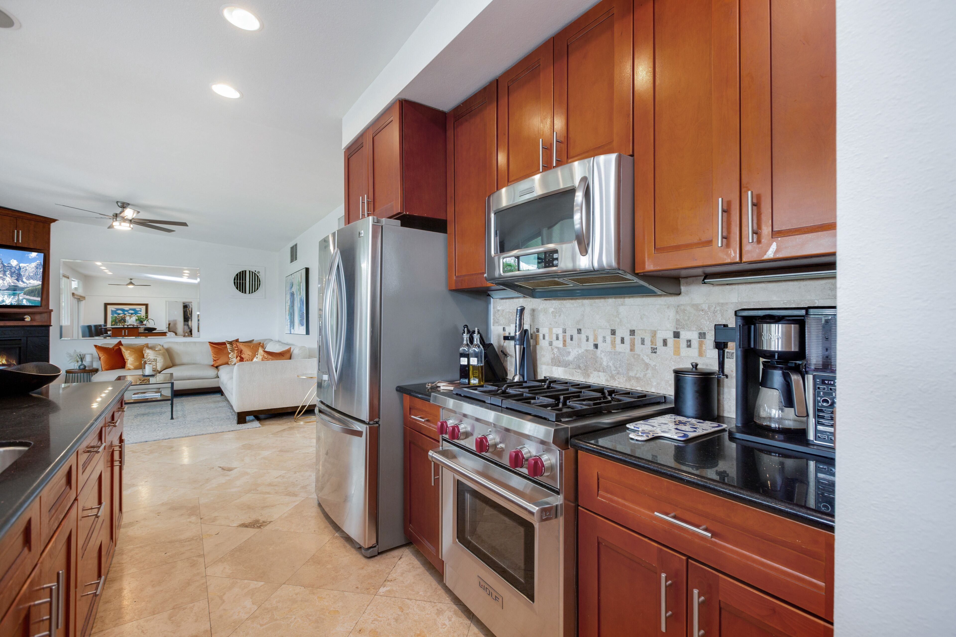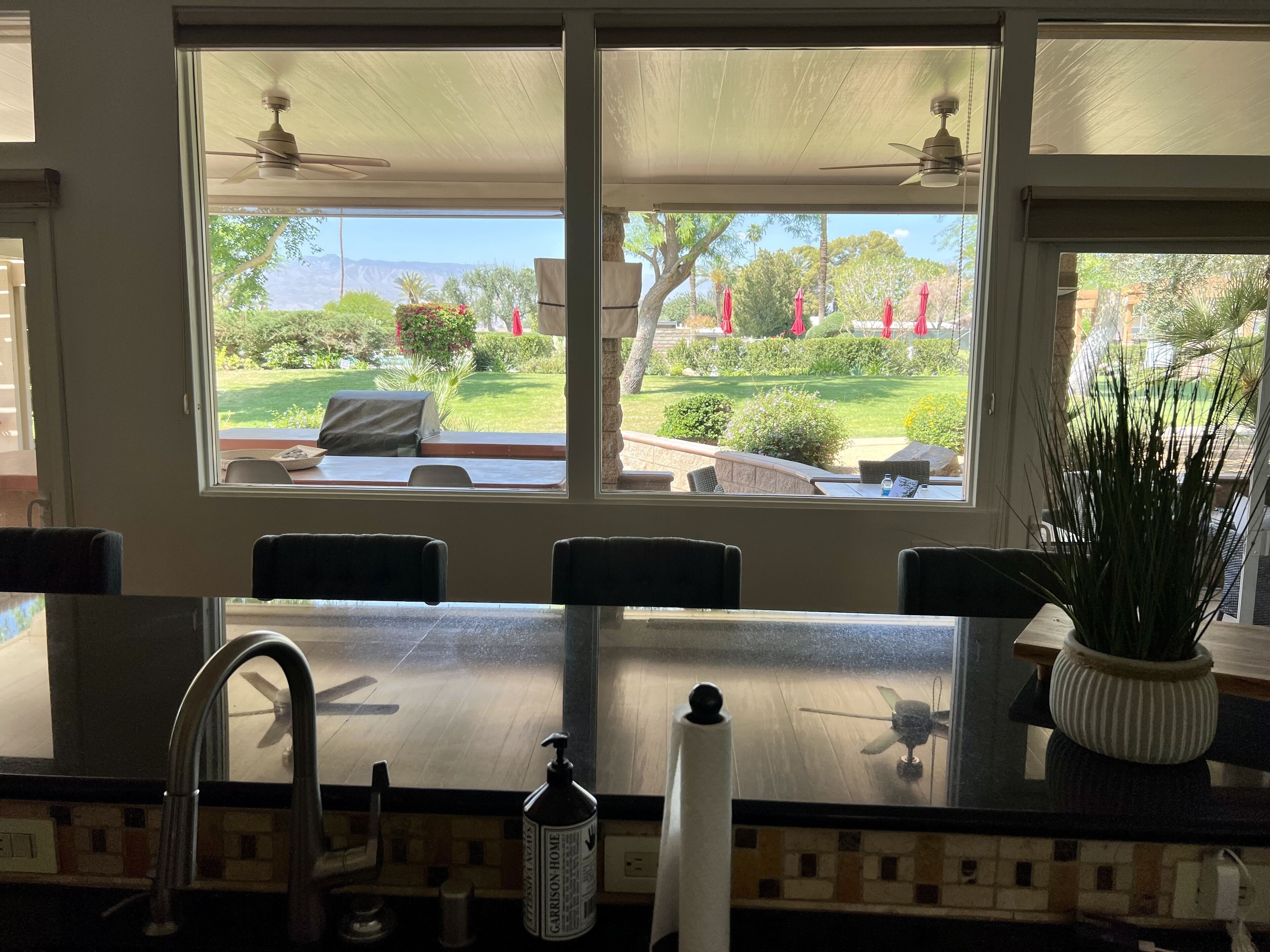 Stunning Mountain View, Entertainers Patio, Pool Your Desert Happy Place! Perfect for Coachella,Stagecoach, Polo & Tennis Tournaments. Next to the Indian Wells Golf Resort and 2 blocks from the Indian Wells Tennis Garden. Event Shuttle across the street. Open floor plan with stunning views of the Mountain ranges and pool. Outdoor bar, bbq, fireplace, water feature, dining and cozy lounge area. Close to Hwy 111, world class restaurants, golf courses,tennis, grocery stores and all other conveniences. This Desert treasure had us at Hello! For Steve and I it was love at first sight. From the unique setting of this communities 24 homes surrounding a 3+ acre green belt with a sparkling pool, Volleyball court, horseshoe pit and basketball hoop. To this single story up to date fully furnished 3 bedroom 2 bath home. The 2 bedrooms and bath located on one side of the home and the Master en suite located on the other side providing the perfect balance for privacy. The Master French doors provide direct access to a private jacuzzi. The private patio is a Entertainers Dream. Featuring a gorgeous outdoor fireplace with water feature, Cozy lounge area, fire pit, built in bar with BBQ. Outdoor dining table, private jacuzzi, Misters all surrounded by gorgeous landscape and forever views. The family room is open concept with a huge yummy couch, seating for everyone, 65 inch 4k HD smart TV, fireplace and breathtaking views overlooking the green belt and mountain ranges. The Kitchen is a chefs delight featuring a 12 foot Bar, fully stocked and equipped with state of the art appliances. Wolf stove and oven, Kitchen Aid micro/convection, Bosch dishwasher. Kitchen dining area. THE SPACE- PLEASE NOTE: POOL HEATED! Community volleyball/badminton court & horseshoe pit.- Free Wi-Fi -NEW ULTRA HD/4K SMART TVS IN EVERY ROOM! Enjoy free HBO, Netflix, Roku TV and Amazon Prime Video.Permit NO. STRU-000255-2022
