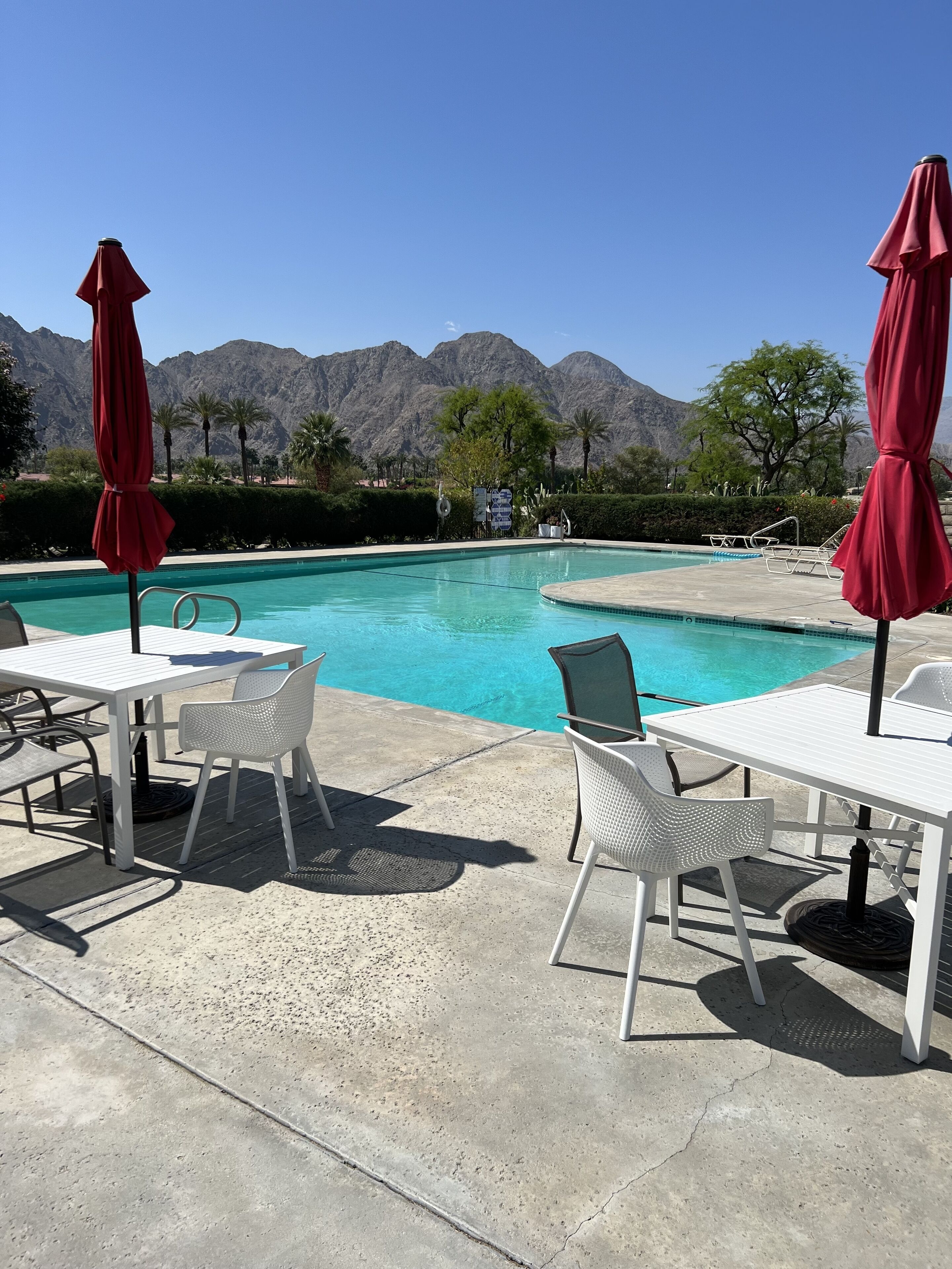 Stunning Mountain View, Entertainers Patio, Pool Your Desert Happy Place! Perfect for Coachella,Stagecoach, Polo & Tennis Tournaments. Next to the Indian Wells Golf Resort and 2 blocks from the Indian Wells Tennis Garden. Event Shuttle across the street. Open floor plan with stunning views of the Mountain ranges and pool. Outdoor bar, bbq, fireplace, water feature, dining and cozy lounge area. C...