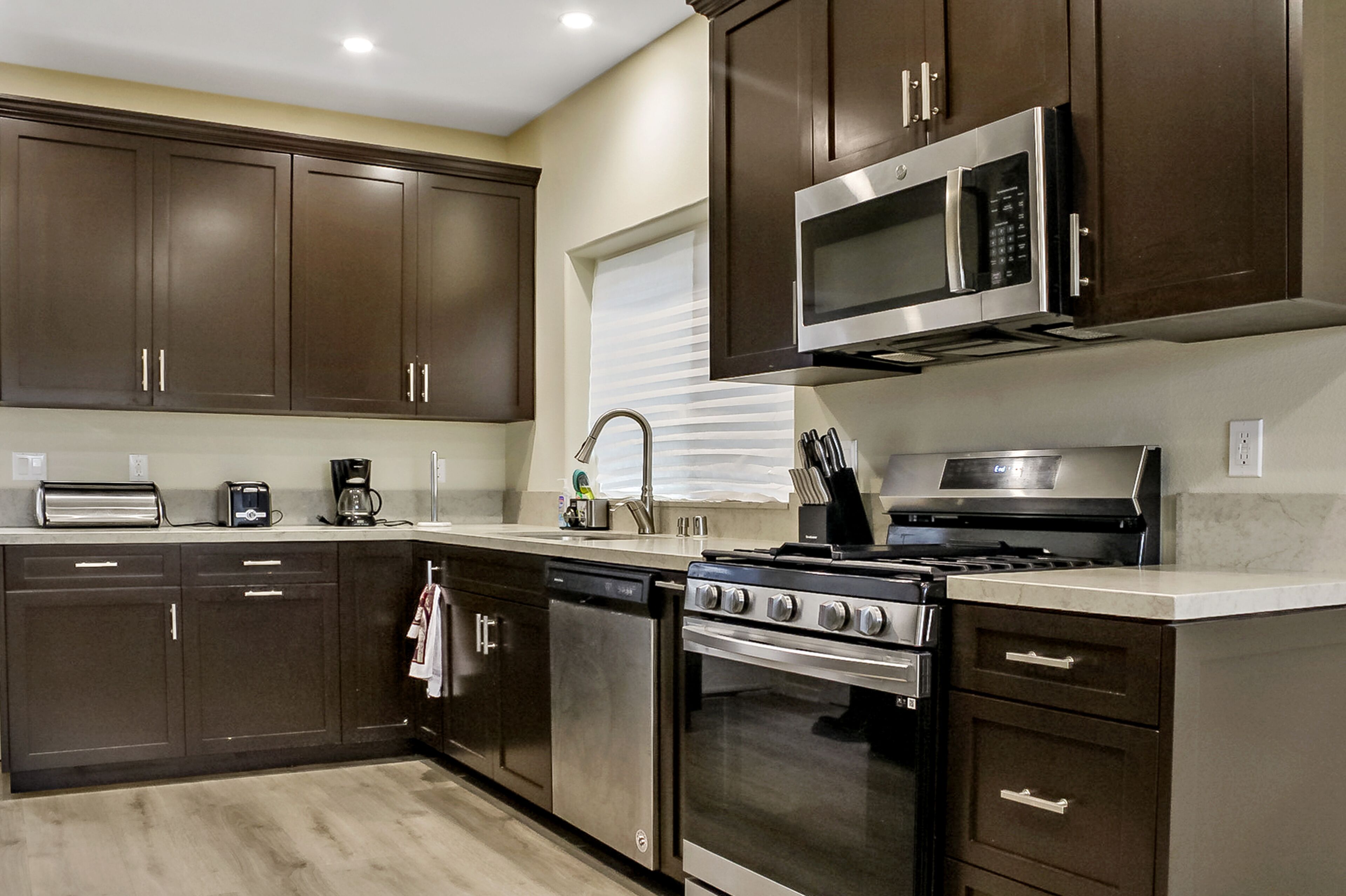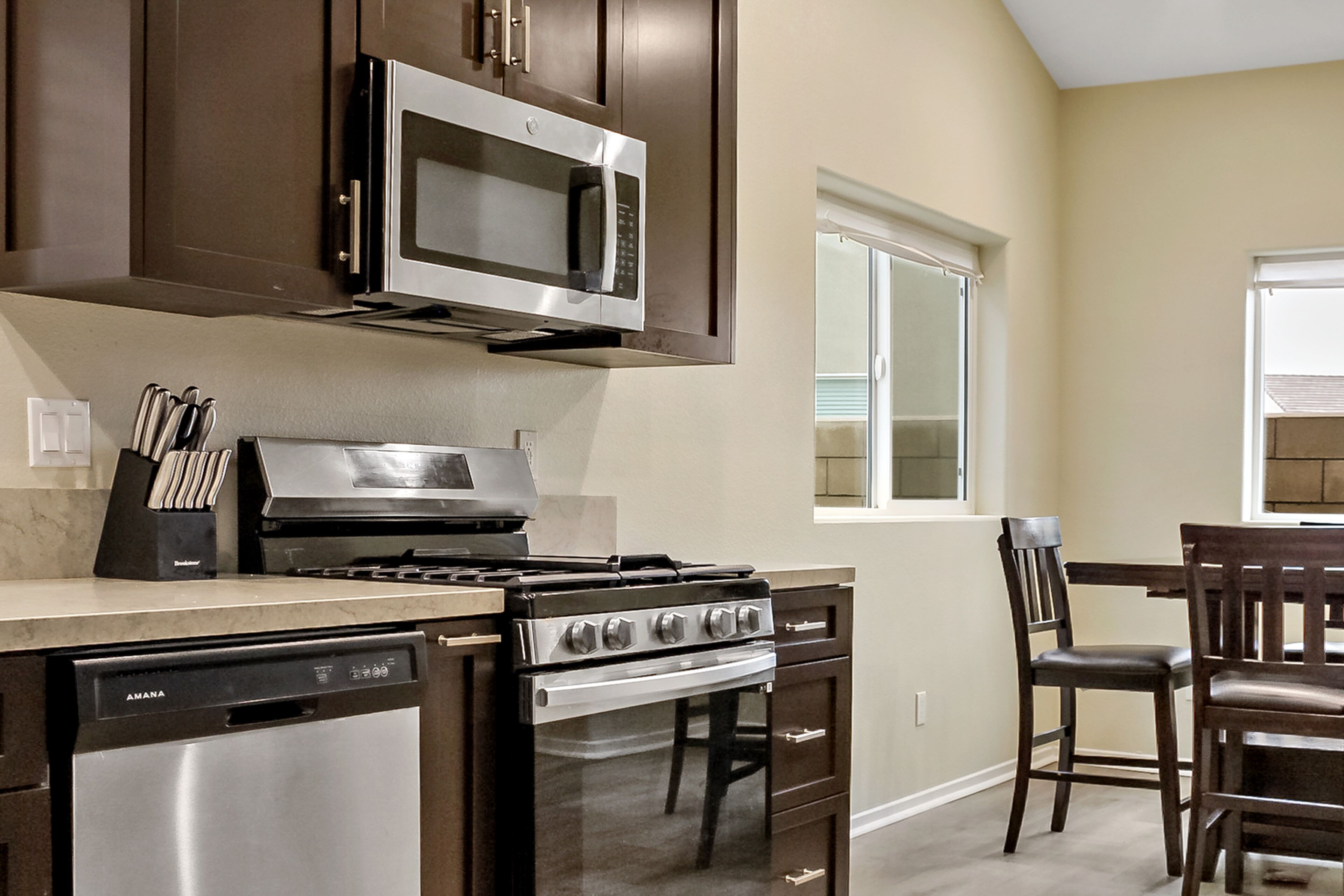 Newly built back house (ADU) Completely detached. This newly built ADU offers a comfortable and modern living space with 2 bedrooms and 2 full baths. The unit is located at the back of the property. The ADU has a spacious living room with a 55" TV. The kitchen is fully equipped with modern appliances, including a refrigerator, stove, dishwasher, and microwave. With a total of 1,200 square feet. Th...