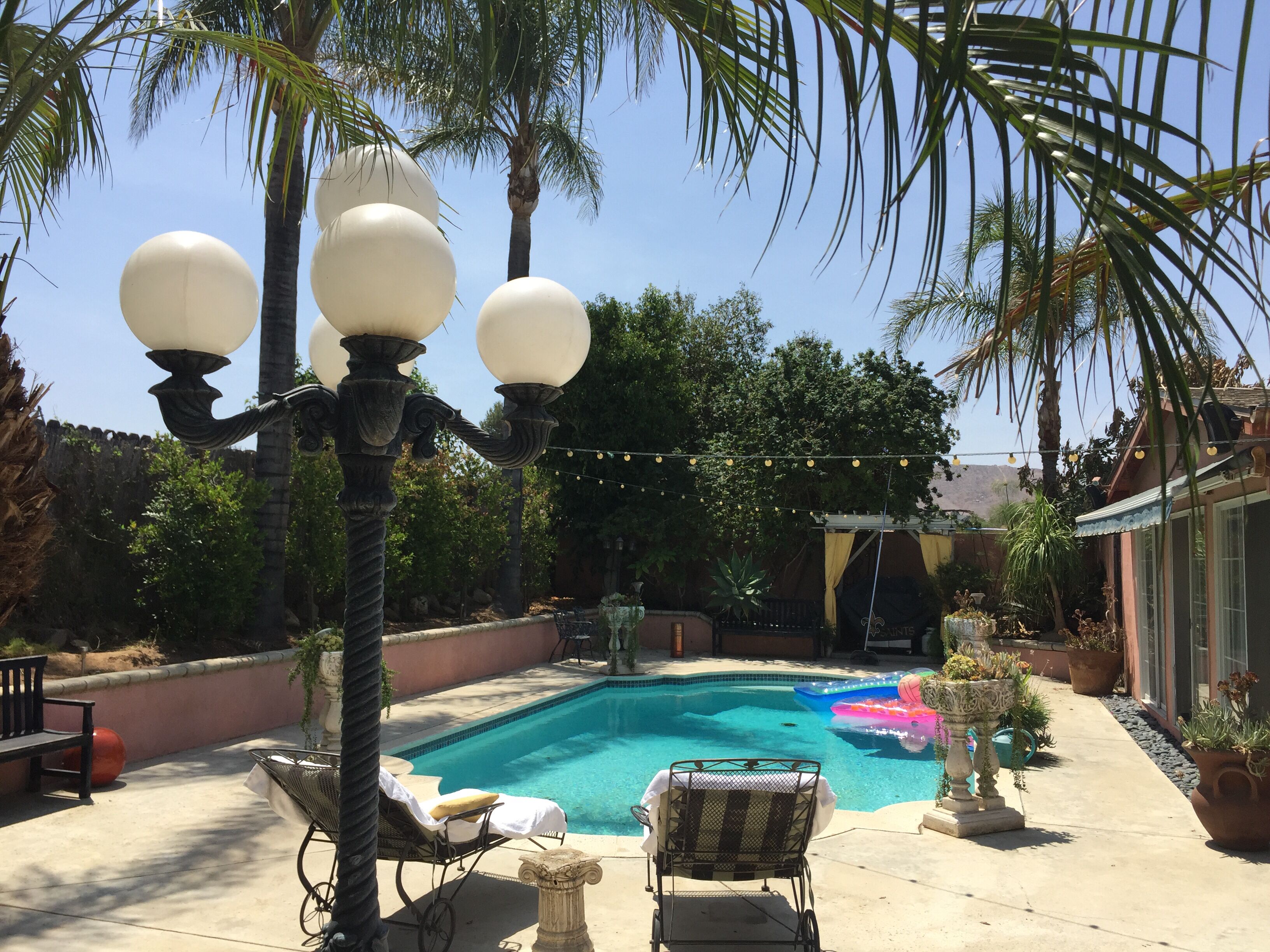 Pool House / Guest Quarters Private Entrance, Private Patio, Quiet, CLEAN Solo, Couples, Adventurers, and Business Travelers alike will LOVE this quiet, private, Guest Quarters located in the heart of Southern California in Riverside County. Two guys and a grandma have maintained this large pool property for 25 years. Located on the end of a cul-de-sac, 10 minutes from the Ontario airport, UCR, & CBU, is a private studio Guest Quarters with private entrance, and large private patio that runs the entire side of the property. The space was once the master suite, converted into a private Guest Quarters retreat. The bathroom consists of a pocket-door entrance, walk in shower stall. The kitchen features a gas range, compact refrigerator/freezer, microwave, fully stocked with pans and cooking utensils. The property is close to the 60 freeway, it will take less than 3 minutes to get onto the 60 freeway. When folks ask “where are you staying?” Tell them in the Inland Empire, 60/15 interchange! Our guests love the clean artistic design, large pool, manicured grounds, fruit trees and herbs, peaceful setting, and easy ample street and driveway parking. The furniture you see is included in the rental. The bed is a highly rated foam mattress queen size bed that is loved by our guests.The space is a large studio space with a large private outdoor patio space with outdoor furniture that includes a table with four chairs and a loveseat glider swing.I’m not interested in long-term monthly rented-discounted opportunities. Please don’t ask... if you need a place for three months, rent the space through this system. My space requires a checkout/checkin every 28 days. Good luck and thanks for your interest.TRAVEL OPTIONS AVAILABLE:Are you celebrating a special occasion? Let us help! Message me for details and lets plan something together. Personal chef Services are available on this property, and a option for your stay. My friend and neighbor 'Chef Fenya' is the owner of #RussianDollCatering and will work with you on a personalized menu for your stay. Her talent was recently recognized in the Inland Empire Press Enterprise Magazine. Airport pickup and drop off services available at a fee, depending on the airport & our availability.The closest Airport to the property is Ontario, California "ONT" $15 pick up service. From Los Angeles, Burbank, Palm Springs, the fee is $75. Orange County $50. The fees based per trip, and driver availability... Message me to discuss.