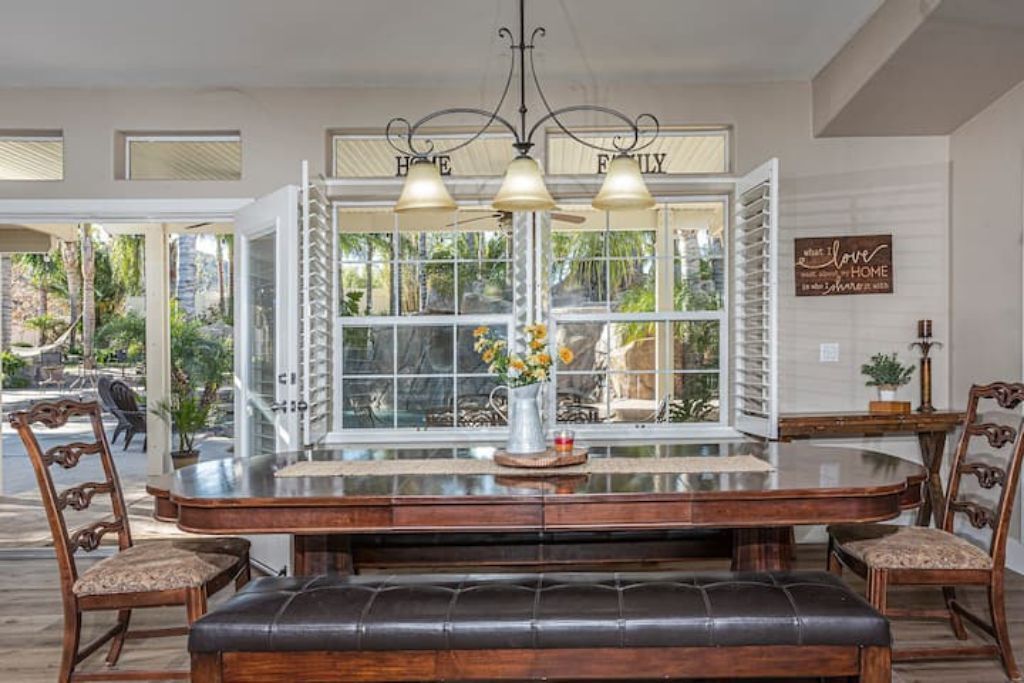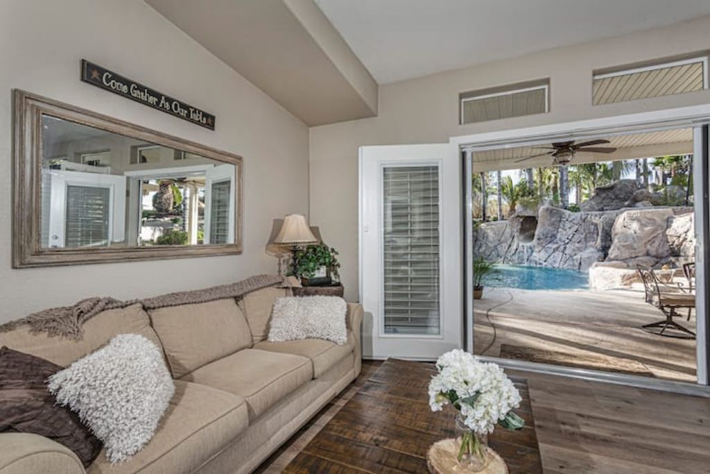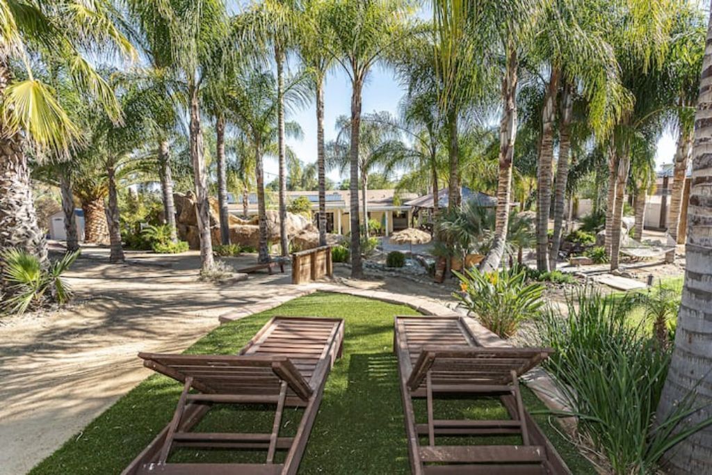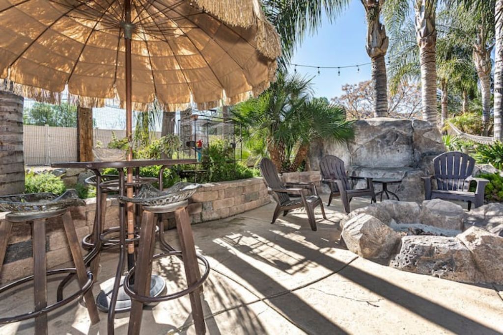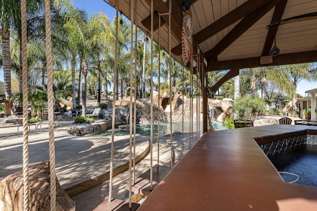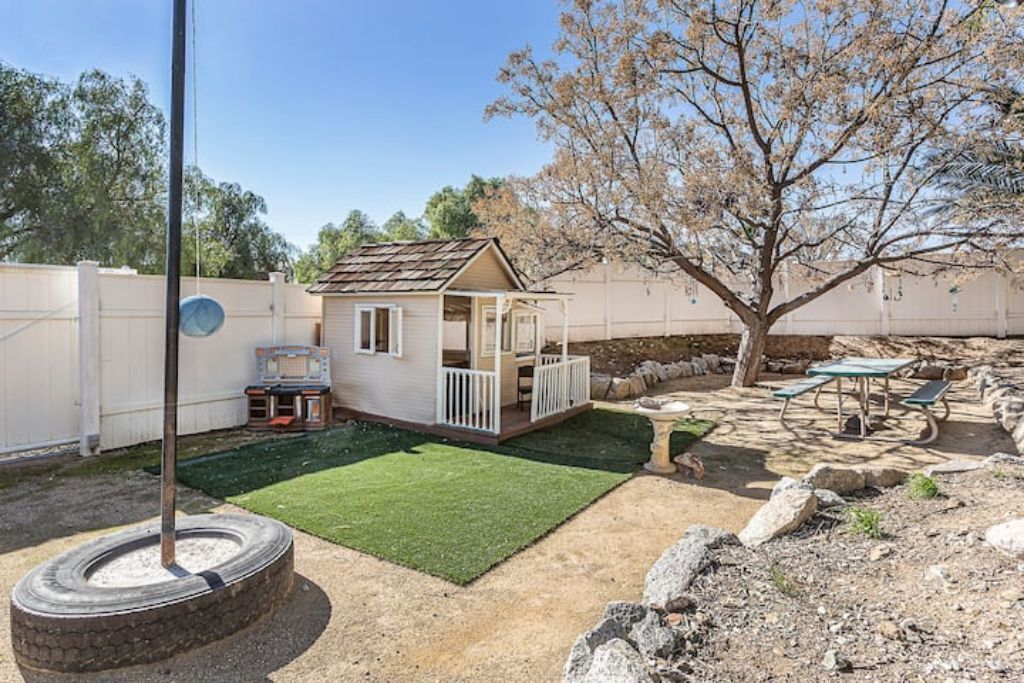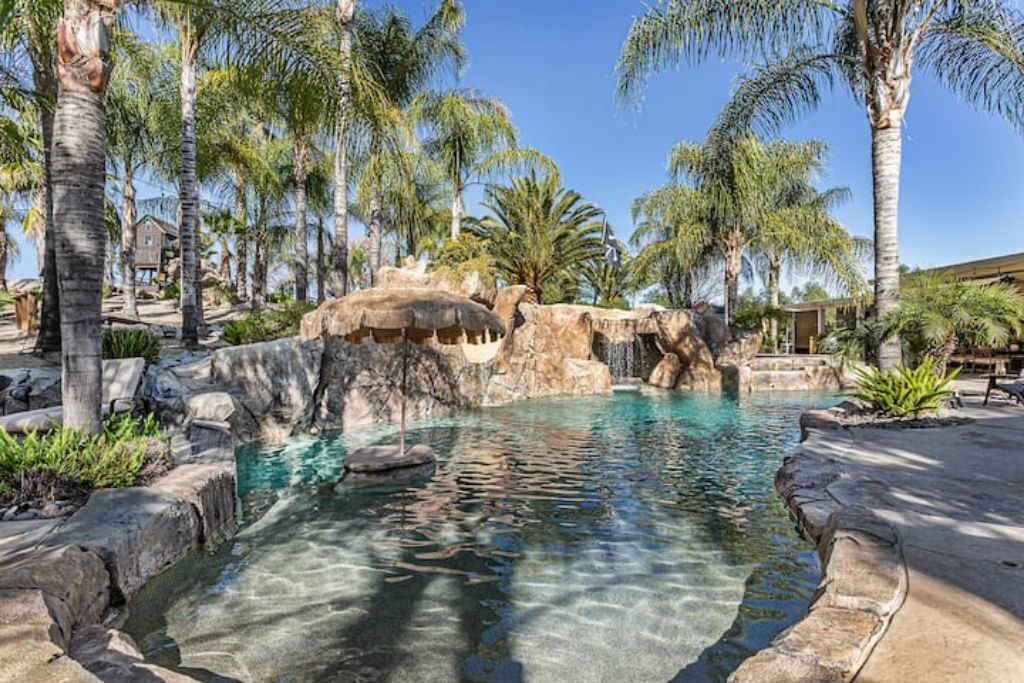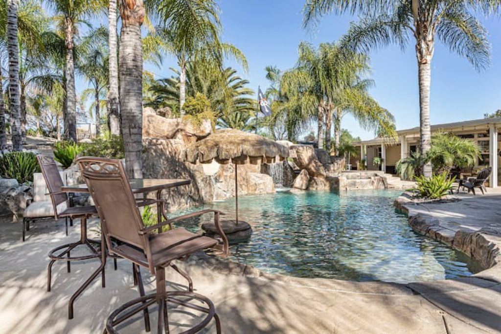 •Amazing Pool Oasis Getaway with waterfall & slide! Instagram- resortliving4you Come see what it’s like to vacation at the ultimate OASIS getaway that’s tucked between Temecula valley and Menifee, CA. Our gorgeous paradise with resort-style pool and backyard is perfect for families looking to experience everything Temecula Valley has to offer. Enjoy swimming in our huge pool with waterfalls, slide and grotto. BBQ your favorite dish with the family or have a refreshing drink while soaking up the California sun with friends. This is the Ultimate Vacation Getaway!The space🏝️Whether you are looking for a romantic getaway, some R & R or an adventure seeking vacation the Amazing Oasis Getaway has just what you are looking for. With four spacious rooms we can accommodate up to 12 guests comfortably.🌴Our backyard is the ultimate fun zone! Guest of any age can enjoy themselves by using our built in rock water slide or get competitive and play a game of horseshoes or tetherball!🧘♀️If relaxation is what you seek guest can take it easy by relaxing in our grotto, hammock or state of the art jacuzzi.🚘We have just about everything you need here at the amazing oasis getaway but to add more pleasure to your stay guests can take advantage of all that Menifee and Temecula has to offer. Guests can take a short drive to Temecula wine country to experience over 40 wineries with hundreds of award winning wines; take a step back in time and visit old town Temecula where you can find antique shops, specialty boutiques, craft breweries, farm to table dining, live music and nightlife entertainment.🪂For our guest who enjoy the rush of adrenaline our surrounding area offers skydiving, hot air balloon flying as well as off road Jeep tours through the hills of wine country.🏠The property is located on three acres of land with three additional houses. If the hosts or maintenance personnel are in town during your stay they will occupy one of the three additional homes. Your privacy is our top priority; we will not enter your rented space unless entry is requested incase of an emergency.🔋NEW- EV CHARGING STATION on the driveway next to the house.🏊♀️Pool is NOT heated.💥NO FIREWORKS 💥 HIGH FIRE AREAGuest accessYou will have complete access to the entire house, porch and fenced backyard with pool, spa and grotto.Other things to noteThe property is located in a rural area, as nature will have it you may come across wildlife that is native to southern California. This is a rare occasion but we want to make sure our guests are aware of possible wildlife sightings.We do have pet birds and chickens that will be locked up near the far back of the rental property.We please ask our guests to respect our neighbors and local noise ordinance after 10pm. You don't have to stop the fun, just keep noise to a respectful level.We want your stay at our home and the Temecula Valley to be as fun and memorable as it can be. Because of this, our property manager will greet you and your guests at check-in, or shortly after check in, to make sure you know how to operate everything in the home, and to answer any questions you may have about the property, nearby wineries, local events, etc.All guests staying at the Amazing oasis Getaway must also agree with the following legally binding Agreement:Swimming Pool: The swimming pool is SHALLOW! Jumping or diving is STRICTLY PROHIBITED as it is extremely dangerous and could result in severe injury or even death! No glass containers may be used near the pool. Responsible Guest shall inform all other guests of this rule, and will be responsible for making sure this rule is enforced at all times. Any personal injury as a result of a guests diving in the pool shall be borne solely by the responsible Guest.Children: Children are most welcome at Amazing Oasis Getaway. Responsible Guest signing the rental agreement shall be responsible for supervising all children in the pool area as there is no lifeguard on the premises.Security Cameras: Guest understands that Amazing Oasis Getaway features video electronic surveillance on the exterior sides and front of the home for guest security and to ensure that the rules of the community are respected. Guest acknowledges that the rental may be under 24-hour exterior surveillance and security monitoring and patrols. Properties may include noise alert monitoring systems in order to ensure that neighborhood noise levels are respected. Tampering with our security cameras and noise monitors will result in $1000.00 fine and taken from the security deposit.Noise: Please respect our neighbors and local noise ordinance after 10pm. You don't have to stop the fun, just keep noise to a respectful level.Violation of this rule will be subject to an initial warning notification the first occurrence, $500.00 for the second occurrence and $1,000 and eviction for the third occurrence. This fine will be taken from the security deposit. The property will be subject to inspection upon reasonable notice to guest, which includes, calling, texting, knocking on the door or ringing the doorbell before entry in the event that noise complaints are issued. The guest understands that this may occur anytime during the guest's stay if there is noise or reasonable suspicion of a party or any other violation of the house neighborhood rules or city ordinance. Amazing Oasis Getaway uses electronic systems designed to measure the noise level outside of the rental.Must be 25 or older to book. ID will be verified of Responsible Guest at check-in.Reservation Cancellations: Refer to website Cancelation Policy.Check In Time: Check in begins at 4:00pm.Check out is at 11:00amIndoor and outdoor furniture must not be moved. Furniture that has been moved and not put back will result in a $100.00 furniture rearrangement fee.Smoking is strictly prohibited both inside and outside the property grounds. This includes any type of cigarette, cigar, pipe, vapor, hookah, etc. Viol