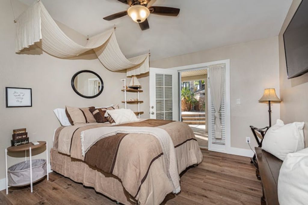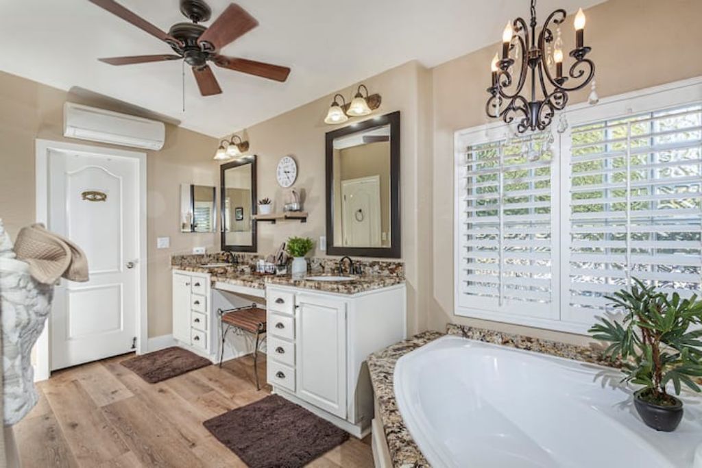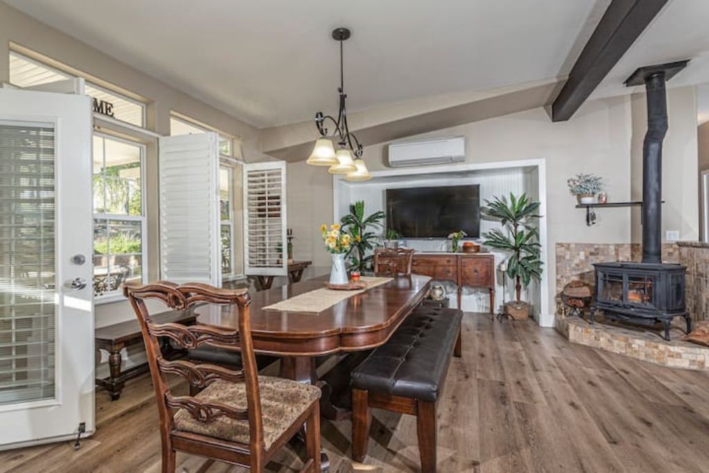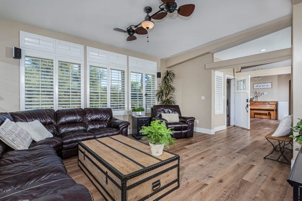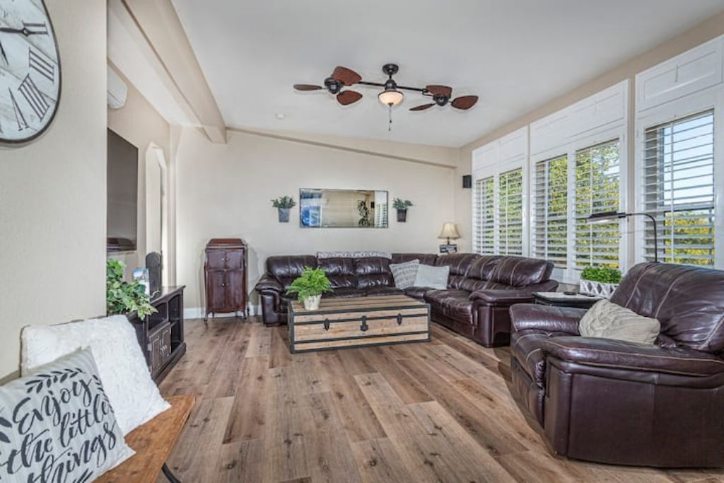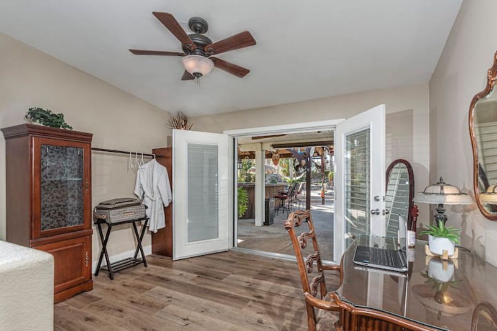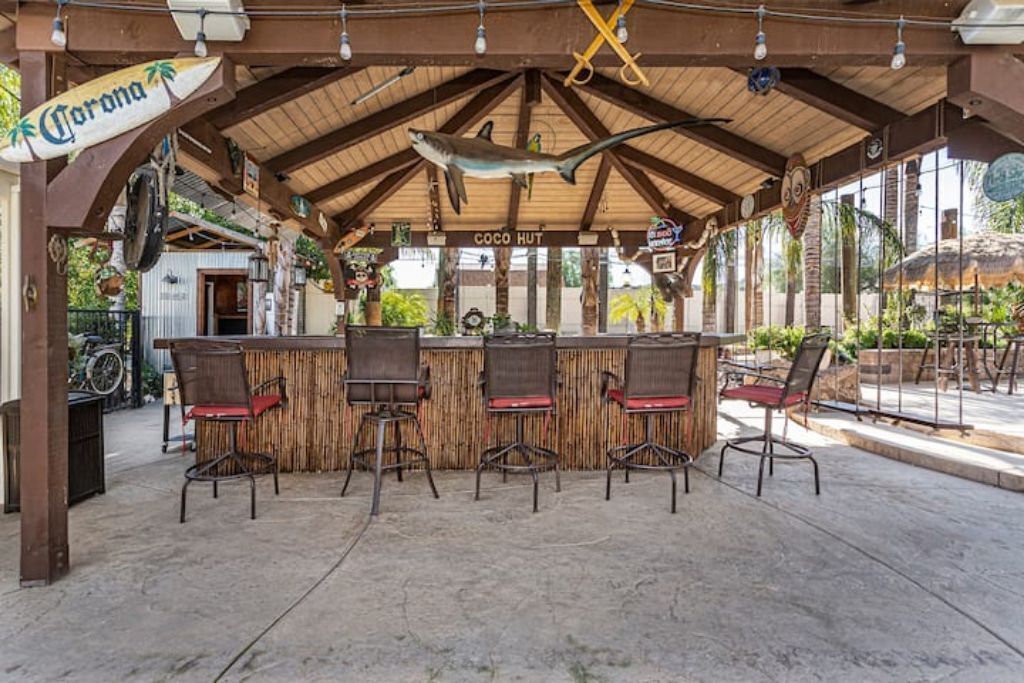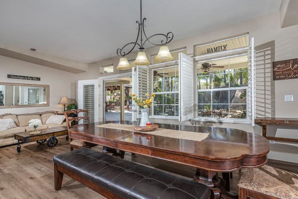 •Amazing Pool Oasis Getaway with waterfall & slide! Instagram- resortliving4you Come see what it’s like to vacation at the ultimate OASIS getaway that’s tucked between Temecula valley and Menifee, CA. Our gorgeous paradise with resort-style pool and backyard is perfect for families looking to experience everything Temecula Valley has to offer. Enjoy swimming in our huge pool with waterfalls, slide and grotto. BBQ your favorite dish with the family or have a refreshing drink while soaking up the California sun with friends. This is the Ultimate Vacation Getaway!The space🏝️Whether you are looking for a romantic getaway, some R & R or an adventure seeking vacation the Amazing Oasis Getaway has just what you are looking for. With four spacious rooms we can accommodate up to 12 guests comfortably.🌴Our backyard is the ultimate fun zone! Guest of any age can enjoy themselves by using our built in rock water slide or get competitive and play a game of horseshoes or tetherball!🧘♀️If relaxation is what you seek guest can take it easy by relaxing in our grotto, hammock or state of the art jacuzzi.🚘We have just about everything you need here at the amazing oasis getaway but to add more pleasure to your stay guests can take advantage of all that Menifee and Temecula has to offer. Guests can take a short drive to Temecula wine country to experience over 40 wineries with hundreds of award winning wines; take a step back in time and visit old town Temecula where you can find antique shops, specialty boutiques, craft breweries, farm to table dining, live music and nightlife entertainment.🪂For our guest who enjoy the rush of adrenaline our surrounding area offers skydiving, hot air balloon flying as well as off road Jeep tours through the hills of wine country.🏠The property is located on three acres of land with three additional houses. If the hosts or maintenance personnel are in town during your stay they will occupy one of the three additional homes. Your privacy is our top priority; we will not enter your rented space unless entry is requested incase of an emergency.🔋NEW- EV CHARGING STATION on the driveway next to the house.🏊♀️Pool is NOT heated.💥NO FIREWORKS 💥 HIGH FIRE AREAGuest accessYou will have complete access to the entire house, porch and fenced backyard with pool, spa and grotto.Other things to noteThe property is located in a rural area, as nature will have it you may come across wildlife that is native to southern California. This is a rare occasion but we want to make sure our guests are aware of possible wildlife sightings.We do have pet birds and chickens that will be locked up near the far back of the rental property.We please ask our guests to respect our neighbors and local noise ordinance after 10pm. You don't have to stop the fun, just keep noise to a respectful level.We want your stay at our home and the Temecula Valley to be as fun and memorable as it can be. Because of this, our property manager will greet you and your guests at check-in, or shortly after check in, to make sure you know how to operate everything in the home, and to answer any questions you may have about the property, nearby wineries, local events, etc.All guests staying at the Amazing oasis Getaway must also agree with the following legally binding Agreement:Swimming Pool: The swimming pool is SHALLOW! Jumping or diving is STRICTLY PROHIBITED as it is extremely dangerous and could result in severe injury or even death! No glass containers may be used near the pool. Responsible Guest shall inform all other guests of this rule, and will be responsible for making sure this rule is enforced at all times. Any personal injury as a result of a guests diving in the pool shall be borne solely by the responsible Guest.Children: Children are most welcome at Amazing Oasis Getaway. Responsible Guest signing the rental agreement shall be responsible for supervising all children in the pool area as there is no lifeguard on the premises.Security Cameras: Guest understands that Amazing Oasis Getaway features video electronic surveillance on the exterior sides and front of the home for guest security and to ensure that the rules of the community are respected. Guest acknowledges that the rental may be under 24-hour exterior surveillance and security monitoring and patrols. Properties may include noise alert monitoring systems in order to ensure that neighborhood noise levels are respected. Tampering with our security cameras and noise monitors will result in $1000.00 fine and taken from the security deposit.Noise: Please respect our neighbors and local noise ordinance after 10pm. You don't have to stop the fun, just keep noise to a respectful level.Violation of this rule will be subject to an initial warning notification the first occurrence, $500.00 for the second occurrence and $1,000 and eviction for the third occurrence. This fine will be taken from the security deposit. The property will be subject to inspection upon reasonable notice to guest, which includes, calling, texting, knocking on the door or ringing the doorbell before entry in the event that noise complaints are issued. The guest understands that this may occur anytime during the guest's stay if there is noise or reasonable suspicion of a party or any other violation of the house neighborhood rules or city ordinance. Amazing Oasis Getaway uses electronic systems designed to measure the noise level outside of the rental.Must be 25 or older to book. ID will be verified of Responsible Guest at check-in.Reservation Cancellations: Refer to website Cancelation Policy.Check In Time: Check in begins at 4:00pm.Check out is at 11:00amIndoor and outdoor furniture must not be moved. Furniture that has been moved and not put back will result in a $100.00 furniture rearrangement fee.Smoking is strictly prohibited both inside and outside the property grounds. This includes any type of cigarette, cigar, pipe, vapor, hookah, etc. Viol