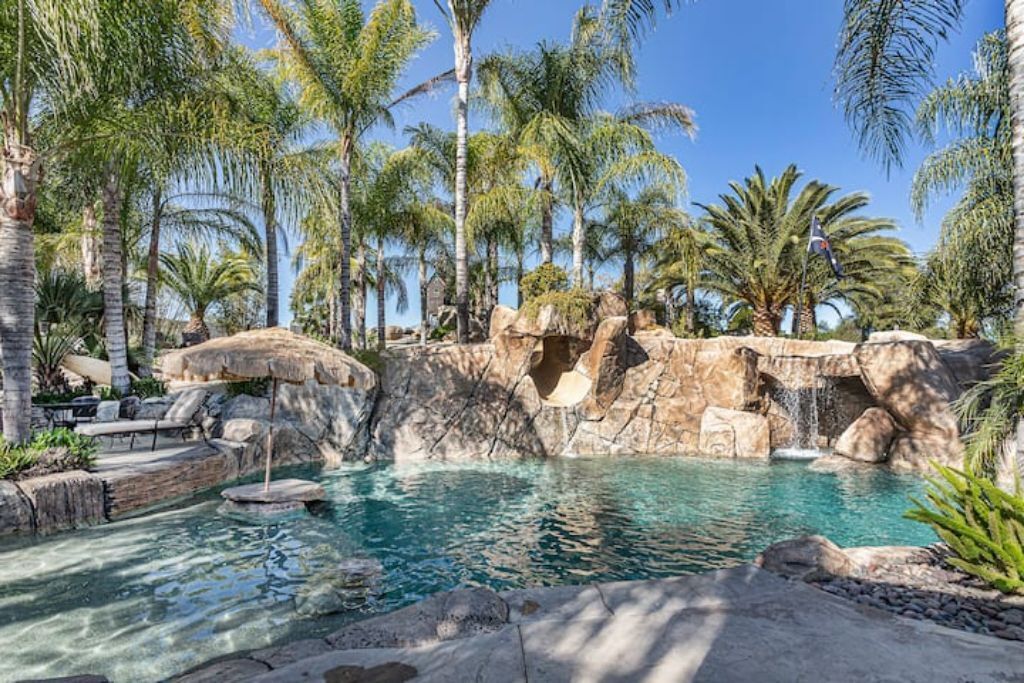 •Amazing Pool Oasis Getaway with waterfall & slide! Instagram- resortliving4you Come see what it’s like to vacation at the ultimate OASIS getaway that’s tucked between Temecula valley and Menifee, CA. Our gorgeous paradise with resort-style pool and backyard is perfect for families looking to experience everything Temecula Valley has to offer. Enjoy swimming in our huge pool with waterfalls, slide...