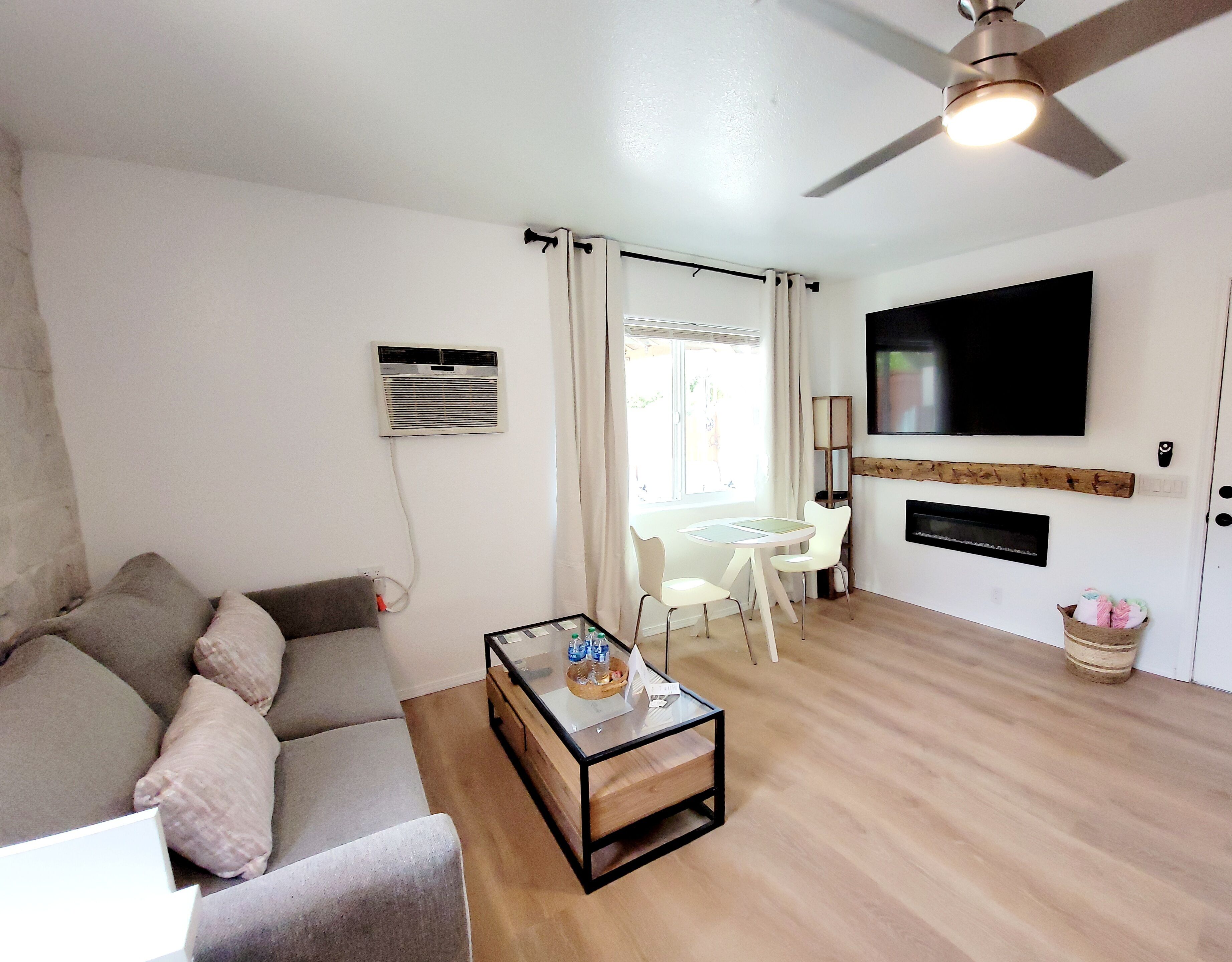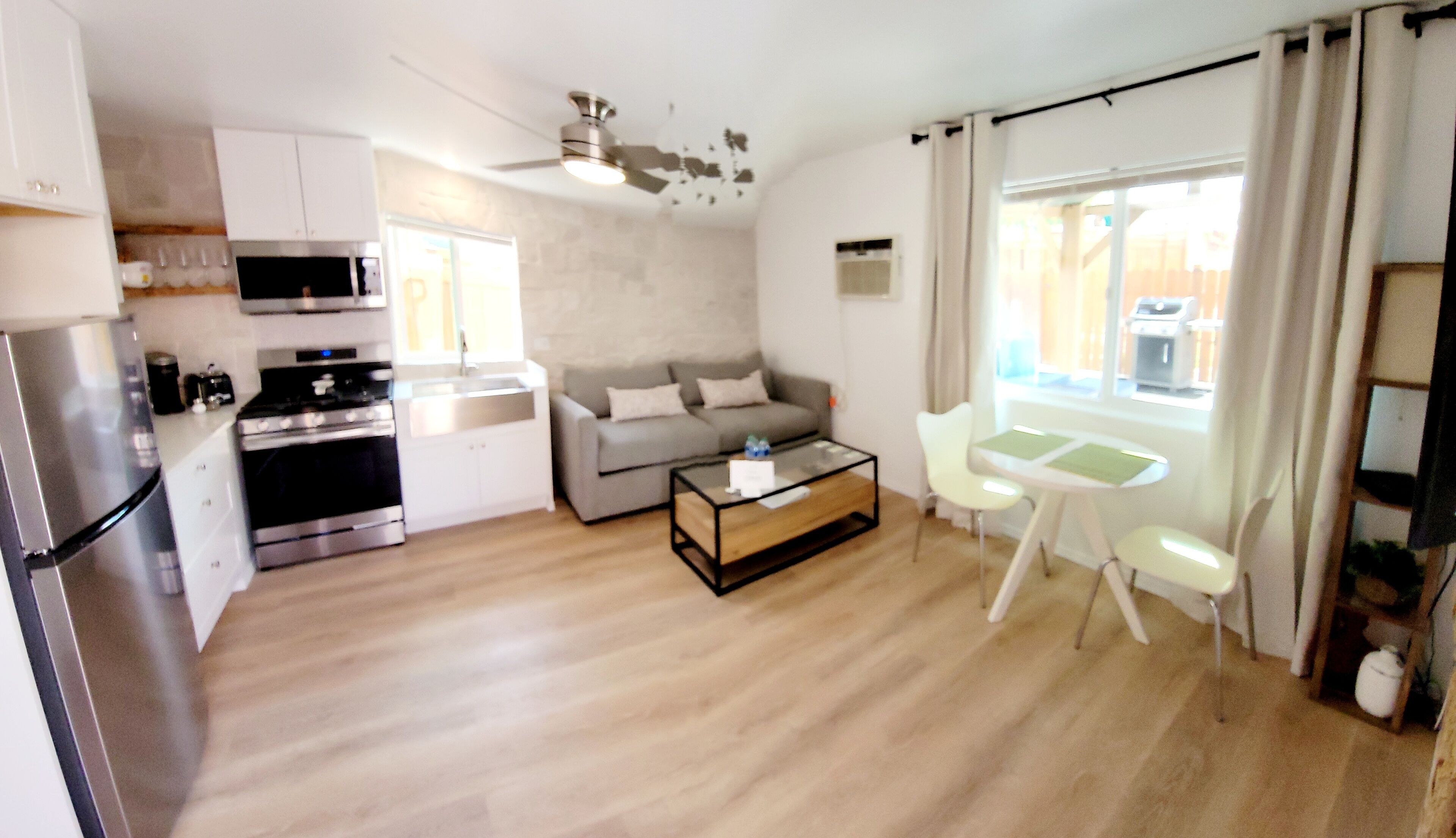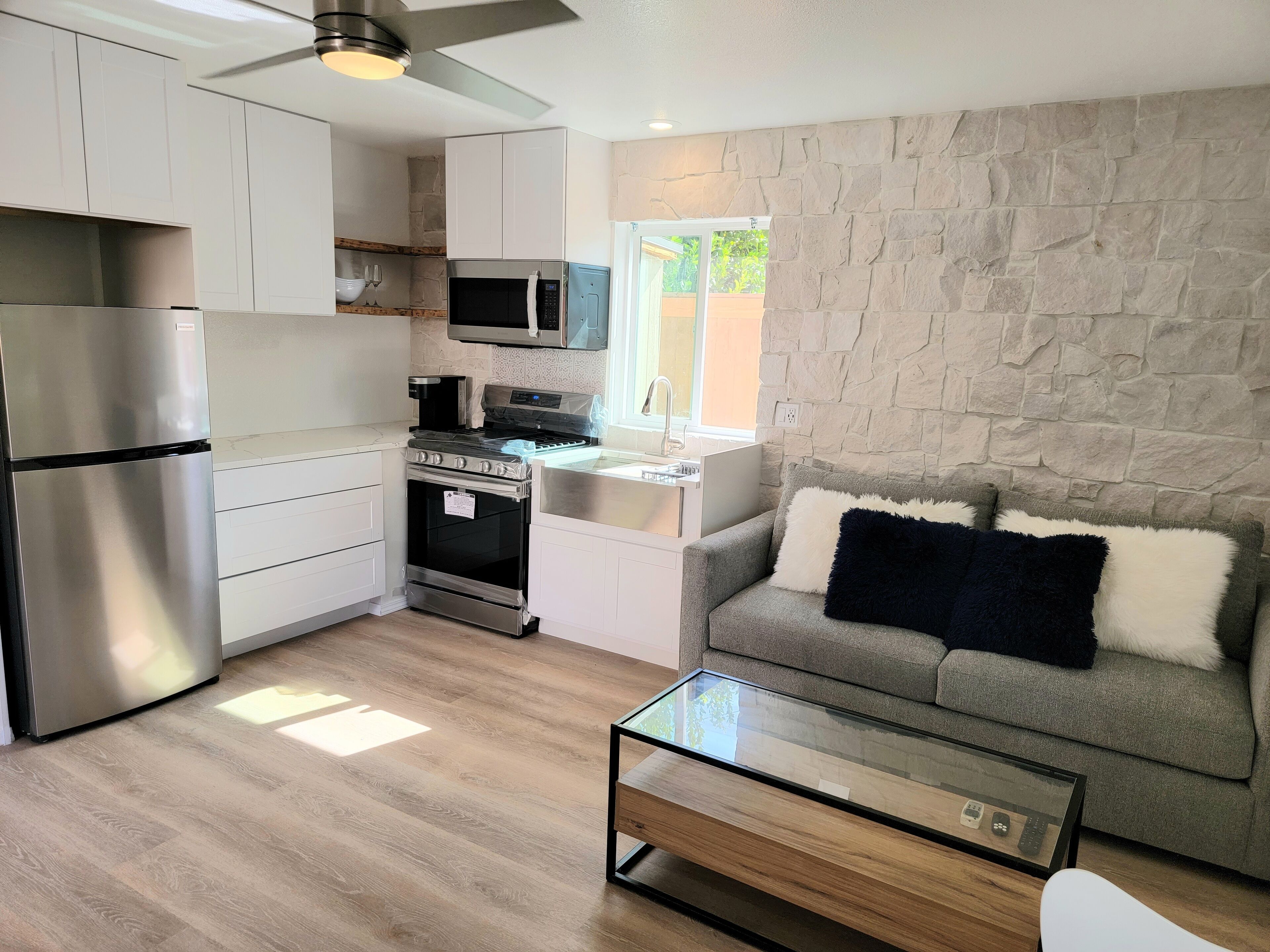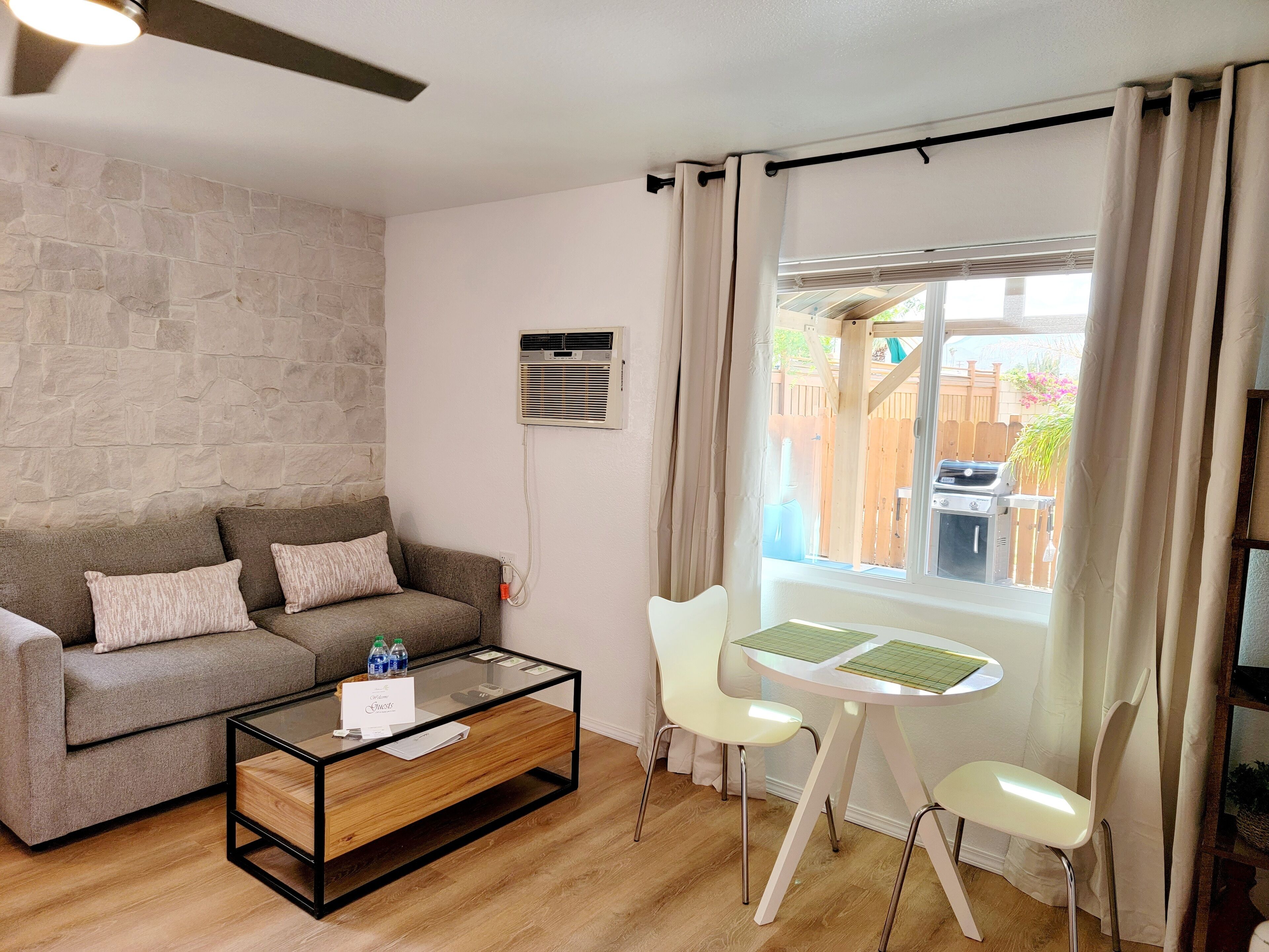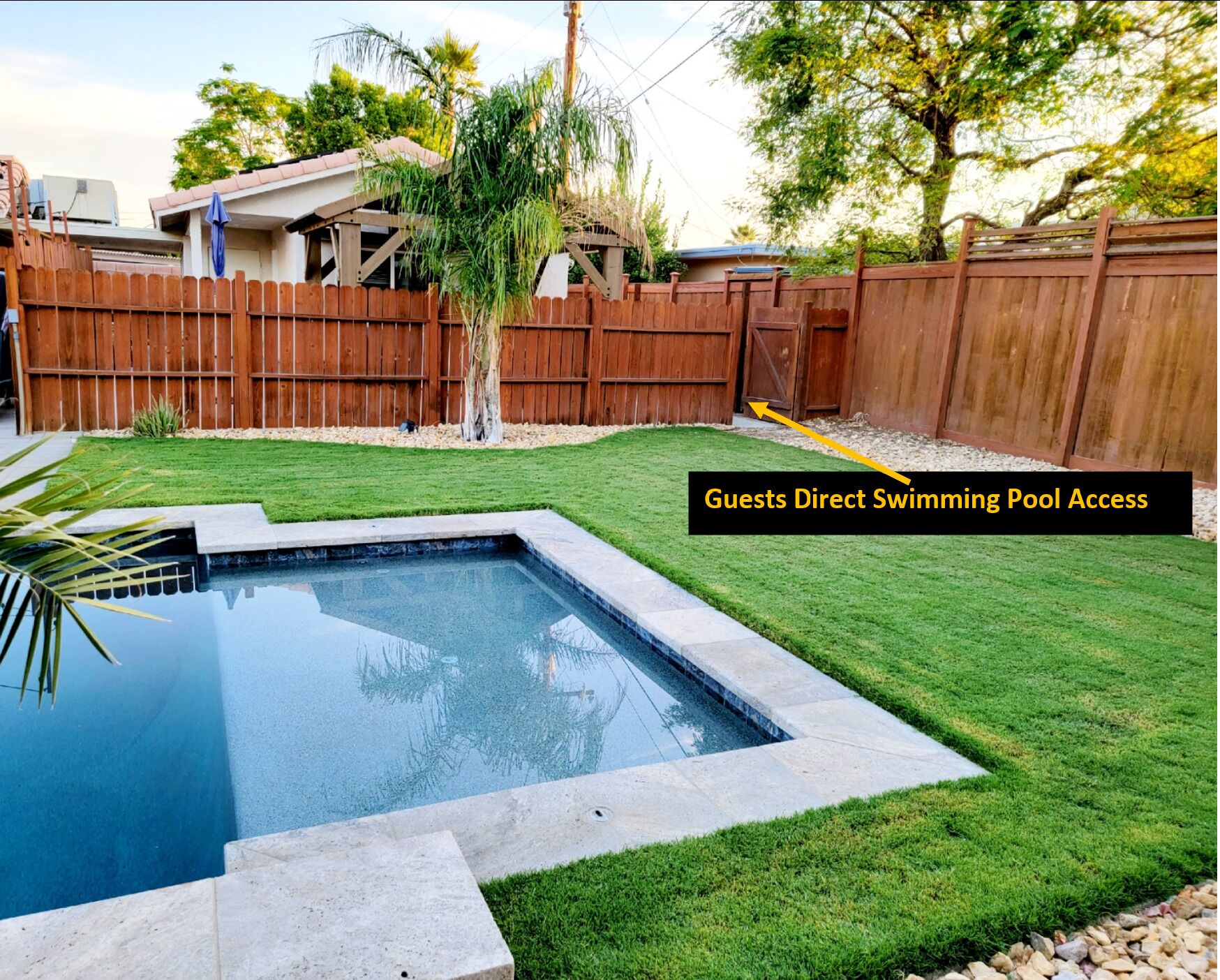 PALMERA+ Organic Modern Style Casita near El Paseo Shops with Saltwater pool! Location! Location! Location!Experience a luxurious vacation at this newly renovated modern Mediterranean Style DETACHED guesthouse casita less than half a mile from El Paseo Luxury Shops and Restaurants, the "Rodeo Drive of Coachella Valley". This luxury getaway offers discounts for long-term or winter-season rentals (snowbirds). It is privately owned and managed by the host/s and doing business as (DBA) Palmera+.FAQ:BOOKING REQUIREMENTS: Per City Ordinance1. Palmera+ guesthouse/casita's maximum occupancy is 2 guests excluding infants, no additional guests allowed; 2. Responsible person must be at least 25 years old on check-in date; and3.Host live on-site and will check your ID to confirm identity and compliance of the above requirements upon arrival. FEES:4. DO YOU CHARGE A CLEANING FEE? -We DO NOT charge cleaning fee. That is about $150.00 savings!!!!5. IS THE POOL HEATED? - It can be heated for a fee. Between $50 - $100 a day depending on the temperature and natural gas prices. Other option, is to go to the Palm Desert Aquatic Center which is a mile away and they charge a nominal fee.6. DO YOU OFFER DISCOUNT FOR LONG-TERM STAY? YES. We offer 20% discount for month or longer stay. PETS:7. CAN I BRING MY PET? - Sorry pets are NOT allowed.PRIVACY:8. DO THE HOSTS LIVE ONSITE? -Yes. Hosts live on-site per City Ordinance.9. IS IT A SHARED POOL? -The pool is located in the common area. However, Palmera+ aims to provide exclusive and relaxing experience to our valued guests therefore, hosts will not use the facilities when guests are using the pool area. 10. WILL THE HOST OR OTHER GUESTS BE USING THE POOL DURING OUR STAY? NO. The pool is exclusively yours during your stay.11. CAN THE BACKYARD/POOL BE ENJOYED NUDE? No. Optional clothing is not allowed.12. IS THE GUEST HOUSE PRIVATE? -Yes. You get your own private entrance and private/fenced-in patio/section of the backyard. You may never see us after checking in! (Unless you need our service) It's almost like your own little luxury hotel!13. DOES THE PROPERTY HAVE A CAMERA?-YES. Cameras are located in the front of the main house only overlooking the parking areas for safety. SWIMMING POOL:14. DO WE HAVE DIRECT POOL ACCESS? - YES. Newly installed 36x14ft saltwater swimming/lap pool is just a few steps away from the back patio. OCCUPANCY/PARKING:15. WHAT IS THE MAXIMUM OCCUPANCY? Per City Ordinance, maximum 2 adults, and 2 infants .16. DO YOU HAVE RESERVED PARKING FOR YOUR GUESTS? We provide 1 car driveway parking maximum. No street parking allowed per City Ordinance.17. DO YOU HAVE MINIMUM STAY REQUIREMENT? YES. 30 days.CHECK-IN INSTRUCTION:18. HOW CAN I ACCESS THE PROPERTY? Upon arrival, PLEASE: - Park your car in the drive way. DO NOT park on the street. City prohibits short-term renters from parking on the street.- Ring the doorbell or send us a message. - Host will require ID to confirm identity, age (must be at least 25 years old on check-in date), number of guest/s (2 maximum guests, and 2 infants). - Host will then provide keys and City required documents.THE CASITA/GUESTHOUSEBrand new furniture!!! Brand new appliances!!!! INTERIORThe newly renovated furnished kitchen/living room include a fully equipped kitchen with brand new built-in microwave, gas stove and refrigerator. The kitchen, living and dining room all flow together in an open plan configuration that gives the home a spacious, light feel and allows for easy entertaining. The ceiling fans, electric fireplace, 65-inch flat screen TV with cable service and free WiFi will enhance your vacation experience. The newly renovated en-suite bedroom features a queen bed and ample closet space. Attached is the newly renovated spa-like inspired en-suite bathroom that has a large walk-in, rain shower for easy access.OUTDOORBBQ grill is located on covered back patio/courtyard with newly installed gazebo and new comfortable sitting area. Newly installed 36x14ft saltwater swimming/lap pool just a few steps away from the back patio. There are built-in lounging areas on each end of the pool for tanning or just dipping your feet in the water. Although owners live-on-site, the pool will always be available for you to enjoy during your stay! Full size washer & dryer are conveniently located at the side of the casita.WE ARE LOCATED AT THE HEART OF COACHELLA VALLEY!!AIRPORT: Palm Springs International Airport (12 miles)EVENTS: Fashion Week El PaseoCoachella & Stagecoach Music Festival - Empire Polo ClubPalm Springs International Film FestivalPalm Springs Village FeastPalm Springs Convention CenterBNP Paribas Opening TournamentCoachella Valley Firebirds - affiliate of the NHL’s Seattle Kraken Hockey TournamentThe Street Fair at Palm DesertLUXURY SHOPPING: The Gardens on El Paseo The Shops on El PaseoThe River Mall Old Town La QuintaBackstreet Art District Downtown Palm Springs GOLF, TENNIS & HOCKEY: Shadow Mountain Golf ClubStone Eagle Golf Club Rancho Las Palmas Golf Course Bighorn Golf Club Indian Wells Tennis New!! Acrisure Arena - Home for Coachella Valley Firebirds the American Hockey League affiliate of the NHL’s Seattle Kraken MORE THINGS TO SEE & DO: McCallum TheatreThe Living Desert Zoo and GardensPalm Springs Air Museum Numerous Casinos nearbyPalm Springs Art Museum Palm Springs Walk of Stars Palm Springs Aerial Tramway Homestead Trailhead Santa Rosa and San Jacinto Mountains National MonumentCoachella Valley Preserve Indian Canyons Joshua Tree National Park Mt San Jacinto State ParkPOLICIES:NO pets allowedNO indoor smokingNO events, parties, or large gatheringsGuests must comply the Palm Desert Short-Term Rental Ordinance during their entire stay. See https://www.cityofpalmdesert.org/home/showpublisheddocument/30580/637484600449070000GOOD NEIGHBOR BROCHURE: https://www.cityofpalmdesert.org/home/showpublisheddocument/23843/636560996428270000By booking with Palmera+ you automatically agree on host’s terms and