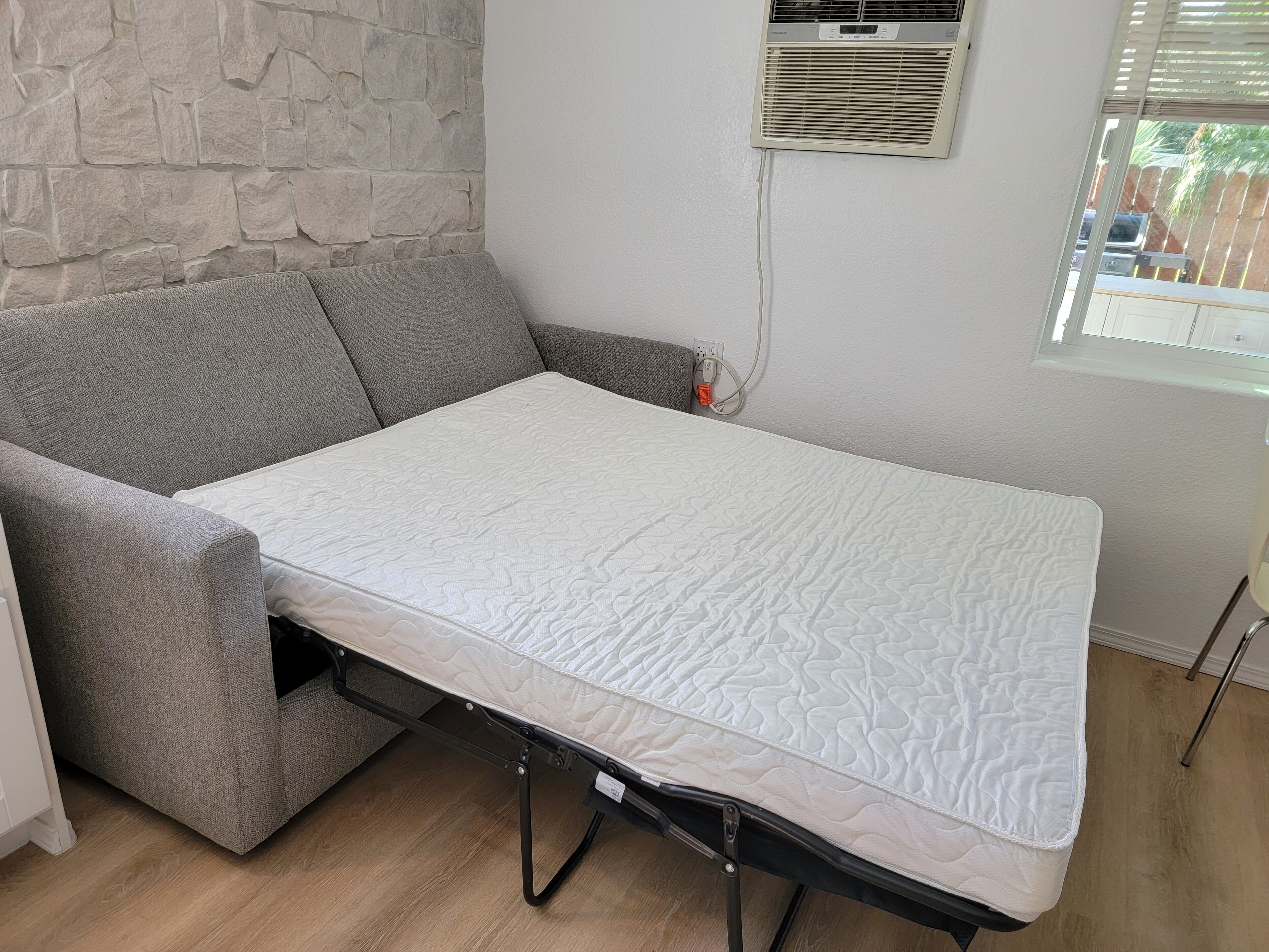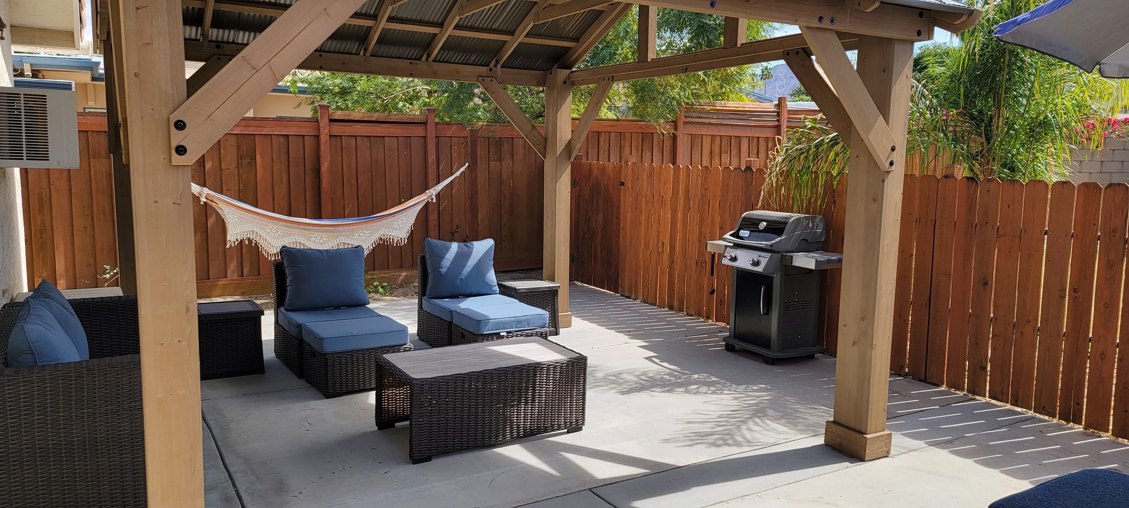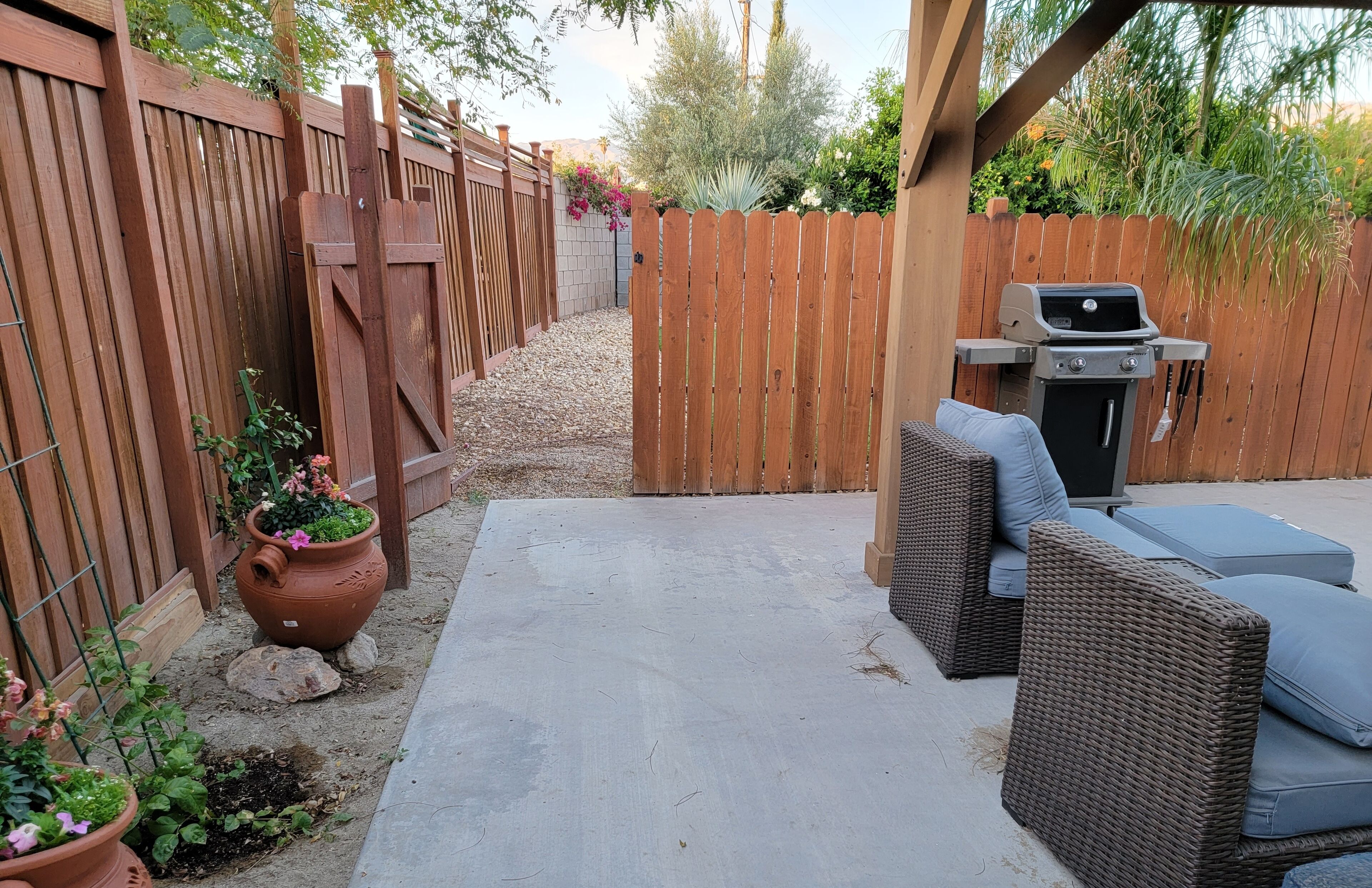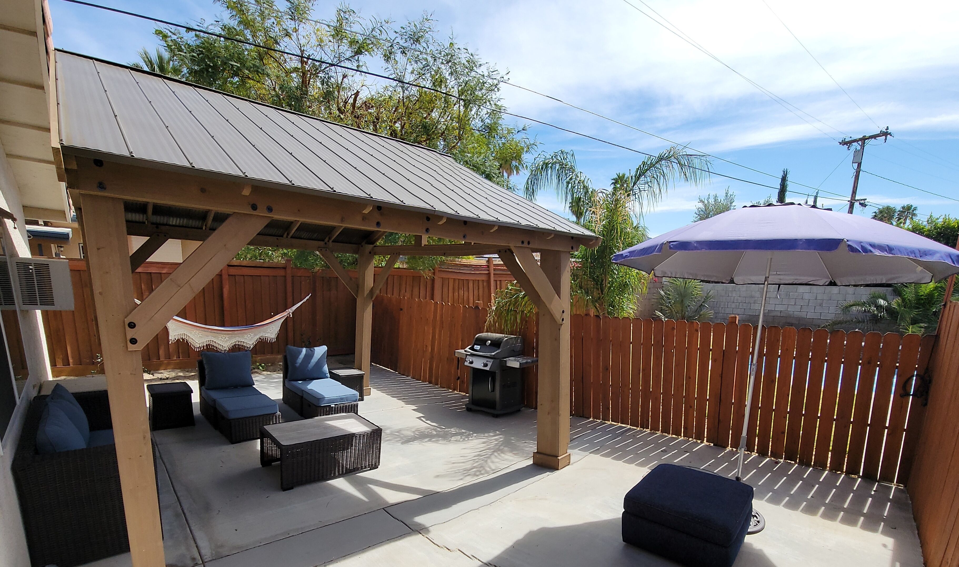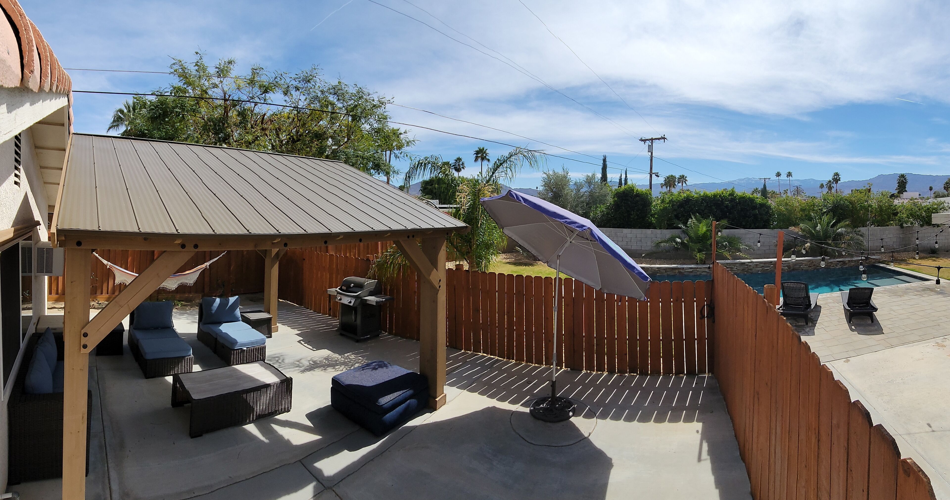 PALMERA+ Organic Modern Style Casita near El Paseo Shops with Saltwater pool! Location! Location! Location!Experience a luxurious vacation at this newly renovated modern Mediterranean Style DETACHED guesthouse casita less than half a mile from El Paseo Luxury Shops and Restaurants, the "Rodeo Drive of Coachella Valley". This luxury getaway offers discounts for long-term or winter-season rentals (snowbirds). It is privately owned and managed by the host/s and doing business as (DBA) Palmera+.FAQ:BOOKING REQUIREMENTS: Per City Ordinance1. Palmera+ guesthouse/casita's maximum occupancy is 2 guests excluding infants, no additional guests allowed; 2. Responsible person must be at least 25 years old on check-in date; and3.Host live on-site and will check your ID to confirm identity and compliance of the above requirements upon arrival. FEES:4. DO YOU CHARGE A CLEANING FEE? -We DO NOT charge cleaning fee. That is about $150.00 savings!!!!5. IS THE POOL HEATED? - It can be heated for a fee. Between $50 - $100 a day depending on the temperature and natural gas prices. Other option, is to go to the Palm Desert Aquatic Center which is a mile away and they charge a nominal fee.6. DO YOU OFFER DISCOUNT FOR LONG-TERM STAY? YES. We offer 20% discount for month or longer stay. PETS:7. CAN I BRING MY PET? - Sorry pets are NOT allowed.PRIVACY:8. DO THE HOSTS LIVE ONSITE? -Yes. Hosts live on-site per City Ordinance.9. IS IT A SHARED POOL? -The pool is located in the common area. However, Palmera+ aims to provide exclusive and relaxing experience to our valued guests therefore, hosts will not use the facilities when guests are using the pool area. 10. WILL THE HOST OR OTHER GUESTS BE USING THE POOL DURING OUR STAY? NO. The pool is exclusively yours during your stay.11. CAN THE BACKYARD/POOL BE ENJOYED NUDE? No. Optional clothing is not allowed.12. IS THE GUEST HOUSE PRIVATE? -Yes. You get your own private entrance and private/fenced-in patio/section of the backyard. You may never see us after checking in! (Unless you need our service) It's almost like your own little luxury hotel!13. DOES THE PROPERTY HAVE A CAMERA?-YES. Cameras are located in the front of the main house only overlooking the parking areas for safety. SWIMMING POOL:14. DO WE HAVE DIRECT POOL ACCESS? - YES. Newly installed 36x14ft saltwater swimming/lap pool is just a few steps away from the back patio. OCCUPANCY/PARKING:15. WHAT IS THE MAXIMUM OCCUPANCY? Per City Ordinance, maximum 2 adults, and 2 infants .16. DO YOU HAVE RESERVED PARKING FOR YOUR GUESTS? We provide 1 car driveway parking maximum. No street parking allowed per City Ordinance.17. DO YOU HAVE MINIMUM STAY REQUIREMENT? YES. 30 days.CHECK-IN INSTRUCTION:18. HOW CAN I ACCESS THE PROPERTY? Upon arrival, PLEASE: - Park your car in the drive way. DO NOT park on the street. City prohibits short-term renters from parking on the street.- Ring the doorbell or send us a message. - Host will require ID to confirm identity, age (must be at least 25 years old on check-in date), number of guest/s (2 maximum guests, and 2 infants). - Host will then provide keys and City required documents.THE CASITA/GUESTHOUSEBrand new furniture!!! Brand new appliances!!!! INTERIORThe newly renovated furnished kitchen/living room include a fully equipped kitchen with brand new built-in microwave, gas stove and refrigerator. The kitchen, living and dining room all flow together in an open plan configuration that gives the home a spacious, light feel and allows for easy entertaining. The ceiling fans, electric fireplace, 65-inch flat screen TV with cable service and free WiFi will enhance your vacation experience. The newly renovated en-suite bedroom features a queen bed and ample closet space. Attached is the newly renovated spa-like inspired en-suite bathroom that has a large walk-in, rain shower for easy access.OUTDOORBBQ grill is located on covered back patio/courtyard with newly installed gazebo and new comfortable sitting area. Newly installed 36x14ft saltwater swimming/lap pool just a few steps away from the back patio. There are built-in lounging areas on each end of the pool for tanning or just dipping your feet in the water. Although owners live-on-site, the pool will always be available for you to enjoy during your stay! Full size washer & dryer are conveniently located at the side of the casita.WE ARE LOCATED AT THE HEART OF COACHELLA VALLEY!!AIRPORT: Palm Springs International Airport (12 miles)EVENTS: Fashion Week El PaseoCoachella & Stagecoach Music Festival - Empire Polo ClubPalm Springs International Film FestivalPalm Springs Village FeastPalm Springs Convention CenterBNP Paribas Opening TournamentCoachella Valley Firebirds - affiliate of the NHL’s Seattle Kraken Hockey TournamentThe Street Fair at Palm DesertLUXURY SHOPPING: The Gardens on El Paseo The Shops on El PaseoThe River Mall Old Town La QuintaBackstreet Art District Downtown Palm Springs GOLF, TENNIS & HOCKEY: Shadow Mountain Golf ClubStone Eagle Golf Club Rancho Las Palmas Golf Course Bighorn Golf Club Indian Wells Tennis New!! Acrisure Arena - Home for Coachella Valley Firebirds the American Hockey League affiliate of the NHL’s Seattle Kraken MORE THINGS TO SEE & DO: McCallum TheatreThe Living Desert Zoo and GardensPalm Springs Air Museum Numerous Casinos nearbyPalm Springs Art Museum Palm Springs Walk of Stars Palm Springs Aerial Tramway Homestead Trailhead Santa Rosa and San Jacinto Mountains National MonumentCoachella Valley Preserve Indian Canyons Joshua Tree National Park Mt San Jacinto State ParkPOLICIES:NO pets allowedNO indoor smokingNO events, parties, or large gatheringsGuests must comply the Palm Desert Short-Term Rental Ordinance during their entire stay. See https://www.cityofpalmdesert.org/home/showpublisheddocument/30580/637484600449070000GOOD NEIGHBOR BROCHURE: https://www.cityofpalmdesert.org/home/showpublisheddocument/23843/636560996428270000By booking with Palmera+ you automatically agree on host’s terms and