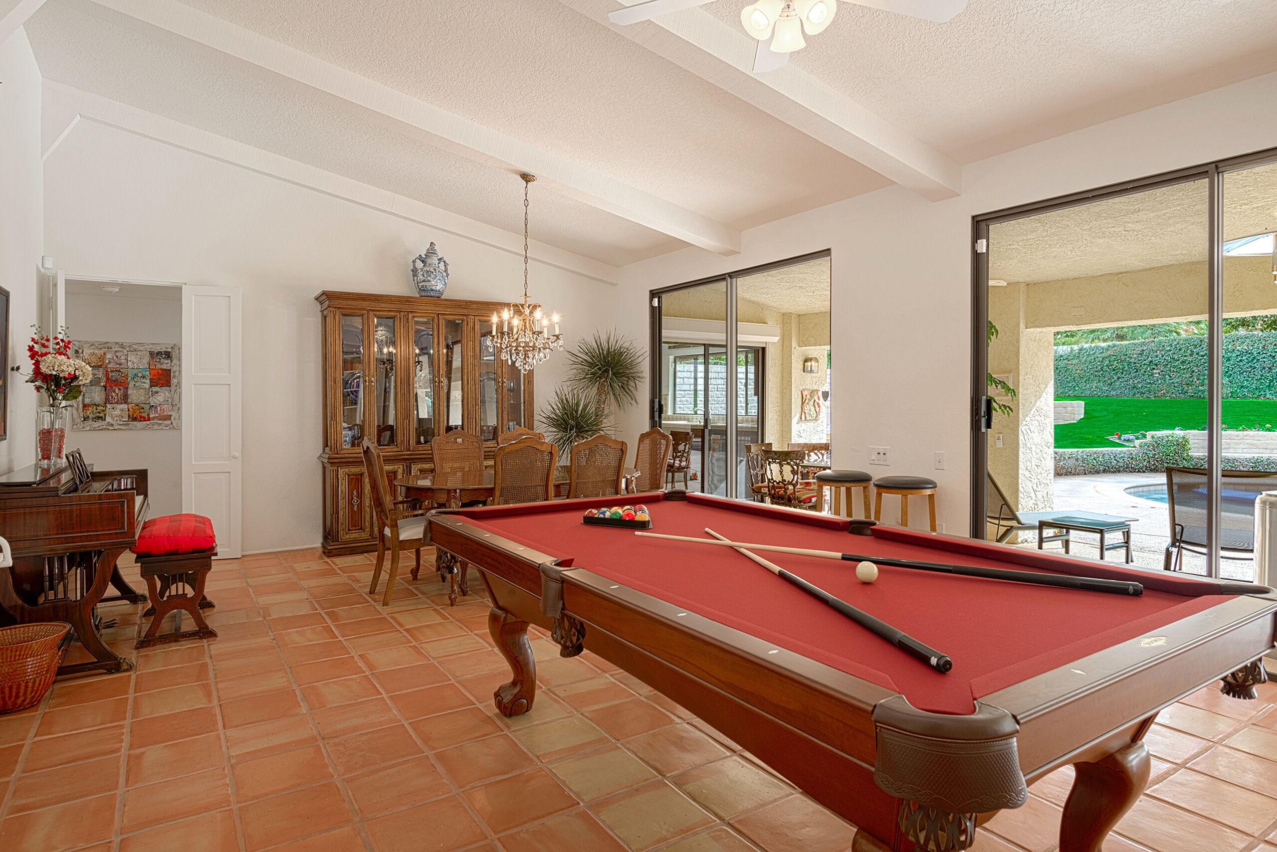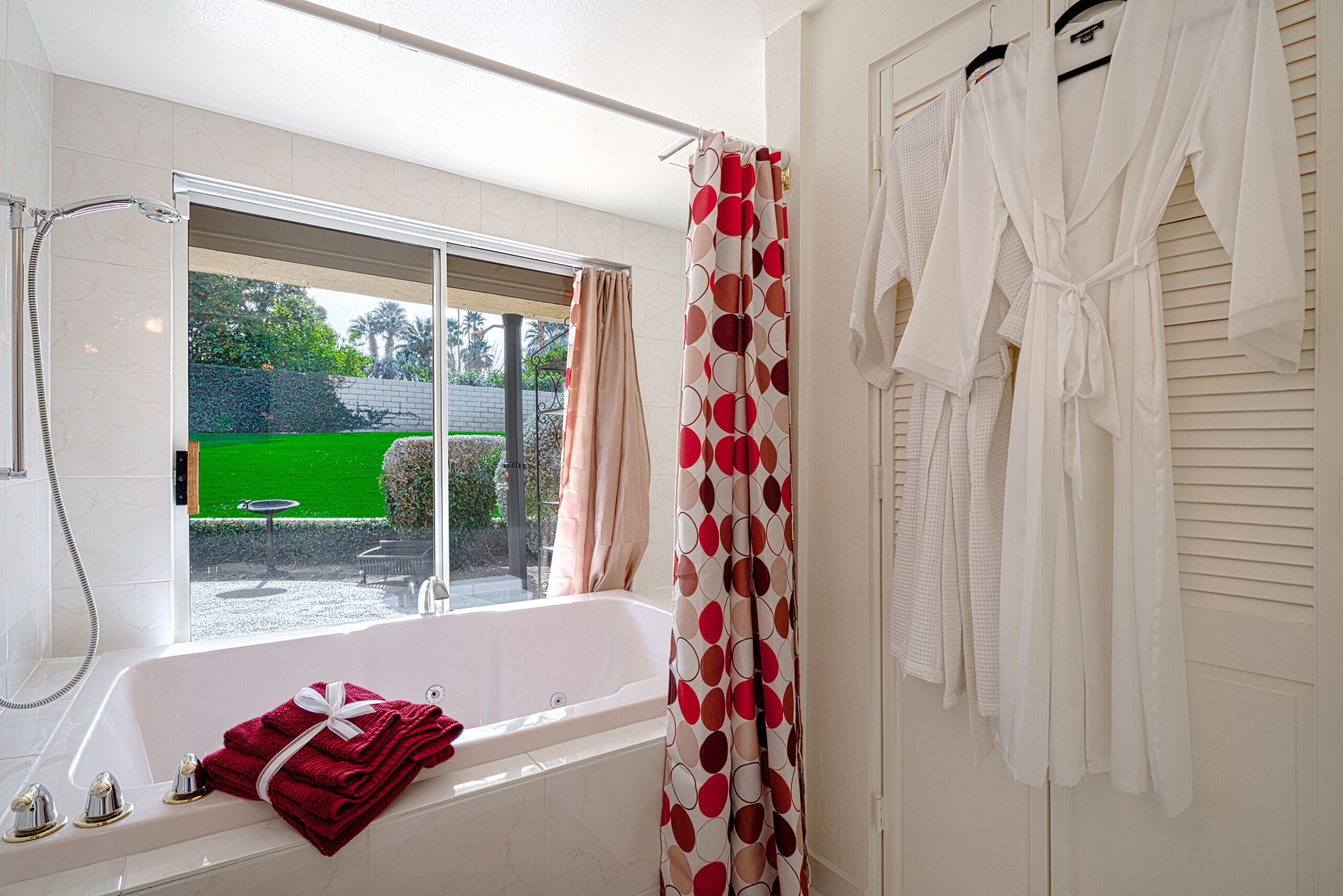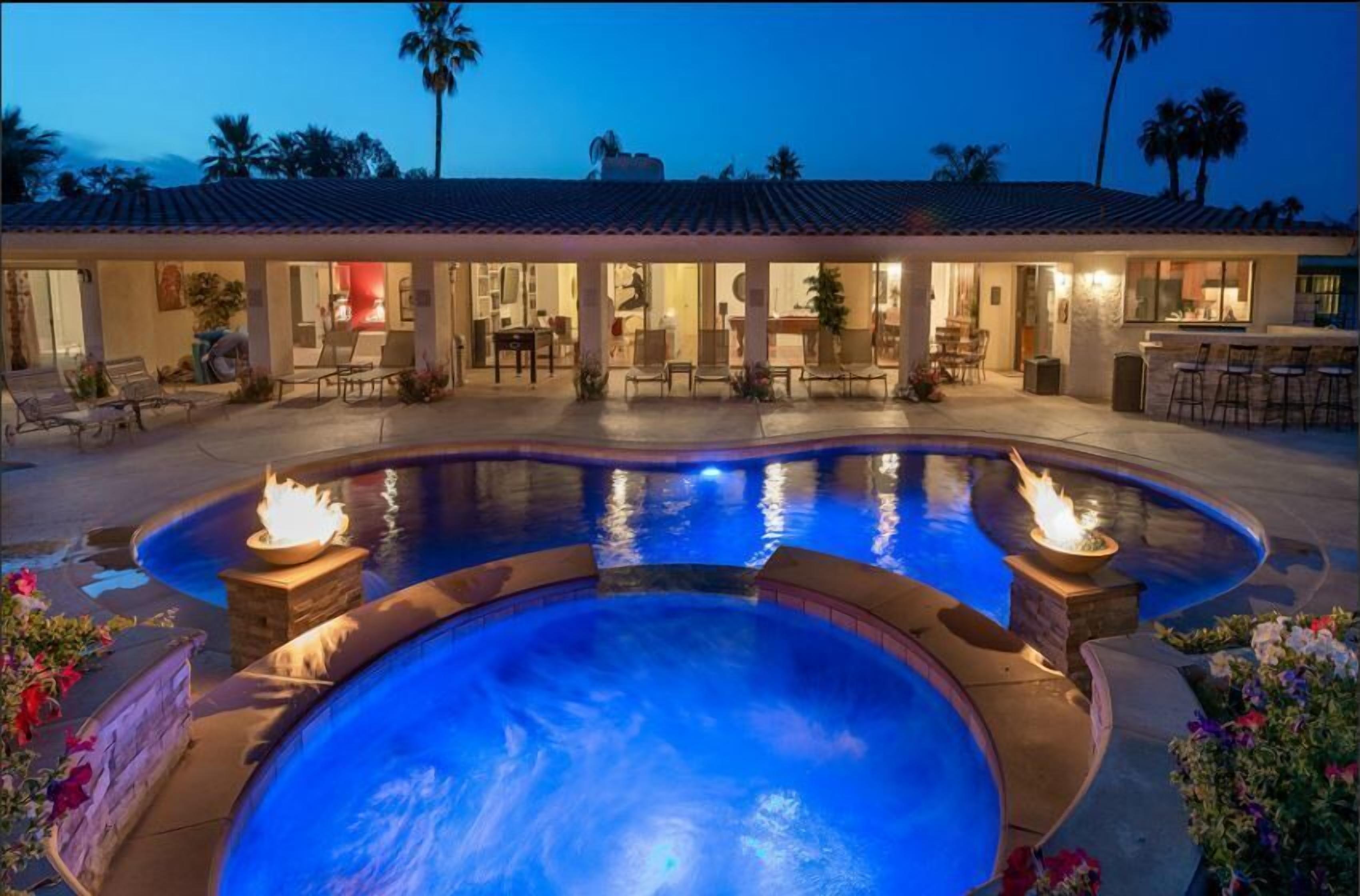 Desert Paradise Vacations - Steps to El Paseo W/ Pool, Spa, Fire Pit, Bbq *Note* This is a Fun House not a Party House. Please be respectful of our neighbors - the City of Palm Desert, Palm Springs, Rancho Mirage and La Quinta ordinances require No Outdoor Music from 10PM-10AM, No overnight parking in the street and a maximum of 2 overnight guests per room (8 for us) and they are strictly enforcing it. Any violations will potentially result in a loss of your full damage deposit plus any City fines. Have a blast but be responsible and respectful! UPDATES!!!!: THE SOFA PICTURED IS NO LONGER AT THE PROPERTY AND HAS BEEN REPLACED WITH A NEWER TAN SOFA. The property is located in the desert. It can be very hot in the desert during the summer. From May to August expect outdoor temperatures from 100-120 degrees and indoor temperatures from 75-80 degrees. The pool water temperature can also exceed 90 degrees and cannot be controlled. The rates during these periods reflect significant discounts due to the hotter temperatures. Recently upgraded with all of the entertainment features you could imagine, this spectacular single level private home in the Shadow Mountain area of south Palm Desert is your Desert Paradise Vacation. (Please note the location noted on the map is approximate and not exact for security purposes - if you go to the location noted you will not find this vacation rental)Highlights:o Steps away from the many luxurious shopping and dining options on El Paseoo Short walk to a round of golf or tennis match at the Shadow Mountain Country Clubo Newer refinished heatable pool with mini pebble finish, state-of-the-art LED colored lighting, 4 stylish streaming deck jets and 2 fire pillarso Newer constructed in ground spa with cascading water fall and resort quality 8 jet configuration w 2 dedicated pumps to ensure just the right amount of pressureo Newer constructed fire pit with fire glass, spacious lawn, and mountain and starlight viewso Newer constructed outdoor BBQ with built-in 36” AOG by Firemagic grill, side burner, sink, cabinet, drawers and surrounding raised countertop with seating for up to 8 o Outdoor dining table seating up to 6, newer commercial grade misting system, and 2 newer large patio heaters for evening diningo Newer Brunswick pool tableo Home Theatre and Outdoor Speakers have been taken out of service because no one can understand how to use them. : ) We have an outdoor bluetooth speaker you can connect to or feel free to bring your own. o Home office with docking station and laser printer/fax/copier/scanner Other Features of this spectactular property include: Expansive and Charming Living and Dining Area with:o 52” HD flat screen TVo Multi room DVR, Blu Ray Player, CD/DVD changer, and Iphone dock. o Programming provided by Spectrum, and includes HD programming, over 300 channels of live TV, over 4,000 On Demand programs, and Music Choice. HBO, Showtime, TMC, Starz, Cinemax, and TWC Sports Pass available upon request for an additional fee. o Newer 8 foot Brunswick pool tableo Wall-to-wall sliding glass doors, vaulted ceilings, 2 ceiling fans, Spanish saltino tile floors and a full view of the beautiful new pool and spao Casual living area where you can chat, enjoy some cocktails or appetizers, or curl up next to the newly upgraded fireglass fireplaceo Charming large bookcase filled with hundreds of fiction and nonfiction books designed to not only enlighten but entertaino Extendable dining table ready to serve 6-8 hungry guests Cozy Kitchen o Wooden floors, 4 burner gas stovetop, refrigerator, dishwasher, microwave, 13” flat screen TVo Breakfast table that seats up to 4 and overlooks the pretty grass side yardo Mini bar Luxurious Master Bedroom and Full Batho California King bed, vaulted ceilings, ceiling fan, huge walk in closeto 40 inch flat screen HD TV, blu ray player, digital cable boxo Bathroom has a mountain view, dual vanities, exquisite wooden cabinets, and a romantic sunken whirlpool tub w 8 jetso Sliding glass doors open directly to the spectacular outdoor entertainment center 3 Additional Classy Guest Bedrooms and 2 Full Bathso Second bedroom featuring two extra long twin beds that can be connected to create a King bed, and private bathroom with combination tub/showero Third bedroom features a Queen bed, large walk in closet and Jack-and-Jill bathroom shared with the fourth bedroom and includes a combination tub/shower o Fourth bedroom is a combination den/home office/bedroom and includes a Queen-size bed o All guest rooms include a flat screen HD TV (32”-36”), DVD player, digital cable box, landline phone, and ceiling fan Den/Home Officeo Integrated into one of the guest bedrooms and includes a wooden desk, laptop USB docking station, dual monitors, newer Dell all-in one color laser printer w copy/fax/scan capabilities and print speeds up to 24PPM Sweeping Driveway and 2 Car Garage o Stylish epoxy flooring, automatic opener, and view of grass yard and fruit trees Additional Features:o Full size washing machine/dryer o Poker table cover, assortment of board and card games, croquet and horse shoe seto Baby friendly with locking cabinets upon request and a removable 5 foot tall self-closing gate which can be added around the pool and spao Standard baby crib, optional side bed rails, and step stoolso A removable assist rail is available for the entrance into the poolo Permanently fixed assist rails are installed in the second bedroom toilet and tub and master bedroom toilet.Pet Notice: Unfortunately no cats are allowed due to owner allergies and challenges with scratching things. Also due to insurance restrictions we cannot accept the following dog breeds: Pure or mixed breed or pure or mixed type of dogs including (1) any pit bull type of dog (which may be known as American Pit Bull Terrier, American Staffordshire Terrier, Staffordshire Bull Terrier, Bull Terrier, Miniature Bull Terrier, American Bulldog, Dogo Argentino, or Alpha Blue Bulldog; (