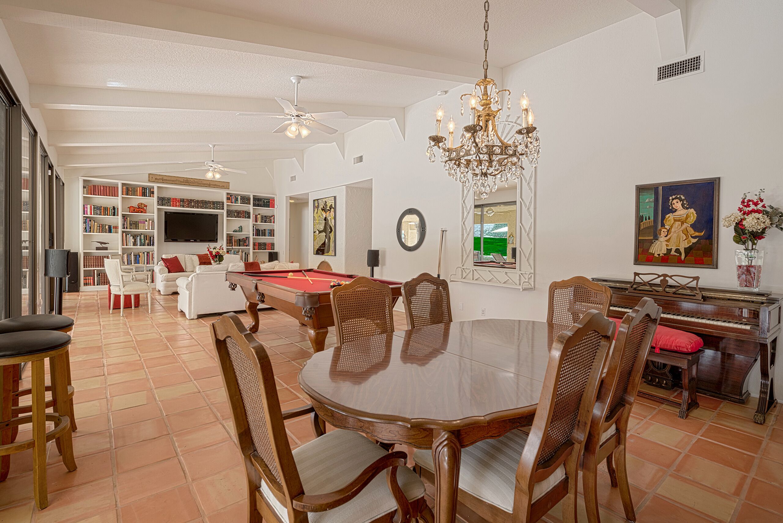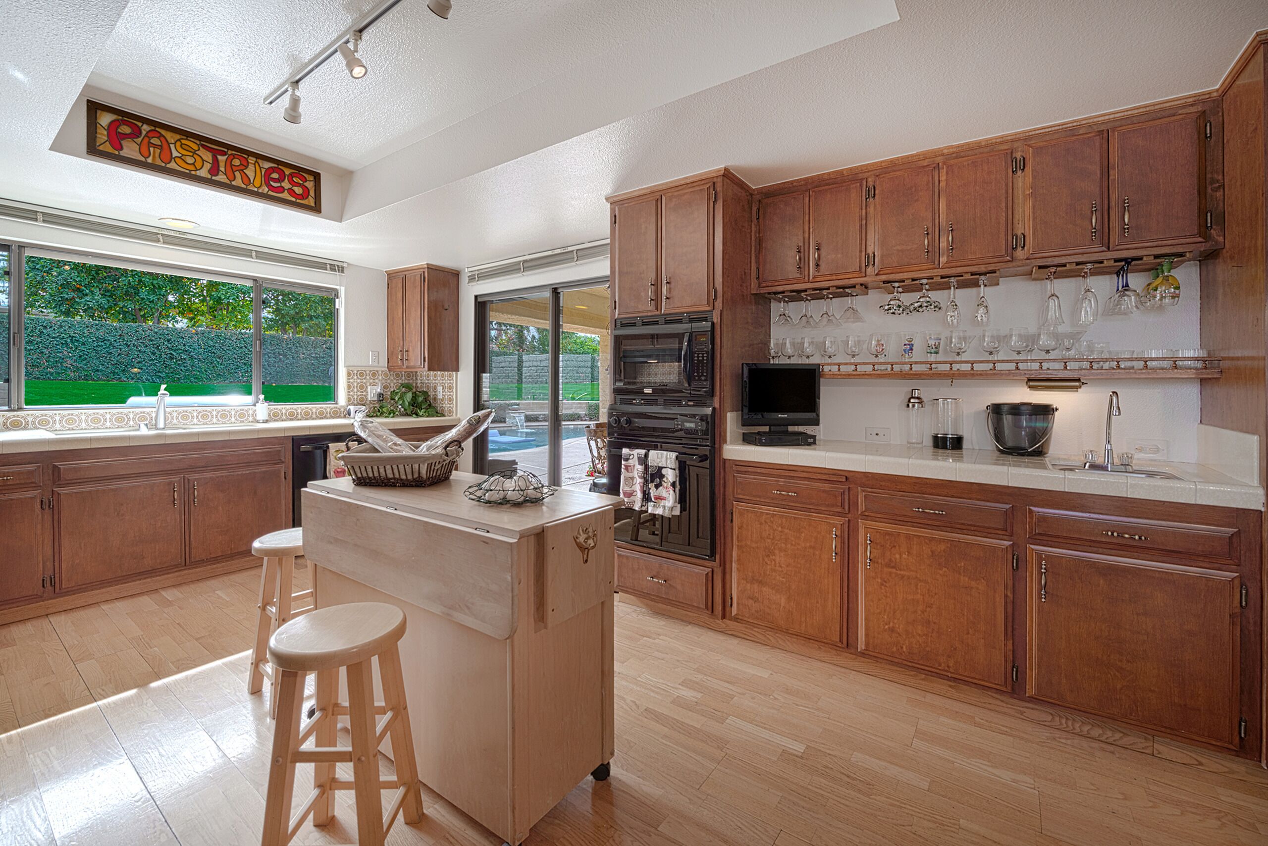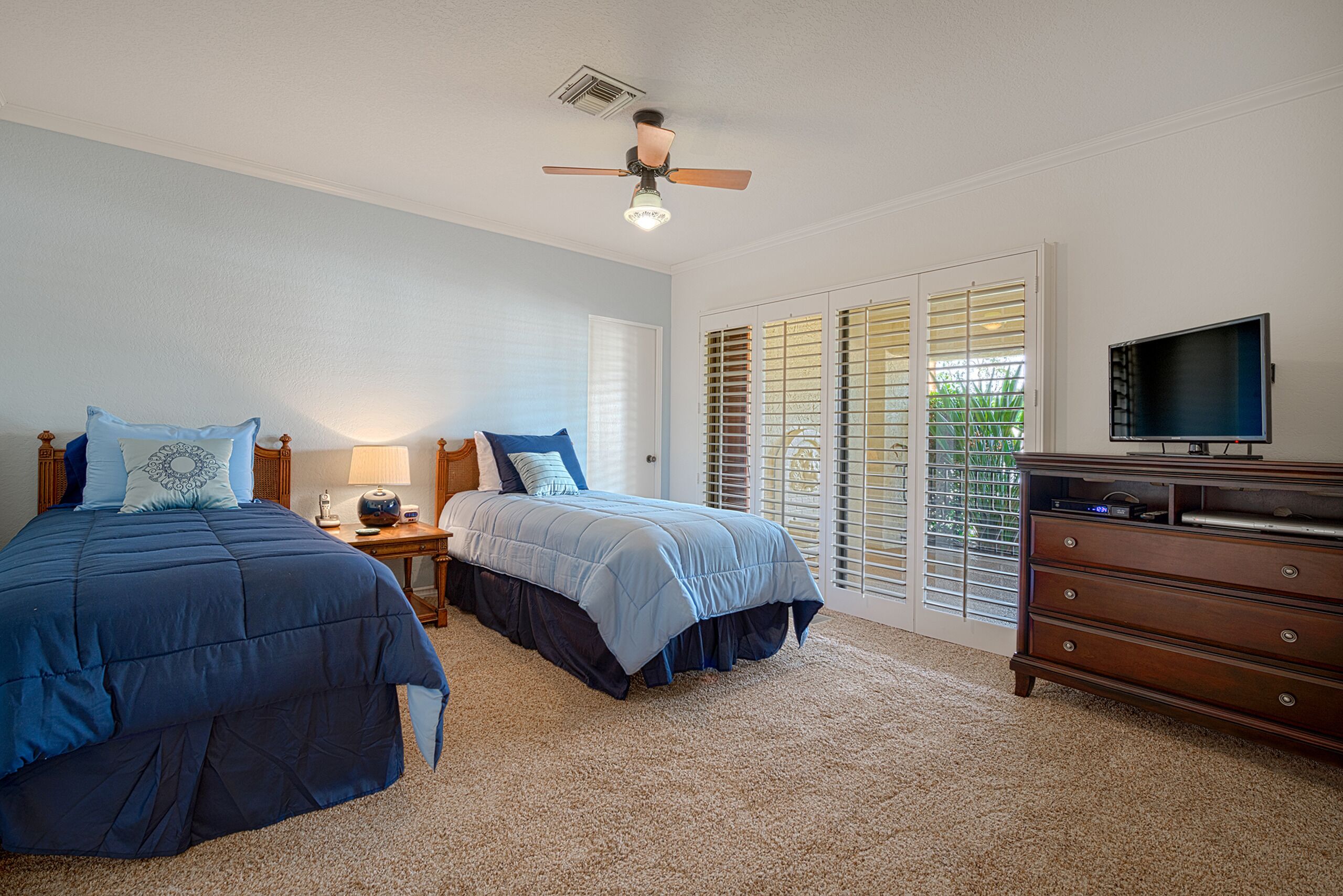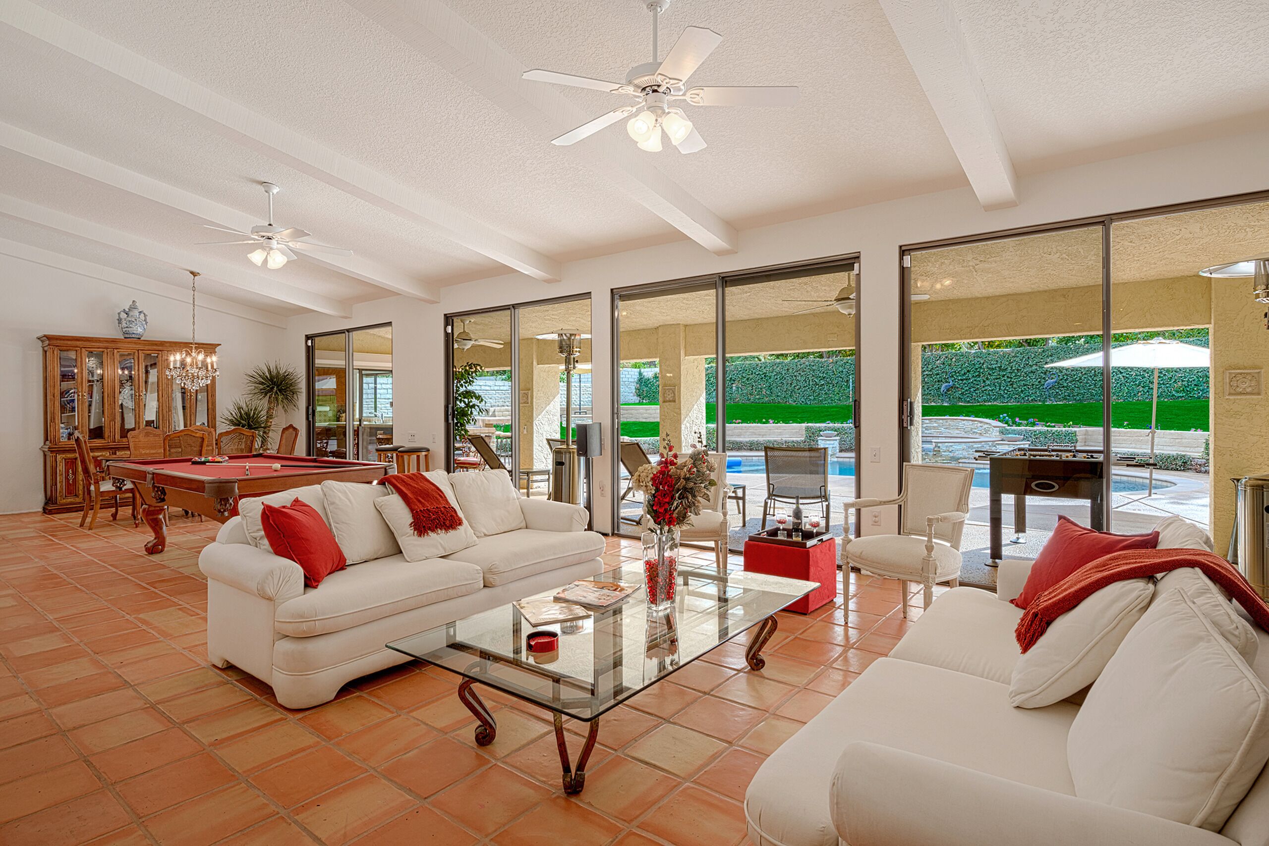 Desert Paradise Vacations - Steps to El Paseo W/ Pool, Spa, Fire Pit, Bbq *Note* This is a Fun House not a Party House. Please be respectful of our neighbors - the City of Palm Desert, Palm Springs, Rancho Mirage and La Quinta ordinances require No Outdoor Music from 10PM-10AM, No overnight parking in the street and a maximum of 2 overnight guests per room (8 for us) and they are strictly enforcing it. Any violations will potentially result in a loss of your full damage deposit plus any City fines. Have a blast but be responsible and respectful! UPDATES!!!!: THE SOFA PICTURED IS NO LONGER AT THE PROPERTY AND HAS BEEN REPLACED WITH A NEWER TAN SOFA. The property is located in the desert. It can be very hot in the desert during the summer. From May to August expect outdoor temperatures from 100-120 degrees and indoor temperatures from 75-80 degrees. The pool water temperature can also exceed 90 degrees and cannot be controlled. The rates during these periods reflect significant discounts due to the hotter temperatures. Recently upgraded with all of the entertainment features you could imagine, this spectacular single level private home in the Shadow Mountain area of south Palm Desert is your Desert Paradise Vacation. (Please note the location noted on the map is approximate and not exact for security purposes - if you go to the location noted you will not find this vacation rental)Highlights:o Steps away from the many luxurious shopping and dining options on El Paseoo Short walk to a round of golf or tennis match at the Shadow Mountain Country Clubo Newer refinished heatable pool with mini pebble finish, state-of-the-art LED colored lighting, 4 stylish streaming deck jets and 2 fire pillarso Newer constructed in ground spa with cascading water fall and resort quality 8 jet configuration w 2 dedicated pumps to ensure just the right amount of pressureo Newer constructed fire pit with fire glass, spacious lawn, and mountain and starlight viewso Newer constructed outdoor BBQ with built-in 36” AOG by Firemagic grill, side burner, sink, cabinet, drawers and surrounding raised countertop with seating for up to 8 o Outdoor dining table seating up to 6, newer commercial grade misting system, and 2 newer large patio heaters for evening diningo Newer Brunswick pool tableo Home Theatre and Outdoor Speakers have been taken out of service because no one can understand how to use them. : ) We have an outdoor bluetooth speaker you can connect to or feel free to bring your own. o Home office with docking station and laser printer/fax/copier/scanner Other Features of this spectactular property include: Expansive and Charming Living and Dining Area with:o 52” HD flat screen TVo Multi room DVR, Blu Ray Player, CD/DVD changer, and Iphone dock. o Programming provided by Spectrum, and includes HD programming, over 300 channels of live TV, over 4,000 On Demand programs, and Music Choice. HBO, Showtime, TMC, Starz, Cinemax, and TWC Sports Pass available upon request for an additional fee. o Newer 8 foot Brunswick pool tableo Wall-to-wall sliding glass doors, vaulted ceilings, 2 ceiling fans, Spanish saltino tile floors and a full view of the beautiful new pool and spao Casual living area where you can chat, enjoy some cocktails or appetizers, or curl up next to the newly upgraded fireglass fireplaceo Charming large bookcase filled with hundreds of fiction and nonfiction books designed to not only enlighten but entertaino Extendable dining table ready to serve 6-8 hungry guests Cozy Kitchen o Wooden floors, 4 burner gas stovetop, refrigerator, dishwasher, microwave, 13” flat screen TVo Breakfast table that seats up to 4 and overlooks the pretty grass side yardo Mini bar Luxurious Master Bedroom and Full Batho California King bed, vaulted ceilings, ceiling fan, huge walk in closeto 40 inch flat screen HD TV, blu ray player, digital cable boxo Bathroom has a mountain view, dual vanities, exquisite wooden cabinets, and a romantic sunken whirlpool tub w 8 jetso Sliding glass doors open directly to the spectacular outdoor entertainment center 3 Additional Classy Guest Bedrooms and 2 Full Bathso Second bedroom featuring two extra long twin beds that can be connected to create a King bed, and private bathroom with combination tub/showero Third bedroom features a Queen bed, large walk in closet and Jack-and-Jill bathroom shared with the fourth bedroom and includes a combination tub/shower o Fourth bedroom is a combination den/home office/bedroom and includes a Queen-size bed o All guest rooms include a flat screen HD TV (32”-36”), DVD player, digital cable box, landline phone, and ceiling fan Den/Home Officeo Integrated into one of the guest bedrooms and includes a wooden desk, laptop USB docking station, dual monitors, newer Dell all-in one color laser printer w copy/fax/scan capabilities and print speeds up to 24PPM Sweeping Driveway and 2 Car Garage o Stylish epoxy flooring, automatic opener, and view of grass yard and fruit trees Additional Features:o Full size washing machine/dryer o Poker table cover, assortment of board and card games, croquet and horse shoe seto Baby friendly with locking cabinets upon request and a removable 5 foot tall self-closing gate which can be added around the pool and spao Standard baby crib, optional side bed rails, and step stoolso A removable assist rail is available for the entrance into the poolo Permanently fixed assist rails are installed in the second bedroom toilet and tub and master bedroom toilet.Pet Notice: Unfortunately no cats are allowed due to owner allergies and challenges with scratching things. Also due to insurance restrictions we cannot accept the following dog breeds: Pure or mixed breed or pure or mixed type of dogs including (1) any pit bull type of dog (which may be known as American Pit Bull Terrier, American Staffordshire Terrier, Staffordshire Bull Terrier, Bull Terrier, Miniature Bull Terrier, American Bulldog, Dogo Argentino, or Alpha Blue Bulldog; (