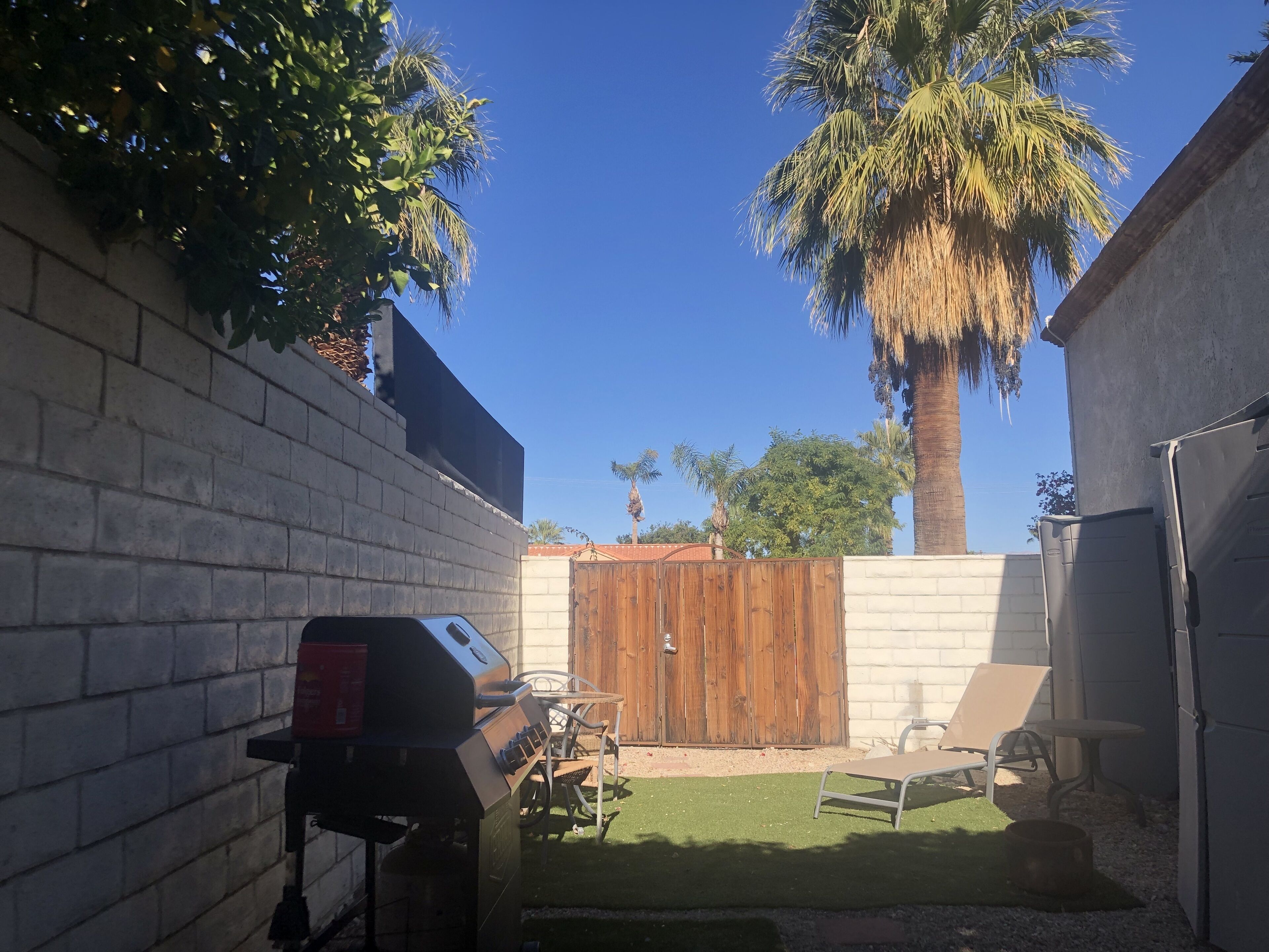 Charming Cottage Near El Paseo in Palm Desert With Two Courtyards Lovely detached one-bed, one-bath casita with kitchenette and washer/dryer. Quiet & Private with private front and back yards. Enter through the gate into the walled front courtyard with colorful flowers and hummingbirds. Cable TV. WiFi. Washer/dryer. 10' ceilings. Pet-friendly (max.1 dog under 20 pounds). Very close to world famous El Paseo shopping district and The Living Desert zoo. Hiking close by as well. Great central location.
