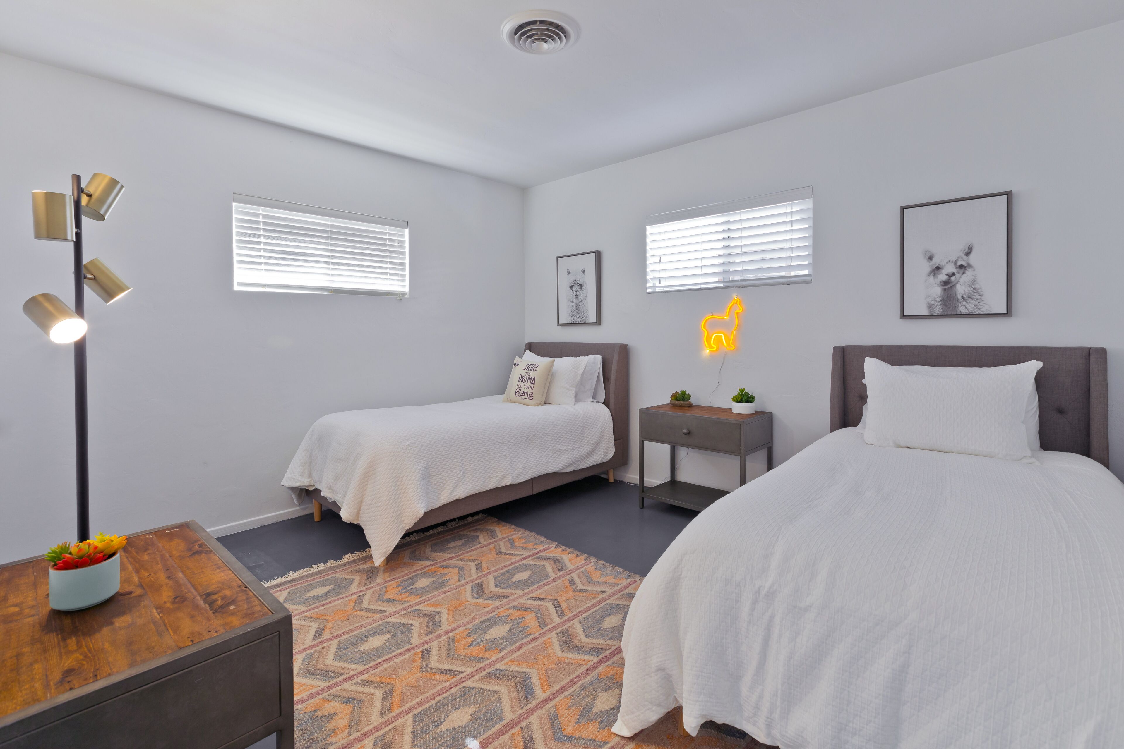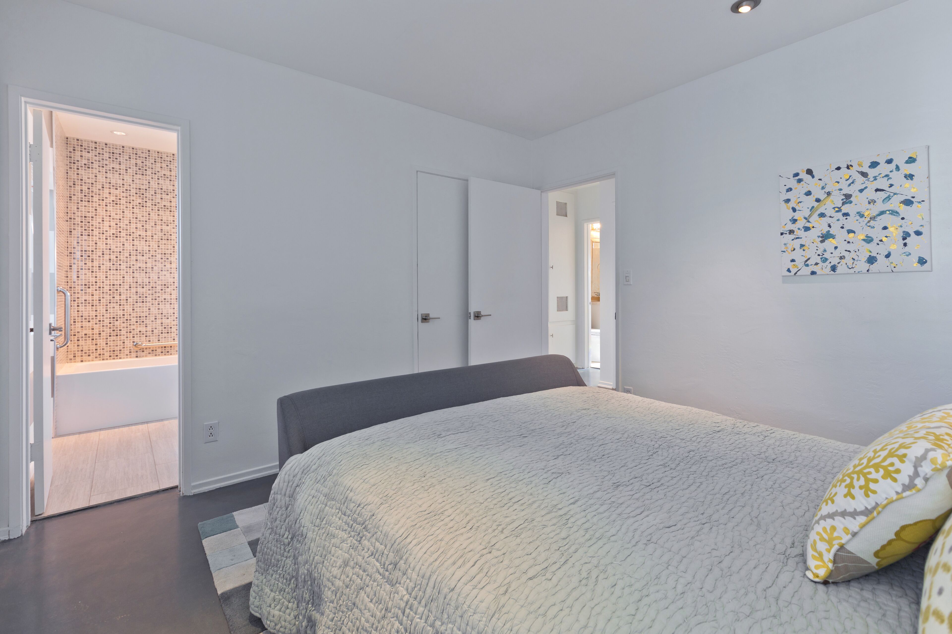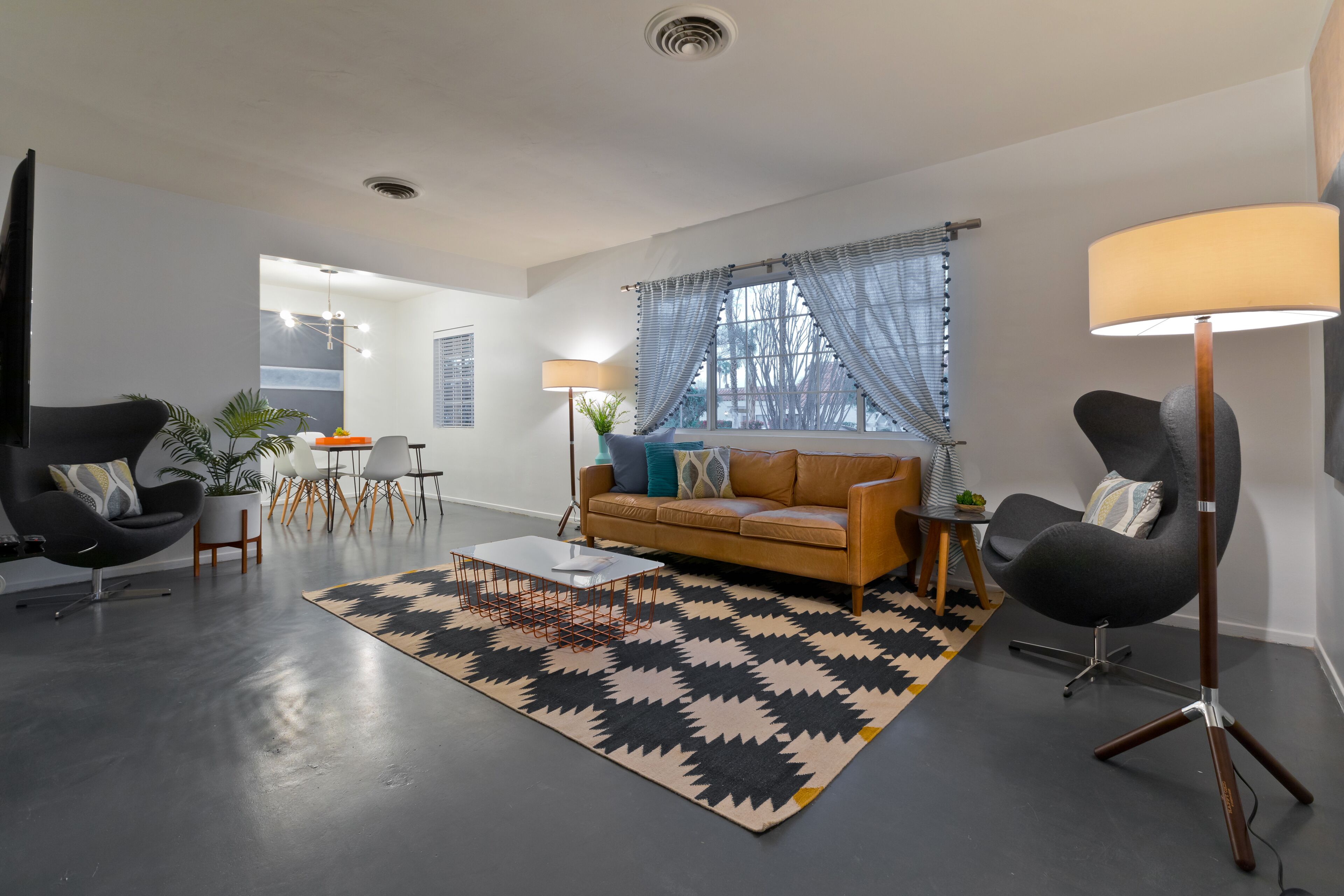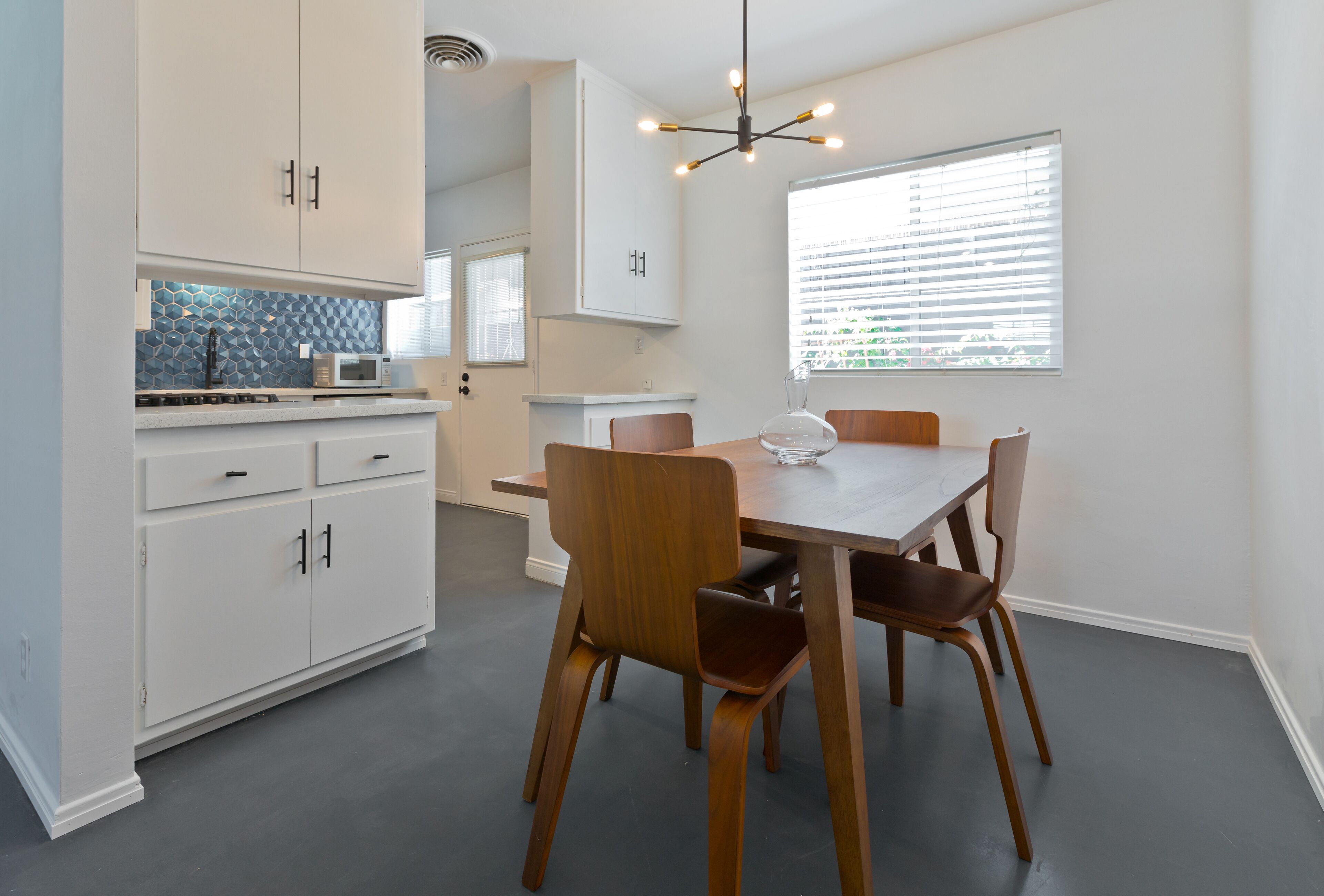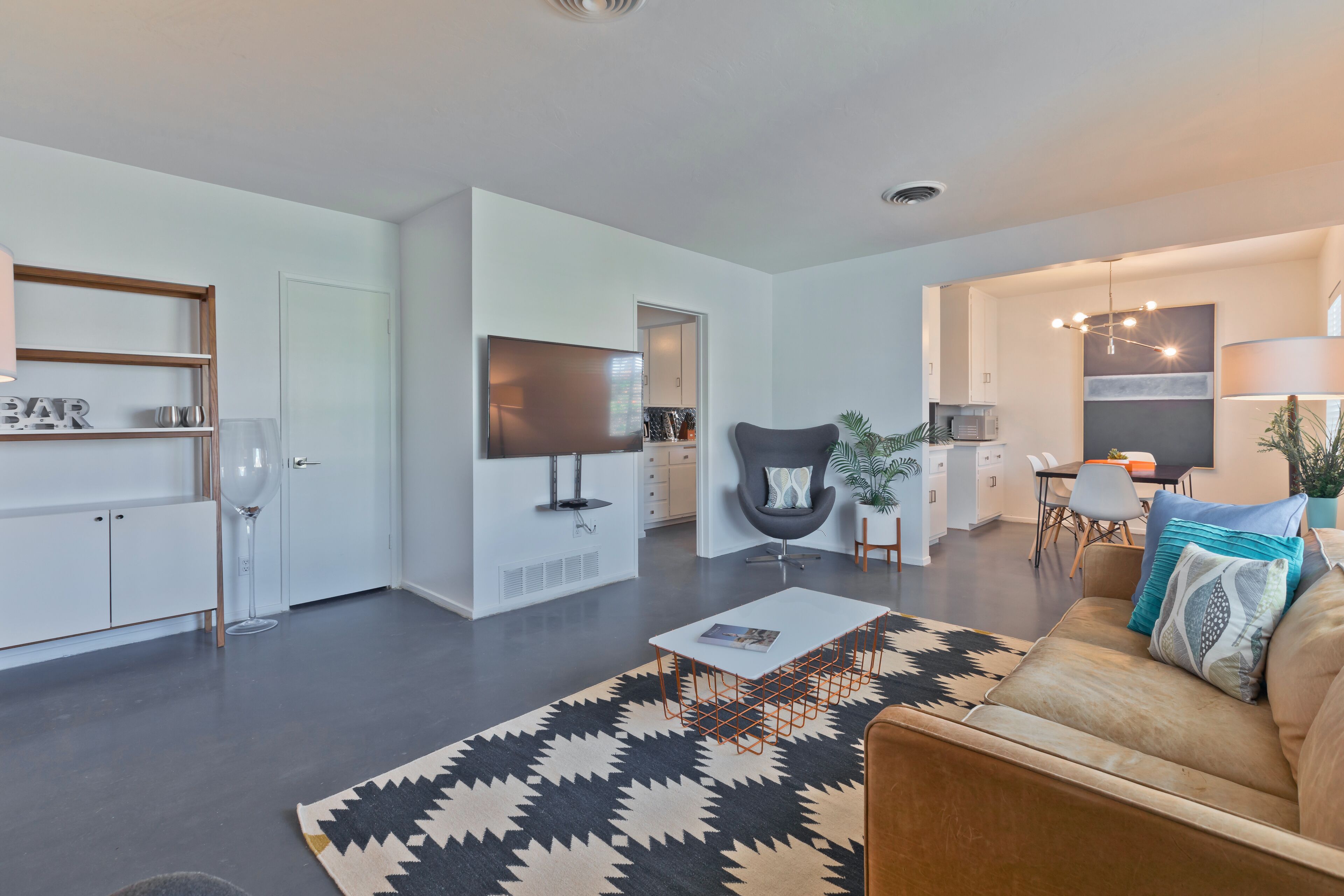 Luxury Private Resort - 1 Block to El Paseo! Sleeps 12! Love boutique hotels, but hate what happens once they're discovered? Here's the ideal hideaway for you. Designed for large group stays, we have three completely new, bungalow style units (6 bedrooms/6 baths) that offer a fun, Cali boho style. Three separate casitas within the walled grounds feature a large pool, elegant cabanas, Bocce Ball court, Hot Tub, Large BBQ, Pool table room, and more to make your stay unforgettable. We are just ONE BLOCK from El Paseo, with tons of shopping and great restaurants at your doorstep! Each casita features it's own living room, dining room, kitchen, bathrooms and bedrooms and you'll have the entire resort to yourselves! Each rental includes the use of the entire resort + house bikes so that you can ride around Palm Desert in style! Each casita is appointed with high end luxury items, including west elm furnishings, Tahari bedding, Restoration Hardware sheets, Casper & Tempurpedic mattresses, robes in each bathroom, pool towels, high end appliances, unique one-of-a-kind artwork, brand new bathrooms (all bathrooms were remodeled in 2018!), and so much more. The entire property was remodeled in 2018 and provides an incredible stay for a group who wants to relax in their own private resort just one block away from everything Palm Desert has to offer! Also just 15 minutes to Palm Springs! License #: BLIC2018-0457 Casita layout (7 beds total) Casita 1 - Master = 1 King Bed w/ Renovated bathroom attached, Guest Room = 1 Queen Bed w/ renovated bathroom in the hall. Full Renovated kitchen w/ Fridge, dishwasher, Silestone countertops, gas range and more with beautiful dining room & Large living room attached. Open layout throughout! Casita 2: Master - 1 Queen Bed w/ Renovated bathroom attached, Guest Room = 2 Twins w/ renovated bathroom in the hall. Full Renovated kitchen w/ Fridge, dishwasher, Silestone countertops, gas range and more with beautiful dining room and a large living room attached. Open layout throughout! Casita 3: Master - 1 Queen Bed w/ Renovated bathroom attached, Guest Room = 1 King Bed w/ renovated bathroom in the hall. Full Renovated kitchen w/ Fridge, dishwasher, Silestone countertops, gas range and more with beautiful dining room and a large living room attached. Open layout throughout! Game Room complete with bar, big screen TV and pool table!. Full Renovated kitchen w/ Fridge, gas range and more.