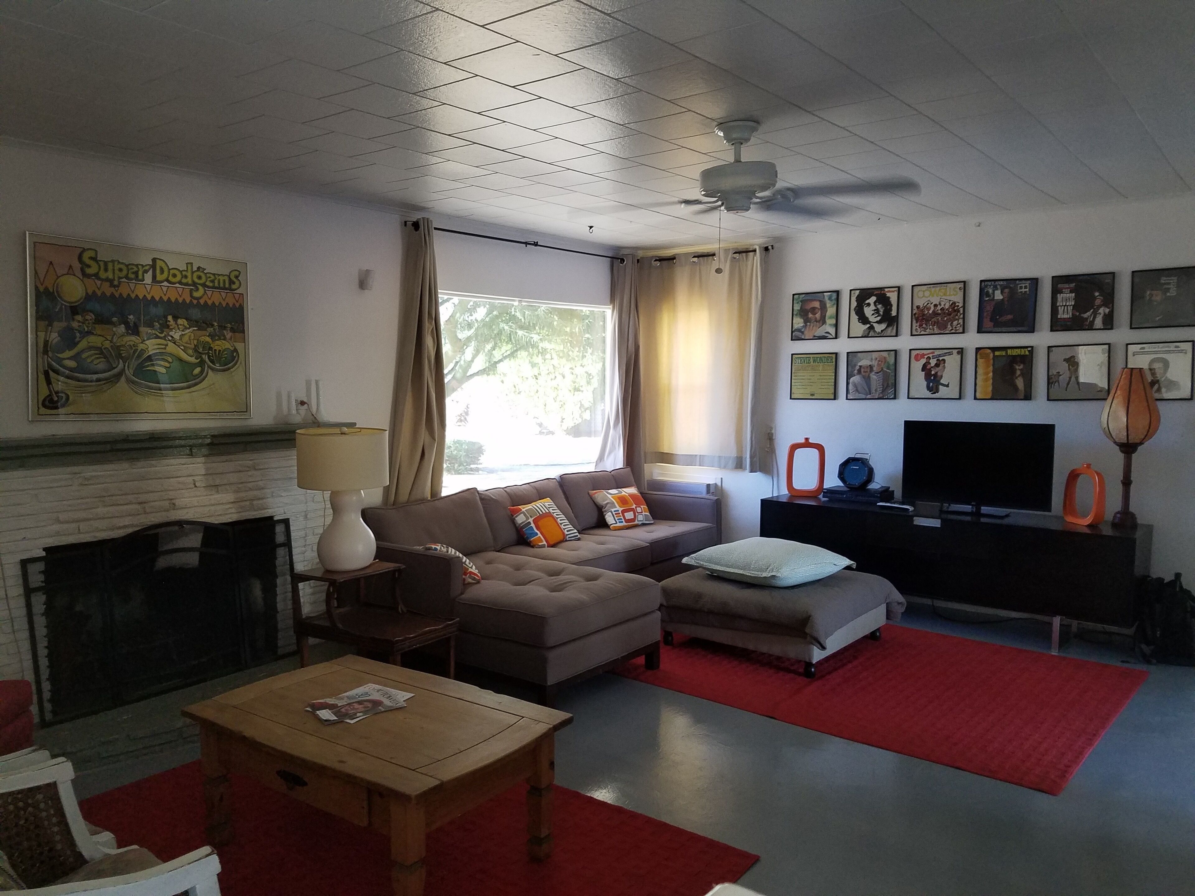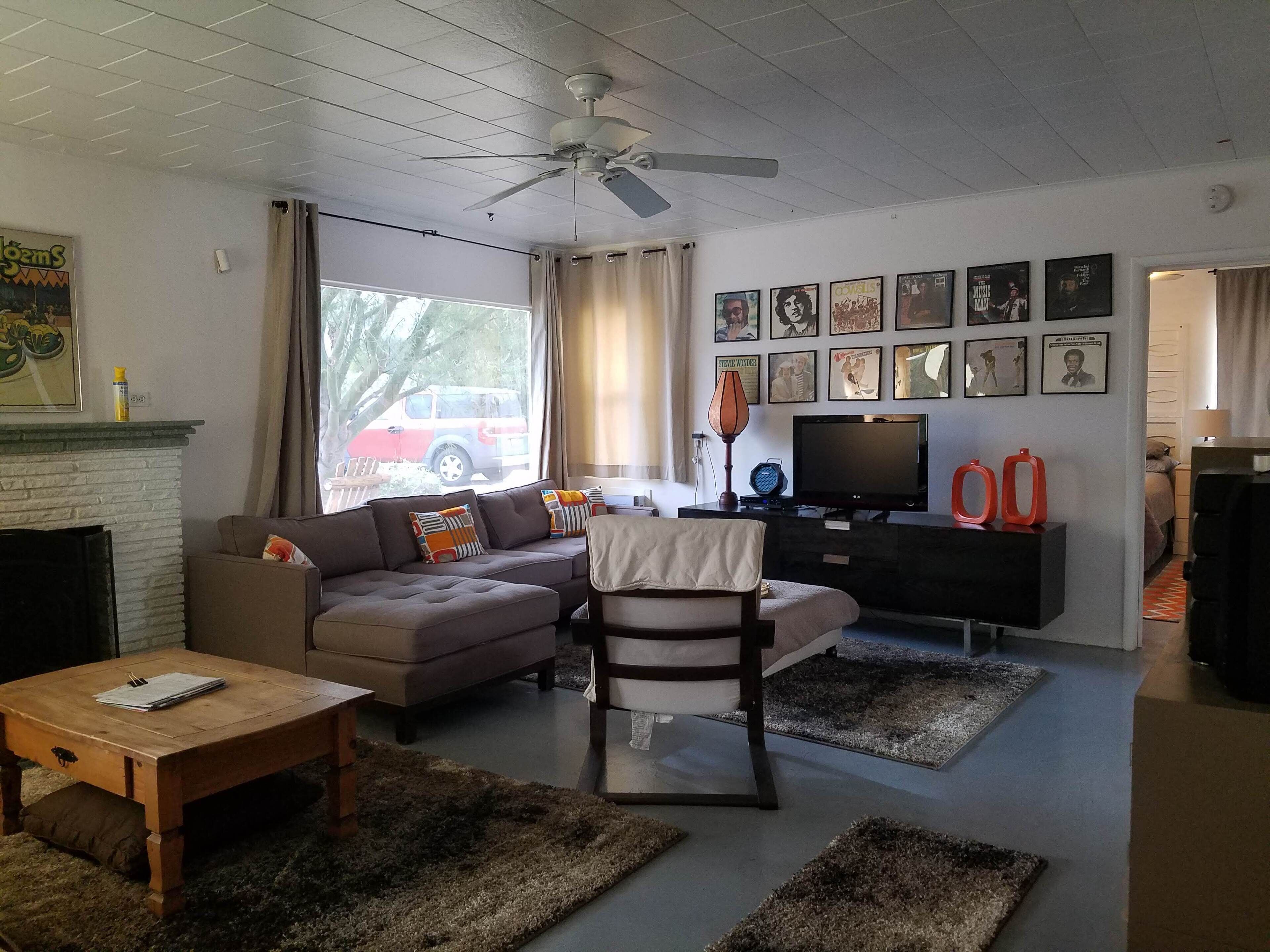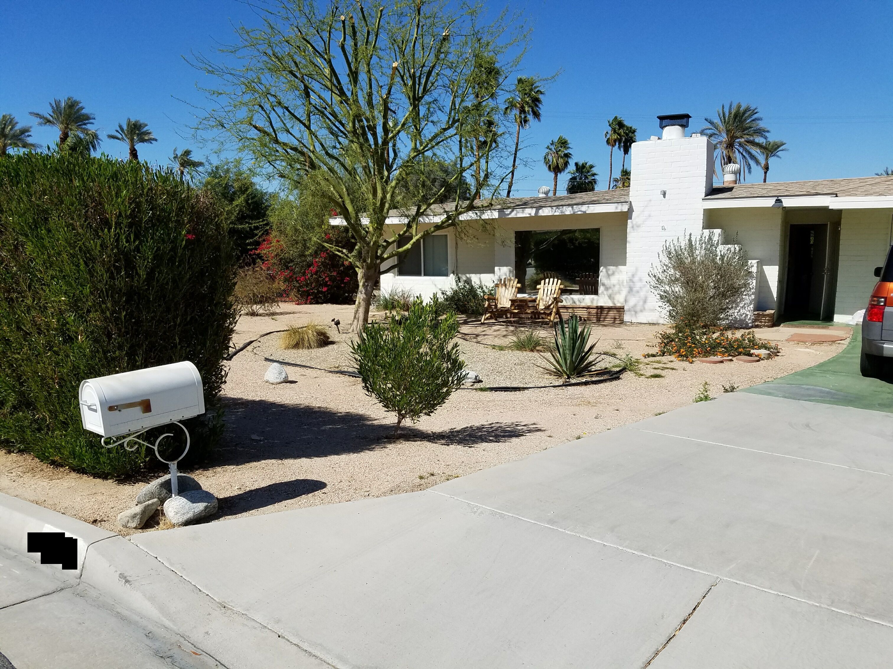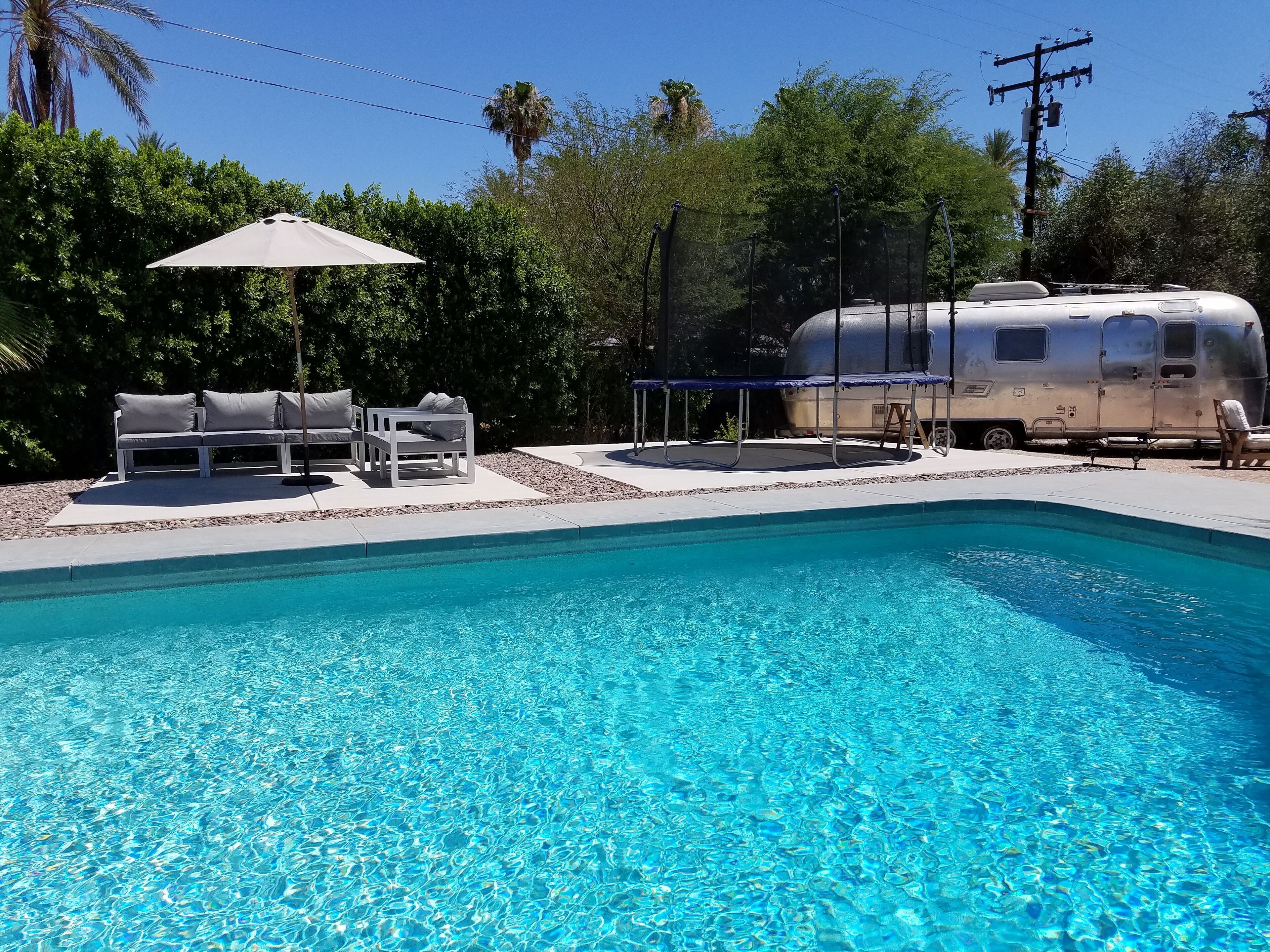 Palm Desert Vacation House - blocks from El Paseo Great house in Palm Desert - between Palm Springs & La QuintaA 1949 Trousdale OriginalWalking distance from El Paseo (The Rodeo Drive of the desert), College of the Desert (where there's a great swap meet every weekend), McCallum Theater, Westfield Shopping Towne and MORE! 360 mountain view. 5 minute drive to The Living Desert and great hiking. 10 minutes to the Agua Caliente casino.3 bed, 2 bath, living room, kitchen, laundry room, dining room, big front yard, big back yard, pool (heating optional), hot tub, awesome patio with BBQ.Broadband WiFi Internet.Roku on all TVs.Airstream Pool House!!! It is very charming and comfortable. Front and back yard were recently redone, and the patio and pool are great! Due to new Palm Desert rules, the house is only available for 28 day stays or longer.Ask about discounts for longer stays. there is a clean up fee, usually $100 per stay, based on what shape you leave it in, it could be more (95% of all visitors only pay $100 for the cleaning). Contact me for more pictures.ASK ABOUT OUR OFF PEAK DEALS (2 month or longer June - October)Take advantage of summer deals.