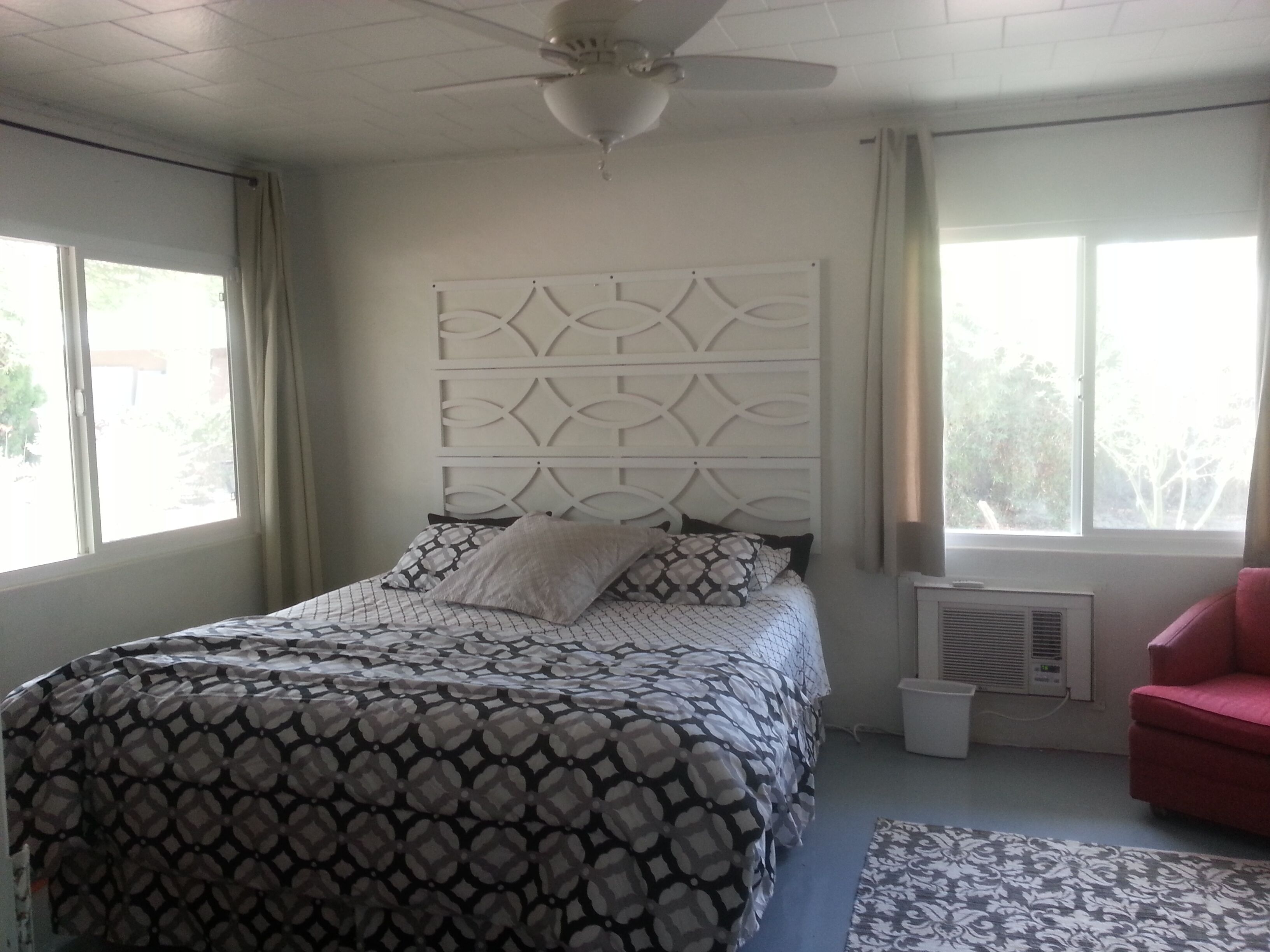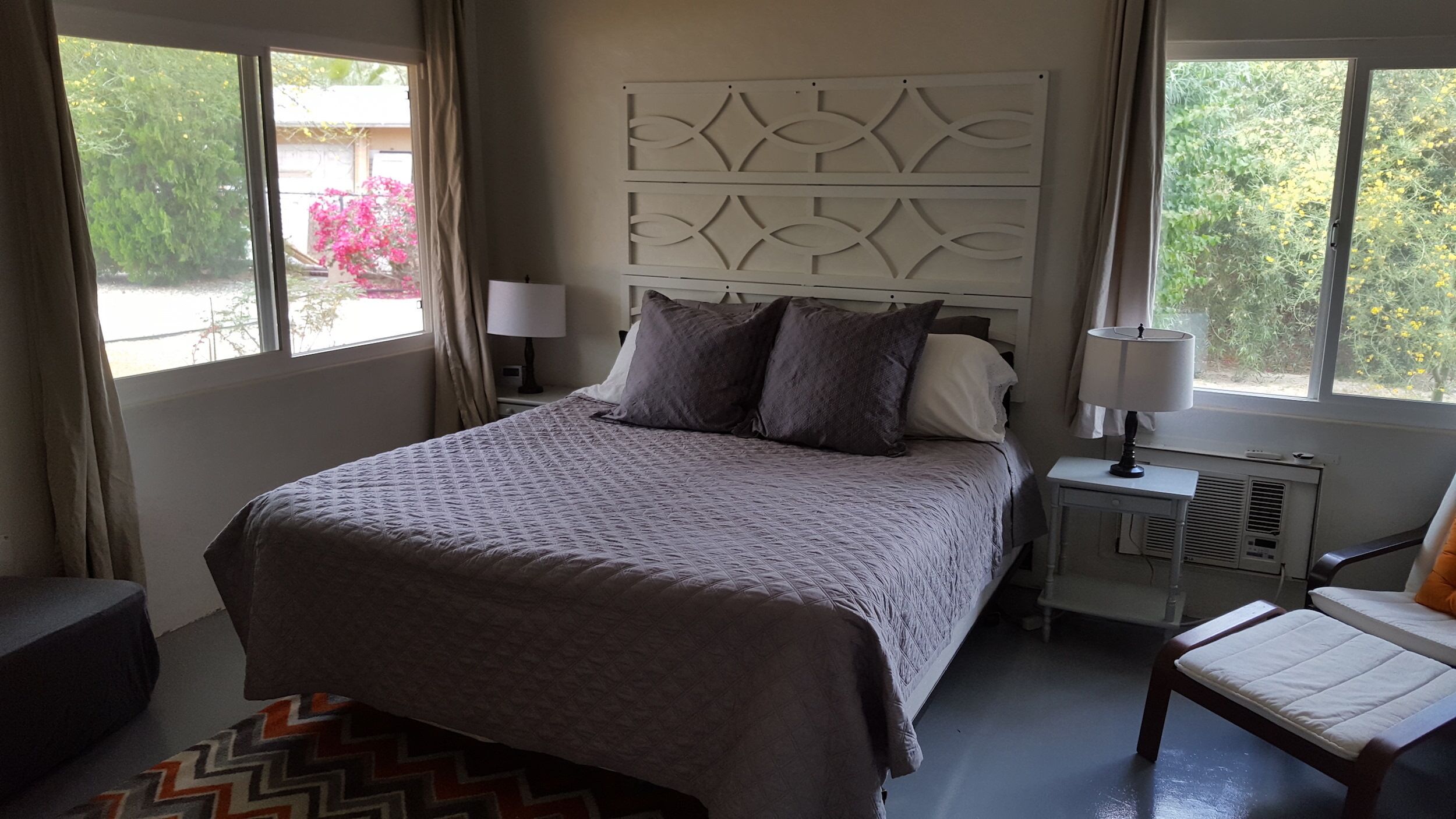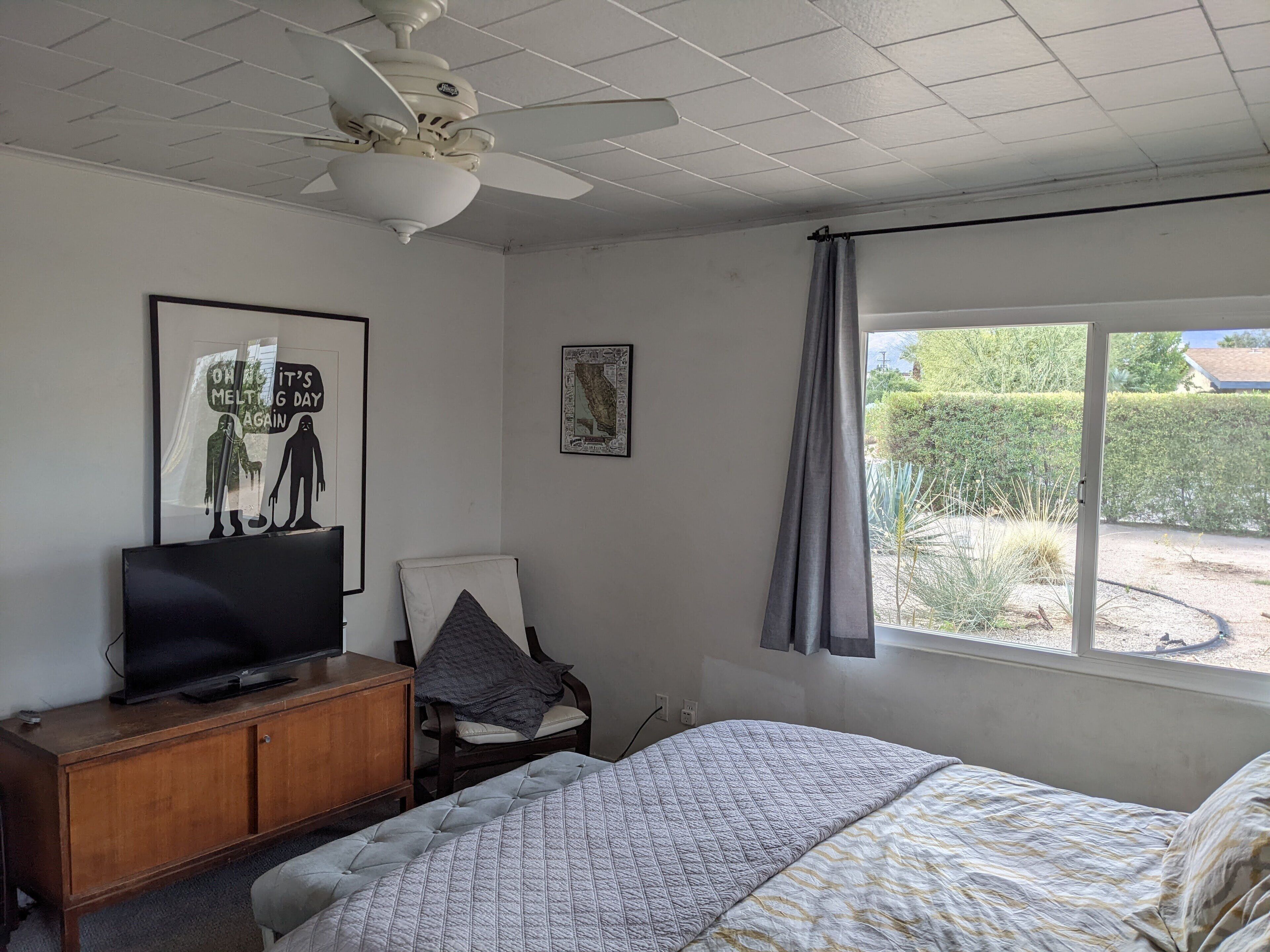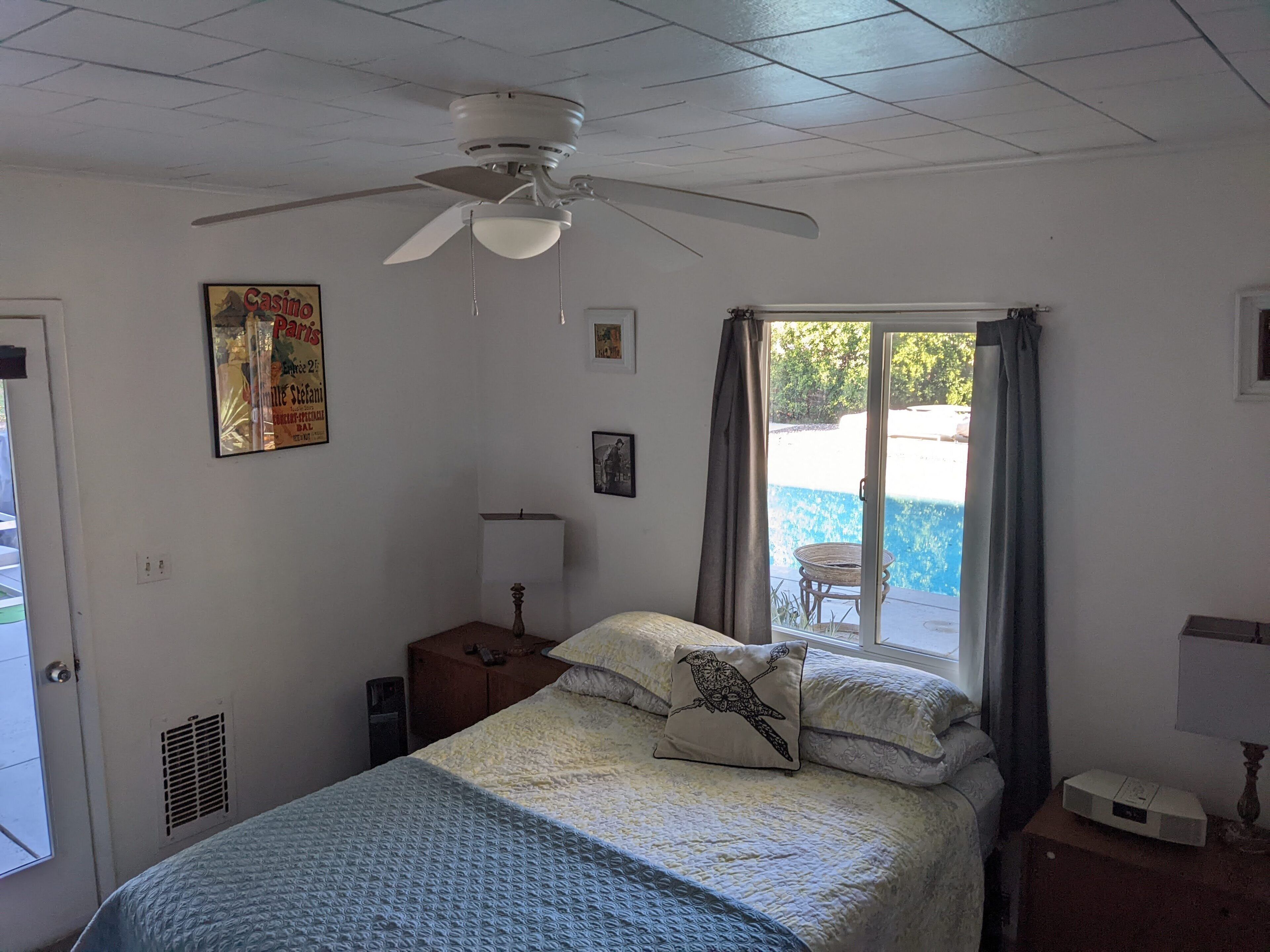 Palm Desert Vacation House - blocks from El Paseo Great house in Palm Desert - between Palm Springs & La QuintaA 1949 Trousdale OriginalWalking distance from El Paseo (The Rodeo Drive of the desert), College of the Desert (where there's a great swap meet every weekend), McCallum Theater, Westfield Shopping Towne and MORE! 360 mountain view. 5 minute drive to The Living Desert and great hiking. 10 minutes to the Agua Caliente casino.3 bed, 2 bath, living room, kitchen, laundry room, dining room, big front yard, big back yard, pool (heating optional), hot tub, awesome patio with BBQ.Broadband WiFi Internet.Roku on all TVs.Airstream Pool House!!! It is very charming and comfortable. Front and back yard were recently redone, and the patio and pool are great! Due to new Palm Desert rules, the house is only available for 28 day stays or longer.Ask about discounts for longer stays. there is a clean up fee, usually $100 per stay, based on what shape you leave it in, it could be more (95% of all visitors only pay $100 for the cleaning). Contact me for more pictures.ASK ABOUT OUR OFF PEAK DEALS (2 month or longer June - October)Take advantage of summer deals.