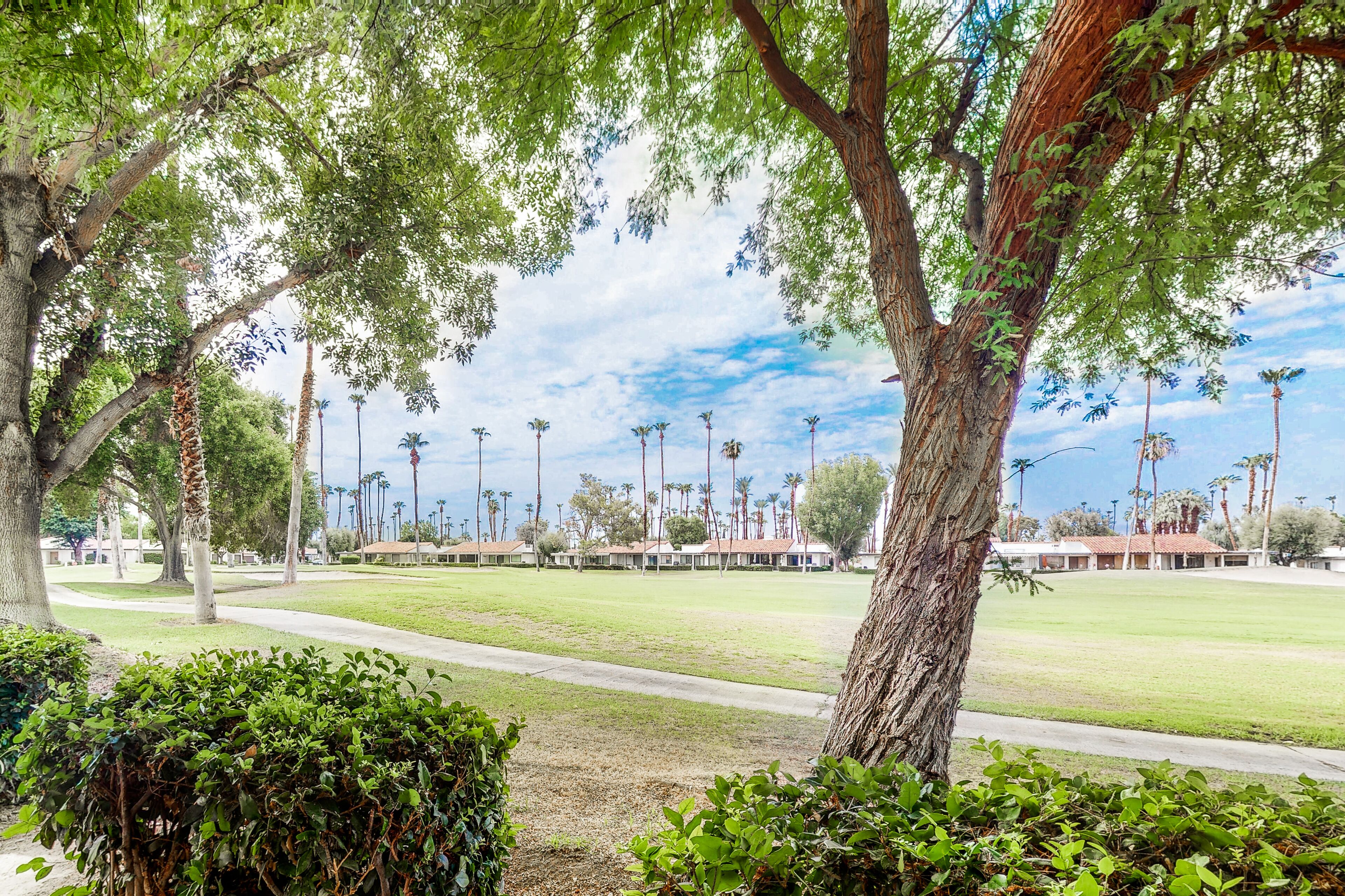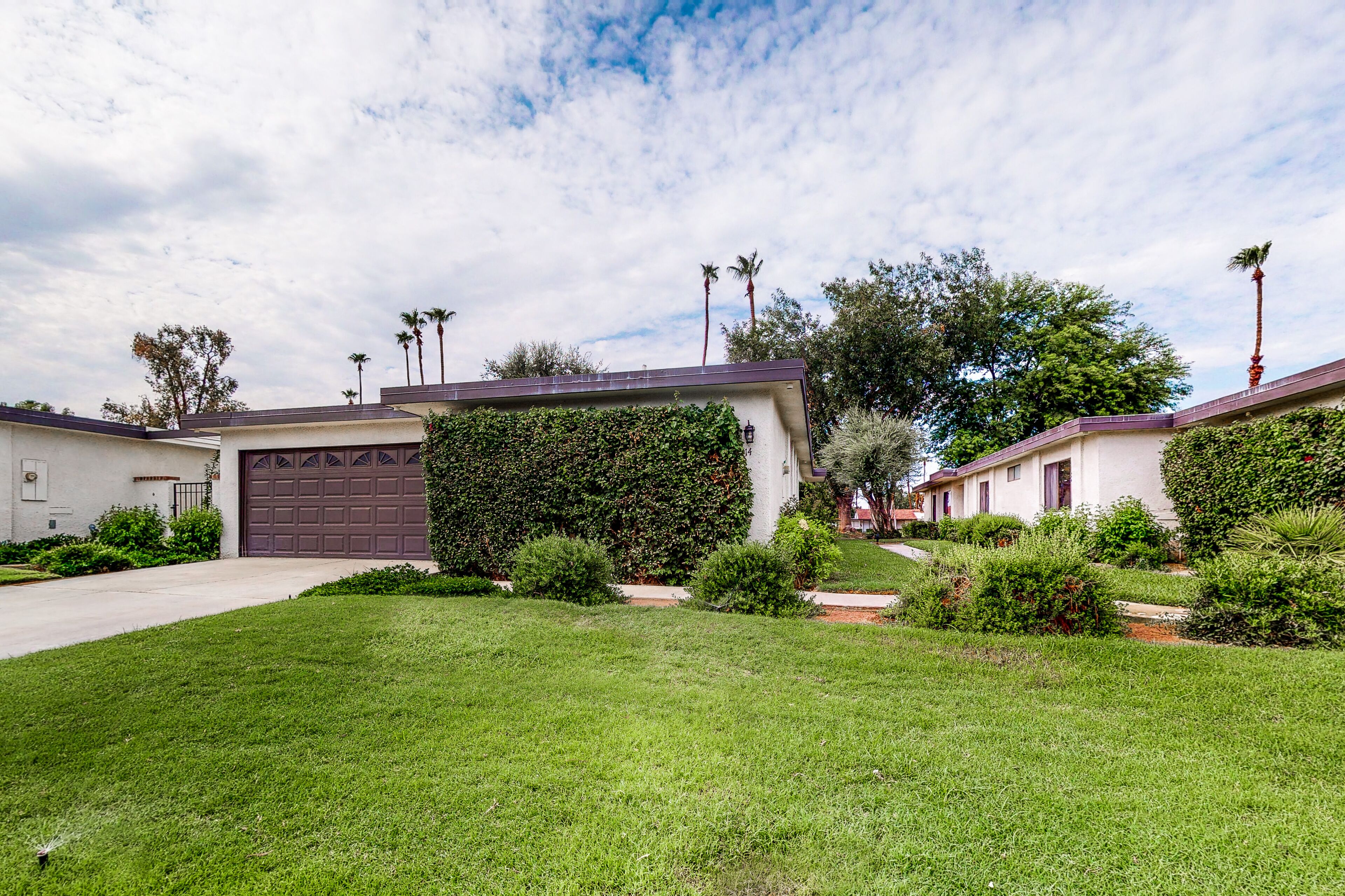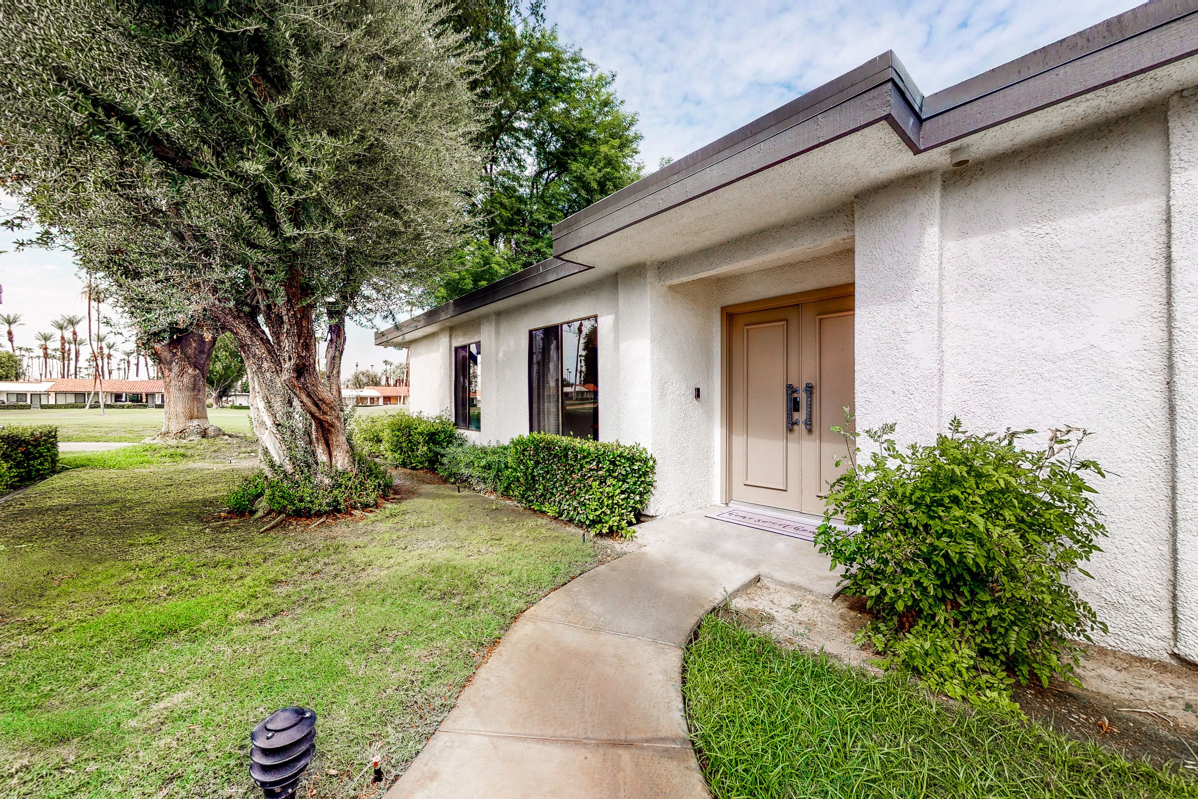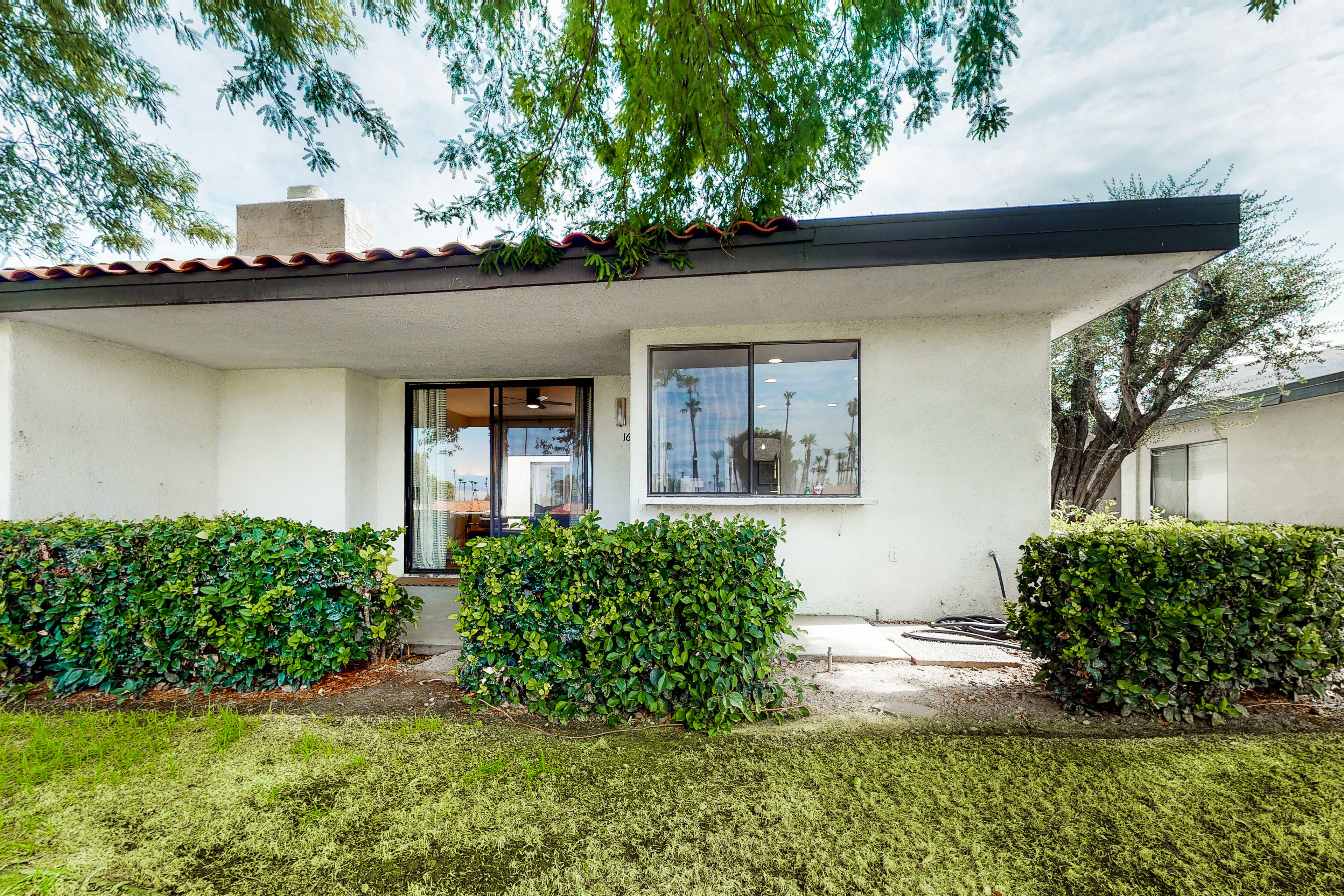 Golf Course Front Home with Shared Pool, Fast WiFi, Central AC, and Washer/Dryer Modern Desert RetreatOur calendar is updated in real-time & our nightly rates are accurately displayed. Simply enter your desired dates and click 'Book Now!'Enjoy peaceful views and modern luxury at this midcentury-inspired home right on the edge of Rancho Las Palmas Golf Course. Clean lines and comfortable spots to relax make this home a fabulous retreat after a day of golf or exploration. All ground floor, no one will have to struggle with stairs in order to wind down here. Let a fire blaze in the gas fireplace for warmth or ambiance. The full kitchen, tastefully decorated in a slate grey color, features full-sized appliances and cooking tools to help you put together delicious vacation meals. Central air conditioning will help everyone stay comfortable inside. Guests of the main bedroom can enjoy access to an en suite bathroom, but each bedroom features a ceiling fan for extra sleeping comfort. In addition to everything at this home, guests can also enjoy access to a shared outdoor pool during their stay. Of course, the crisp desert air always comes free.Things to KnowFree high-speed WiFi and cableFull kitchen with a dishwasherGated entranceGuests must travel by car to reach this condoNetflix streaming is available with guest accounts*There is a doorbell surveillance camera at the front doorParking notes: There is free parking available for 2 vehicles.Security camera details: There is a doorbell camera at the front door.Damage waiver: The total cost of your reservation for this Property includes a nightly damage waiver fee, plus tax if applicable (the “Damage Waiver”). (A discount may be applied for stays of 28 nights or longer, if permitted.) The Damage Waiver covers you for up to $3,000 of accidental damage to the Property or its contents (such as furniture, fixtures, and appliances) as long as you report the incident to the host prior to checking out. The Damage Waiver fee eliminates the need for a traditional security deposit.More information can be downloaded from the "Rental Agreement" on the checkout page.Due to local laws or HOA requirements, guests must be at least 30 years of age to book. Guests under 30 must be accompanied by a parent or legal guardian for the duration of the reservation.