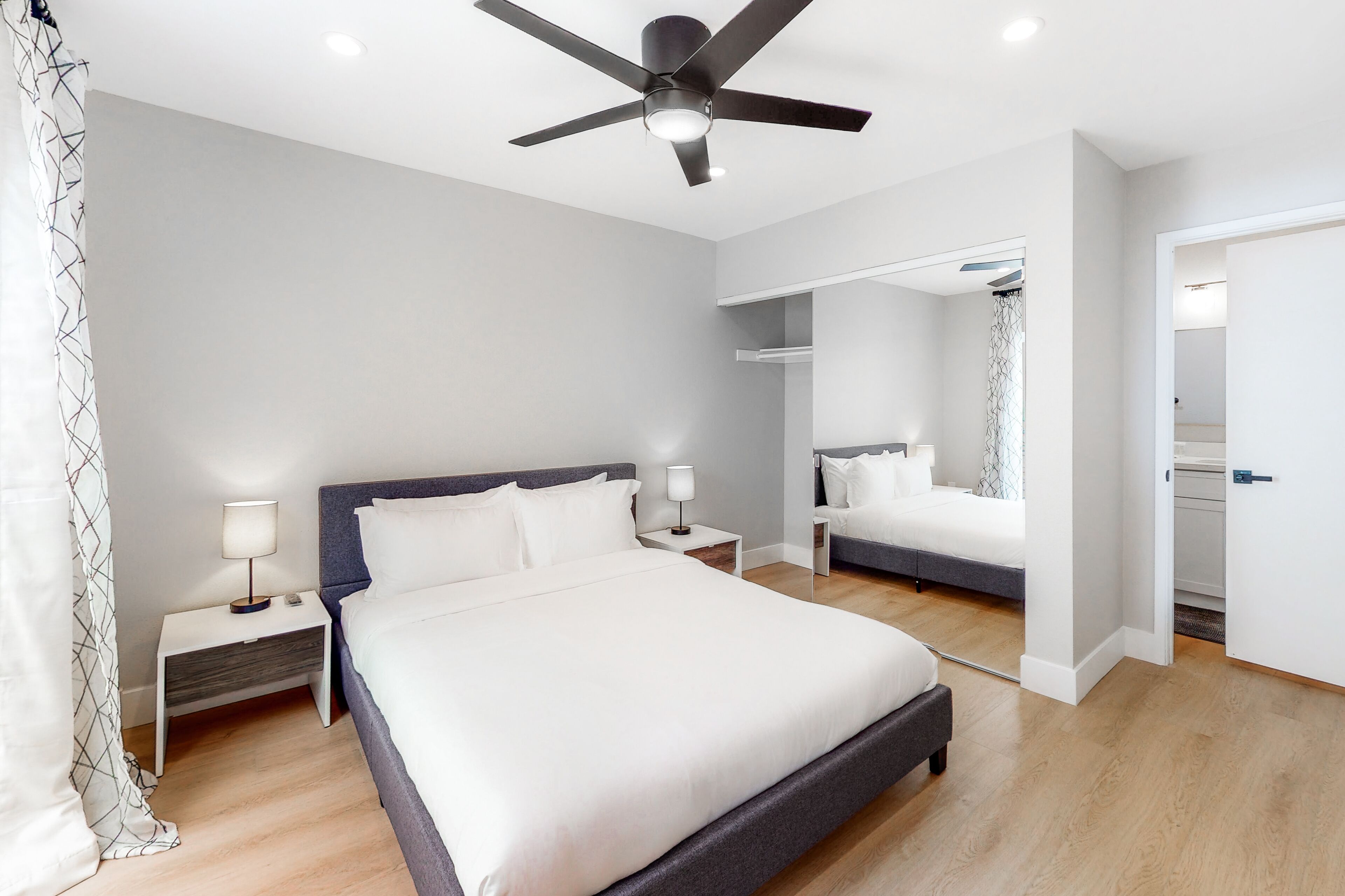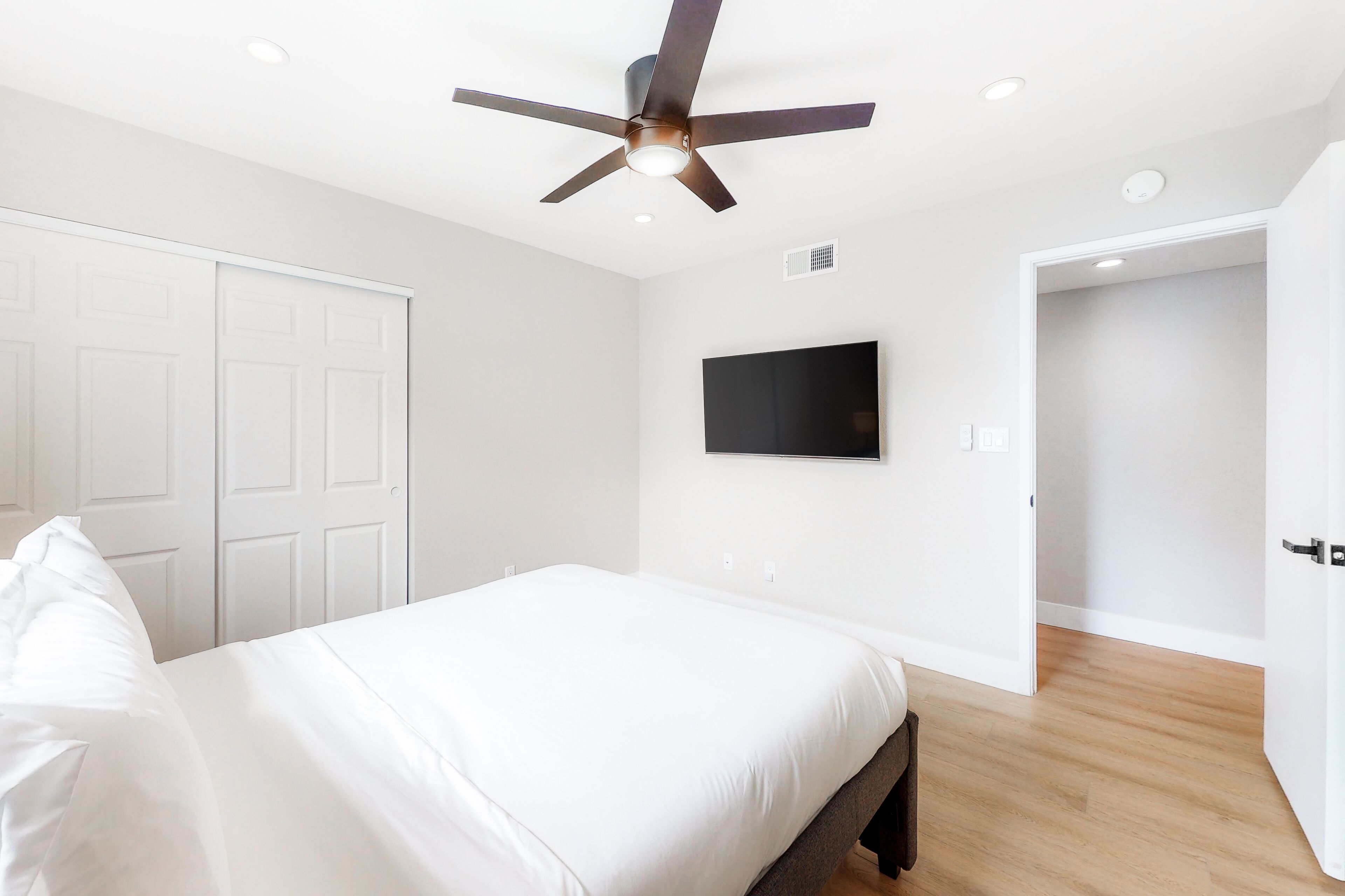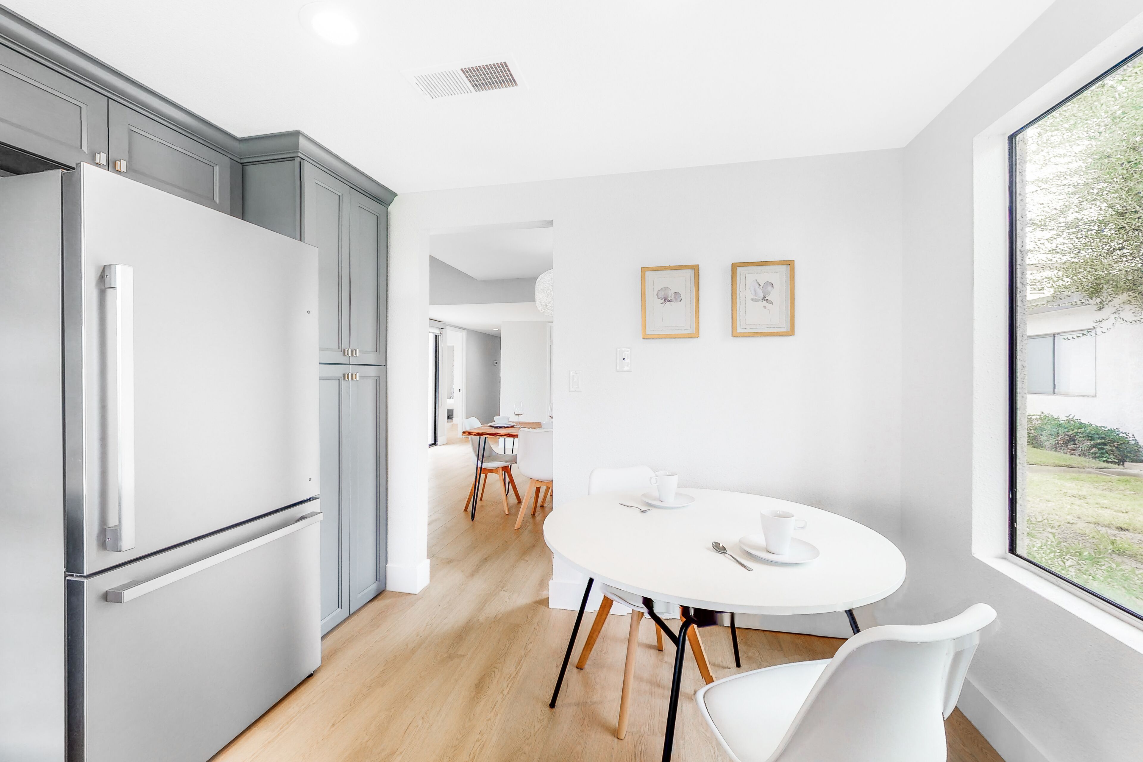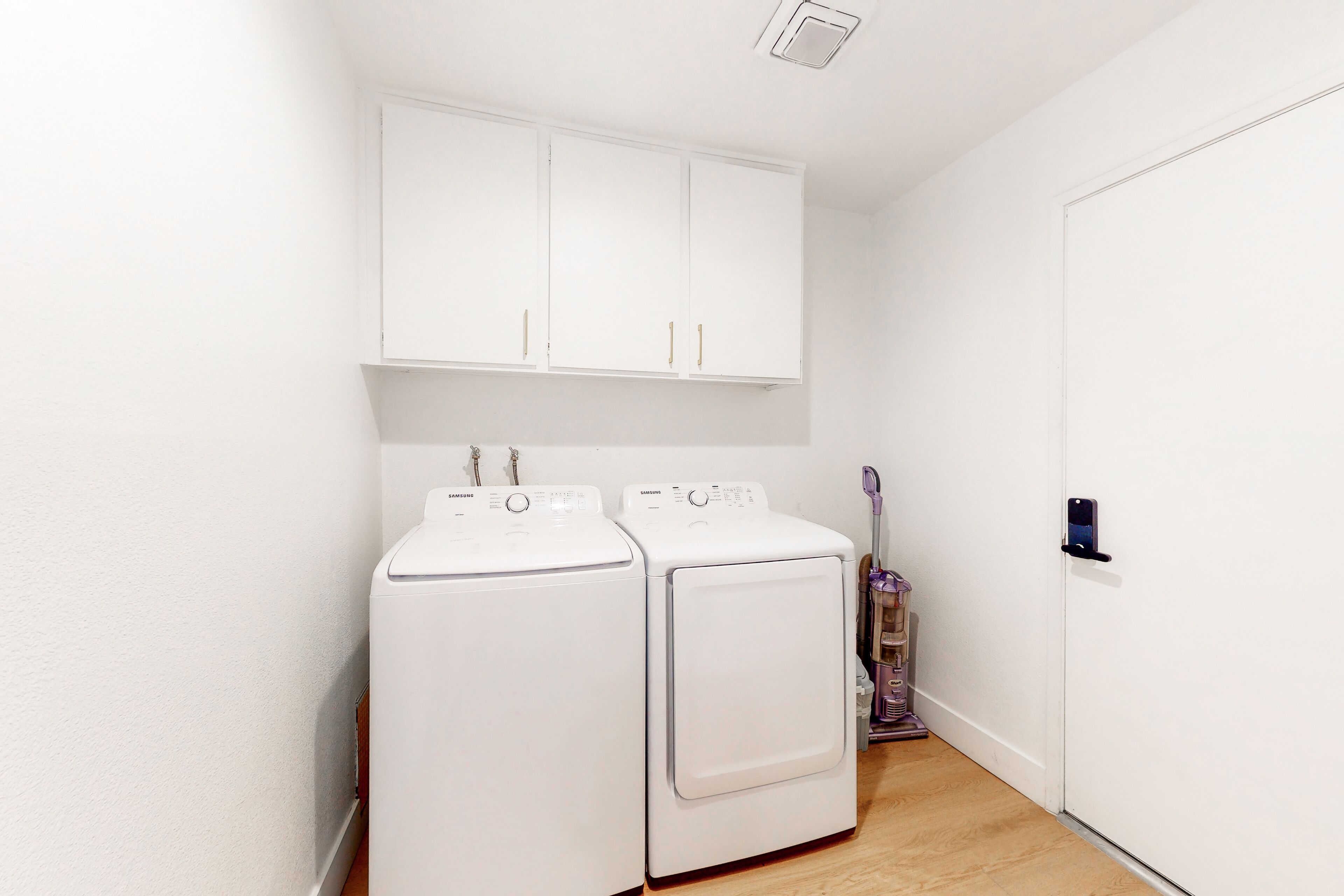 Golf Course Front Home with Shared Pool, Fast WiFi, Central AC, and Washer/Dryer Modern Desert RetreatOur calendar is updated in real-time & our nightly rates are accurately displayed. Simply enter your desired dates and click 'Book Now!'Enjoy peaceful views and modern luxury at this midcentury-inspired home right on the edge of Rancho Las Palmas Golf Course. Clean lines and comfortable spots to relax make this home a fabulous retreat after a day of golf or exploration. All ground floor, no one will have to struggle with stairs in order to wind down here. Let a fire blaze in the gas fireplace for warmth or ambiance. The full kitchen, tastefully decorated in a slate grey color, features full-sized appliances and cooking tools to help you put together delicious vacation meals. Central air conditioning will help everyone stay comfortable inside. Guests of the main bedroom can enjoy access to an en suite bathroom, but each bedroom features a ceiling fan for extra sleeping comfort. In addition to everything at this home, guests can also enjoy access to a shared outdoor pool during their stay. Of course, the crisp desert air always comes free.Things to KnowFree high-speed WiFi and cableFull kitchen with a dishwasherGated entranceGuests must travel by car to reach this condoNetflix streaming is available with guest accounts*There is a doorbell surveillance camera at the front doorParking notes: There is free parking available for 2 vehicles.Security camera details: There is a doorbell camera at the front door.Damage waiver: The total cost of your reservation for this Property includes a nightly damage waiver fee, plus tax if applicable (the “Damage Waiver”). (A discount may be applied for stays of 28 nights or longer, if permitted.) The Damage Waiver covers you for up to $3,000 of accidental damage to the Property or its contents (such as furniture, fixtures, and appliances) as long as you report the incident to the host prior to checking out. The Damage Waiver fee eliminates the need for a traditional security deposit.More information can be downloaded from the "Rental Agreement" on the checkout page.Due to local laws or HOA requirements, guests must be at least 30 years of age to book. Guests under 30 must be accompanied by a parent or legal guardian for the duration of the reservation.