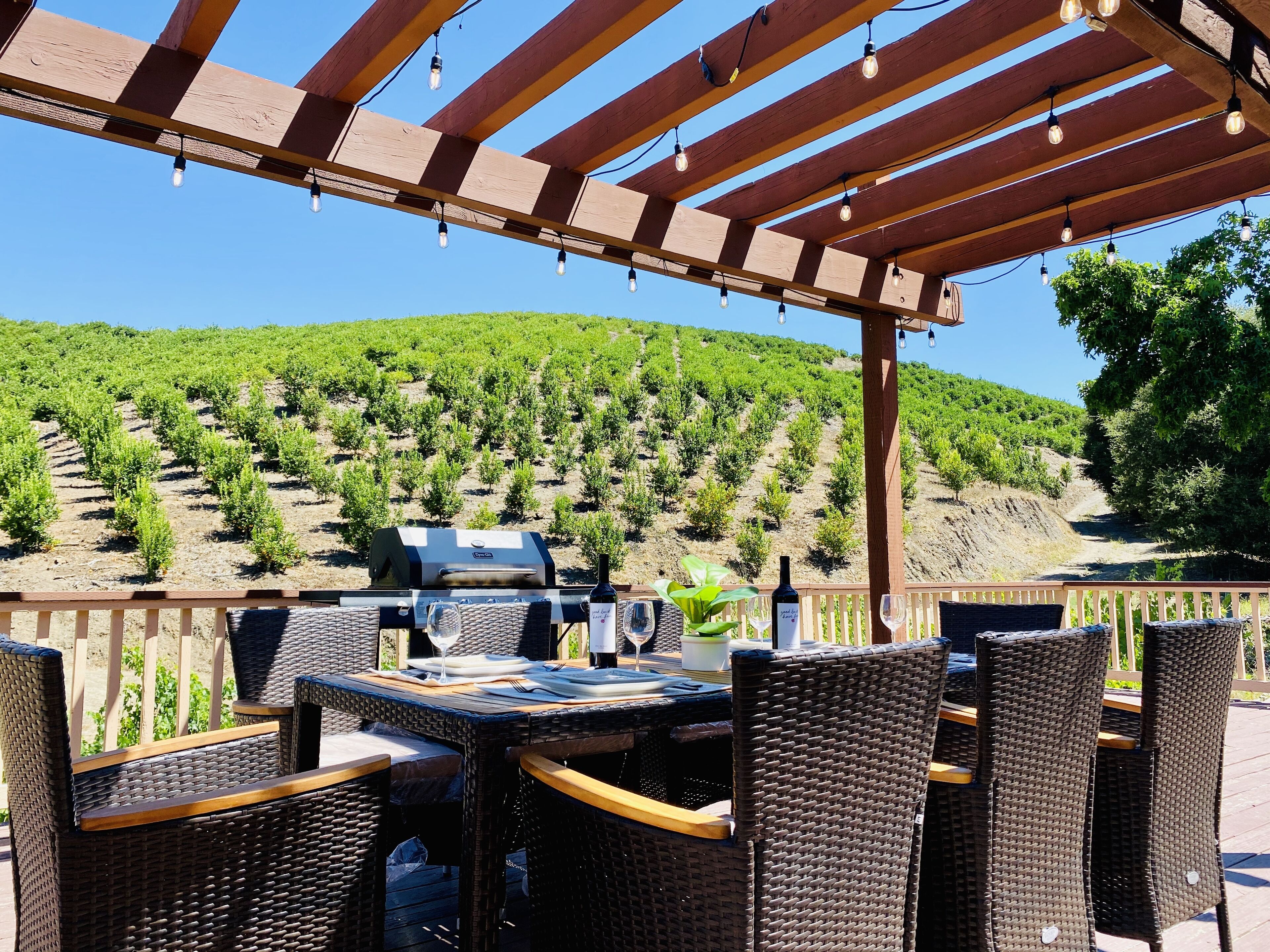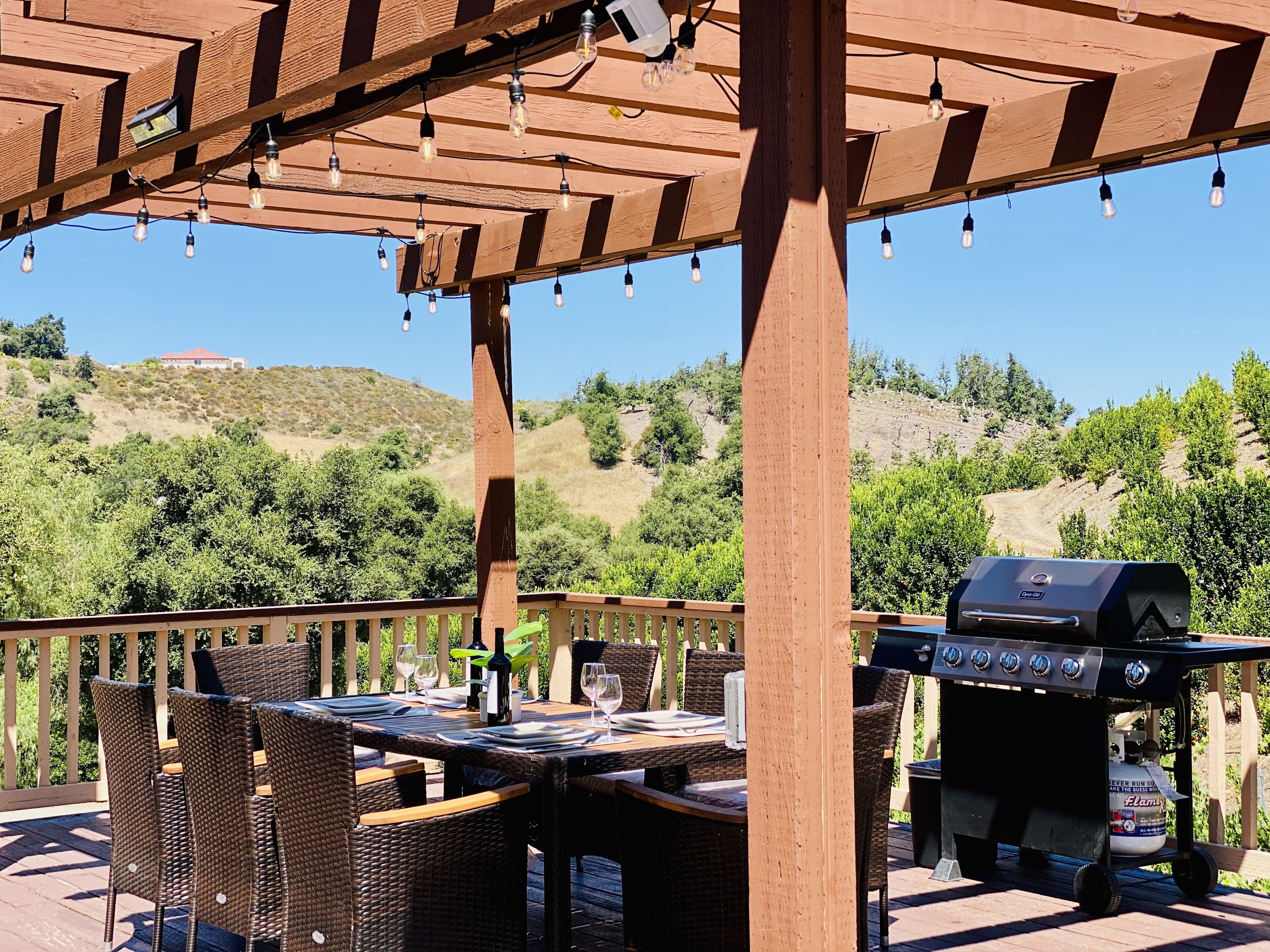 Temecula Orchard Villa in Wine County with hiking trails & fruit picking Take an early morning hike on the farm grounds whilst surrounded by thousands of Lemon and Tangerine trees. Gaze at the twinkling stars & constellations during the chilly night. Our house is located in the beautiful Temecula Valley. We have a vast fruit farm which produces thousands of pounds fruit annually. If you hike during your stay here, you can eat the fresh and organic Tangerines and Lemons along the trail. This beautiful orchard house is isolated, spacious, & perfect for your next stay.The spaceThe house has 4 rooms (about 1800 sqft) all decorated with love. The rooms contain wireless charging ports, spacious closets, and comfy beds. There is also an outdoor patio that can be used for outdoor dining, morning yoga, stargazing, and anything your mind can think of. Our property can be used to host large parties, friendly gatherings, and weddings. And at the same time, it is also comfortable enough to accommodate the entire family. You can reach Oceanside and San Diego within an hour. This house is located fairly close to the Temecula wine county, Temecula shopping area, Pechanga resort and casino, and highways 15 and 215, with convenient transportation.Guest access-The master bedroom is equipped with a king-size bed and a separate bathroom. The other 2 bedrooms are equipped with queen-size and full-size beds. The third room has 2 single twin beds. These 3 bedrooms share a bathroom, which allows you to ensure privacy and safety during the party. The bathrooms come stocked with shampoo, conditioner, ,body wash, body lotion, soap, hand wash and hair dryer. The Beautifully decorated house comes with a fully equipped kitchen, a Dyson vacuum cleaner, a DeLonghi coffee machine, a coffee cup, a kettle, a rice cooker, a microwave oven, a stovetop, a refrigerator, tableware, etc. There is also a laundry room next to the kitchen with a washing machine and Dryer.-For entertainment, there is a large flat-screen TV, free Wi-Fi and 2 sets of family sofas.-We have barbecue grills in the patio perfect for preparing a delicious dinner.-You can pick tangerines and lemons on our farm. If you need to take them away, tangerines and lemons will be sold to you at a price of $1.5/lb. and $1/lb. respectively.-You can also do many other things here: wine tasting, hot air balloons, golf, Pechanga Casino, shopping in the historic old town, horse riding, etc.Other things to note-Smoking is absolutely prohibited on the entire premises, both within the house and on the property grounds. This includes smoking cigarettes, cigars, pipes or any other smoking device. Violation of the no-smoking policy will result in forfeiture of the full security deposit and damage liability of up to $2,500 for any discovered damage to furniture or odors. -Noise levels must be kept strictly under 60 dbA during the day. Outdoor Music is not permitted after 9:00 PM. Neighborhood quiet hours are strictly enforced from 9:00 PM-8:00 AM. Anyone found to be violating noise ordinances will be subject to an immediate $500 fine, in addition to City-imposed fines which can reach up to $10,000 per violation.-Party or event with more than ten guests is absolutely prohibited during your occupancy. Holding an event without receiving prior approval, permit or permission from us is considered an abuse and breach of these Terms and Conditions and is cause for immediate termination of occupancy. -Absolutely no pets are allowed at this property at any time. If an unauthorized pet is on the premises, the guest will be assessed a fine of $200. Damage or cleaning attributable to pets shall be the responsibility of the guest.-All trash must be taken out and placed in trash bins. All dishes must be placed in the dishwasher upon departure. Any dishes that are left for the housekeeping staff or that are put away still dirty will incur a charge of $150.-Check-in time is 4:00 PM. Check-out time is 11:00 AM. Late check-out may be available upon request, so please ask us for cost and availability. - Please report any inoperative equipment to us promptly. We will make every reasonable effort to have repairs done quickly and efficiently.- You are responsible for keeping your valuables safe at all times. Guests agree to follow any and all House, as well as any and all rules of the Homeowners Association where the property is located, and any and all City or County ordinances in the area where the property is located. The guest acknowledges that there may be periodic patrols and security monitoring to ensure that rules are followed.
