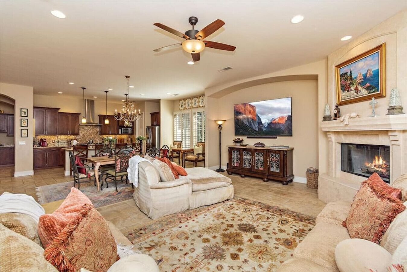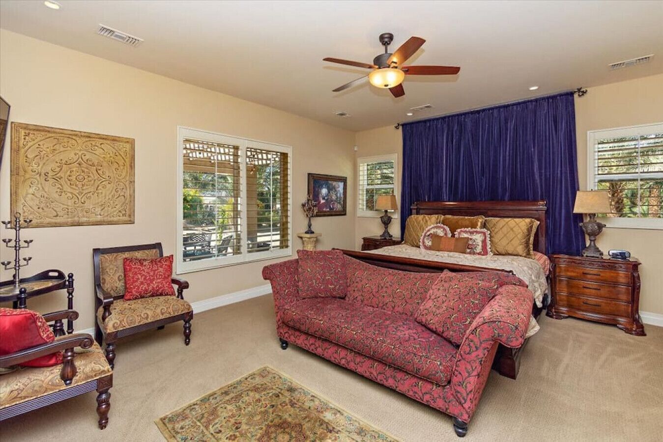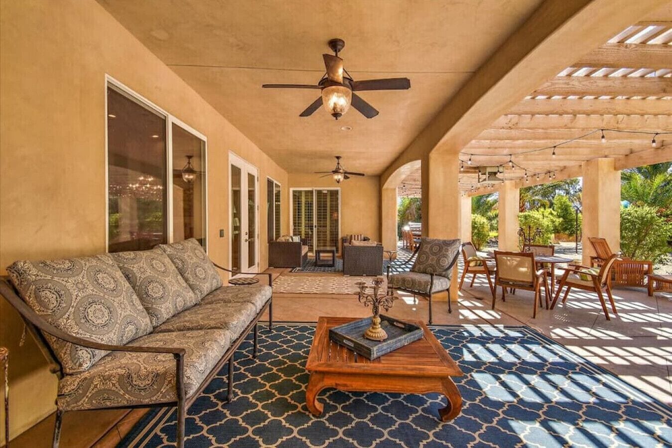 Villa Barhi - A Mediterranean Palazzo - Close to Acrisure Arena Welcome to Villa Barhi! This unique Mediterranean Palazzo offers an inviting tranquil environment; perfect to relax, recharge, or simply get away! The glorious reimagined outdoor space was just completed in October, 2023 and awaits your enjoyment. Refresh in our oversized saltwater pool – complete with spa, waterfalls, and an in-water lounge area. After your swim, soak up the sun in one the numerous lounge areas, or grab a book and stay shaded in our expansive covered patio. After being mesmerized by the stunning sunset over the San Jacinto mountains, all those outdoor spaces transform into your personal stargazing basecamp. Light a fire, pour a glass of wine, and enjoy the cool desert nights! The spacious interior features a gourmet kitchen, multiple dining and living areas, fireplace and a private office. Sleeping arrangements include 4 bedrooms and 3.5 baths with a generously sized primary suite featuring a California King Sleep Number bed, Jacuzzi tub, shower with body sprays, dual vanities, and a huge walk-in closet. The junior primary suite offers a standard king Sleep Number bed, ensuite bath and walk-in closet; while the remaining bedrooms feature queen beds and share a Jack n Jill bath with dual vanities.Located 20 minutes from downtown Palm Springs, with easy access to the Coachella Music Festival, the new Acrisure Arena and all our desert playground has to offer. Our horse corral accommodates up to 6 horses and your dog is welcome too! This perfect palazzo has all the amenities you are looking for with the added benefit of tranquility and serenity. Message us with any questions and reserve your stay with confidence!RENTAL AGREEMENT - Sunshine & Swimming Pools, LLCGUEST RESPONSIBILITIES/TERMS & CONDITIONS. Under California law, stays under 30 days are considered a License and tenant’s rights do not apply. You as the Guest are responsible for payment, deposits and all facets and terms of the License as detailed in this Agreement, including good neighbor guidelines. This Agreement is a binding legal contract, and it is agreed that it must be construed as if both parties jointly wrote it, governed by California law. Your confirmation from the booking channel and payment of money or taking possession of the property after receipt of the Agreement, is evidence of your acceptance of the Agreement and your intent to use this property for a vacation rental. The Agreement constitutes the entire Agreement between the parties with respect to the subject matter hereof. The rented property is a privately owned home. You agree to indemnify the Host/Owner of said property for all liability, damage, personal injury, or loss to the property or its contents that occur during your stay resulting from any cause, including but not limited to negligence, violation of any law, carelessness, neglect, theft or improper conduct of any persons entering, occupying or visiting the leased premises. We are not responsible for personal items lost, stolen or left behind. Guests’ or occupants’ personal property, including vehicles, are not insured by Host/Owner against loss or damage due to theft, fire, vandalism, rain, water, criminal or negligent acts of others or any other cause. GOOD NEIGHBOR POLICY. This home is located in a quiet residential neighborhood and the City and owner strictly enforce all applicable City ordinances that relate to occupancy, unnecessary or loud outdoor noise, minimum age requirements, and parking. Per City regulations, NO MUSIC or SOUND (TV, cell phone, radio, etc.) are allowed outside at any time. This includes music coming from the inside of the home that can be heard outside. If your neighbors can hear the noise, you are in violation of the City Ordinance. You certify that each Registered Guest is 25 years of age or older and agrees to honor the specified occupancy limits for this home and conduct themselves in a manner respectful of neighbors by refraining from loud or unnecessary outdoor noises, disruptive parties, over-occupancy or any activity that interferes with the quiet enjoyment of neighbors, traffic flow, the community, and residents. Guest(s) will maintain the home in good order and appearance at all times and will not disturb, annoy, endanger or inconvenience neighbors or prompt written or verbal complaints to Host/Owner from Code Compliance, Police, neighbors and bystanders. SURVEILLANCE. Outdoor surveillance cameras are located only at outside entry points for your safety and security of the home. A NoiseAware monitor is installed to ensure proper decibel levels are maintained. This device is like a smoke detector for loud excessive noise. City Code Compliance Officers conduct regular patrols to ensure compliance with all rules and regulations.UTILITIES. Monthly rentals require a gas deposit for pool heat. If there are damages, fines, or additional charges, and the amount of the deposit is insufficient to cover those charges then Renter’s credit card will be charged. Renter, by confirming this reservation assumes full responsibility for any items found to be missing and any damage due to misuse, negligence or action on Renter or Renter’s visitors’ part, except in the case of normal wear and tear reported to the host within 24 hours of check-in. Renters will be notified of any charges that apply.ACCELERATED EVICTION. Laws that are designed to maintain the relaxing and restful qualities that make the Palm Springs area a special place are strictly enforced. It is understood and agreed that ANY loud or large party, violations due to over-occupancy, unnecessary outdoor noise, indoor noise that causes neighbors to complain, or for violations of minimum age requirements of homes can result in immediate eviction and forfeiture of all funds plus up to a $1,500 charge or the entire security deposit. In addition, Guest(s) may also be responsible for fines issued directly by City officials or Police