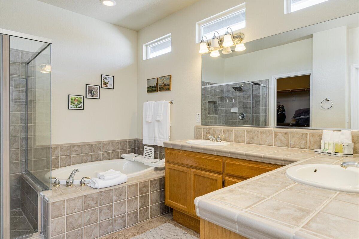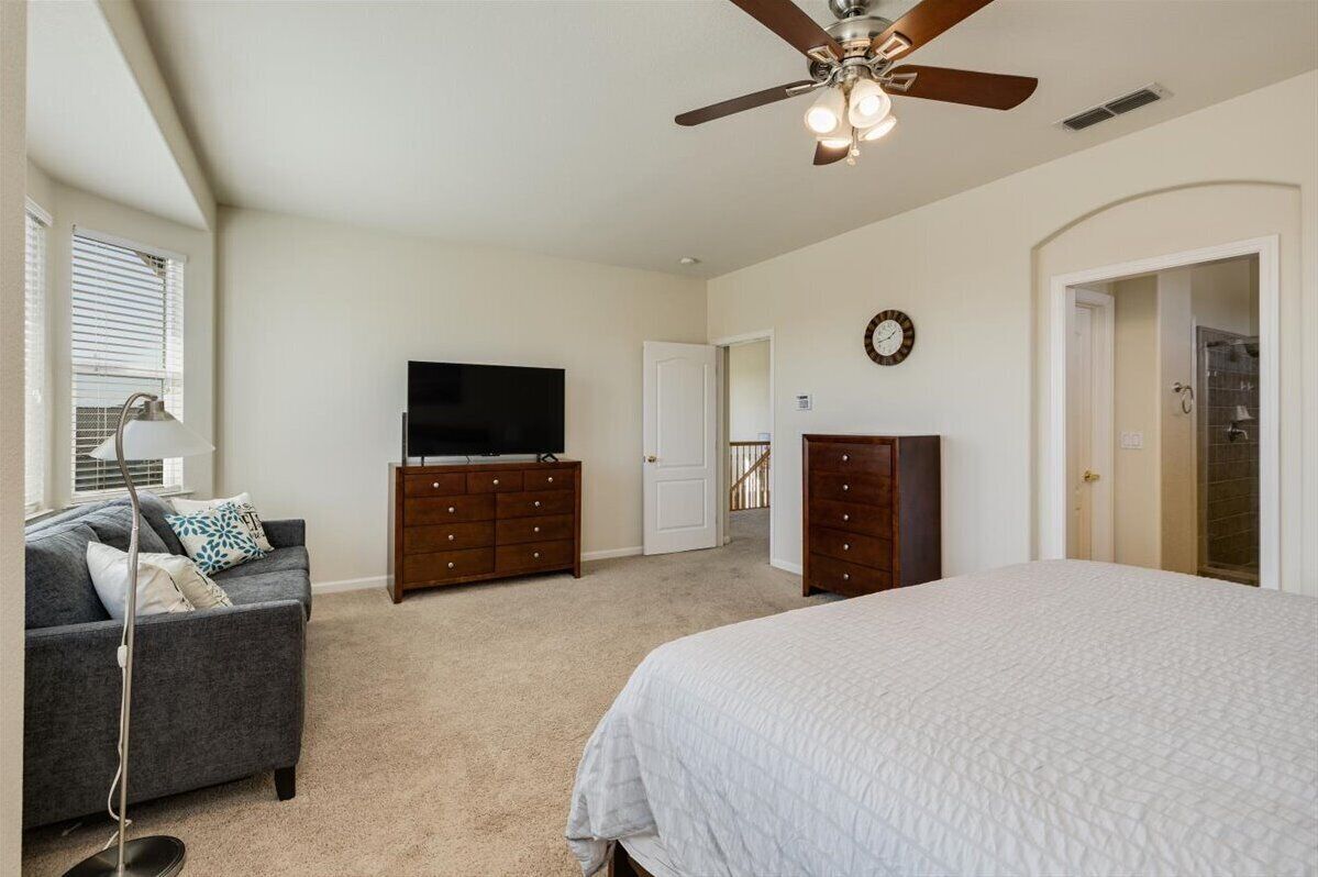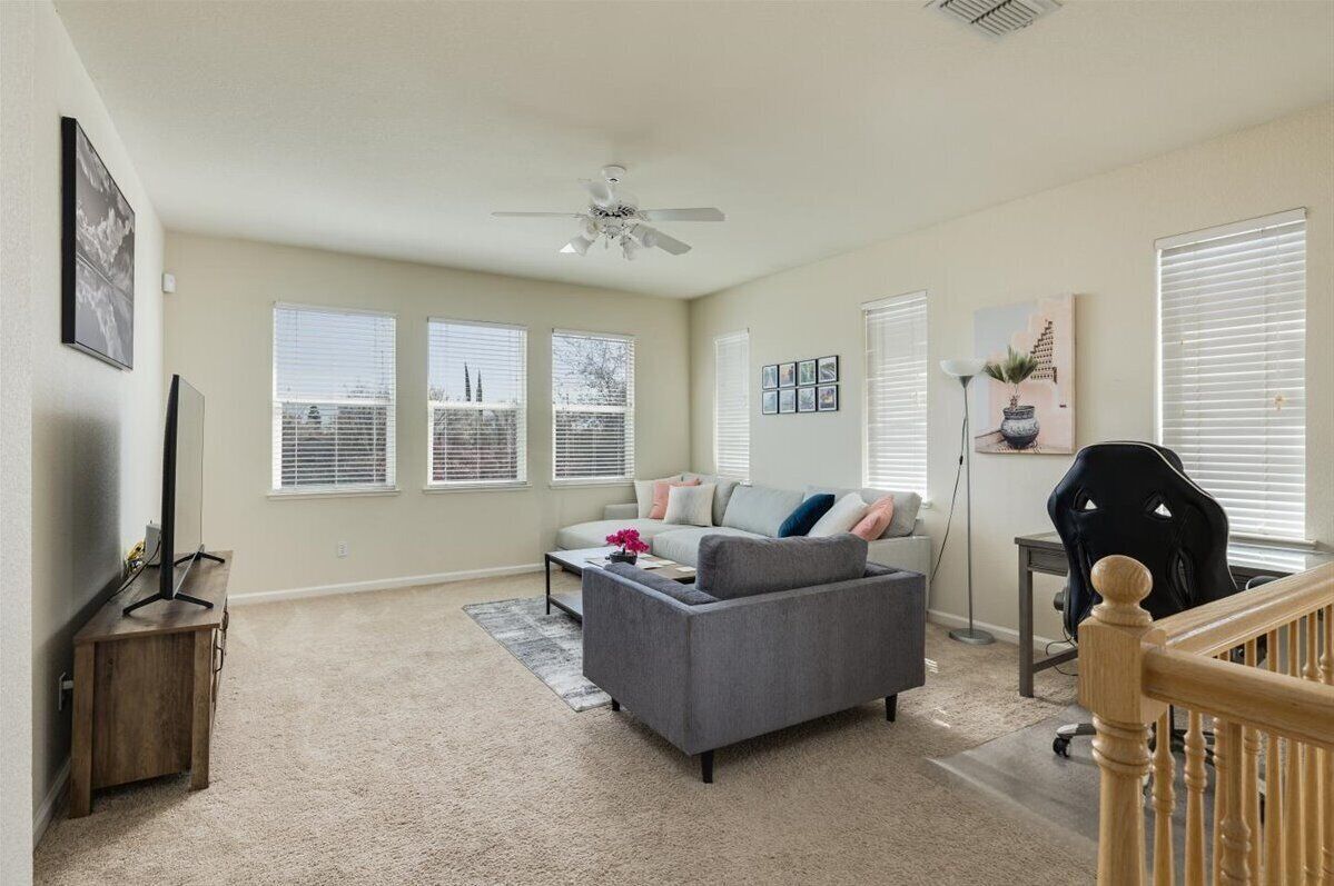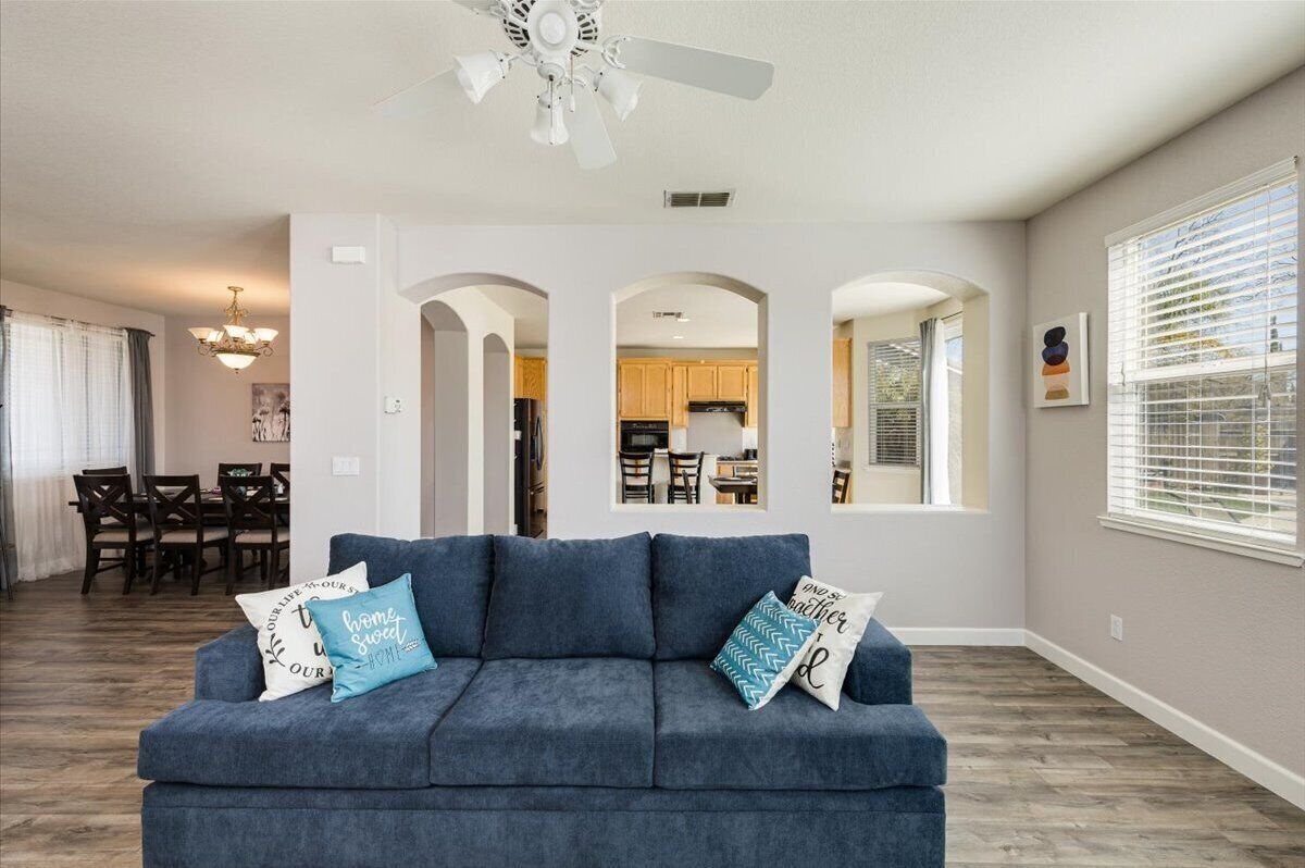 Lovely Spacious Home with Pool, Great Location, King Suite Nestled in a quiet neighborhood on a cul-de-sac, this lovely and spacious home with pool is only minutes away from so much! Steps from paved walking/biking trail system. 5 minutes from restaurants, stores. 5 minutes from the Barrel District, MACC cultural center, and farmers market. 20 minutes from downtown Sacramento, Folsom, and nature trails. Every detail is considered in this 2-story 4BD/3BA house, well-stocked with all the amenities to make your stay comfortable!First floor: Family room with tv and fireplace, sofa bed, slider door to the backyard with pool, kitchen with cooking essentials, 4-person table and two counter stools, dining room that seats 8, bedroom with 1 single and 1 full bed, and a full bathroom. Second floor: Loft with 65-inch tv, sofa, and desk, spacious primary bedroom with king bed and attached bathroom. Also upstairs - two more bedrooms each with a queen-sized bed, full bathroom, and a laundry room with full size washer and dryer. Note: The pool is not heated.