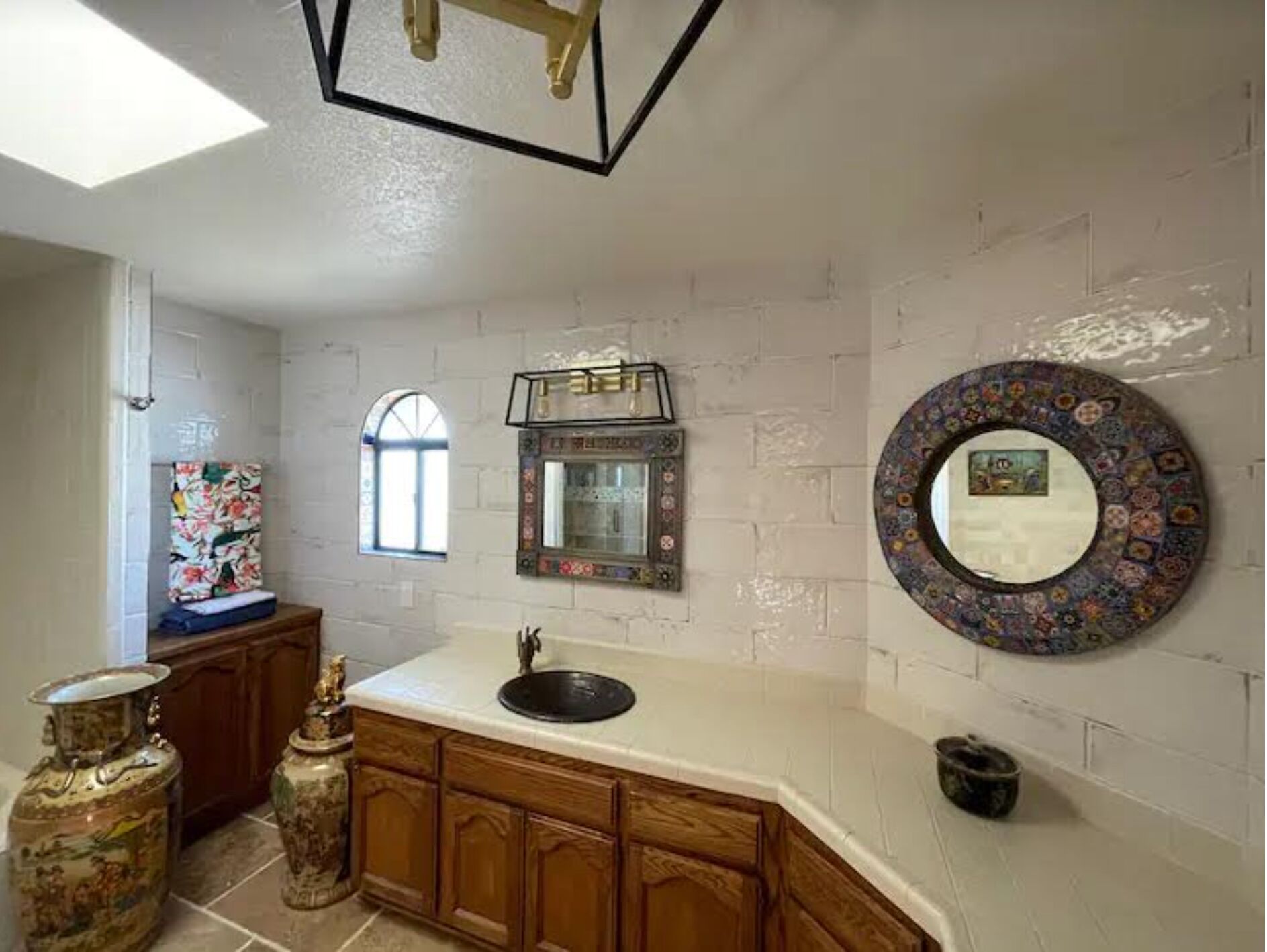 Desert Dream Cabin Amazing Guest House It is quiet, private and clean. Nice koi fish ponds in the backyard was a plus as well. Everything was nice. The air conditioner was a dream. The bathroom was spacious and you'll Loved the HUGE Tub!! Enjoy beautiful mountain view when you walking around the huge back yard.
