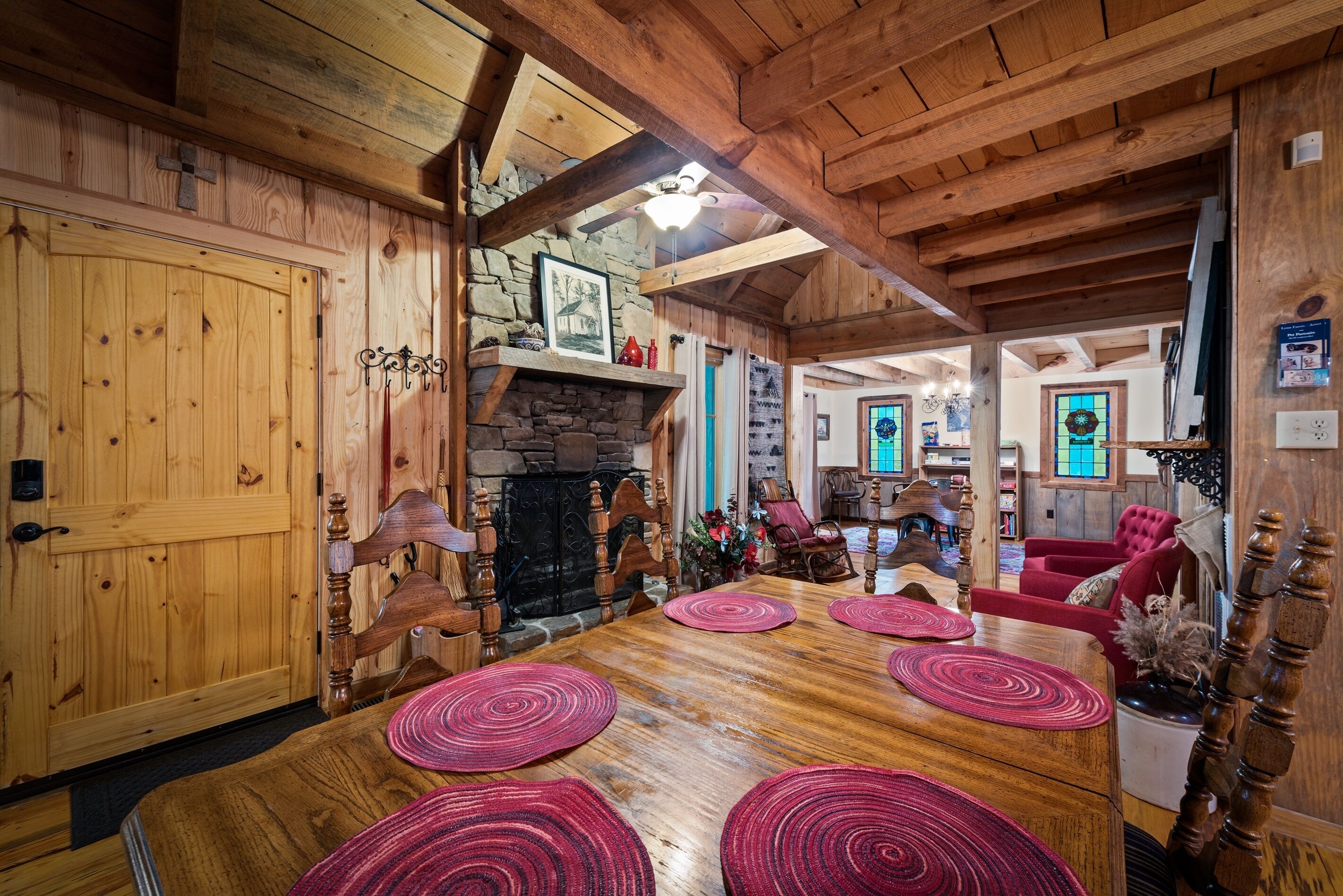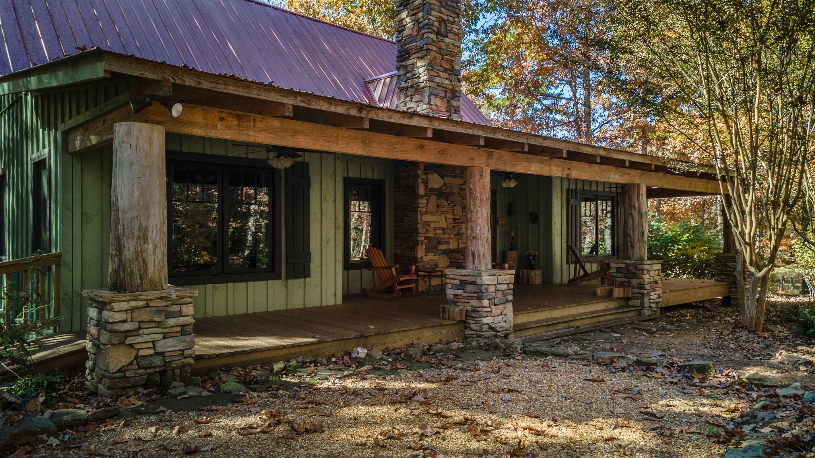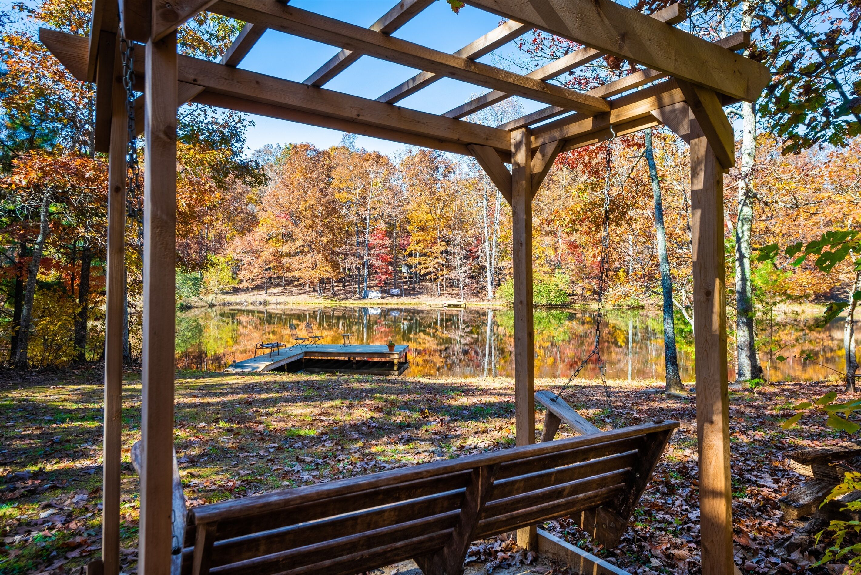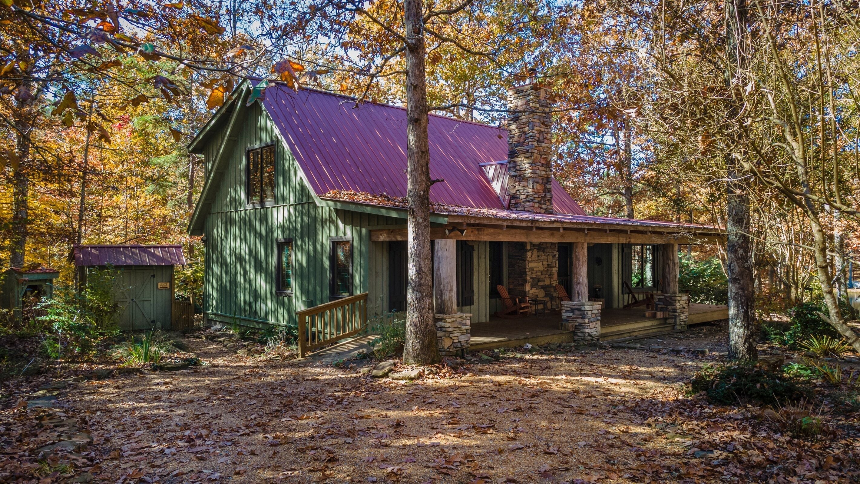 Eagles + Owl's-TWO cabins on the lake-sleeps 16 Lakefront Living at it's best! Bring the whole family & make the memories you'll cherish forever. Eagle's Rest & Owl's Perch sit side by side overlooking Eagle Lake. These cabins can accommodate up to 16 quests with a combination of 5 bedrooms, 4 ½ baths, 2 full kitchens, 2 livings rooms, a pool table & air hockey table! Outdoors you'll find two fire pits, two charcoal grills, paddleboat, paddle board, your own dock on the lake, & plenty of room for fun! These cabins are also pet friendly! This property contains TWO cabins, side by side on Eagle Lake.A large front porch welcomes you to Eagle's Rest overlooking beautiful Eagle Lake. Upon entering this gorgeous custom cabin, you'll find the comfy living room with wood floors and a stone, woodburning fireplace, dining area, and fully equipped kitchen with stainless steel appliances. Whimsical details can be found throughout this unique cabin including door handles carved by a local artist and interesting art throughout. There is also a game room stocked with plenty of games, puzzles and toys and an air hockey table. The quiet and inviting king-sized en suite master bedroom is on the main level. A powder room and a laundry room with a full-size washer and dryer finishes out the main level. Upstairs you'll find another full-size bath as well as a loft style bedroom with queen size bed plus two twin size beds. Enjoy views of Eagle Lake while relaxing on the screened porch, accessible from both the living room and the master bedroom. The outdoor space features a large yard, lots of sitting and outdoor dining areas, a charcoal grill and an antique forged iron fountain on the patio. Bring your fishing gear to fish off the dock or cruise around the lake on our paddleboat/paddle board or your own kayak or canoe. Please bring your own lifejackets. Owl's Perch is nestled beside the neighboring cabin and overlooks gorgeous Eagle Lake. The cabin has that wonderful rustic Mentone feel while offering all the creature comforts of home. A brand new fully equipped kitchen with stainless steel appliances and an outdoor charcoal grill will have you prepping meals for the fam to enjoy either at the indoor dining table or at the lakeside picnic table. A cozy living room with flat screen tv, leads you out onto the screened porch overlooking Eagle Lake. There are two bedrooms downstairs: one private with a queen bed and TV; the other with twin bed and another twin sized custom-built top bunk. A full-sized bath with clawfoot tub and shower is also on the main level in addition to a laundry room with full size washer and dryer. On your way upstairs, stop off in the game room with full size pool table, games, puzzles, toys for the kids and a reading nook as well as another full-size bath. Upstairs loft bedroom offers lots of space with a queen bed + full bed, a custom dollhouse and a cozy seating area. There's plenty of space to play outdoors in the large lakefront yard. Enjoy smores around the private (second) fire pit tucked behind the cabin near the woods. We have lots of outdoor seating for you to enjoy your morning coffee or an evening cocktail on the screened-in porch overlooking the lake or relaxing on the spacious deck by the antique fountain. These cabins are completely separate with separate entrances and screened porches but they are joined by a deck. Located approximately 5-10 minutes from downtown Mentone, 10 minutes to Desoto State Park, 30 minutes to Cloudland State Park.