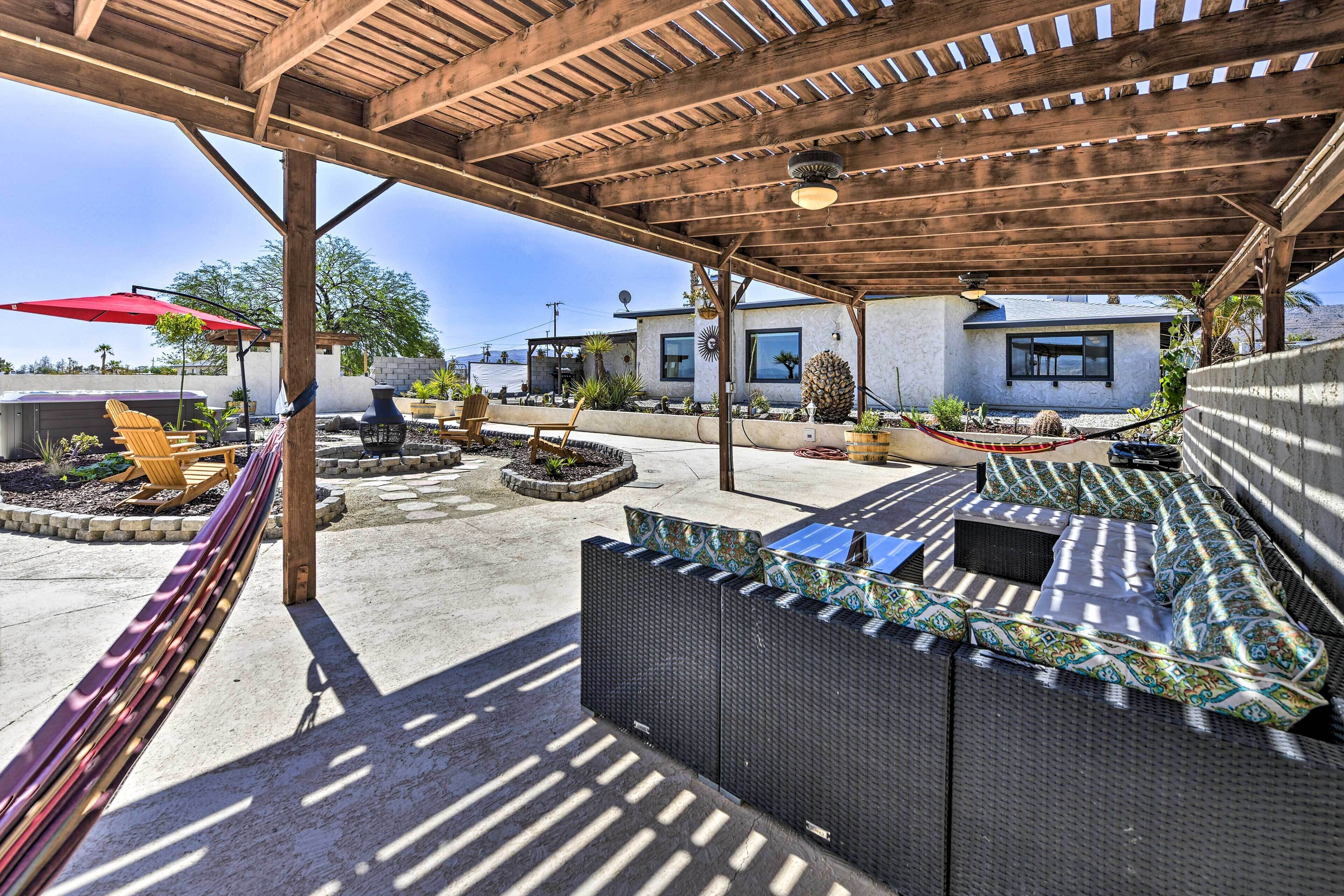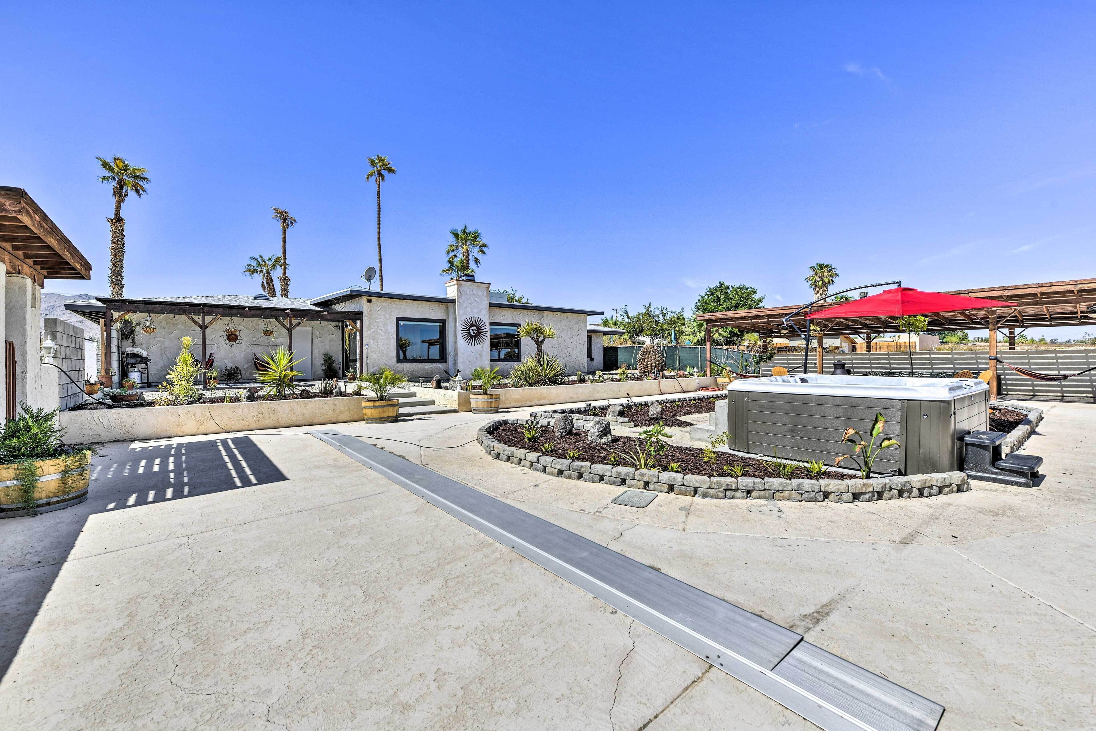 Chic Joshua Tree Pad w/ Mountain Views & Hot Tub Embrace the magic of the desert from this stunning 3-bedroom, 2-bath home in Twentynine Palms. The vacation rental has everything needed for a memorable getaway, including a chic interior, an enclosed patio with a hot tub and chiminea, and awe-inspiring views of the high-desert landscape. Wake up early and enjoy some coffee on the patio, and later,...