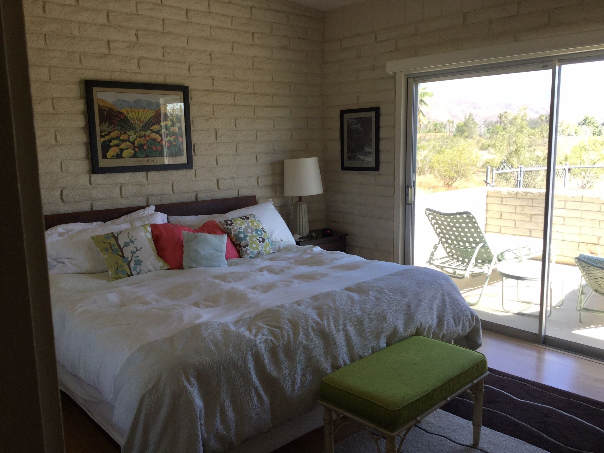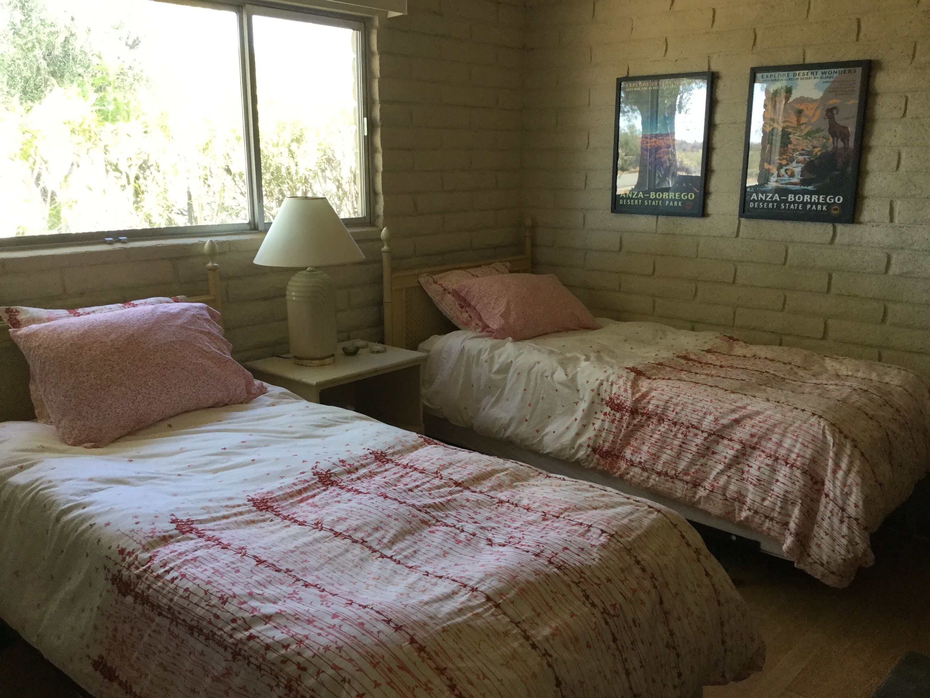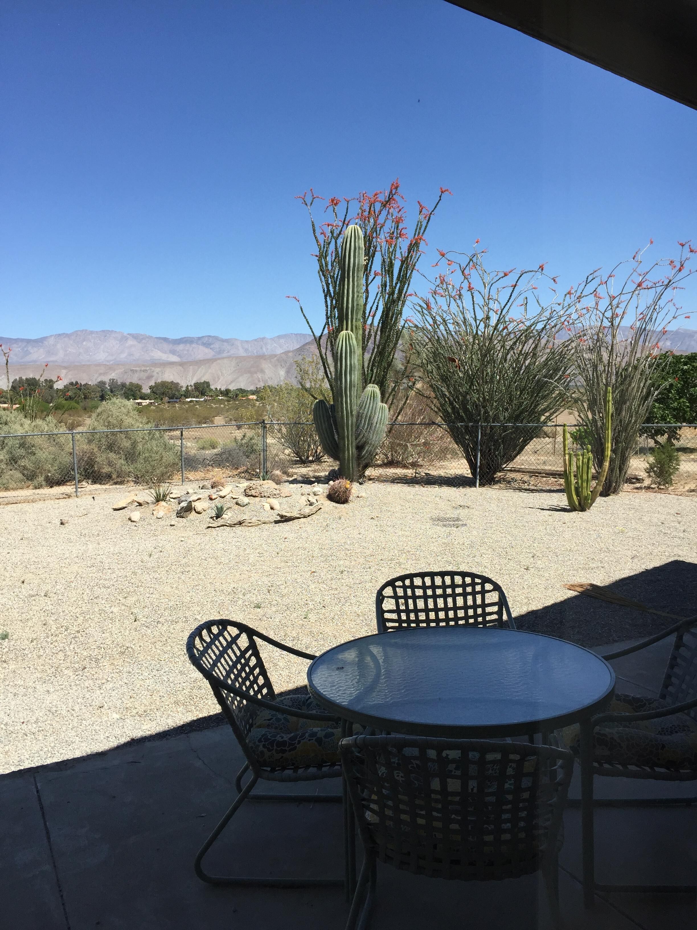Pitch Perfect Mid-Century 2 Bedroom, 2 Bathroom ~ Amazing Hiking, Star Gazing ~ Borrego Springs is a small, dark sky community in the middle of Anza-Borrego State Park. You will have easy access to amazing hiking, star gazing, golfing, bike riding, and more! Relaxing, sunny days and warm, beautiful nights await you in this beautiful community. You will have everything you need for a quiet, restorative getaway in a beautifully restored mid century home with carefully selected mid century furnishings. You will be able to view the stars from the king-sized Tempurpedic bed in the master bedroom and enjoy lovely outdoor spaces with amazing views in the front and rear of the house. Watch the rabbits and coyotes roam just steps from the house while you enjoy beautiful sunrises. Inside, enjoy HDTV and high speed internet. Feel free to cook in the well equipped kitchen or go out to one of Borrego's many fine restaurants. Home is perfect for two couples with two ensuite bedrooms. Indoor and outdoor fireplaces as well as full laundry.