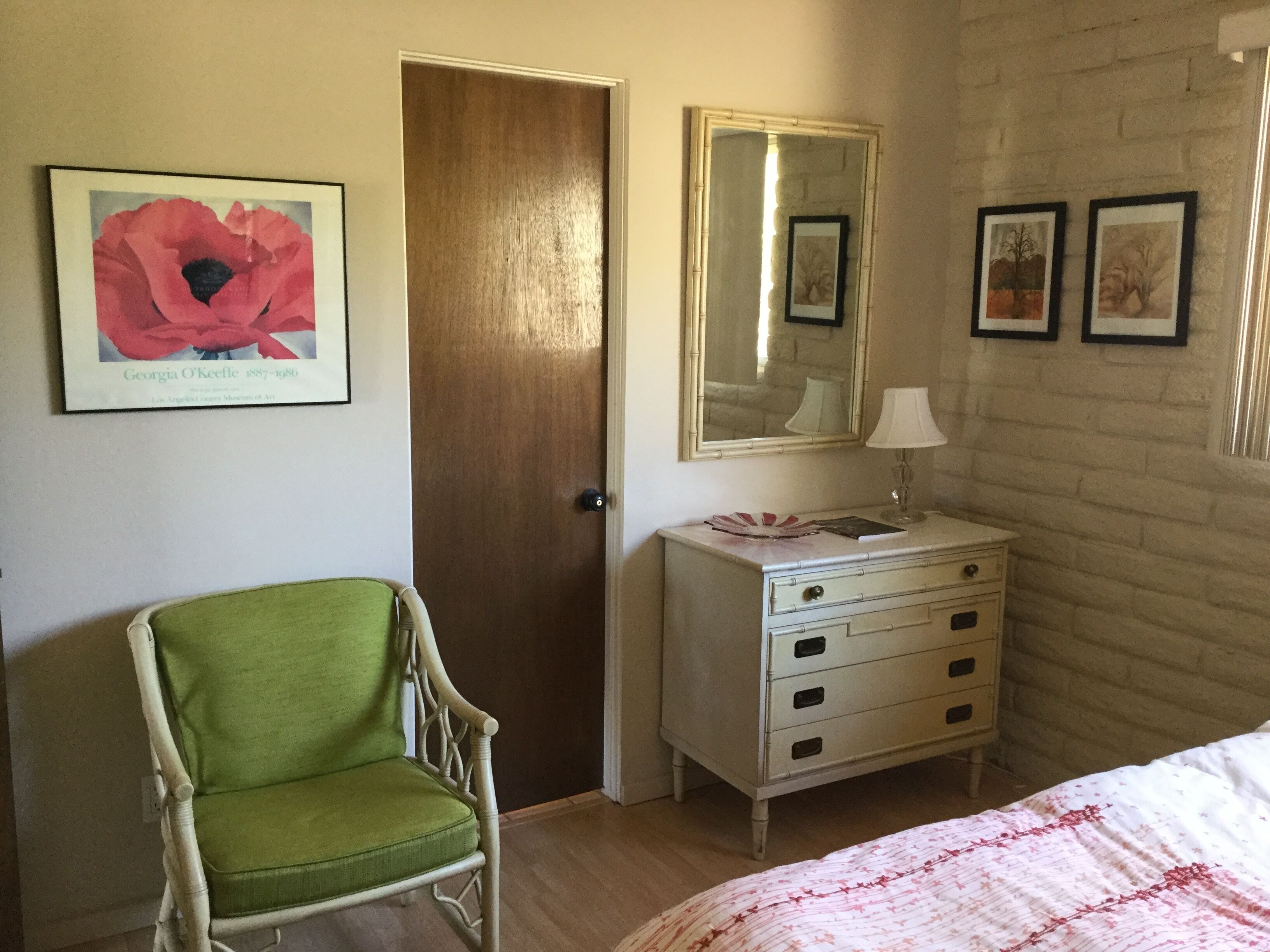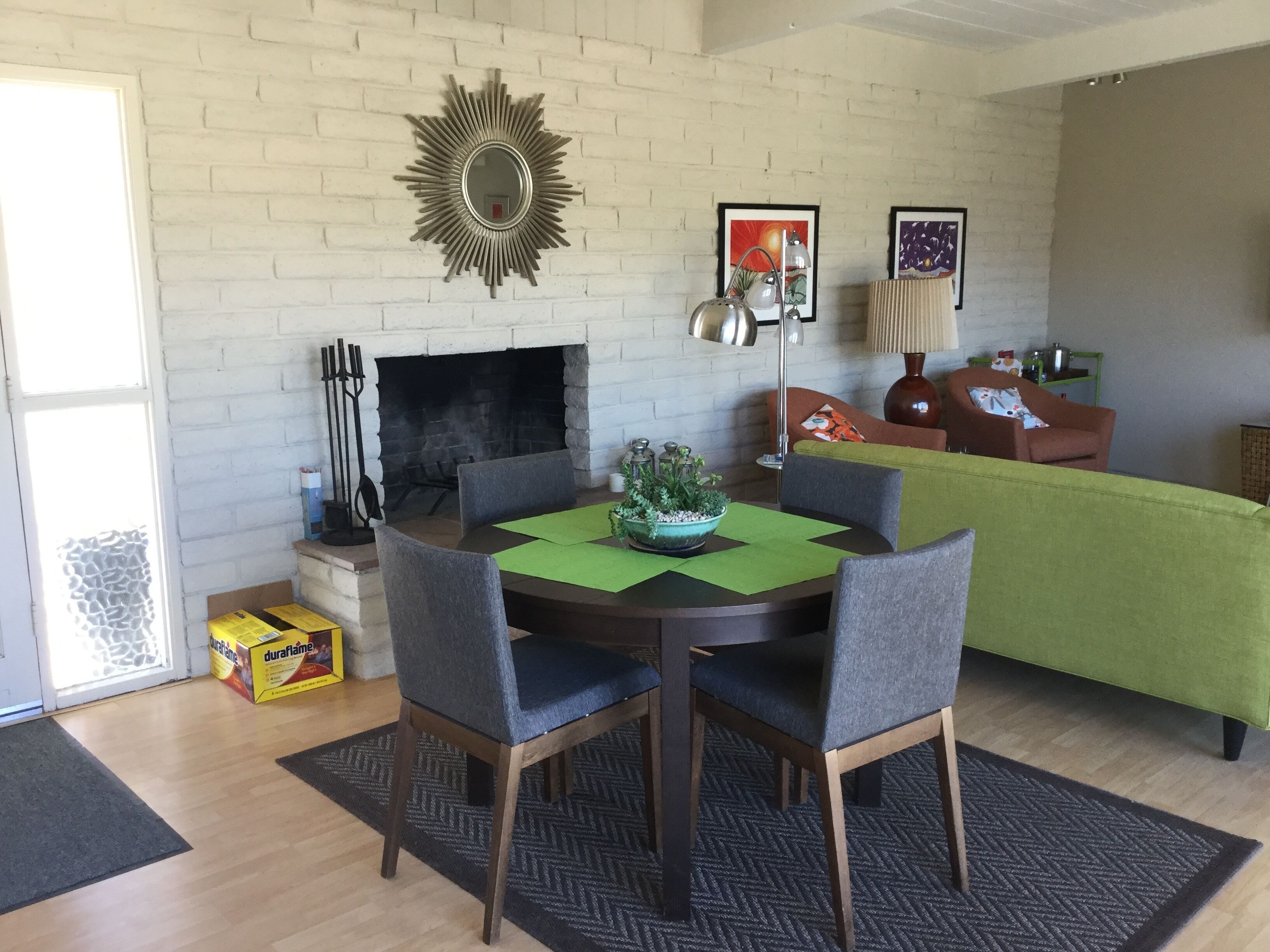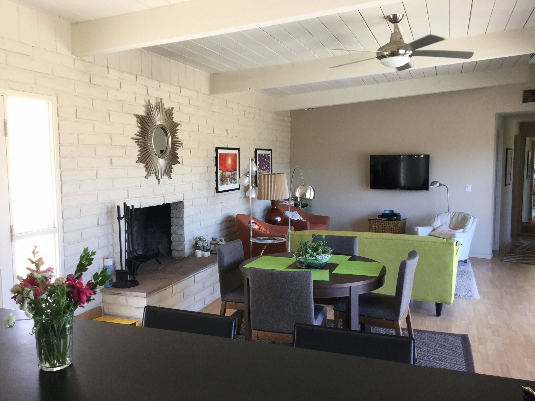 Pitch Perfect Mid-Century 2 Bedroom, 2 Bathroom ~ Amazing Hiking, Star Gazing ~ Borrego Springs is a small, dark sky community in the middle of Anza-Borrego State Park. You will have easy access to amazing hiking, star gazing, golfing, bike riding, and more! Relaxing, sunny days and warm, beautiful nights await you in this beautiful community. You will have everything you need for a quiet, restorative getaway in a beautifully restored mid century home with carefully selected mid century furnishings. You will be able to view the stars from the king-sized Tempurpedic bed in the master bedroom and enjoy lovely outdoor spaces with amazing views in the front and rear of the house. Watch the rabbits and coyotes roam just steps from the house while you enjoy beautiful sunrises. Inside, enjoy HDTV and high speed internet. Feel free to cook in the well equipped kitchen or go out to one of Borrego's many fine restaurants. Home is perfect for two couples with two ensuite bedrooms. Indoor and outdoor fireplaces as well as full laundry.