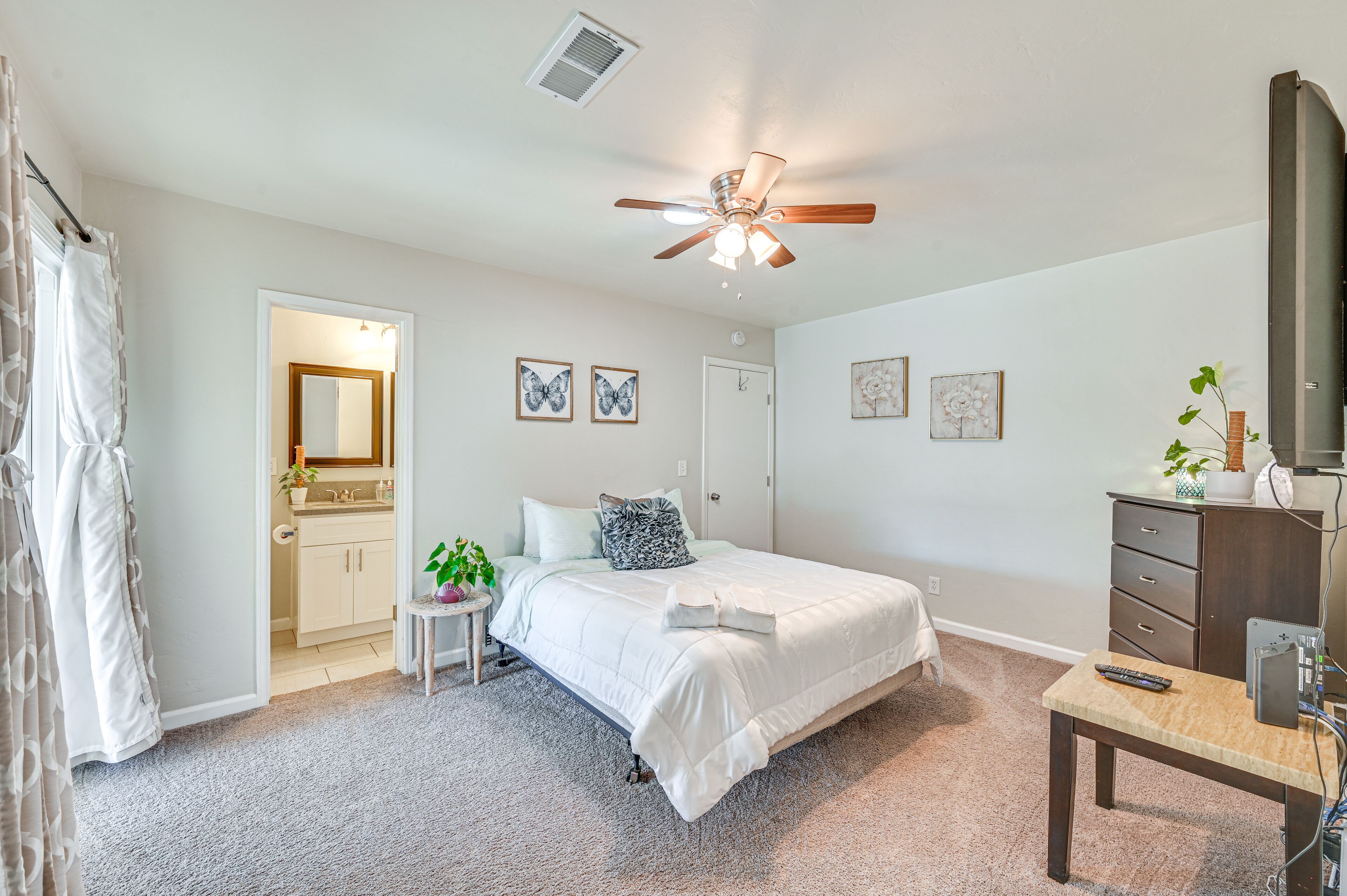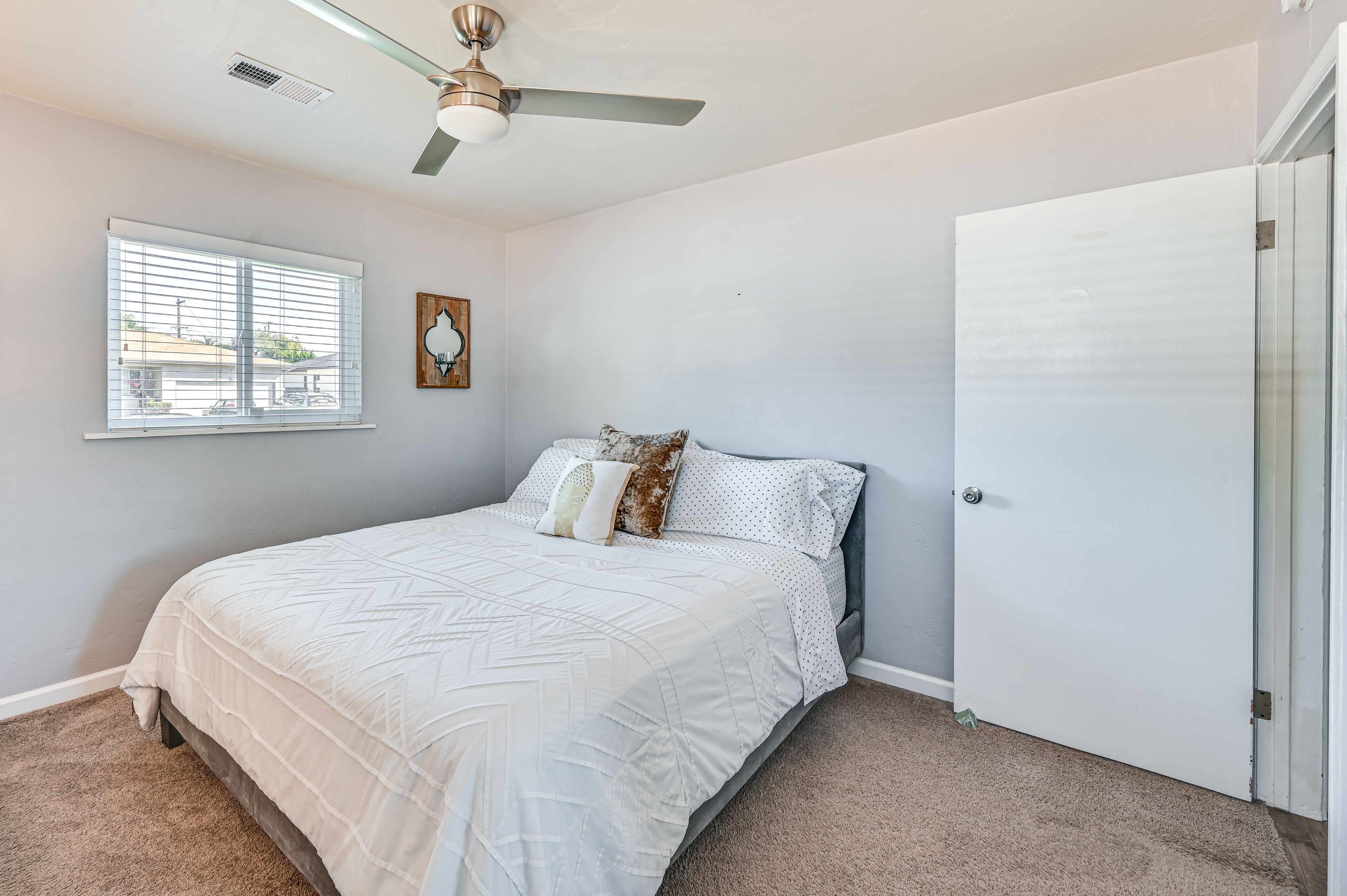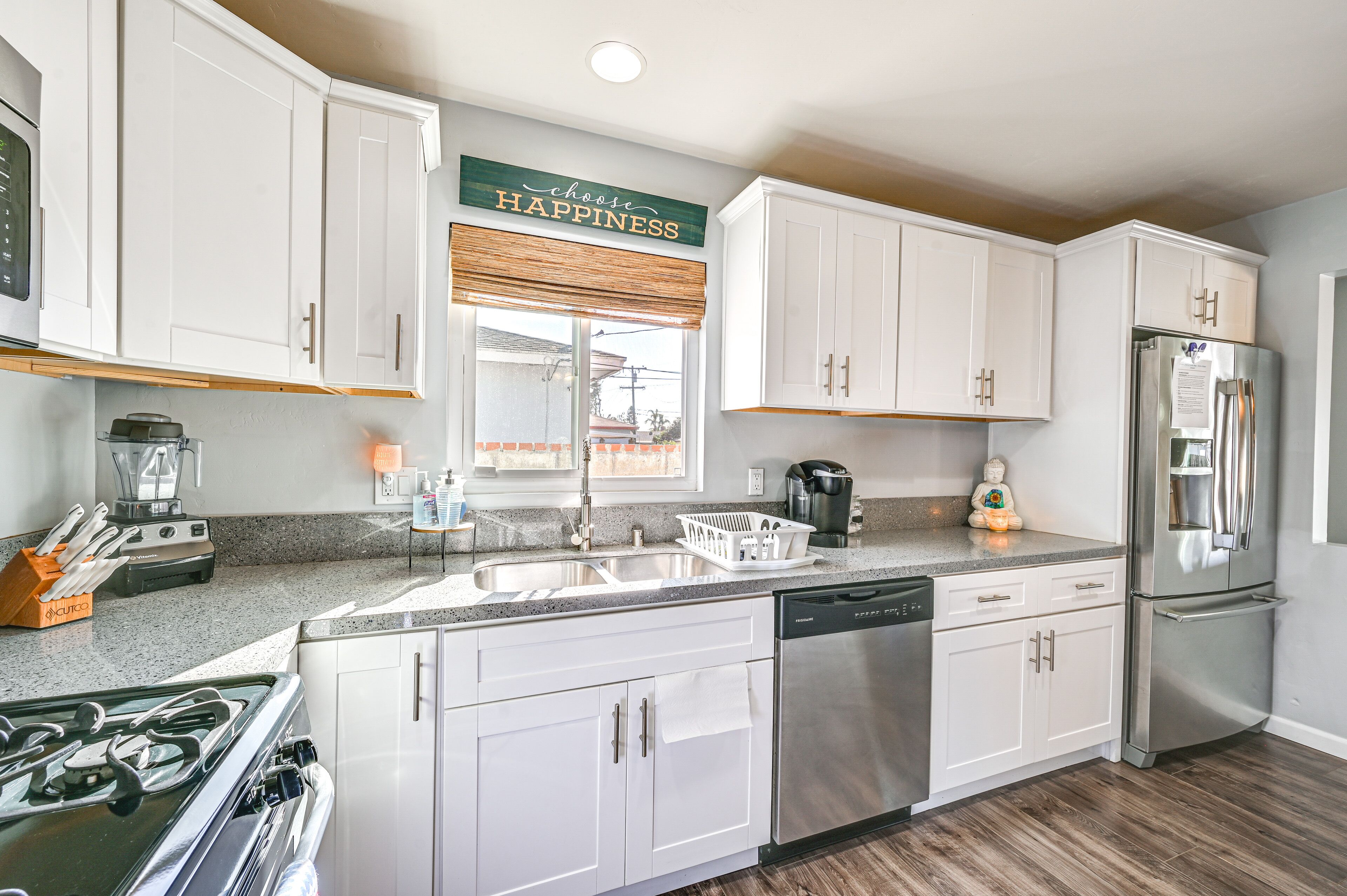 Walkable Chula Vista Home w/ Covered Patio Discover your home away from home in sunny southern California at this 2-bedroom, 2-bathroom vacation rental in Chula Vista! Stay in the heart of Chula Vista and explore the restaurants on 3rd Avenue, head to the local beaches for a shoreside afternoon, or opt for a night out in San Diego’s bustling Gaslamp Quarter. At the house, you’ll find ample space for your small group, whether you relax in one the 2 living rooms or grab a drink to enjoy out on the covered patio.-- THE PROPERTY --Chula Vista Short-Term Rental Permit No. STR-23-0096 | Easy Highway Access | 11 Mi to Downtown San DiegoBedroom 1: California King Bed | Bedroom 2: Queen BedINDOOR LIVING: Smart TV, wood-burning fireplace (wood provided), dining table, ceiling fansOUTDOOR LIVING: Covered patio, fenced-in yard, outdoor seatingKITCHEN: Dishwasher, refrigerator, stove/oven, microwave, Keurig coffee maker, blender, cooking basics, dishware & flatware, trash bags & paper towelsGENERAL: Free WiFi, complimentary toiletries, hair dryer, towels & linens, central heating & A/C, keyless entryFAQ: Quiet hours (10:00 PM-9:00 AM), 5 external security cameras (facing out)ACCESSIBILITY: Single-story home, 3 steps to enterPARKING: Driveway (2 vehicles)-- THE LOCATION --DOWNTOWN SAN DIEGO (~11 miles): Gaslamp Quarter, Petco Park, San Diego Convention Center, USS Midway Museum, shopping, dining, nightlife, live entertainmentEXPLORE OUTDOORS: Chula Vista Bayfront Park (1 mile), J Street Marina (3 miles), Imperial Beach Pier (5 miles), Silver Strand State Beach (10 miles), Sunset Cliffs Natural Park (19 miles)AROUND THE AREA: Chula Vista Center (walking distance), H Street Transit Center (0.8 miles), San Diego Bay National Wildlife Refuge (2 miles), North Island Credit Union Amphitheatre (8 miles), Balboa Park (10 miles), San Diego Zoo (10 miles)AIRPORT: San Diego International Airport (13 miles)-- REST EASY WITH US --Evolve makes it easy to find and book properties you’ll never want to leave. You can relax knowing that our properties will always be ready for you and that we’ll answer the phone 24/7. Even better, if anything is off about your stay, we’ll make it right. You can count on our homes and our people to make you feel welcome--because we know what vacation means to you.-- POLICIES --- No smoking- No pets allowed- No events, parties, or large gatherings- Must be at least 25 years old to book- Additional fees and taxes may apply- Photo ID may be required upon check-in- NOTE: This single-story home requires 3 steps to enter- NOTE: Please observe quiet hours from 10:00 PM to 9:00 AM- NOTE: Your safety matters. This property features 5 exterior security cameras. Camera 1 is on the corner of the garage facing the street, camera 2 is on the right side of the house facing the backyard, camera 3 is under the covered patio facing the backyard, camera 4 is on the left side of the house facing the left exterior, and camera 5 is a Google Nest device on the front door facing the front outdoor entry. The cameras are outward facing and do not look into interior spaces. The cameras record video and sound when activated by motion