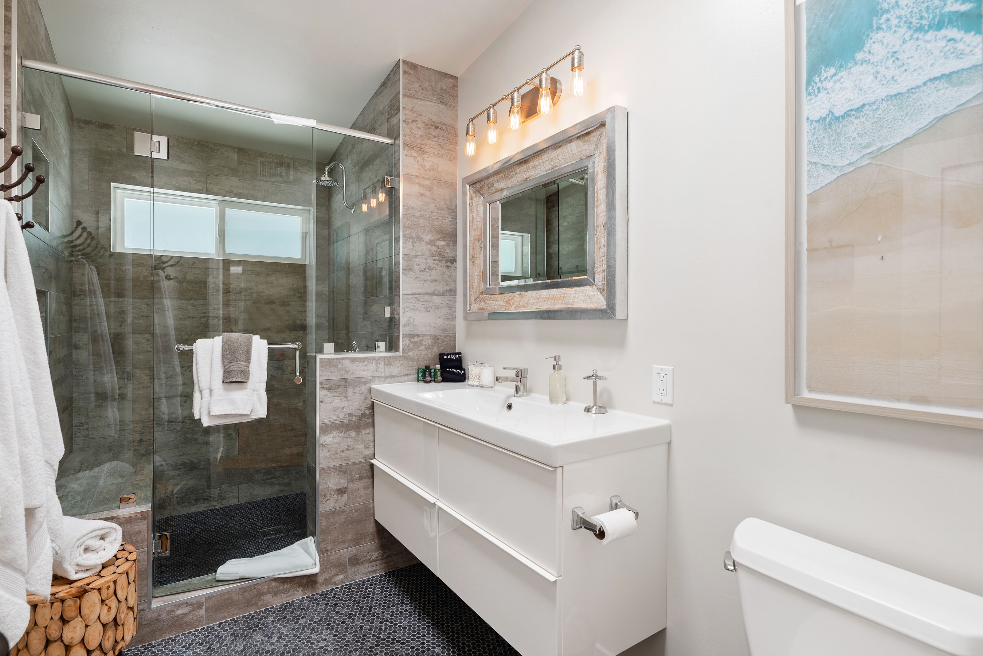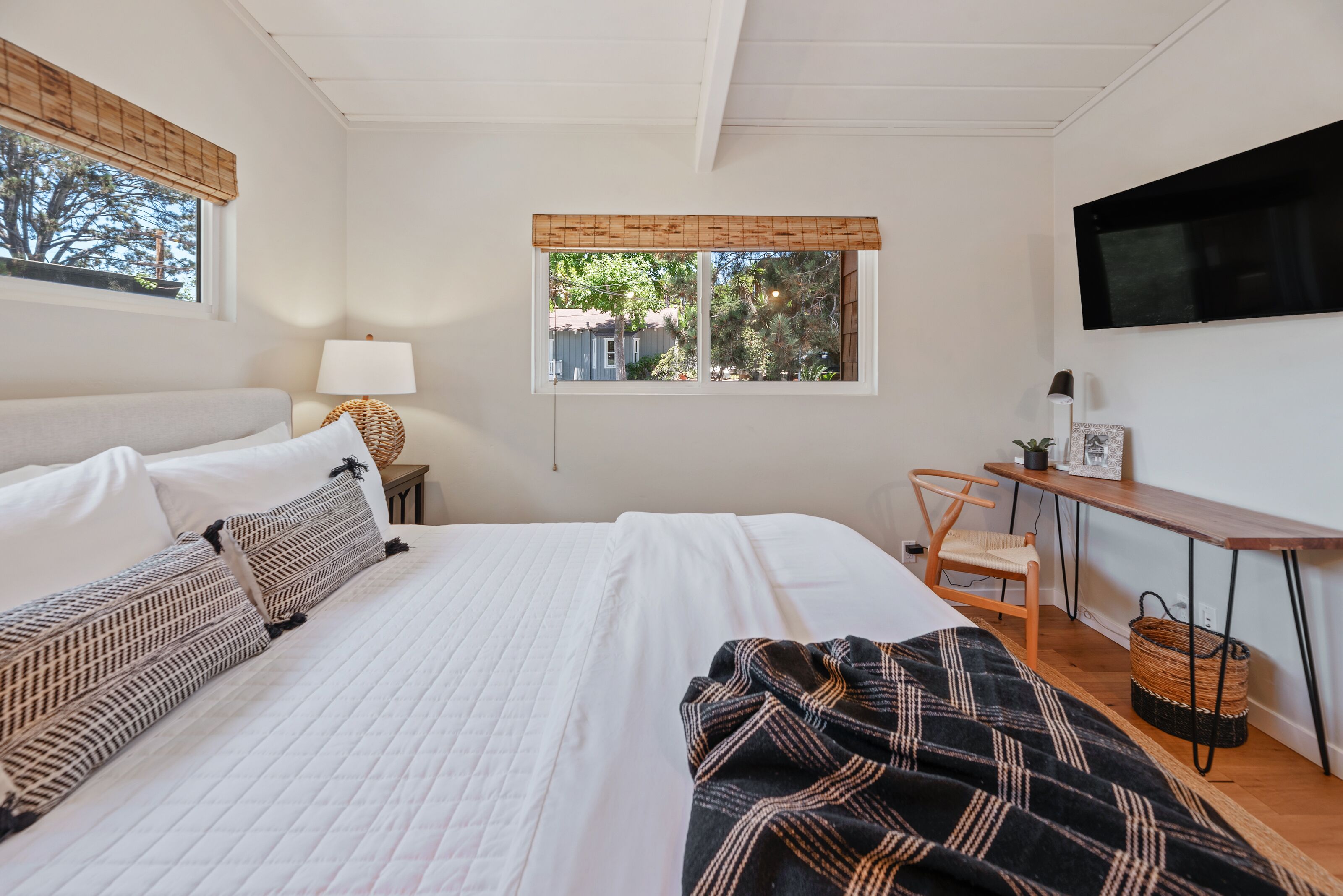Zuni Delight - indoor/outdoor, separate guest suite, stand-alone office Things to love:- Great decks, natural light, indoor/outdoor living, peek ocean views- Free-standing private office in the back- Spacious backyard with fire pit and jacuzzi- Ground-level suite with private bath and entrance- 2-3 minute walk to restaurants, shops, Powerhouse Park and 15th St beach- 2 car garage with additional parking for a total of 4 cars- Committed to sustainability Things to know:- 30-day minimum- 1 flight of stairs to the front door- Mid-stay cleanings required for extended staysABOUT US- Brenda is an engineer and mother of four- Our small team lives nearby in Solana Beach, Encinitas, and Carlsbad- Our team REALLY cares with more than 4000 5-star reviews across all platforms- Eco-friendly practices include reusable cloth napkins, filtered water, composting and recycling options, laundry pods, drought tolerant landscaping, reusable beach gear/cooler- Find us at BeachHausRentals (dot you-know-what) and saveHouse Rules: * No parties or events* No smoking* Quiet hours are strictly enforced 10:00PM-8:00AM* Maximum parking capacity is 4 cars (with 2 of the 4 in the garage)* Respect our neighborsAll BeachHauses are engineered for simple, easy living. All BeachHauses feature self check-in and check-out. They're stocked with beach toys, beach towels, bath towels, laundry detergent, shampoo, conditioner, olive oil, and cooking-ready kitchens.