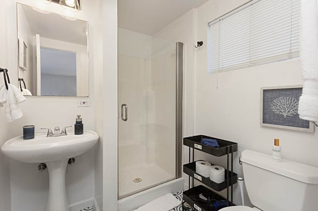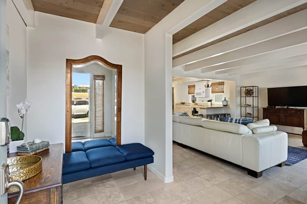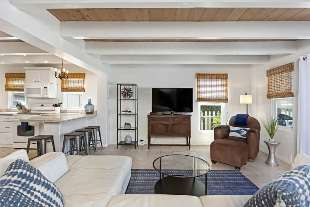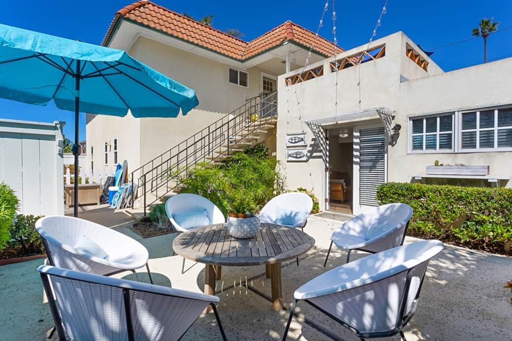 Enjoy Easy Beach Living - One Block from Sand Fall in love with Del Mar’s unique and charming beach culture. Located one block from the beach on Coast Blvd. between 18th and 19th street. This beautiful two-family home is newly renovated with modern amenities and a beachy décor. Walking distance to popular neighborhood restaurants, Seagrove Park and upscale shopping at the Del Mar Village.This home can be rented as separate units or in its entirety; offering up to 6 bedrooms. The lower unit offers two bedrooms and two baths, large kitchen, as well as a private outdoor patio and courtyard. The upper unit offers three bedrooms and two baths. A one-bedroom/one-bath studio, located just off the courtyard can be added to house additional guests. Each unit offers private entrances with four total reserved reserved parking spaces. This home will comfortably accommodate larger families or groups.Other amenities include, a fully equipped kitchen, flat screen TV with U-Verse cable, wifi, washer/dryers, BBQ, linens, bath and beach towels, beach chairs, boogie boards, and beach umbrellas.Once you experience all that Del Mar has to offer, we are confidant you will return year after year to this vacation home.