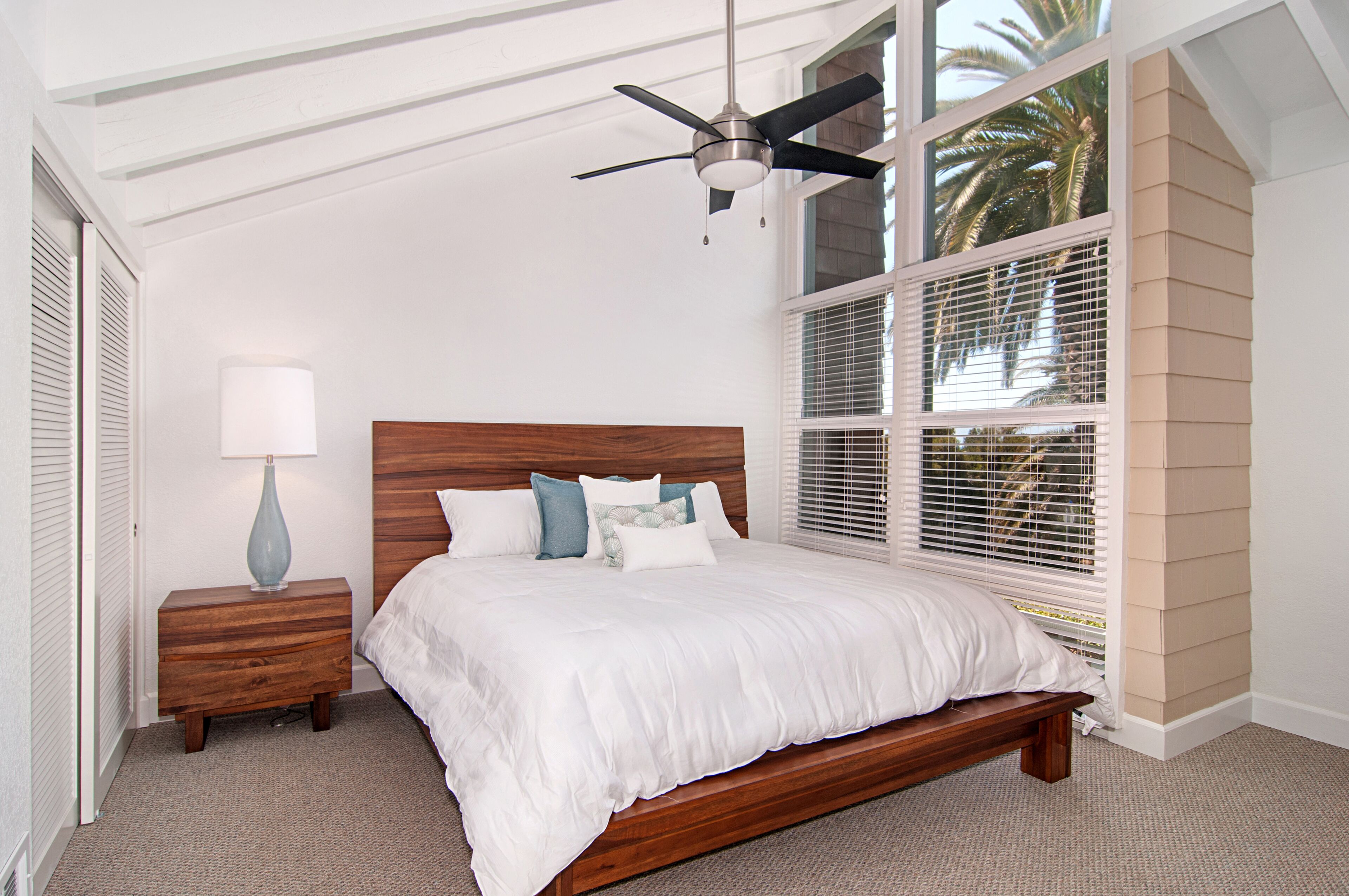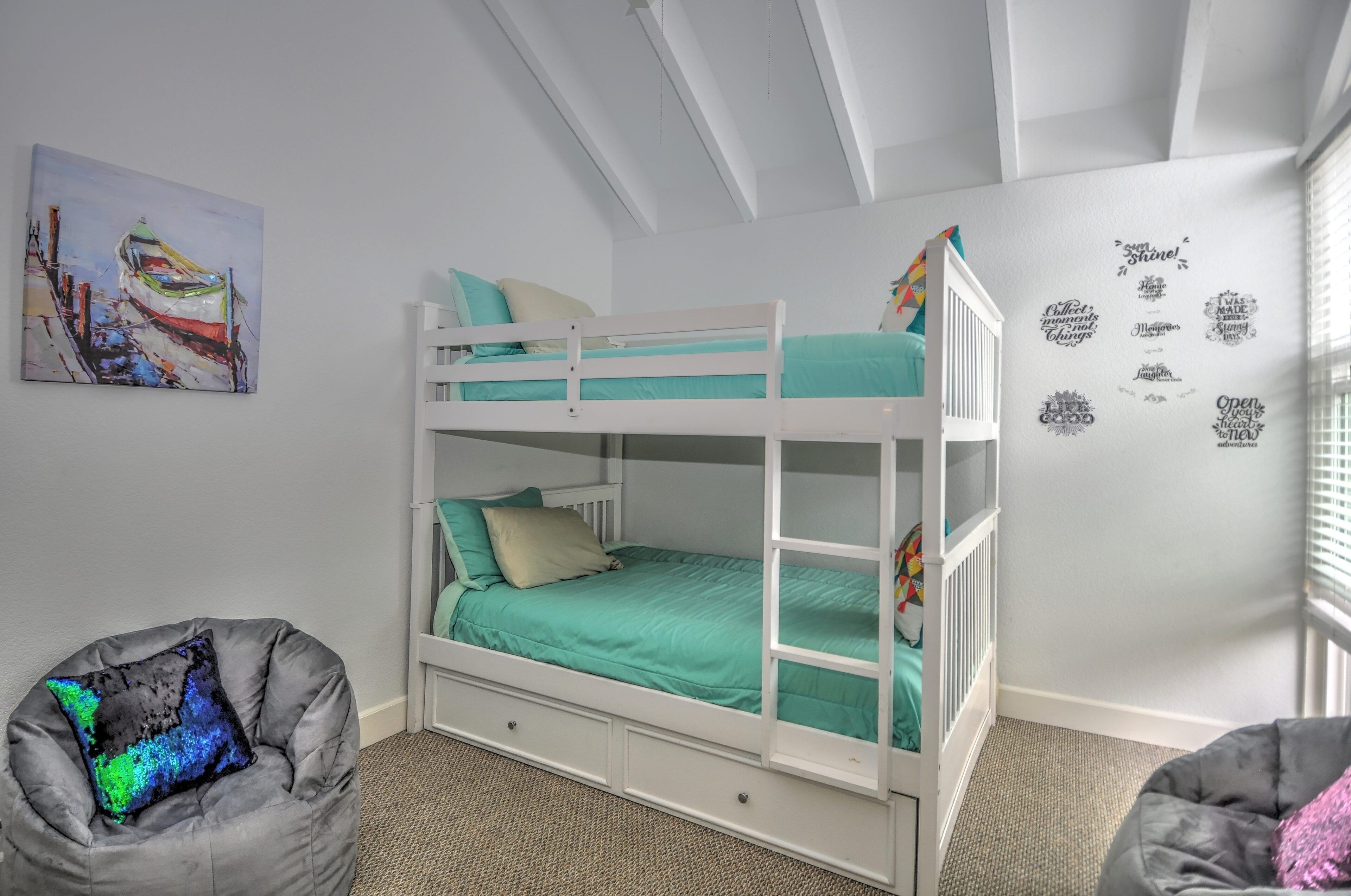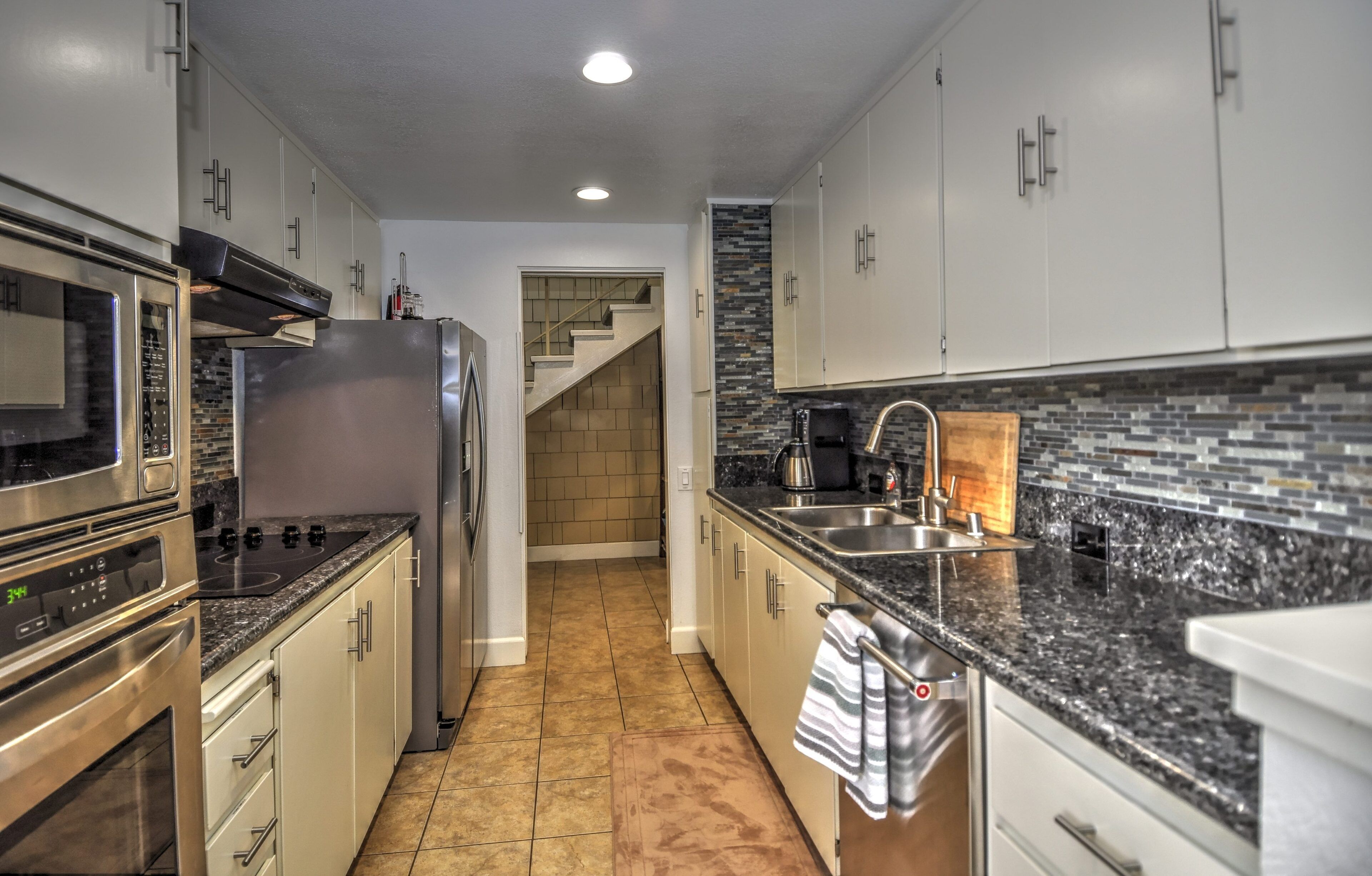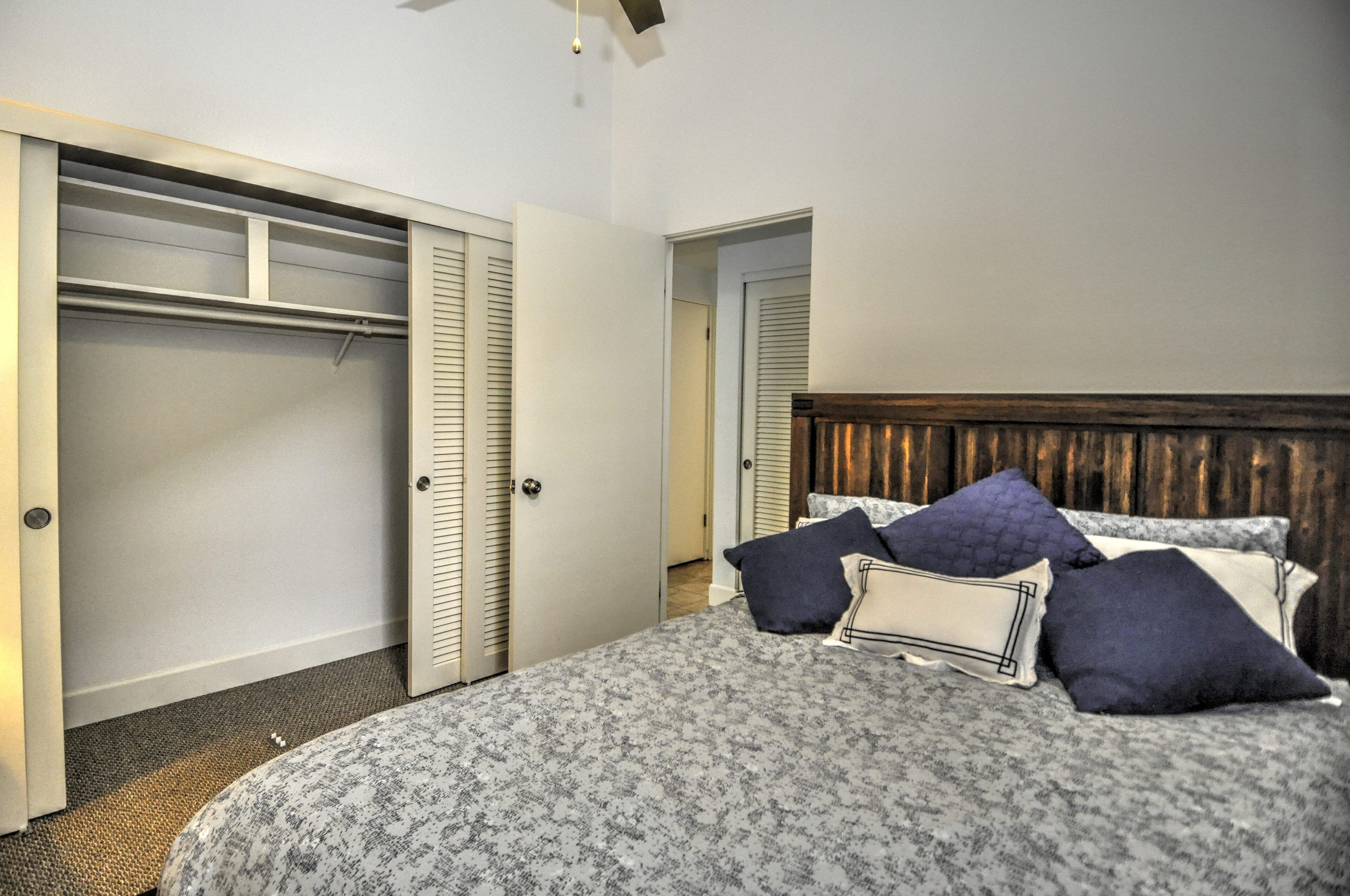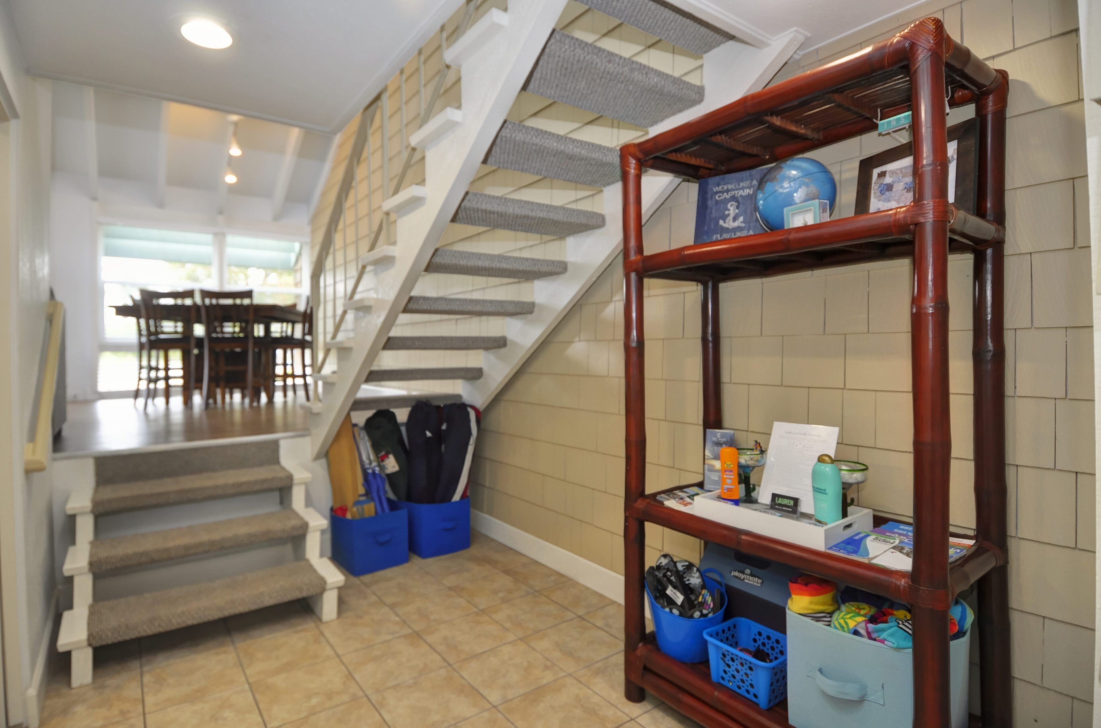 Stay and play in the Village by the Sea! Home is centered in the heart of Del Mar, walking distance to the beach, restaurants, shops, Del Mar Racetrack, and more. With an ocean view from the main living area, back patio, master bedroom, and grassy front yard, this home is ideal for relaxing and celebrating life in a setting suited for singles and families. Throughout the home, you will find open vaulted ceilings above classy, comfy furnishings flowing with a sand and sea theme creating it's own unique vibe. For ultimate comfort, ceiling fans hang in each room complimenting the air conditioning. Granite countertops, stainless steel appliances, and digital washer and dryer for the ease of being at your own home. The upstairs master is home to an exceptionally comfortable heavenly king size bed, sea colored Berber carpeting, saturated by closet and storage space. The upstairs bathroom is attached to the master, it has a beautiful spacious granite counter top, sand tiled flooring with a separated custom shower to open your days and eyes in style and close your days with soothing surroundings to melt you into bed. The 2nd bedroom nestles a cozy queen sized bed, fit for a queen. Sea colored Berber carpeting, with lots of closet space and a privacy wall outside the window, this room is a sweet sleeper! The 3rd bedroom is home to a full/full bunk bed with a twin trundle sitting atop sea stained Berber carpeting, accompanied by roomy closets. The f/f/t bunk/trundle provides plenty of room for kids but large and comfortable enough to accommodate the groups too! The downstairs shared bathroom is situated between bedroom 2 and 3, making it perfect for sharing. It presents a granite counter top, sand tiled floor sealed with a shower/bath combo. All bedrooms and bathrooms are sure to bring gratitude and comfort to all the days of your stay, no matter which side you get out of bed!