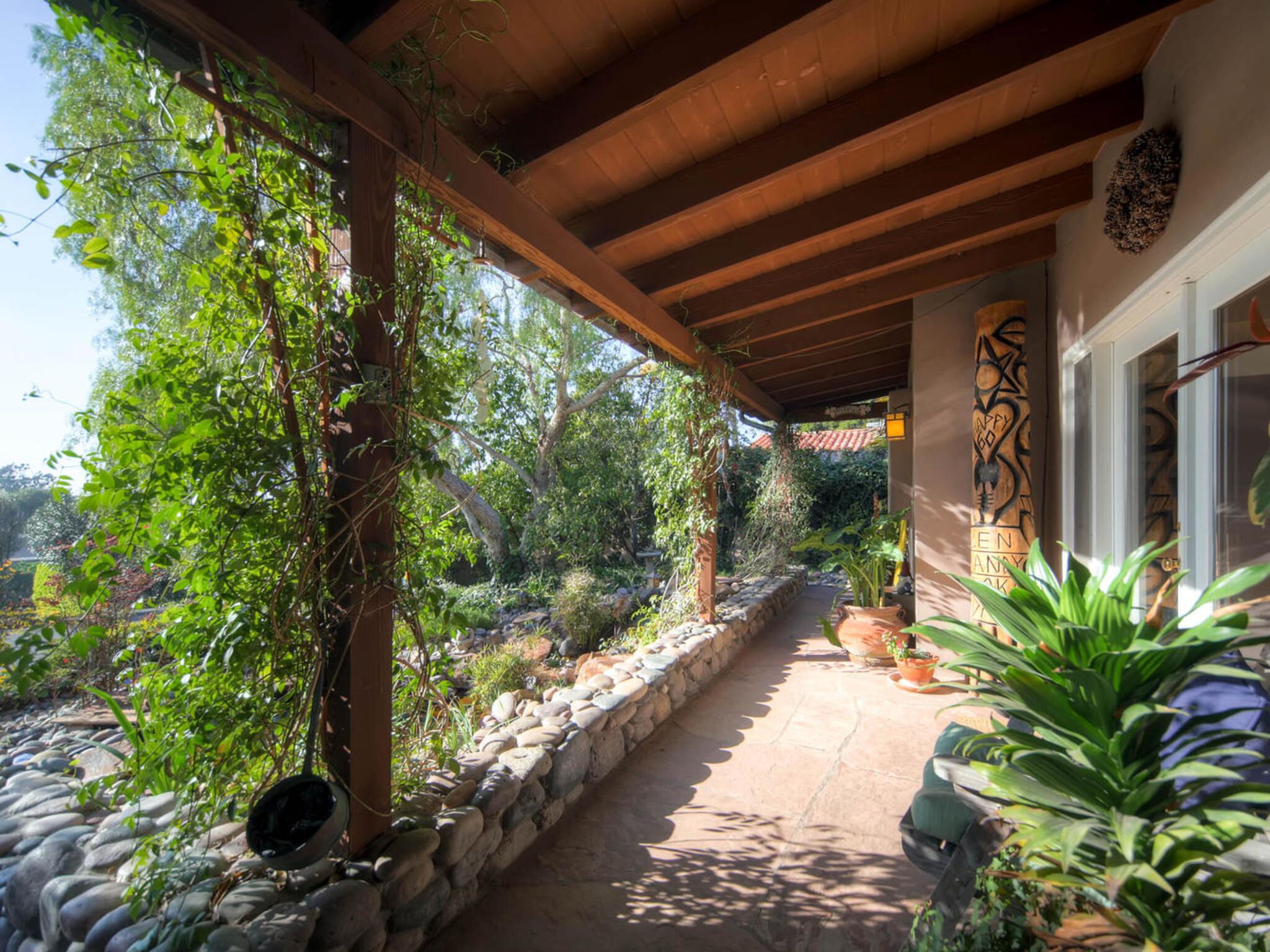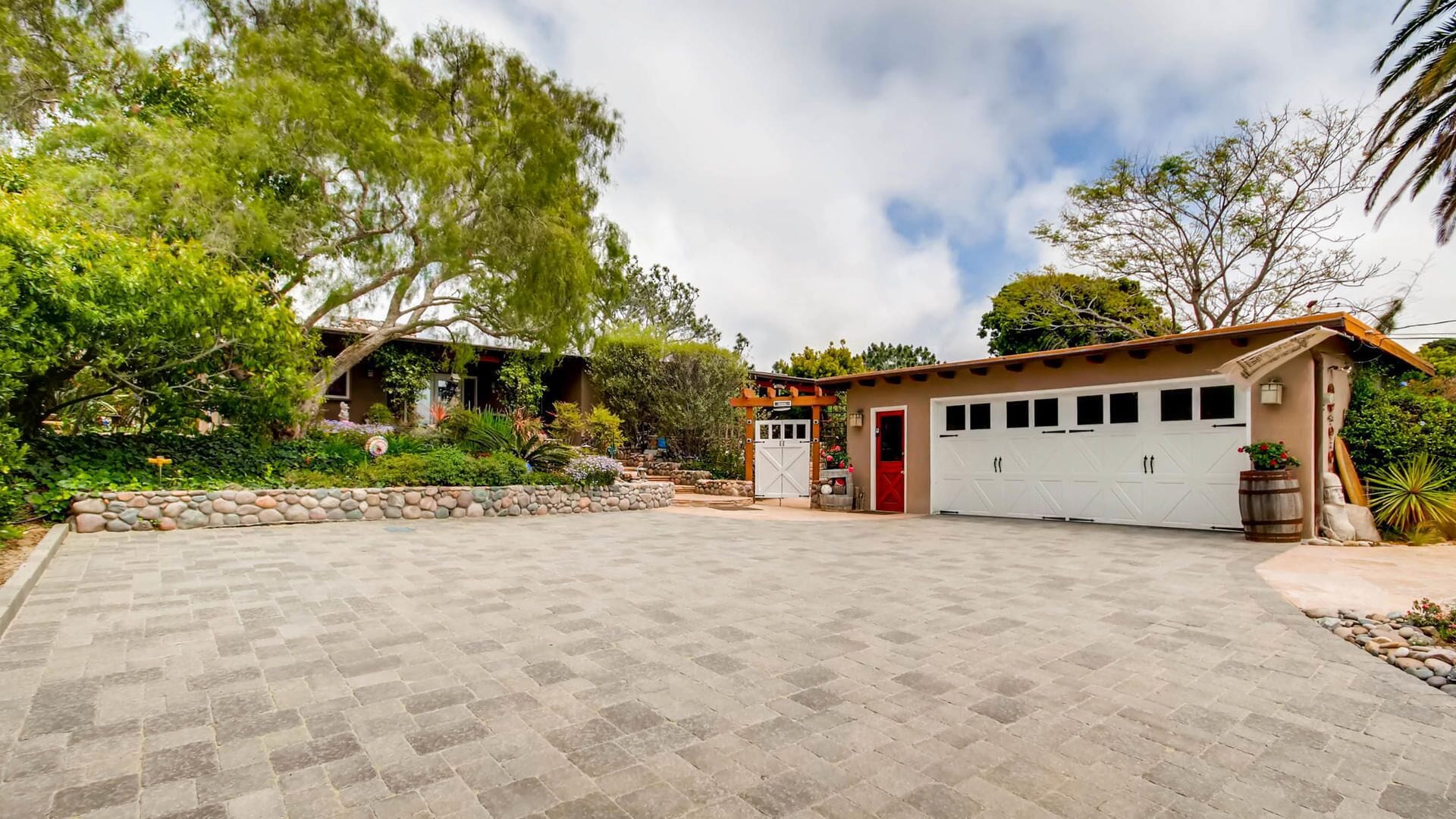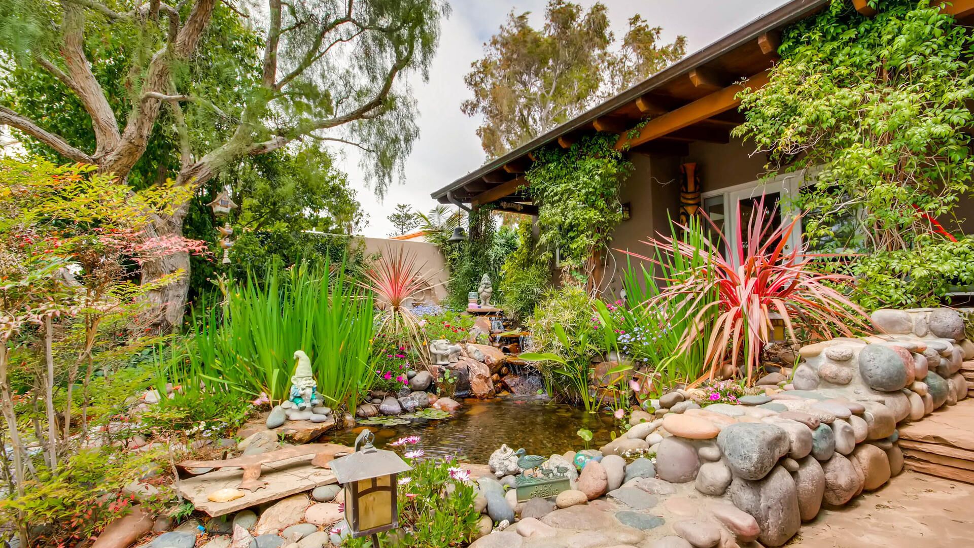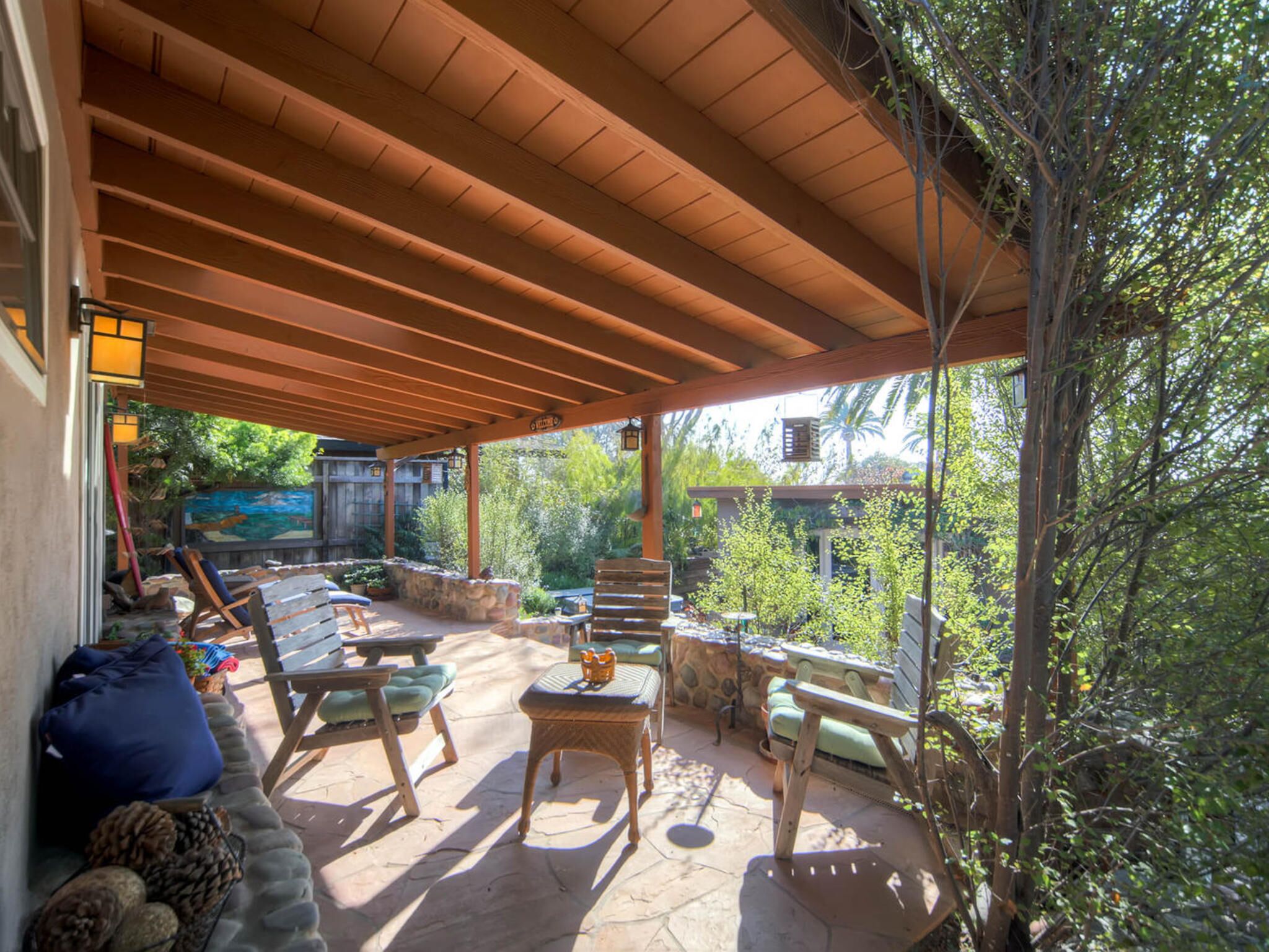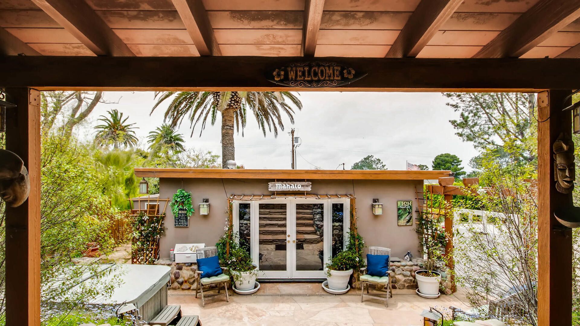 Del Mar Retreat on 2/3 Acre-Canyon, Ocean and Mountain views. Outdoor jacuzzi! Enjoy this special vacation home among the Torrey Pines in Olde Del Mar with ocean and canyon views, close to all, however with privacy and serenity. This beautifully furnished home accommodates 6 with 1 king sized bed, and 1 queen sized bed and two long twin beds. The open beam wood paneled living room offers a cozy oversized wood burning fireplace and opens to the wide veranda overlooking Crest Canyon and the easterly views of the mountains. There are 3 HD TV's one in the living room, one in the master bedroom, and one in the kitchen. The kitchen also features its own wood burning fireplace and is fully equipped with stainless steel appliances, flatware, serving dishes, and all entertaining necessities. Take a moment to enjoy the ambience of one of the three patios with the sound of the birds, fountains and waterfall from the pond. The spacious property also includes a very private outdoor shower, outdoor Sundance jacuzzi, outdoor barbeque, access to hiking trails in Crest Canyon, many great restaurants and abundant stores for shopping. There is plenty of private parking on the property for guests. The Del Mar Beach and Seagrove Park are within walking distance or just a short drive if preferred. It's truly a (re)treat to stay in this home. A Magical Place!The owner will require guest to sign the included Short Term Rental Agreement and Rental Rules and Addendums and provide a valid drivers license in order to gain occupancy to the property.
