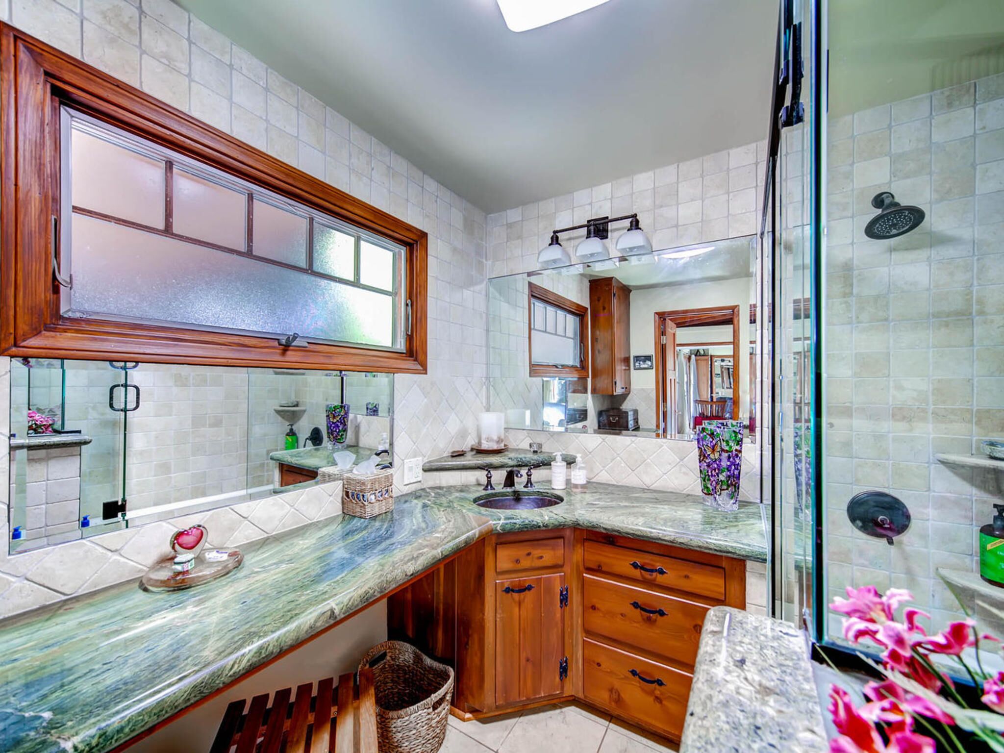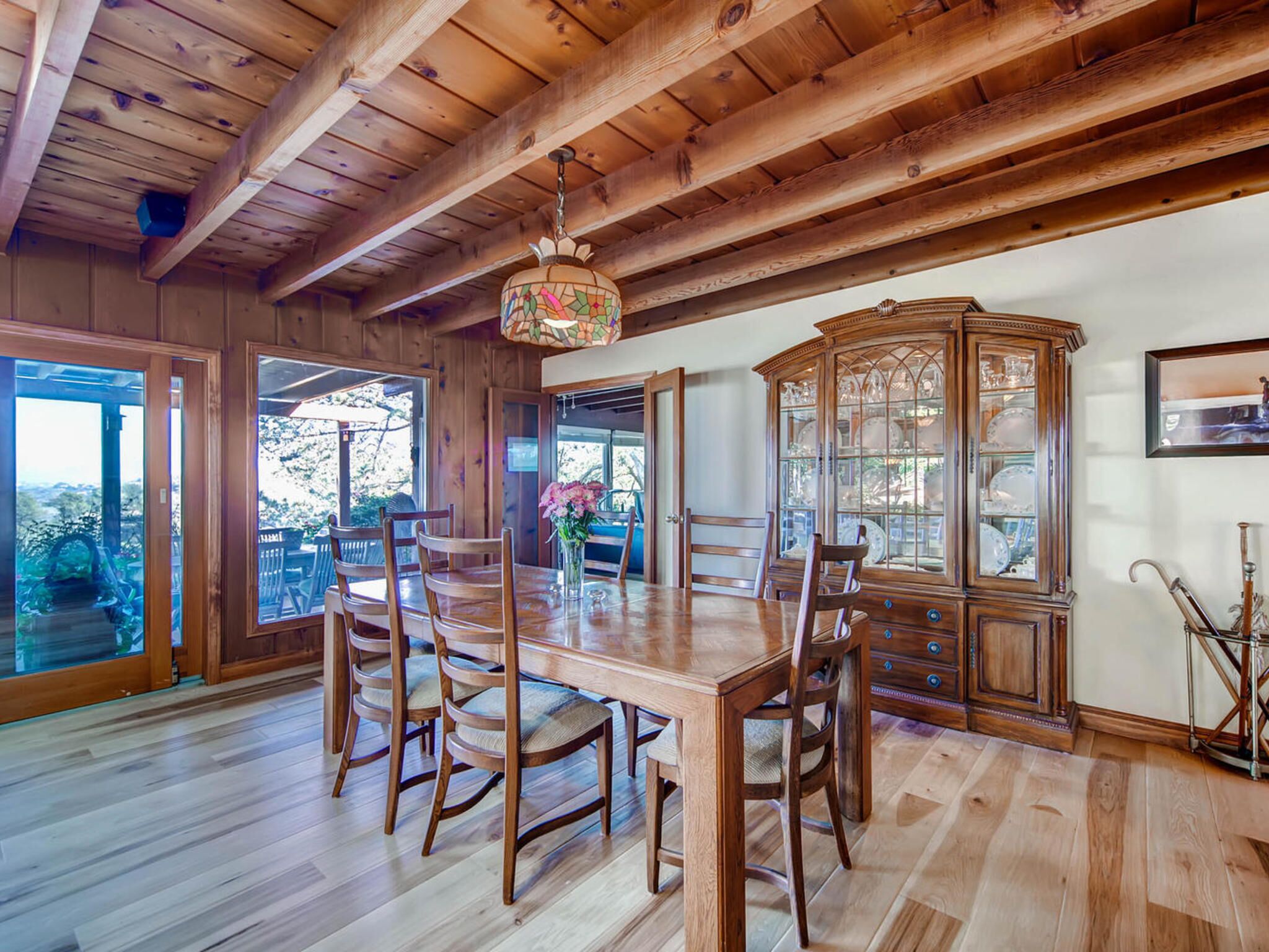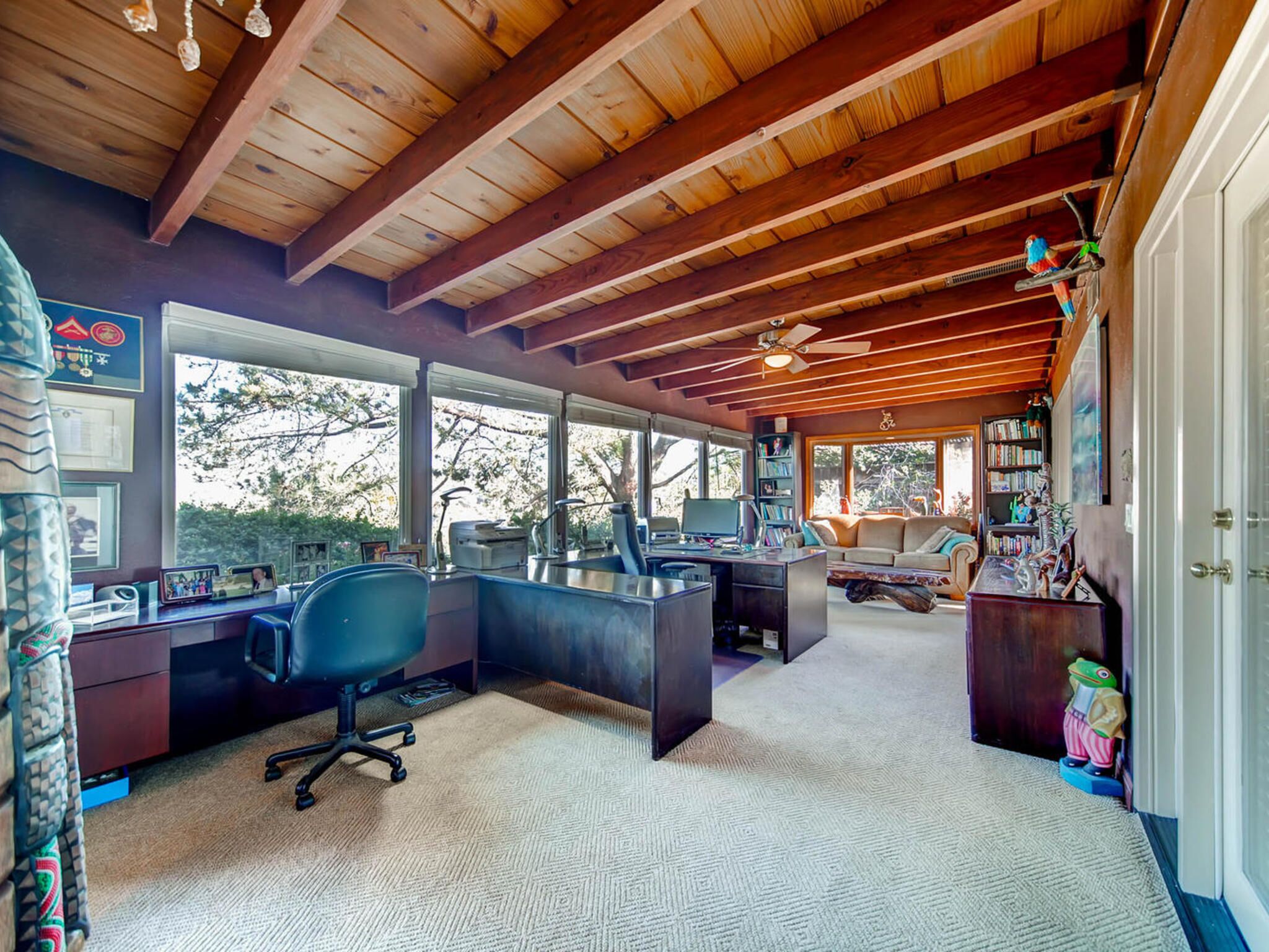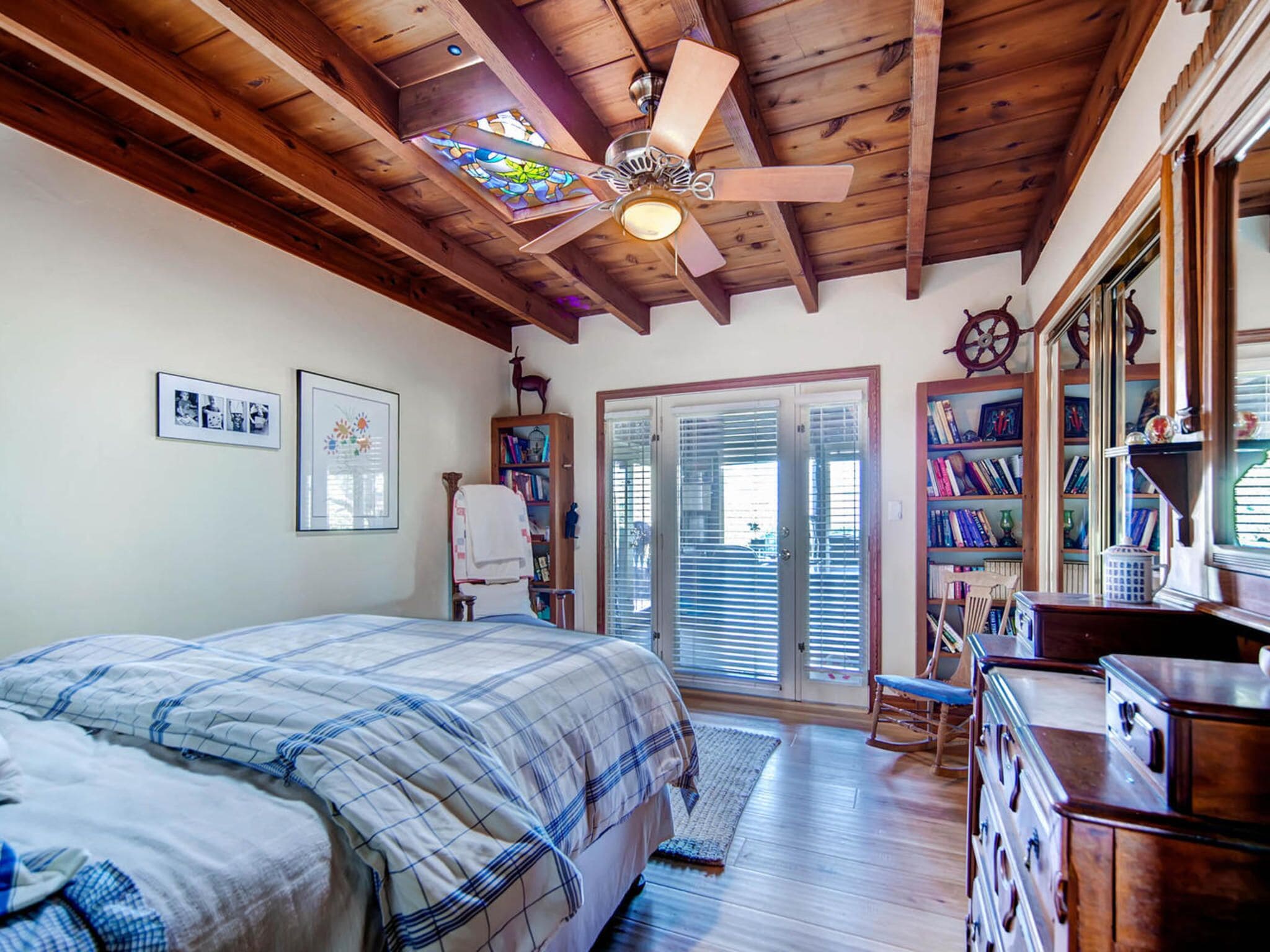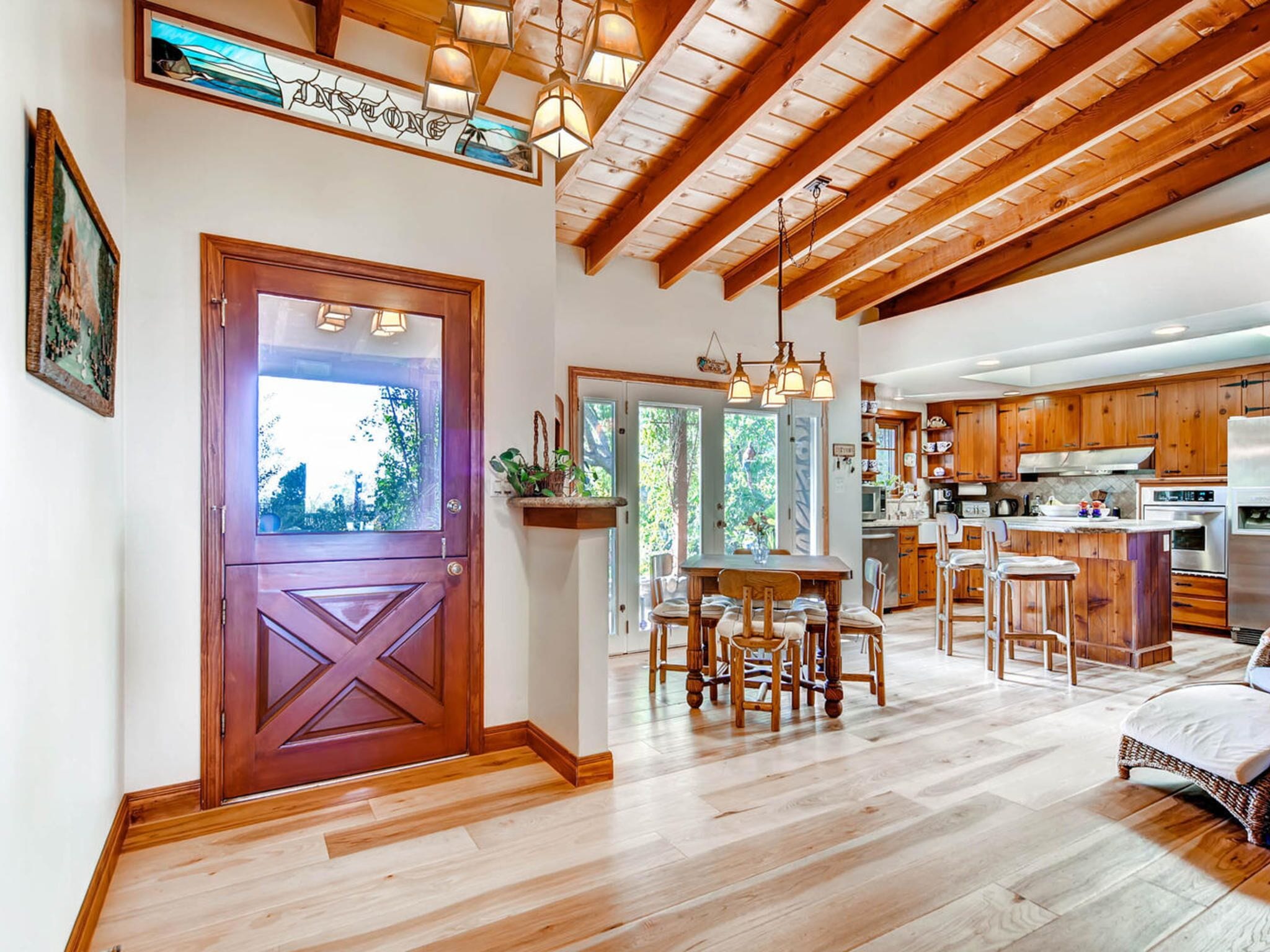 Del Mar Retreat on 2/3 Acre-Canyon, Ocean and Mountain views. Outdoor jacuzzi! Enjoy this special vacation home among the Torrey Pines in Olde Del Mar with ocean and canyon views, close to all, however with privacy and serenity. This beautifully furnished home accommodates 6 with 1 king sized bed, and 1 queen sized bed and two long twin beds. The open beam wood paneled living room offers a cozy oversized wood burning fireplace and opens to the wide veranda overlooking Crest Canyon and the easterly views of the mountains. There are 3 HD TV's one in the living room, one in the master bedroom, and one in the kitchen. The kitchen also features its own wood burning fireplace and is fully equipped with stainless steel appliances, flatware, serving dishes, and all entertaining necessities. Take a moment to enjoy the ambience of one of the three patios with the sound of the birds, fountains and waterfall from the pond. The spacious property also includes a very private outdoor shower, outdoor Sundance jacuzzi, outdoor barbeque, access to hiking trails in Crest Canyon, many great restaurants and abundant stores for shopping. There is plenty of private parking on the property for guests. The Del Mar Beach and Seagrove Park are within walking distance or just a short drive if preferred. It's truly a (re)treat to stay in this home. A Magical Place!The owner will require guest to sign the included Short Term Rental Agreement and Rental Rules and Addendums and provide a valid drivers license in order to gain occupancy to the property.