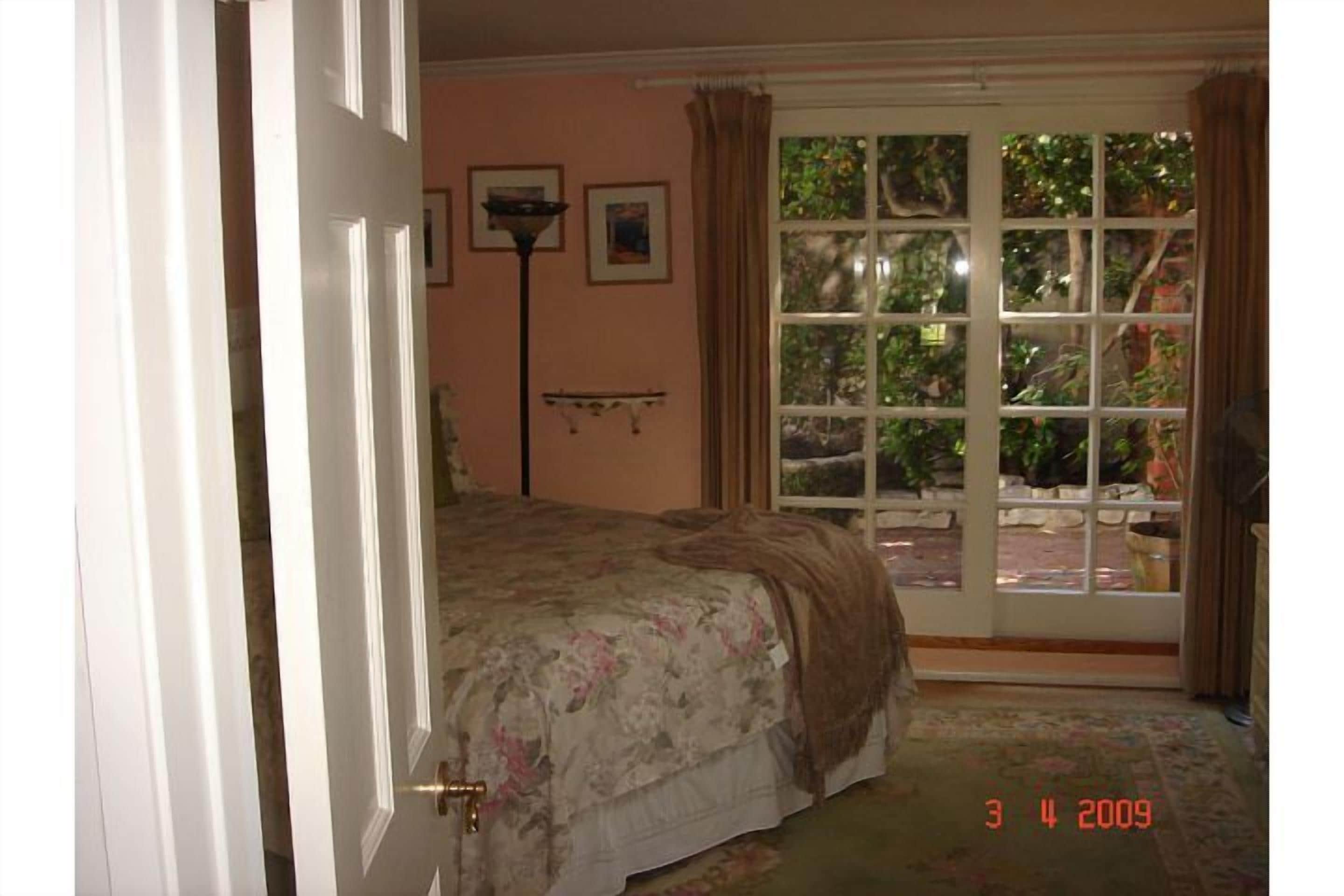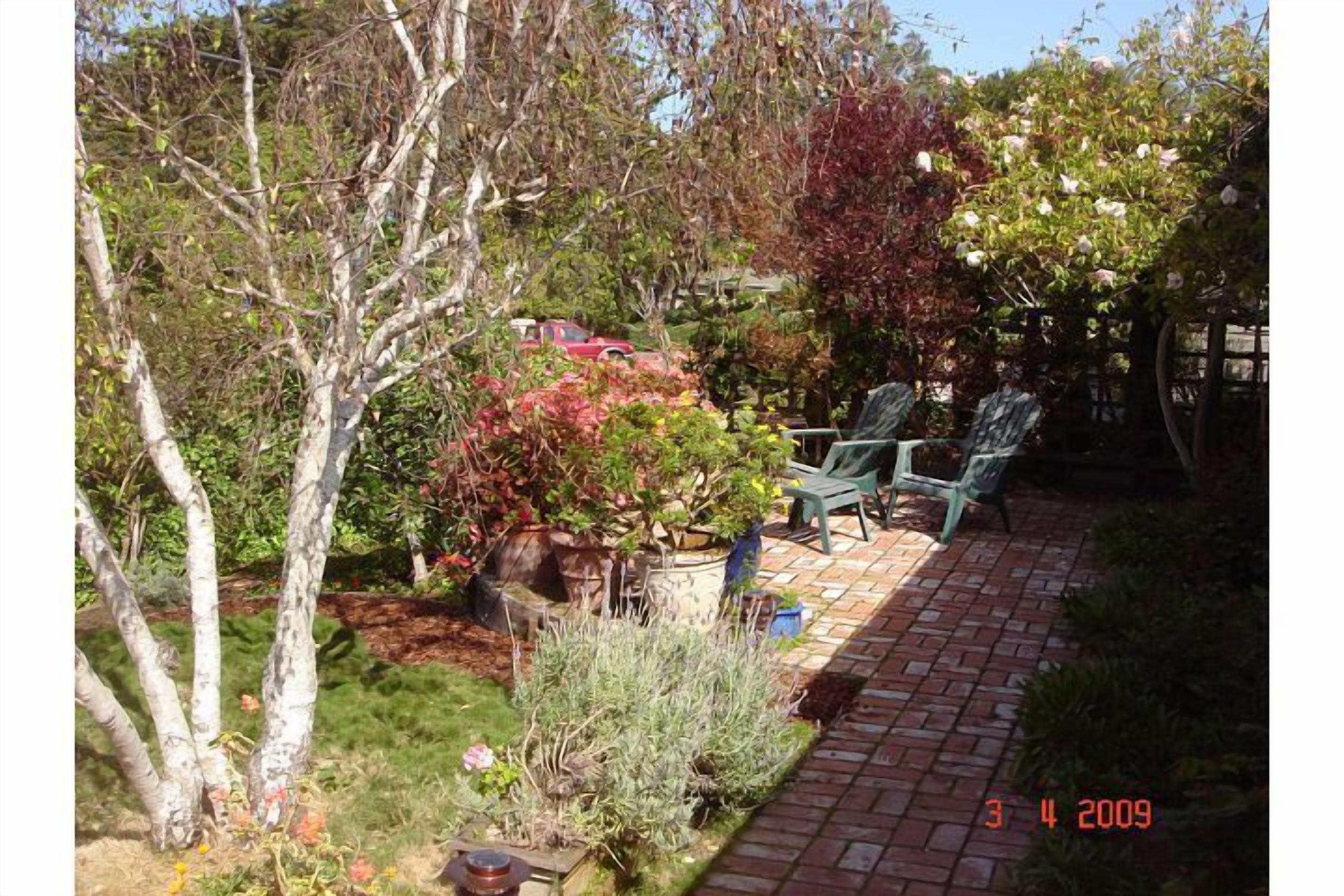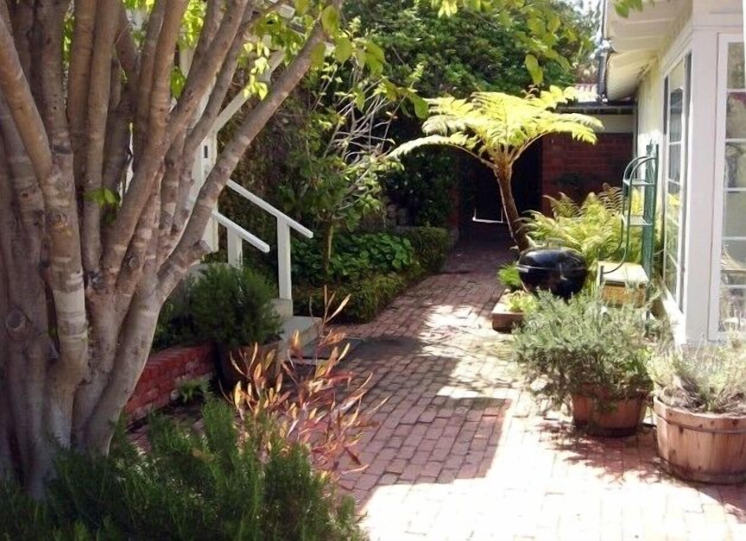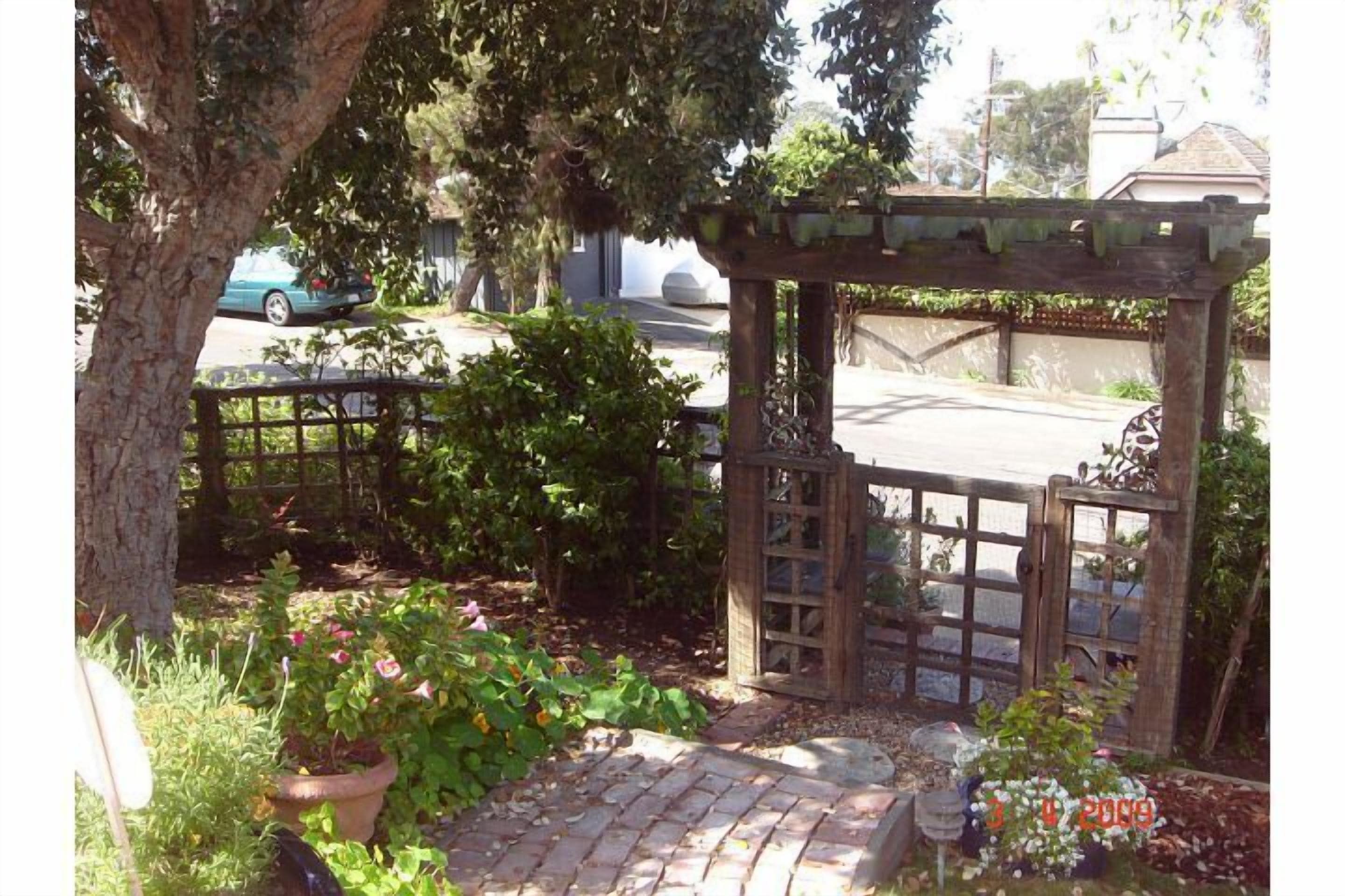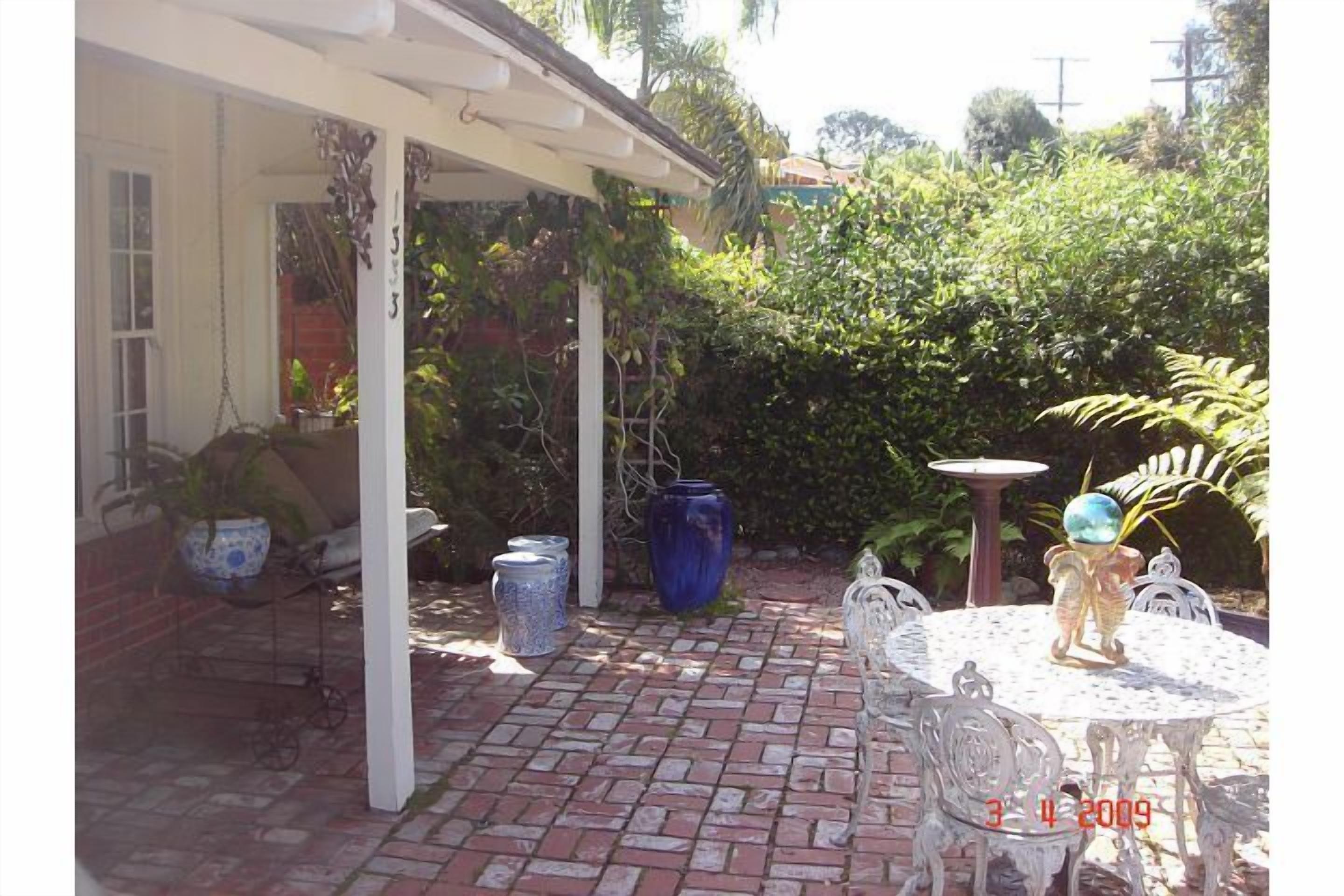 Enchantment in Old Del Mar Here's your opportunity to experience being pampered, while maintaining your privacy at the Enchanted Cottage! Located only three blocks from the beach and one block south of the beautiful Del Mar Plaza, you can enjoy all that the area has to offer without the crowds and mess of 'on-the-sand' properties! The cottage, (which is a NO SMOKING property), is completely landscaped with fountains, flowers, and fruit trees, and enclosed with custom fencing. There is a 'peek-of-the-ocean' view from the front of the house. Indoors, you can relax with a 46' HD flat screen tv, or keep the children entertained with the Play Station 3.From one of the front patios, you can relax in the porch swing savoring your morning coffee - all the while being entertained by the parade of locals, pets & tourists on their way to the beach or Starbucks! Or, head down to Starbucks yourself for coffee w/the locals (one block downhill) & enjoy the people parade there... In the evening have a glass of wine on the front terrace, sitting in wrought iron chairs by the warm glow of the chiminera - and watch the beautiful play of colors in the sky as the sun sets into the ocean (Yes, you can see the sunset from your front terrace!) Or walk to the Del Mar Plaza for dinner (Il Fornio, Pacifica del Mar, Epazotes - all have spectacular ocean views and spectacular menus)- just a block north... The house itself is my personal retreat (although it's close to everything, it's very quiet) and has been in my possession for seven years now. During this time it has been completely renovated, and I continue to treat it like my 'baby'. The furnishings include a cheerful mix of antiques, wicker, French country pieces... the living room features a gas fireplace and overlooks the front gardens and 'peek-of-ocean' view.The dining nook is just off the front entrance and also has windows overlooking the front garden area. The kitchen, located in the center of the cottage, has an arched pass-thru into the living room (so you can cook while still being part of the activities). Featured in the kitchen are a hand-painted floor, Viking appliances (range & dishwasher) in a light yellow ('lemonade' to Viking) and stainless steel. The east end of the kitchen merges into a glassed-in sitting/dining area opening onto the back courtyard and gardens; it is light & airy with sky-lights. The master bedroom (the 'peach' bedroom) features painted French furnishings and has an extremely comfortable double 'pillow' (queen-size) bed; opening onto its own private atrium area, complete with fountain, ferns, and roses, it is very much a haven. Birds of all kinds visit and add their songs to the gardens. A full bathroom with glassed-in shower is adjacent.On the other side of the house are two bedrooms and a separate bath, which includes a shower and large tub. The back bedroom, (the 'green' bedroom) features an antique walnut double bed and dresser set with painted flowers. French doors opening onto the courtyard and gardens create a spacious and airy ambience. For your comfort, the famous 'Temprapedic' mattress (a double) is provided - one of the most comfortable mattresses on which I've ever slept!The front bedroom (the 'blue' bedroom) contains a white wicker day bed which can be set up as a king, two twins, or one twin/daybed - each version contains a double layer of the'Temprapedic' toppers on top of the feather bed and mattress. Roses and fruit trees peek at you through the front window... The blue bedroom looks outon one of the front terraces and gardens and is the sunniest room in the cottage.The house itself feels cozy, yet is spacious with an 'indoor-outdoor' feel, and is suitable for children and pets (the landscaping was designed with dogs in mind). The property is completely fenced, with gardens galore. The entire focus of my residence is of tranquility, relaxation, romance and laughter...Everything possible will be done to customize your stay to fit your requirements - including a welcome package w/flowers & wine -or anything else you might need (including maid service for an additional charge). My wish for you is to truly have an enchanted experience at my cottage!Keywords: Beach Cottage w/Fenced Yard