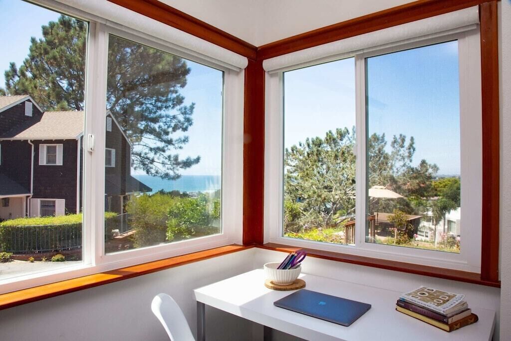 Relax & Enjoy the Ocean Views at SeaView Cottage! THINGS TO LOVE- Incredible hillside ocean views- Family-friendly property and neighborhood- Spacious backyard with BBQ- A short walk to charming downtown Del Mar and close to the beach- Work-friendly internet and Wi-Fi- If your property is available for early check-in, we will text you on your arrival date- Committed to sustainabilityTHINGS TO KNOW- Rarely needed with our ocean breeze but AC only in the 3 bedrooms. - Parking can be tight, 1-2 cars maximum- Pet-friendly, but the yard is not fenced- Please buy travel insurance if your plans may change within 30 days of arrivalABOUT US- Brenda is an engineer and mother of four- Our small team lives nearby in Solana Beach, Encinitas, and Carlsbad- Our team REALLY cares with more than 4000 5-star reviews across all platforms- Eco-friendly practices include reusable cloth napkins, filtered water, composting and recycling options, laundry pods, drought tolerant landscaping, reusable beach gear/cooler- Find us at BeachHausRentals (dot you-know-what) and save THE DEEP DIVEAll BeachHauses are engineered for simple, easy living. All BeachHauses feature self check-in and check-out. They're stocked with beach toys, beach towels, bath towels, laundry detergent, shampoo, conditioner, olive oil, and cooking-ready kitchens. Welcome to the SeaView Cottage: You're looking forward to a month enjoying California's golden coast – that’s the rental minimum for this residential area located on the hill in Olde Del Mar above L'Auberge overlooking one of San Diego County’s finest white sand beaches. You wake up fresh and stroll down to the coffee shops in the village or to Powerhouse Park on the beach just a 1/2 mile away. Or head north to the charming Cedros Design District in Solana Beach.Either way, come home to your coastal retreat, our old school charming cottage including updated kitchen and bathrooms, and fresh furnishings that are always fun and never fussy. Experience California Dreaming at its best with our outdoor patio, full size grill, and of course, the backyard deck for never ending amazing views and sunsets. You’ll feel at home here and at the same time, worlds away. Our WiFi is "screamin" fast and with desks in every room you can combine your work/school/play activities with ease. We are pet friendly but the yard is not fenced and we may not be the best fit for toddlers or little ones that may stray to the edges of the yard where the drop off (although cushioned with ice plant) to the neighbors yard is significant.Easy-going eclectic neighborhood near Del Mar- Let your dog play at Dog Beach & enjoy the volleyball courts too- Go to the Del Mar racetrack and fairgrounds nearby- Eat and shop in charming downtown Del Mar- Enjoy a family walk on the Coast to Crest TrailFeel at home in our beloved North County- We can recommend local photographers and full-sized crib rental- Discounts at local YogaSix studio- Swanky shopping nearby in the Cedros Design District- Hiking, parks, and beaches galore- Del Mar racetrack and fairgrounds nearby- Disneyland, San Diego Zoo, Legoland, and SeaWorld all around an hour awayHouse Rules:* No parties or events * No smoking * Quiet hours are strictly enforced 10:00PM-8:00AM * Maximum parking capacity is 2 cars (stay inside of white lines) * Obey all signs in the yard to stay away from the sheds and out of the gardens * Respect our neighbors
