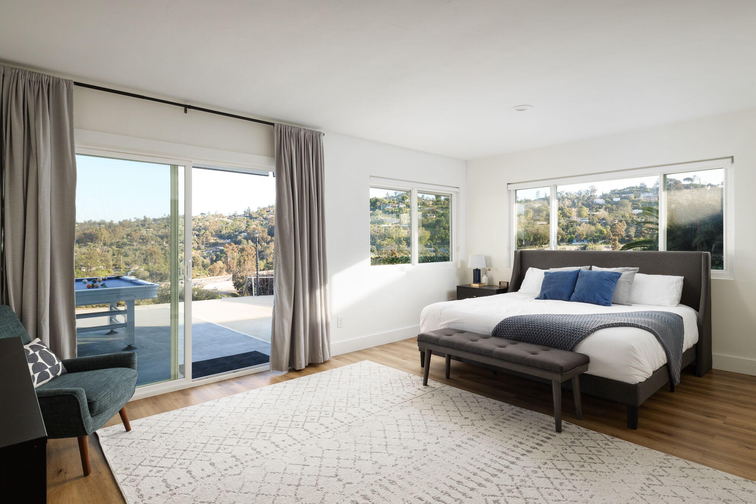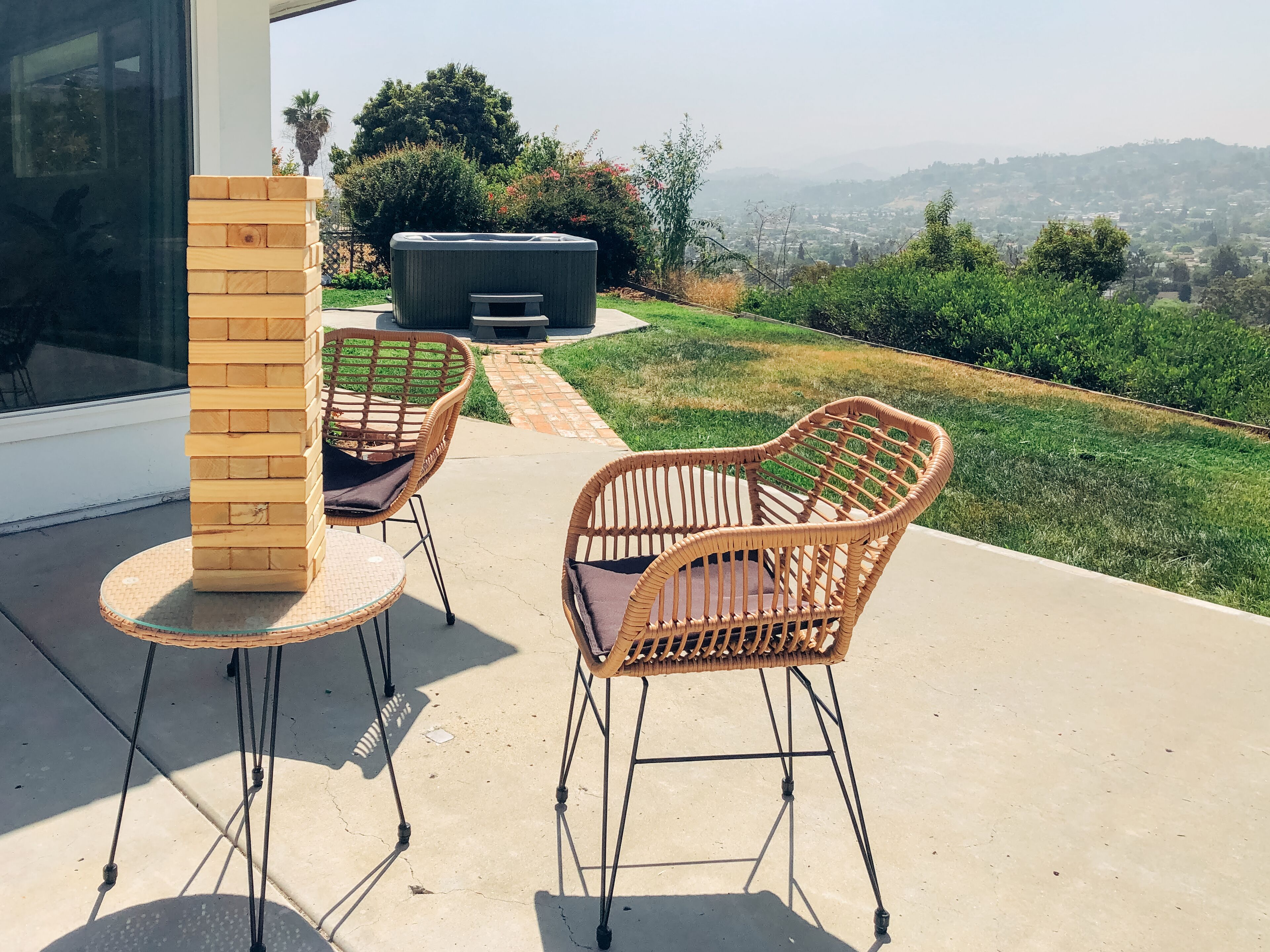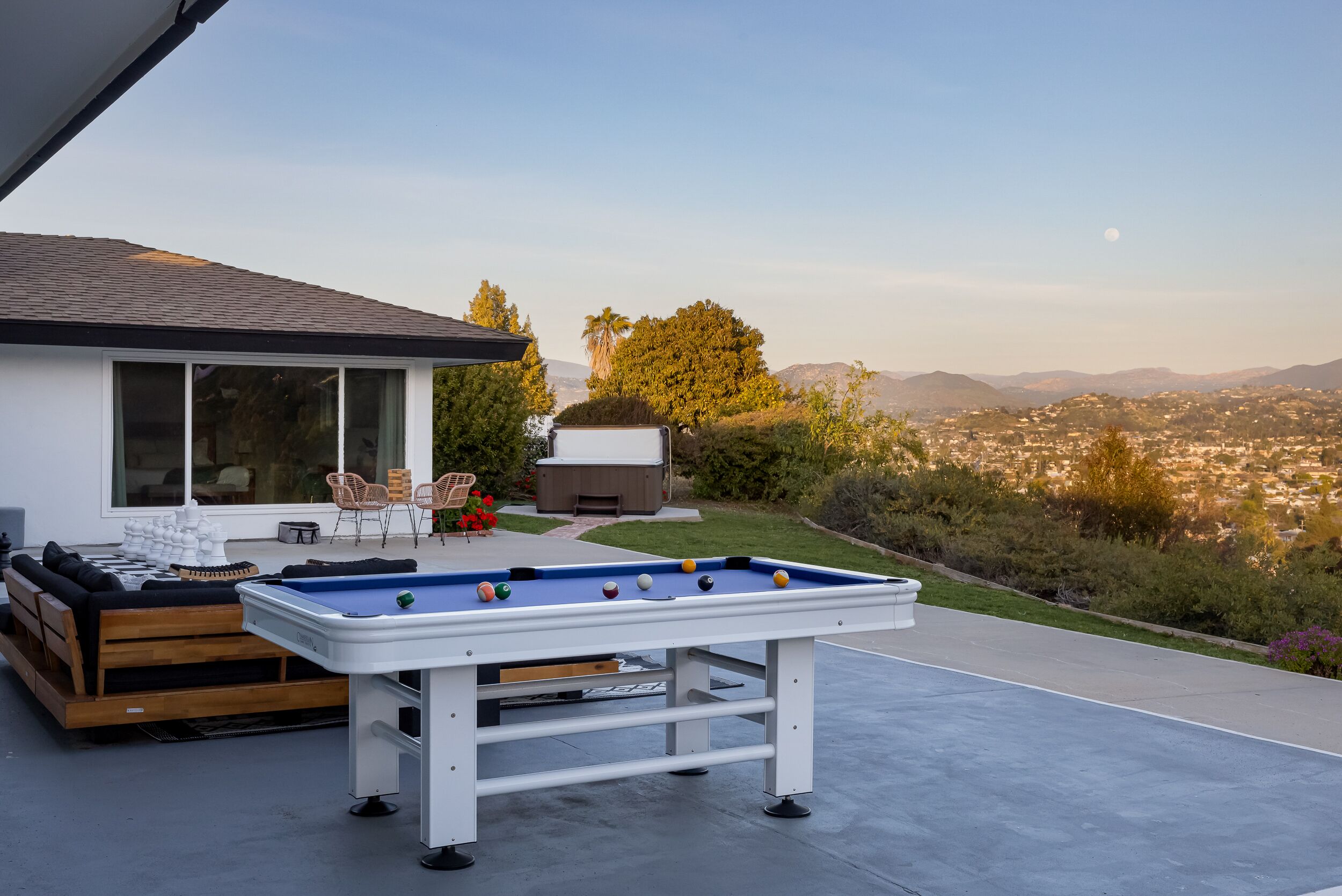 Spacious & Fun - 5BR/4BA • Pool Table • Hot Tub Experience sunny San Diego from this 5 bedroom, 4.5 bathroom foothill home. Wake up to panoramic views of the surrounding hillsides and gather in the spacious living and dining rooms. The home is conveniently located just 15-20 minutes from San Diego's famous beaches and top attractions. After a day of exploration, unwind in the backyard area featuring a hot tub, fire pit, pool table, and life-sized chessboard.• 4 En-suite bathrooms: Four of the five spacious bedrooms come with their own en-suite bathrooms, providing convenience and privacy for guests.• Stunning views: Enjoy breathtaking views of Cajon Valley and Mount Helix from the living area and various bedrooms, as well as from the backyard oasis.• Spacious, open-concept living: The expansive living area, dining room, and bar provide ample space for socializing, entertaining, and enjoying quality time with family and friends.• 5 Unique and comfortable bedrooms: Five distinct and thoughtfully designed bedrooms cater to various needs, ensuring a restful stay for every guest.• Fun-filled amenities: The backyard offers a large hot tub, pool table, modern fire pit with outdoor sectional, and life-sized chess game, providing endless entertainment for guests of all ages.• Kid-friendly: The Kid room is specially designed for children, with 4 twin beds, an Xbox Series S, a large smart TV, and bean bags, making it the perfect haven for young guests. Upon entering the Murray House, you'll be greeted by a bright and spacious open-concept living area, perfect for socializing and entertaining. The living room boasts floor-to-ceiling windows that showcase breathtaking views of Cajon Valley and Mount Helix, allowing natural light to flood the space. A 65-inch smart TV and a large, comfortable sectional provide ample seating for everyone to gather around and enjoy each other's company. A cozy fireplace adds warmth and ambiance to the room.Adjacent to the living room is the dining area, featuring a modern table with seating for 8 and a bar with additional seating for 4. The fully-equipped kitchen is a chef's dream, complete with high-quality appliances and plenty of counter space to prepare delicious meals for your group.The Murray House boasts five unique and thoughtfully designed bedrooms:Primary bedroom: This spacious retreat offers a king bed with a premium mattress, an en suite bathroom with a large walk-in shower and dual vanities, a workspace, and floor-to-ceiling windows that frame the captivating view of Mount Helix.West Wing: This inviting room features a king bed with a top-quality mattress, an en suite bathroom with a walk-in shower, a 55-inch smart TV, and remarkable views.Kid's Room: This fun-filled haven includes 4 twin beds (with two as a bunk bed), an Xbox Series S with a game pass, a large smart TV, bean bags, and an en suite bathroom with a shower-tub combo, ensuring endless entertainment for younger guests.Chic and Stylish Room: This fashionable space offers a queen bed with an ultra-soft mattress, an en suite bathroom with a walk-in shower, and an abundance of natural light.Cozy and Quiet Room: This room features a plush queen bed, a reading chair, ample natural light, and is the quietest room in the house, perfect for a peaceful escape.Stepping outside, you'll discover a backyard designed for relaxation and entertainment. Take in the views of the Cajon Valley and Mount Helix while soaking in the large hot tub, or challenge your friends to a game of pool on the outdoor table. Gather around the large fire pit with an outdoor sectional for evenings filled with laughter and conversation, or engage in friendly competition with the life-sized chess game.The Murray House is situated just outside of San Diego, one of the most sought-after vacation destinations in the United States. With its beautiful beaches, world-class attractions, and vibrant dining scene, San Diego offers an unforgettable experience for every visitor.Don't miss out on the opportunity to experience the ultimate vacation at the Murray House – a spacious haven filled with incredible amenities, designed to create lasting memories for you and your loved ones.
