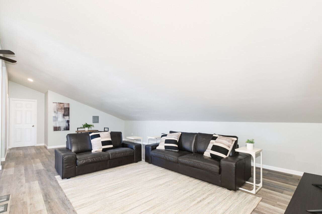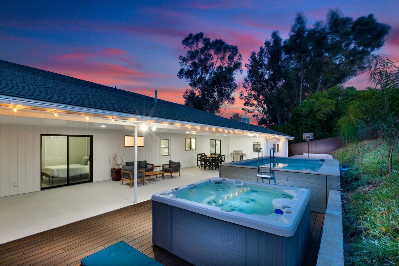 Sleep 31! Spacious 10BR Retreat: Mountain Views, Pool, Hot Tub, & Game Room Welcome to our expansive 6000 sq ft, 10-bedroom, 7-bath home, ideal for large gatherings! This retreat comfortably sleeps 31 and boasts breathtaking mountain views. Enjoy the game room with a pool table, air hockey, ping pong, foosball, and a huge flat-screen TV. The backyard features a basketball hoop, fire pit, above-ground pool, hot tub, and outdoor bar and grill. Perfect for relaxation and entertainment, our home has everything you need for an unforgettable stay!Key Features:☀ Panoramic 180-Degree Views☀ Expansive Covered Deck☀ Sleeps 31 people☀ 6000 sq ft Home☀ 10 Bedrooms all with in room Smart Tv's☀ 7 Bathrooms☀3 Master bedrooms with ensuite bathrooms☀ Basement Game Room with Pool Table, Ping Pong, Foosball, Air Hockey & 85 inch Flat-Screen TV☀ Basketball Hoop☀ Fire Pit☀ Above-Ground Pool☀ Hot Tub☀ Outdoor Bar and Grill☀2 Desks for Remote Work☀3 Living Rooms☆☆ BEDROOMS ☆☆Escape to your personal haven in one of our meticulously designed bedrooms, each providing a perfect blend of comfort, elegance, and serenity for a peaceful night's rest. Every bedroom has its own Smart Tv for your enjoyment. This expansive 6000 sq ft Fletcher Hills home offers privacy, stunning views, and ample space for large gatherings. With 10 bedrooms and 7 bathrooms, the house comfortably sleeps up to 31 guests, ensuring everyone has their own serene retreat.Main floor bedrooms: Each room enjoys Central Air/Heating & Smart TV1: Master bedroom with King bed, en suite bathroom & twin bed located in closet area for kids. Beautiful view of the mountains2: King bed 3: Queen bed Third floor bedrooms: Each room enjoys a Mini-Split & Smart TV4: King bed with ensuite bathroom5: Queen bed 6: 2 Queen beds 7: King bed Ground level bedrooms: Each room enjoys a smart tv. Note there is no AC on this level but stays pretty cool since it is lower level. You can access it from the driveway so no stairs needed to access however you will need stairs to access the main floor and kitchen.8: King bed with ensuite bathroom9: 2 Queen beds 10: 2 Queen bunk beds☆☆ BATHROOMS ☆☆Indulge in a rejuvenating experience, whether you prefer a quick rinse or a long soak, ensuring you feel refreshed and ready for whatever the day brings.Main floor bathrooms:1: Full bathroom with walk in shower in Master Bedroom2: Full bathroom with a Jacuzzi tub (not a traditional shower but does have hand held shower head)3: Full bathroom with bathtub3rd floor bathrooms:4: Full bathroom with bathtub5: Full bathroom with bathtub located in Master bedroomGround level bathrooms: 6: Full bathroom with walk in shower located in Master bedroom7: Guest full bathroom with walk in shower in game room☆☆ GAME ROOM ☆☆Experience endless fun in our expansive game room, perfect for all ages! Enjoy thrilling matches of ping pong, foosball, air hockey, and pool. Afterward, relax on our large sectional sofa and immerse yourself in movie nights on the impressive 85-inch Smart TV. Whether you're looking for excitement or relaxation, our home has it all!☆☆ OUTDOOR SPACE ☆☆Welcome to our backyard paradise! Get ready for an unforgettable outdoor experience. Shoot hoops with the basketball hoop, unwind by the cozy fire pit, or cool off in the refreshing above ground pool. For ultimate relaxation, slip into the soothing hot tub. Hosting a gathering? Our outdoor bar and grill area has you covered. It's the perfect spot for al fresco dining and creating cherished memories with loved ones. Come and enjoy the best of outdoor living right in our backyard!☆☆ LISTING ACCESS ☆☆As a guest, you will have access to the entire home. You will be given a keypad code to access our smart locks and never have to worry about carrying around keys. All codes are random, secured and deleted after every check out.☆☆ LISTING INTERACTION ☆☆We live in town and are always available by phone for your needs. We respect your privacy and visit the property only if you request us to for your needs.We pride ourselves on being responsive hosts so if there is anything you need at all please don't hesitate to reach out. We strive to provide an unforgettable experience and have you covered from check in to check out!☆☆ LISTING NEIGHBORHOOD OVERVIEW ☆☆Welcome to our charming neighborhood in El Cajon, CA! Nestled in a tranquil area, our location offers a blend of outdoor recreation, cultural attractions, and dining experiences, ensuring a memorable stay for our guests.☀Renette Park: A neighborhood park offering outdoor activities such as picnicking, walking, and playing sports.☀Wells Park: Another nearby park with amenities for recreation and relaxation.☀Knox House Museum: Explore this historic house museum showcasing the early pioneer days of El Cajon, located just a short distance away.☀El Cajon Mountain Trail: Thrill-seekers can tackle this challenging hiking trail nearby for stunning views and outdoor adventure.☀Olaf Wieghorst Museum and Western Heritage Center: Learn about the life and work of renowned Western artist Olaf Wieghorst and explore exhibits showcasing Western heritage, situated within the vicinity.☀El Cajon Historical Society Museum: Discover local history and artifacts at this museum, offering insights into the area's past.☀Tiramisu Trattoria:Offering authentic Italian cuisine including pasta dishes, seafood, and desserts, located near Tyrone St.☀Cali Comfort BBQ:Known for its mouthwatering BBQ dishes, including ribs, brisket, and pulled pork sandwiches, situated within a short distance of Tyrone St.☀Los Panchos Taco Shop: A local favorite for Mexican fare, serving up delicious tacos, burritos, and other traditional dishes, conveniently located nearby.Whether you're seeking outdoor adventures, cultural experiences, or simply a relaxing retreat, our neighborhood has something for everyone. We're excited to host you and ensure you