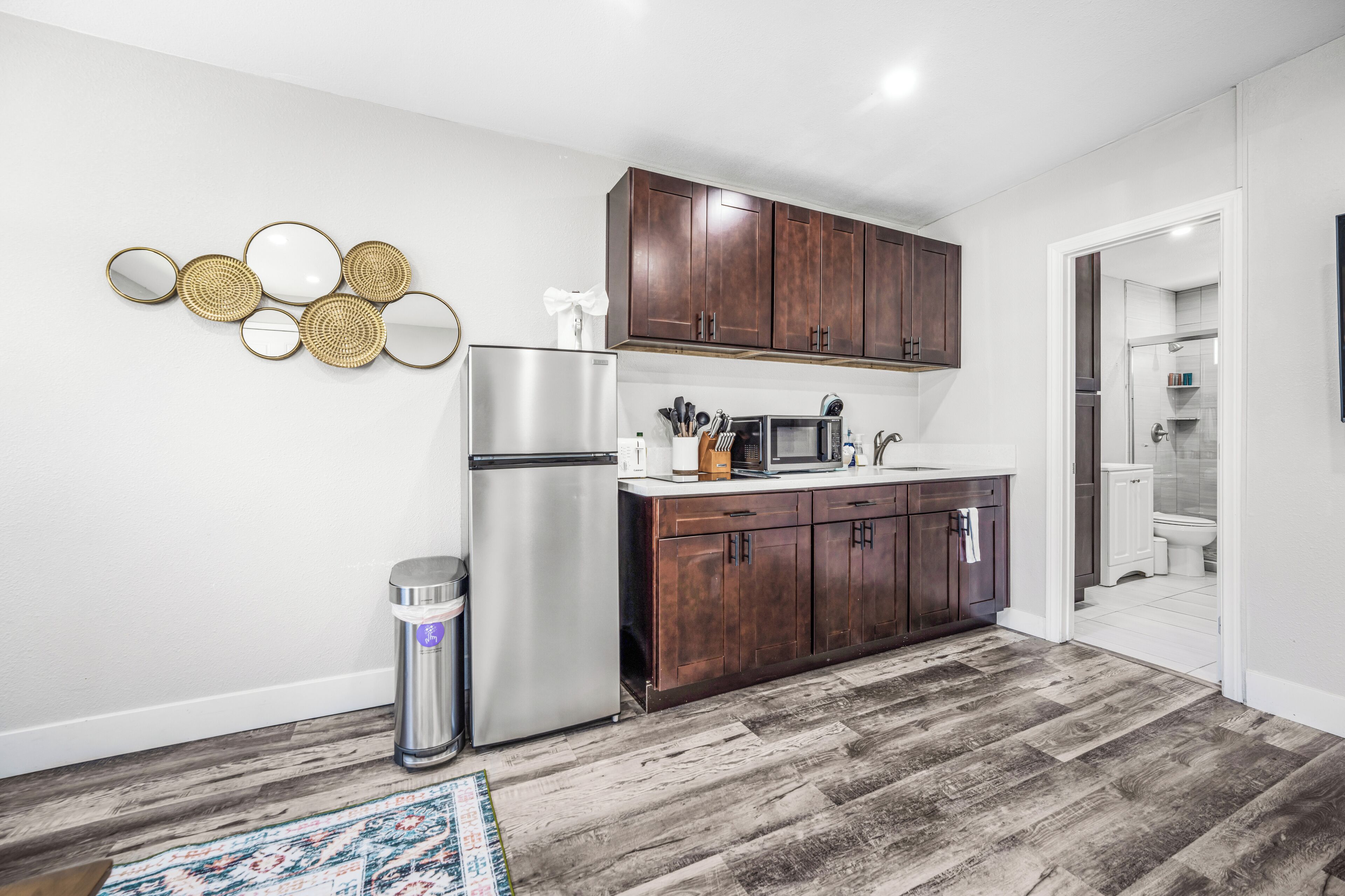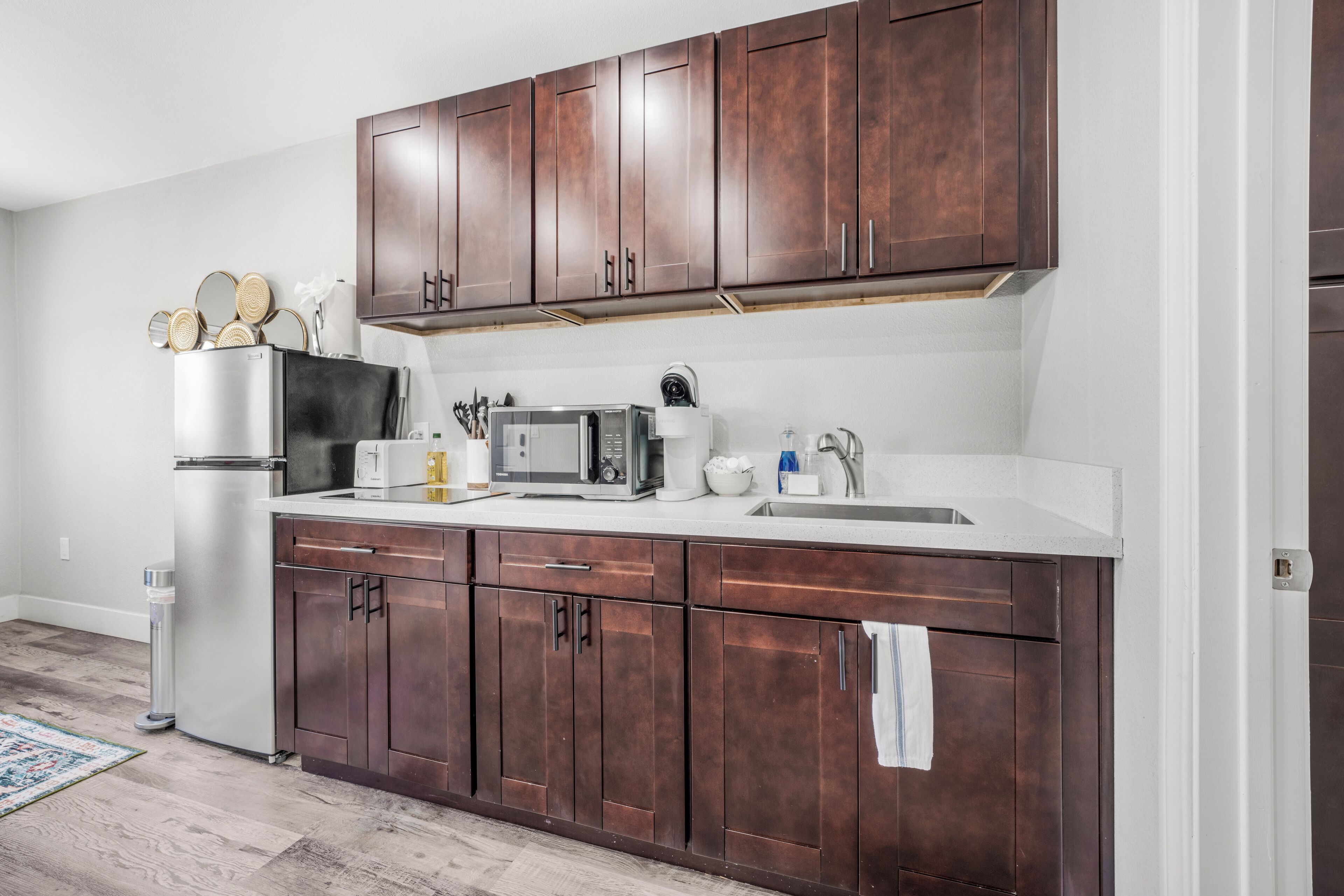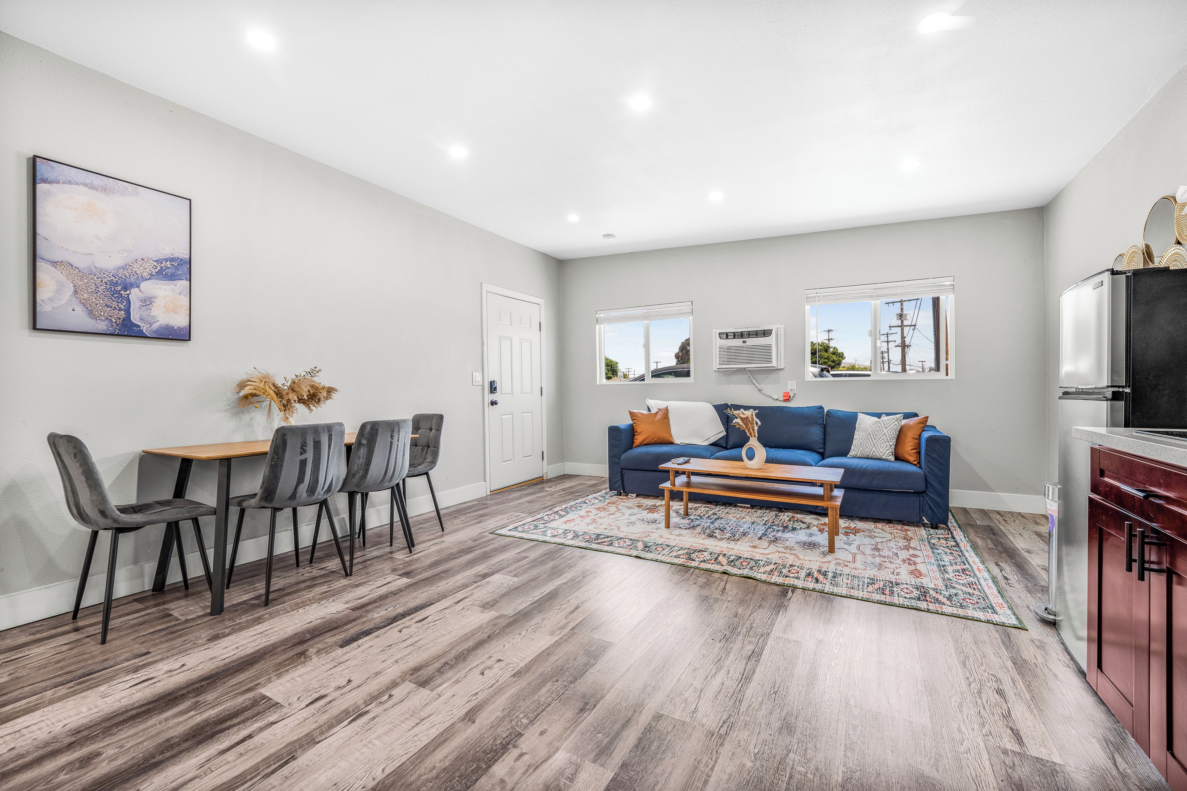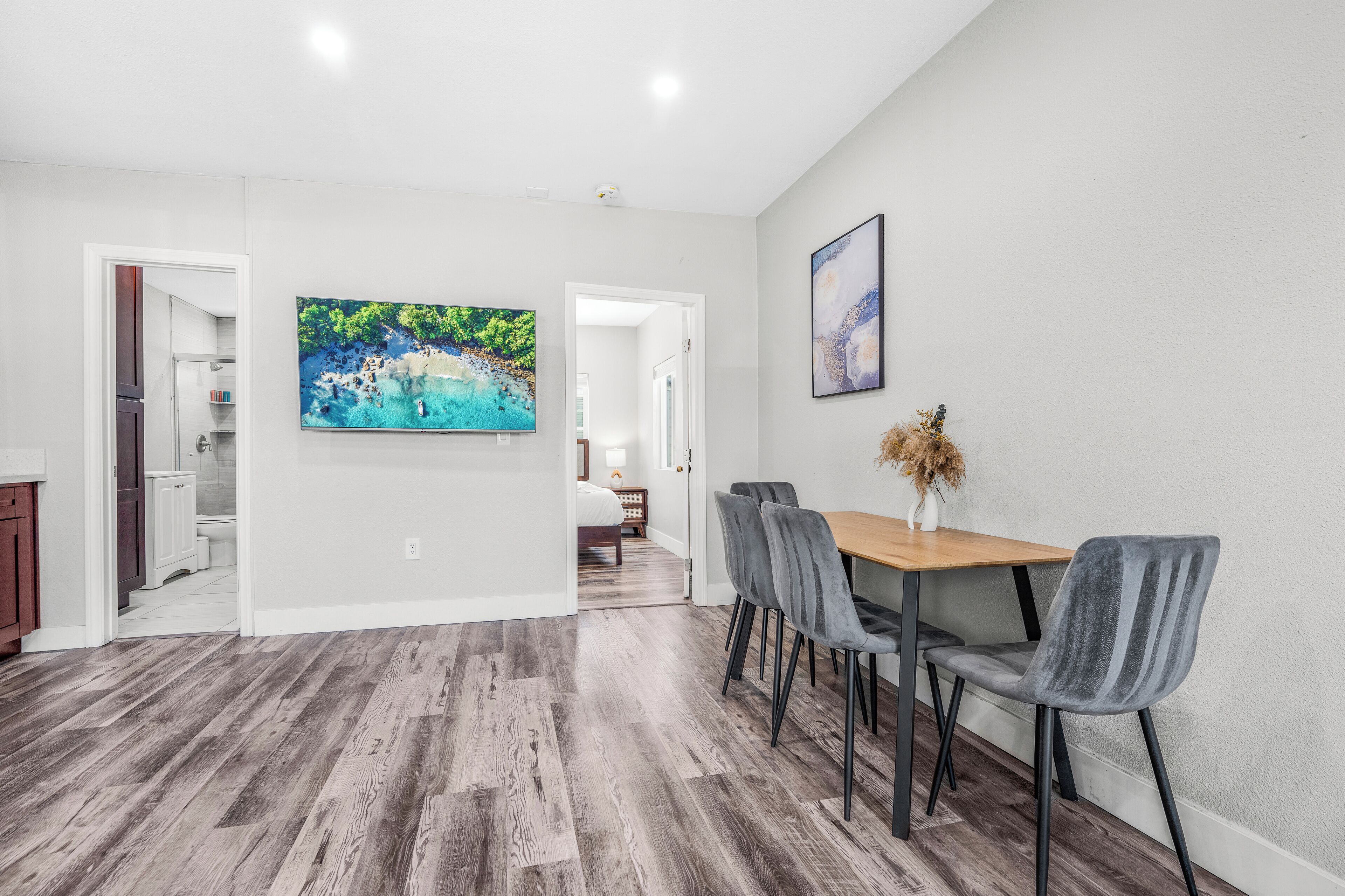 Brand New Private El Cajon Home! Close to SDSU! Discover comfort, style, and convenience in this modern El Cajon apartment. Located conveniently close to SDSU. Enjoy amenities such as one private bedroom, one bathroom, free street parking and a private parking spot for your vehicle, linens, towels, and bathroom essentials. The kitchen is fully stocked with basic cookware/dining essentials, while there is no oven in the home. Don’t miss your chance to experience the best of San Diego while staying in comfort and style in this great apartment!This modern El Cajon apartment is the perfect place to stay for exploring all the exciting attractions San Diego has to offer! Strategically located close to SDSU and Sharp Grossmont Hospital and just a quick 20-minute drive to the beach and downtown, it provides easy access to the city's main destinations. This apartment boasts a private bedroom with a plush queen bed and one bathroom—as well as plenty of space to relax and socialize. There is a queen sized pull out sofa in the living room as well! There is plenty of free street parking and even a personal parking spot included with the rental. Fully stocked with kitchenware and basic cookware and dining essentials, the kitchen is perfect for those who love to whip up a meal. Towels, linens, and all the basic bathroom amenities are included for a worry-free stay. Don't pass by this golden opportunity to experience the best San Diego has to offer! *Note: There is no oven in the home.*