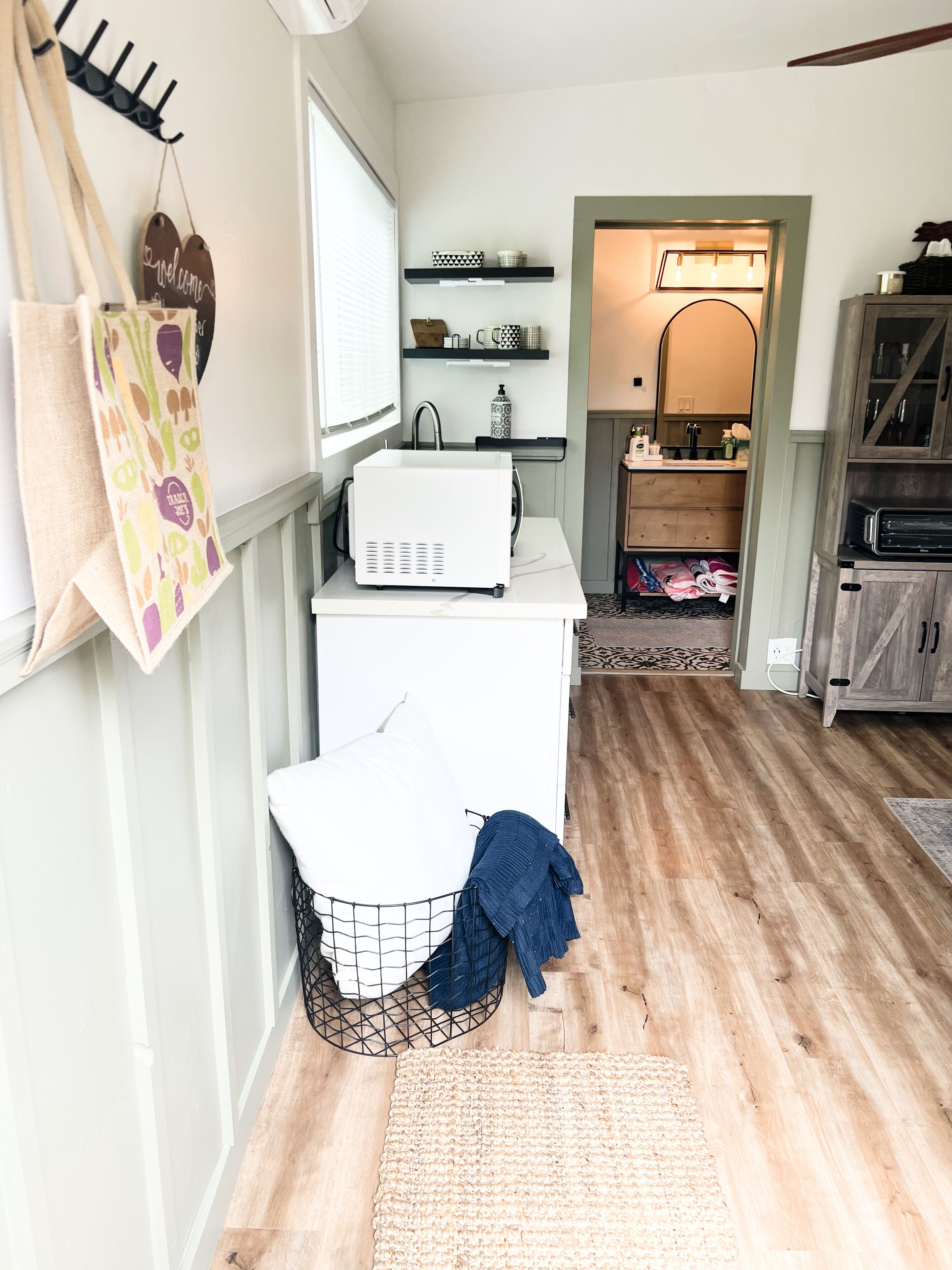 Charming 1brd 1 bathroom Retreat Welcome to your cozy 1 bedroom guest house! This lovely space is perfect for a single person or a couple looking for a comfortable and private place to call home.As you step into the guest house, you'll notice the stylish and well-appointed kitchenette, complete with a full-sized fridge, a ninja foodie that doubles as a toaster, an air fryer, and an oven. Whether...