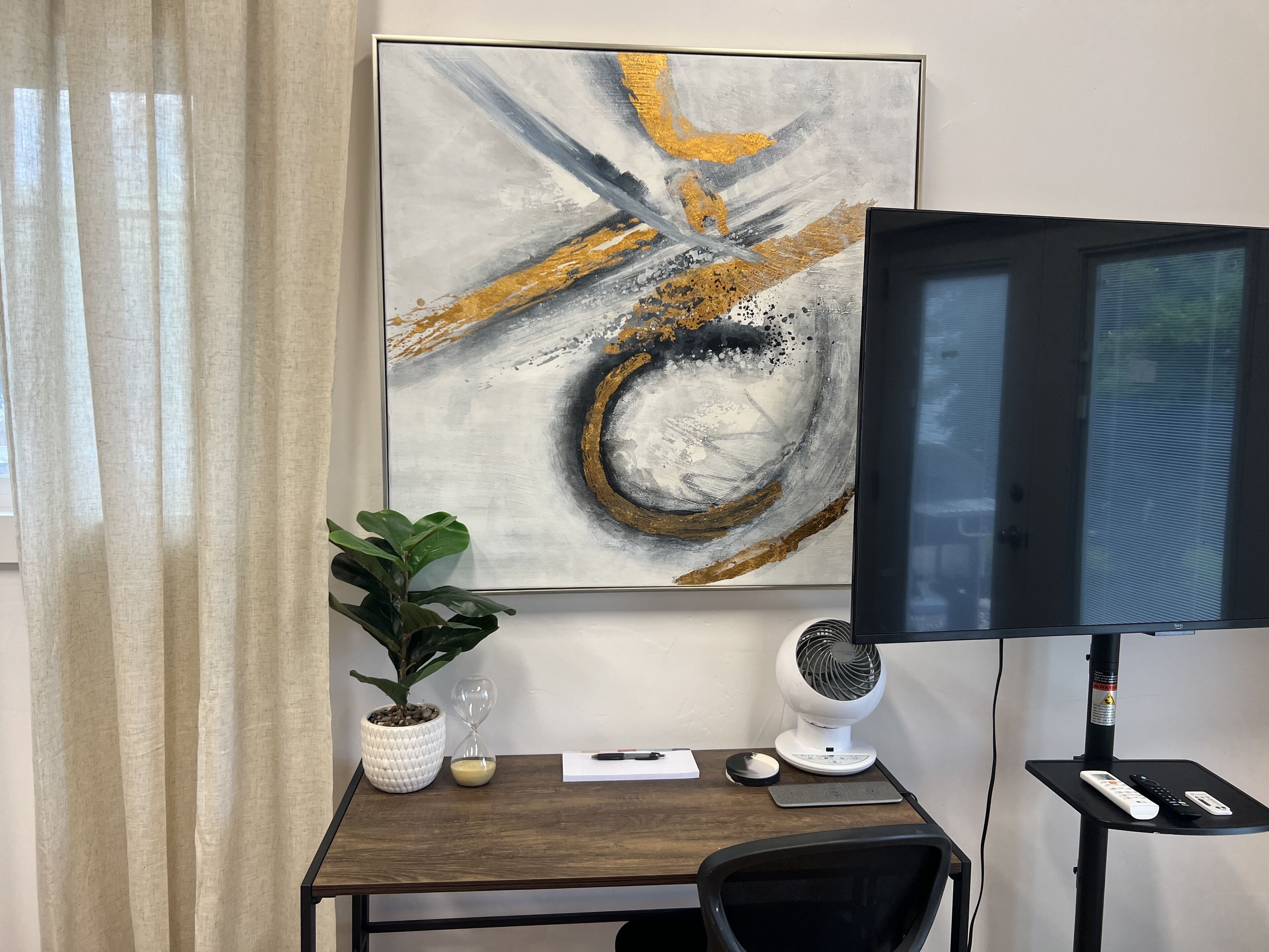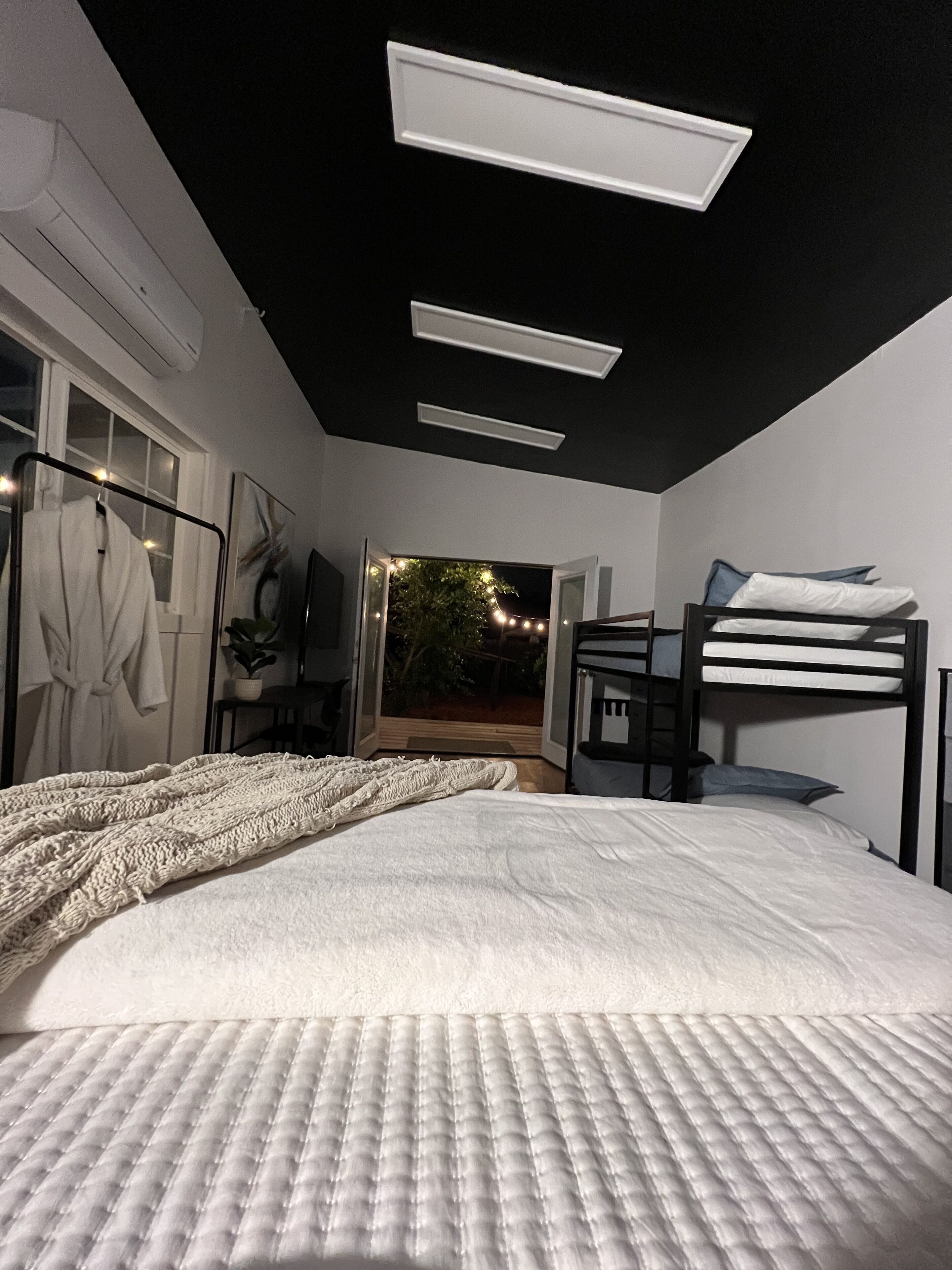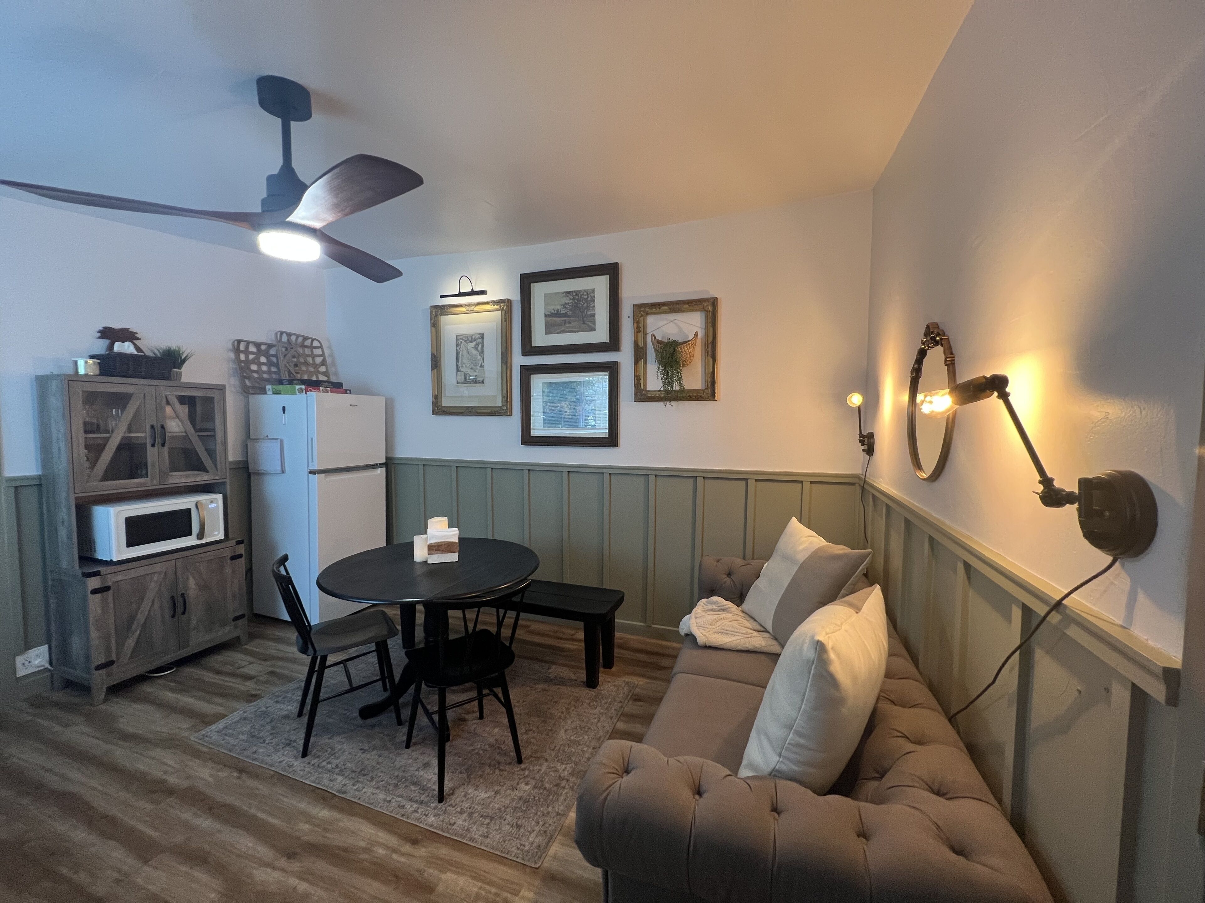 Charming 1brd 1 bathroom Retreat Welcome to your cozy 1 bedroom guest house! This lovely space is perfect for a single person or a couple looking for a comfortable and private place to call home.As you step into the guest house, you'll notice the stylish and well-appointed kitchenette, complete with a full-sized fridge, a ninja foodie that doubles as a toaster, an air fryer, and an oven. Whether you're whipping up a quick breakfast or preparing a gourmet meal, this kitchenette has everything you need to cook up a storm.The living area features a trendy loveseat, providing a comfortable place to relax and unwind after a long day. And with a TV on wheels, you can easily move it around the space to suit your viewing preferences.When it's time to retire for the night, you'll appreciate the soft and comfortable bed in the bedroom, ensuring a restful night's sleep. And if you're looking for a little fresh air, step outside to the adorable backyard, which features fruit trees, string lights, and a patio swing. It's the perfect place to enjoy a cup of coffee in the morning or a glass of wine in the evening.Overall, this 1 bedroom guest house is the perfect blend of style, comfort, and convenience, making it the ideal choice for anyone looking for a cozy and inviting home away from home.