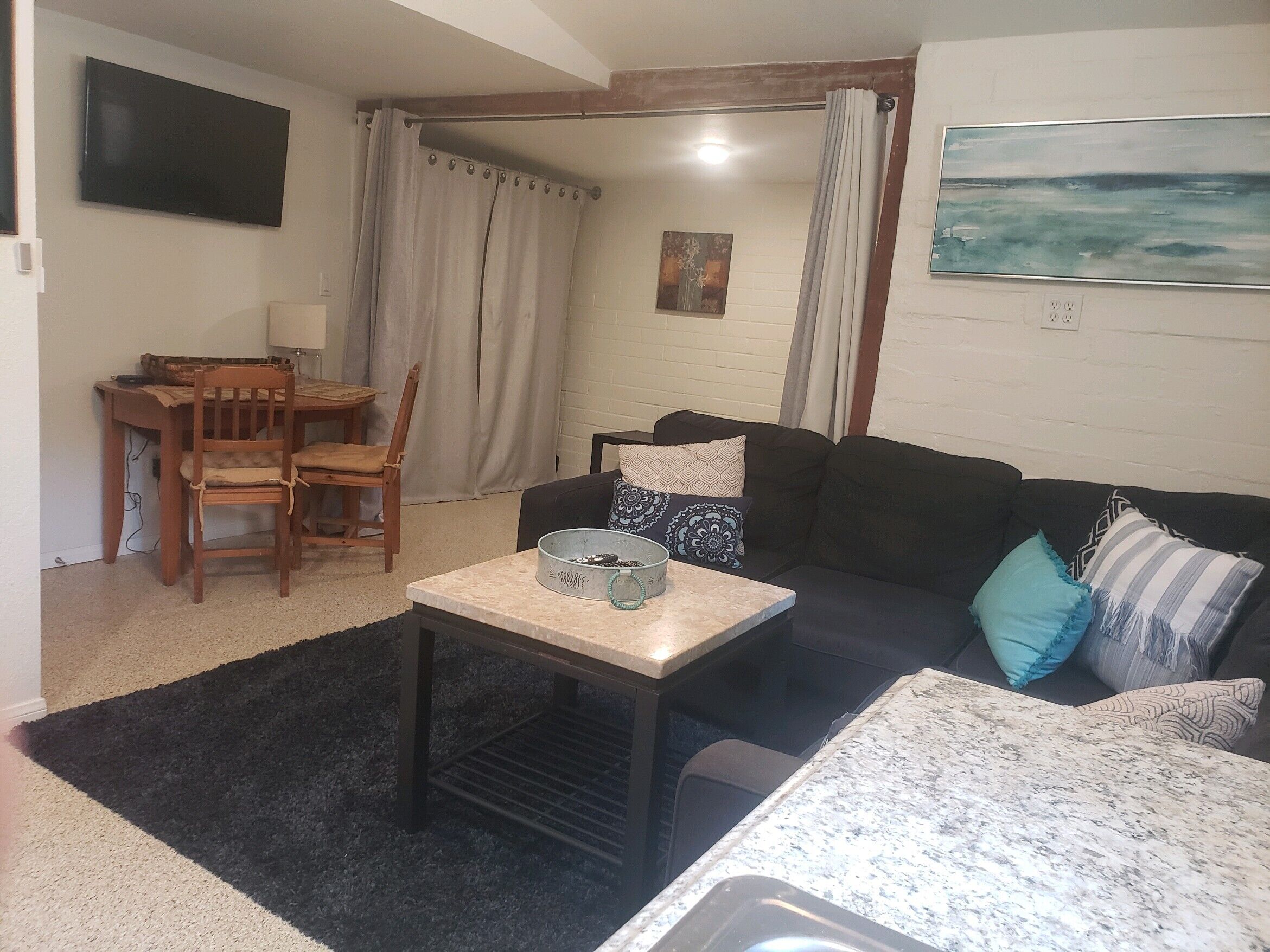 Adorable Lemon Grove Studio Close to All Enjoy your stay at our recently updated/remodeled cozy studio with all the comforts. We are 15 minutes from downtown San Diego, our city's beautiful beaches, Mexico and 30 minutes to the mountains. We are located between 2 trolley stations and is a 2 minute drive to access the freeway. The studio includes a separate sleeping area with a comfy queen bed. The sleeping area and living area are separate areas. Enjoy our updated kitchenette for your meals. Studio has a private entrance.