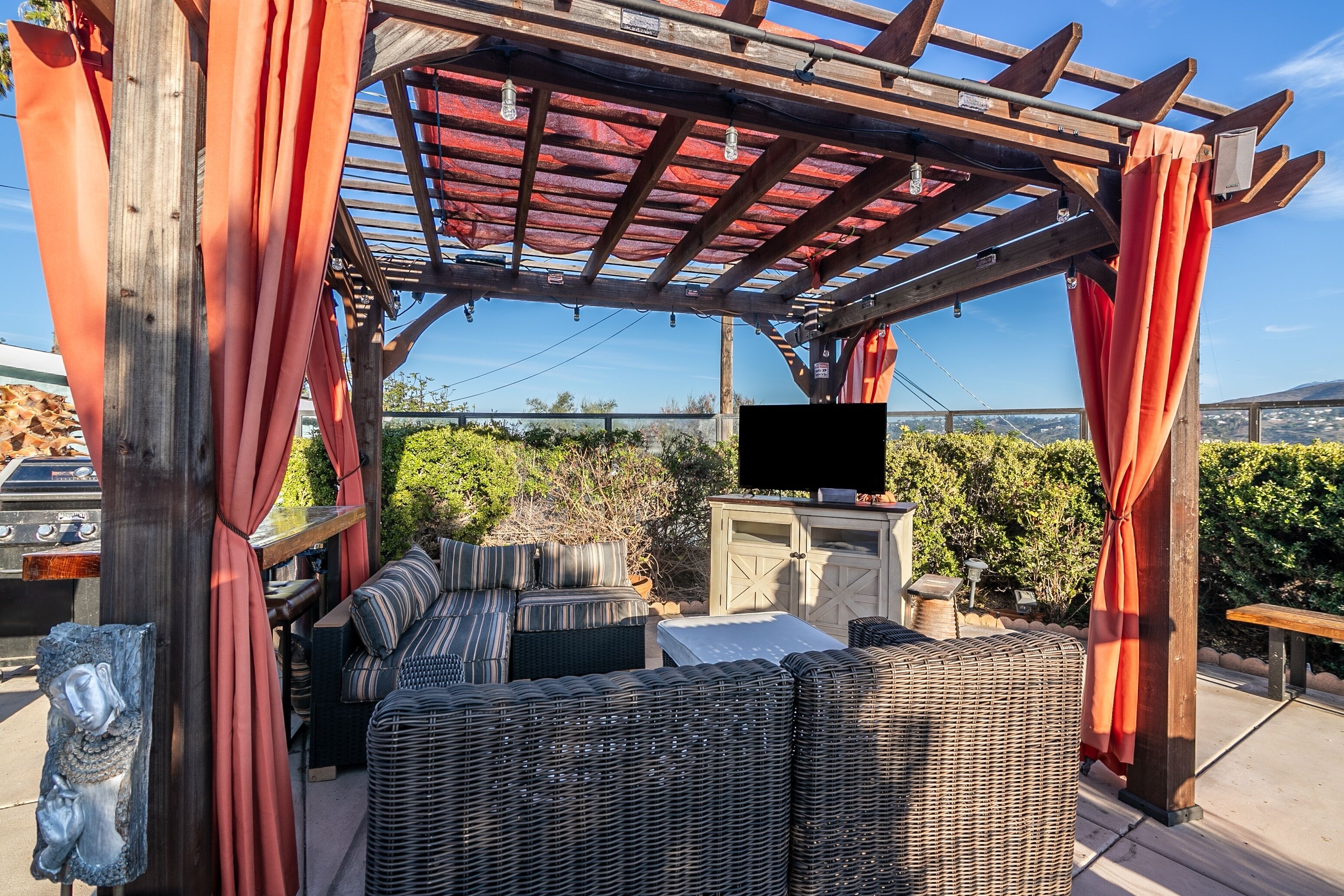 NEW LISTING! Mountain Majesty: Your Serene Escape Awaits! by RedAwning Welcome to Mountain Majesty, where awe-inspiring vistas await you at every turn. Nestled amidst the rugged beauty of the mountains, this idyllic sanctuary offers an unparalleled experience of natural wonder.Come and experience the beauty and tranquility that our mountain retreat offers. Whether you seek adventure or relaxation, our home promises an unforgettable escape with vistas that will leave an indelible mark on your heart.Perched on the edge of a majestic mountain range, this charming retreat boasts a sprawling patio and back deck that offer sweeping views of both the breathtaking peaks and the enchanting landscape of Mexico beyond. Gaze upon the rolling hills, where the hues of the sunrise and sunset paint a masterpiece across the horizon. NEARBY ATTRACTIONS, LANDMARK & RESTAURANTS Cali BBQ - 3 min drive Lemon Grove Pk - 3 min drive Ringer's Roller Rink - 9 min drive MacArthur Park - 10 min drive Chollas Lake Park - 10 min drive Mt. Helix Park - 14 min drive KEY FEATURES Prime location Amazing mountain view Fully equipped kitchen, stocked with the essentials Open living area perfect for bonding with families & friends! Spacious outdoor area loaded with amenities (outdoor furniture, outdoor dining, BBQ grill+ more!) BEDROOM ARRANGEMENTBR1: 1 California King BedBR2: 1 Queen Bed LIVING ROOM Inside, the interior is tastefully decorated with modern amenities to ensure a comfortable stay while maintaining the focus on the incredible outdoor scenery. The large windows invite natural light, allowing you to savor the picturesque landscape from every corner of the house. KITCHEN & DINING The fully-equipped kitchen invites culinary adventures, with modern appliances and ample space for creating delicious meals. Dine indoors or step out onto the patio for an al fresco experience amidst the breathtaking mountain backdrop. PARKING 2 parking spaces in the carport (No parking allowed in garage) Free street parking OUTDOOR SPACE As you step onto the patio, the grandeur of the mountains unfolds before your eyes, painting a serene backdrop for your stay. Enjoy your morning coffee or a glass of wine in the evening while being embraced by the crisp mountain air and the awe-inspiring sight sprawled beneath you.Steep shared two paths driveway leading to the house from the main street. Please drive slowly due to shared use with neighbors and presence of small dogs. HOUSE RULES No smoking No pets allowed. No events, parties, or large gatherings Must be at least 25 years old to book Please report any damages that occur during stay Late Check Out Fees are as follows: $50 for the first hour, $100 for two hours, and $500 for any extended time. These fees ensure fair compensation for our cleaners or any subsequent guests affected by delays. If you need a late checkout, please inquire in advance. Depending on upcoming bookings, we might accommodate you, though a fee might still apply. Extra Guests: If more guests than permitted are found at the property, we reserve the right to deny entry based on policies. Extra guests will be treated as trespassers. An additional fee of $50/night per extra guest may apply, or we might request that you vacate the property. If uncertain about guest numbers or daytime visitors, please reach out. We aim to prevent any misunderstandings. .