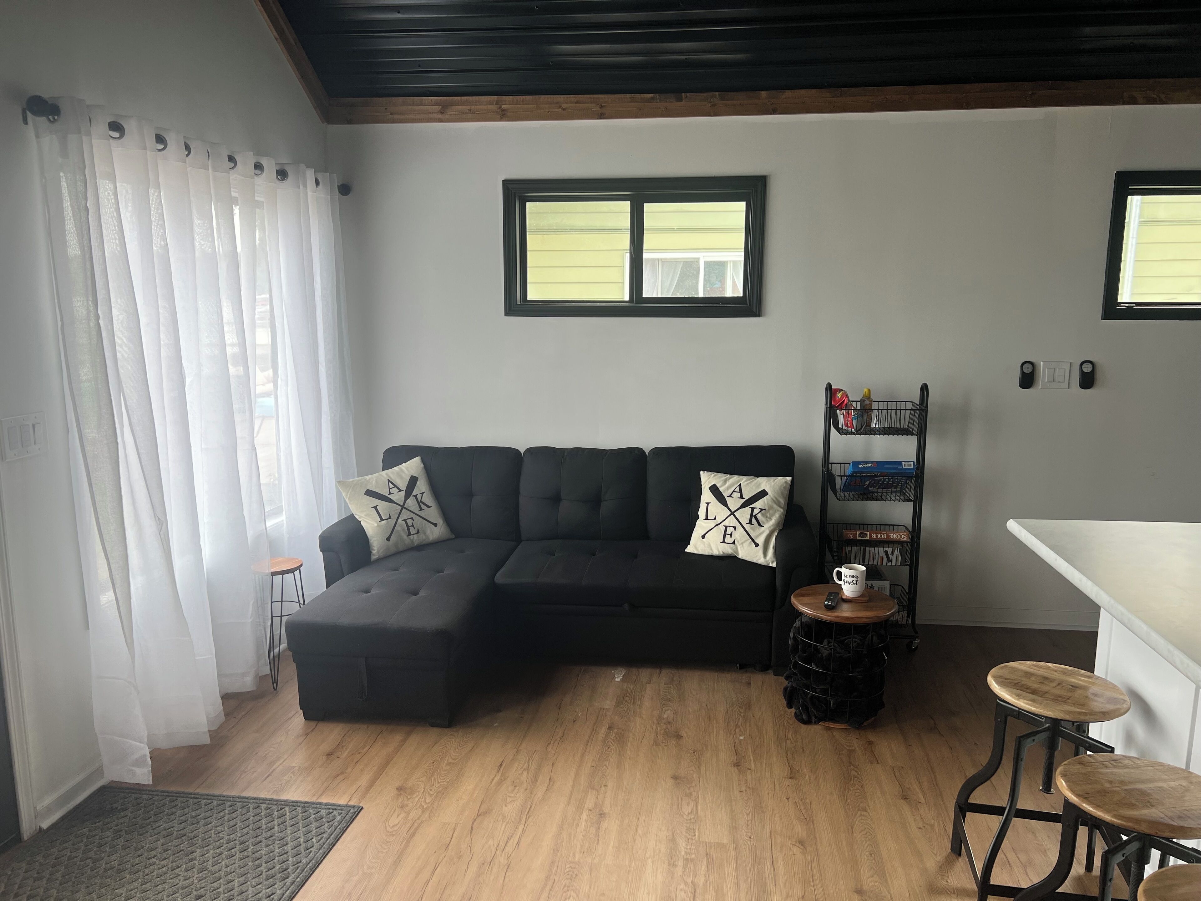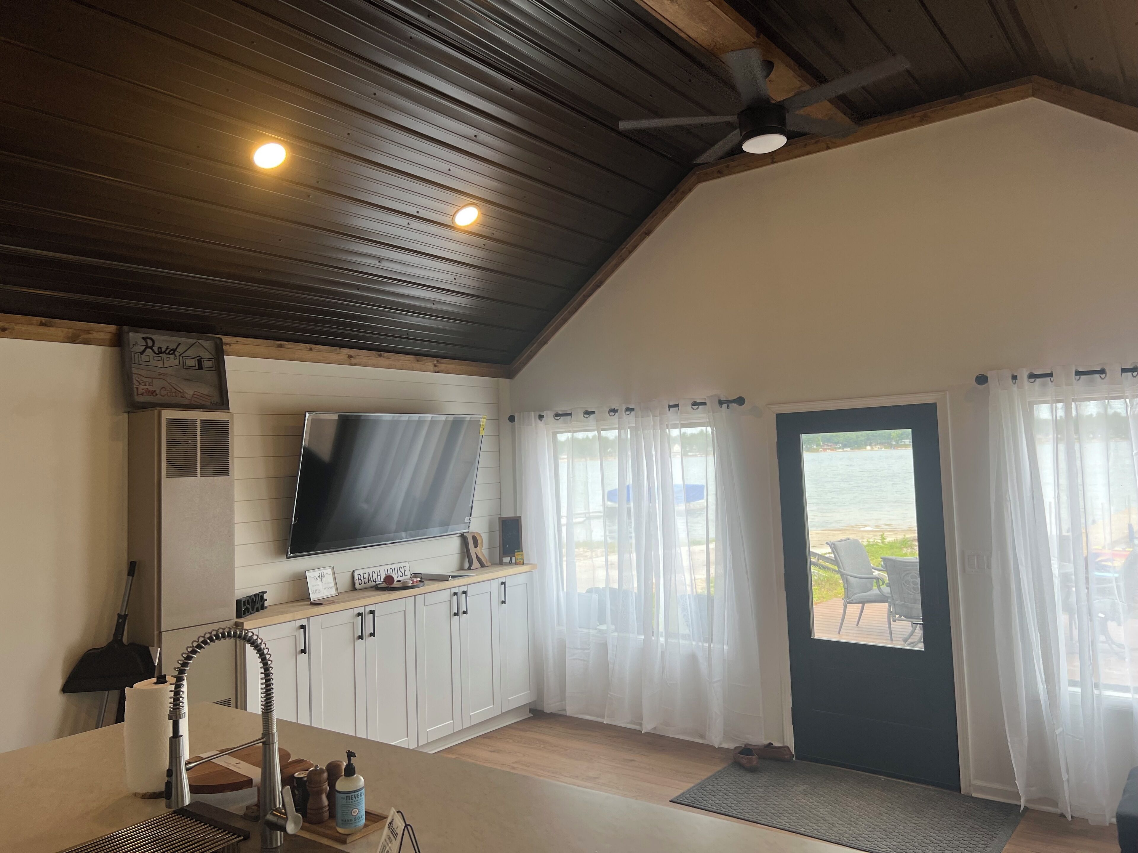 Lake/beach front property with kayaks, pedal boat, & row boat, near Tawas Bay THIS PROPERTY HAS TWO CABINS, IF YOU HAVE A LARGE GROUP CONSIDER RENTING BOTH. THE VRBO ID FOR THE OTHER CABIN (GREEN) IS 3225172.Also note, dock will be in water from Memorial Day thru Labor Day. Kayaks, pedal boat, row boat are available early April - late October.This cozy cabin has been completely updated. New appliances, dishes, cookware & furniture, smart TV with WiFi, bathroom, beds and bedding.Located on all sports Sand Lake, with a private sandy beach, includes 4 kayaks, pedal boat, row boat, dock, fire pit, large deck with outdoor furniture and more. Dock available Memorial Day (maybe earlier) thru Labor Day (maybe later).There are two cabins that share the beach, water toys, dock.... Each cabin has separate deck and fire pit.Parking is very limited, especially in the winter. In the summer we can squeeze 4-5 cars in BOTH cabins. If you only rent one cabin then at most 2 vehicles. In the winter, may only have room for three vehicles (including trailers) for BOTH properties. It really depends on how much snow there is and how well the surrounding areas are plowed. There are empty lots nearby, park at your own risk.Cabins are right next to boat launch, which you cannot park on, but you may be able to park on side, unless city tells you to move. Very easy to launch boats or get to lake for snowmobiles...All bedding is provided. Only hand and kitchen towels are provided, please bring your own bath and beach towels. Bath soap, shampoos not provided. Dish soap is provided.This cabin has a washer and dryer, please bring your own detergent...Trailheads are located very close for snowmobiles and ORV's.In the winter, perfect for snowmobiling, ice fishing, bike races on the lake.Walking distance to Sand Lake Sports Bar, Sand Lake Micro Brewery, and Lakeside liquor/convenience store with carry out food and ice cream.DUE TO ALLERGIES THERE ARE NO PETS ALLOWED IN THIS CABIN (WHITE CABIN). DAMAGE DEPOSIT WILL BE FORFEITED FOR ADDITONAL CLEANING IF YOU BRING A PET OF ANY TYPE. THANK YOU :)