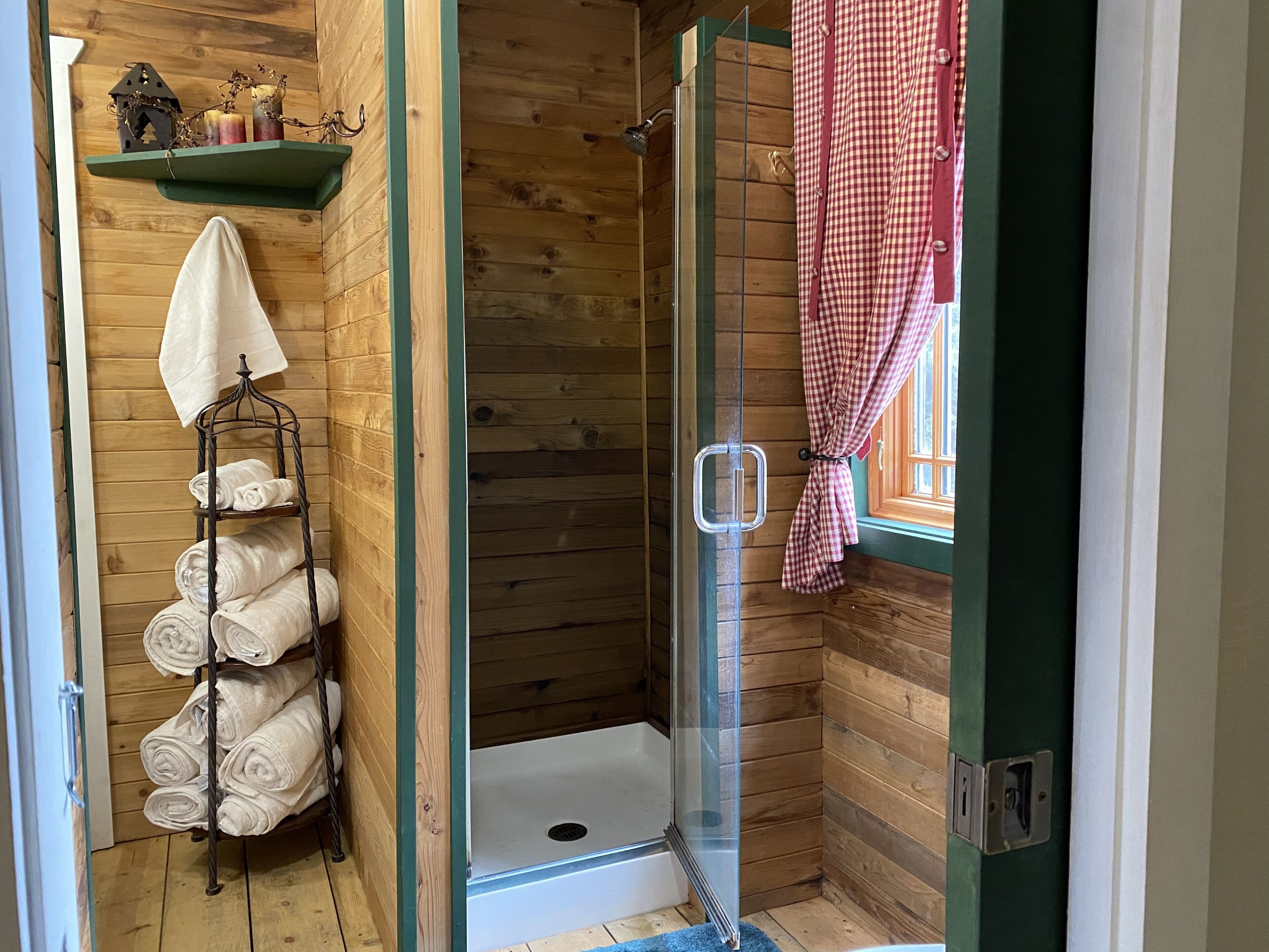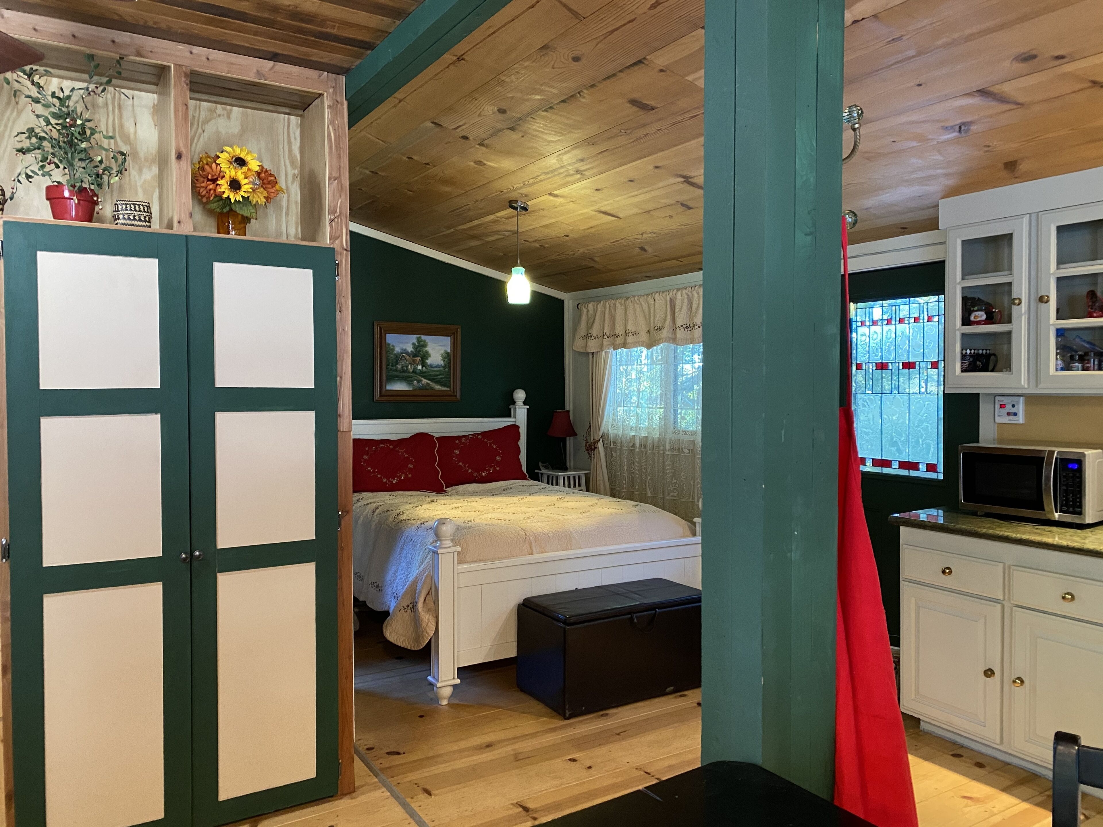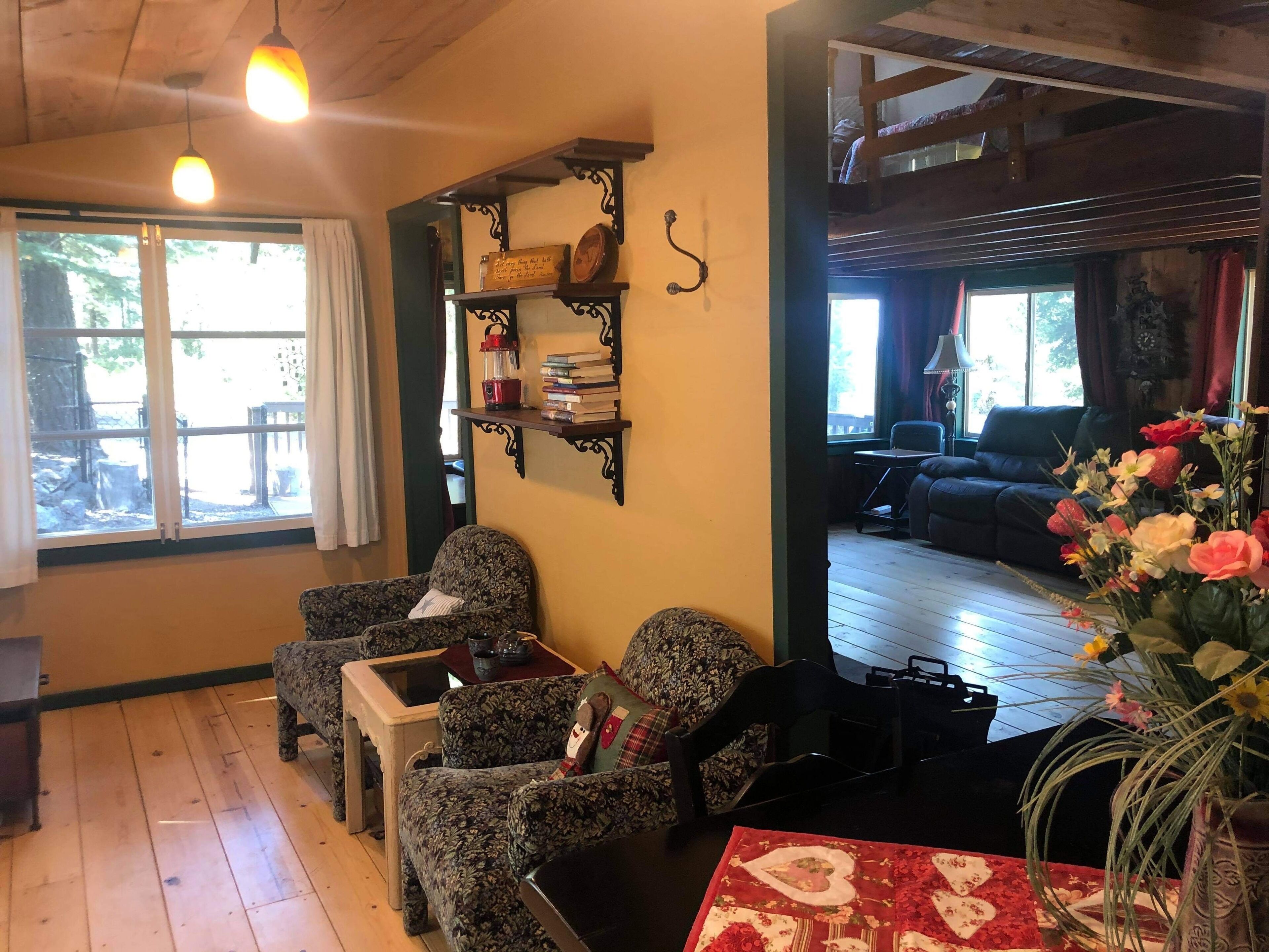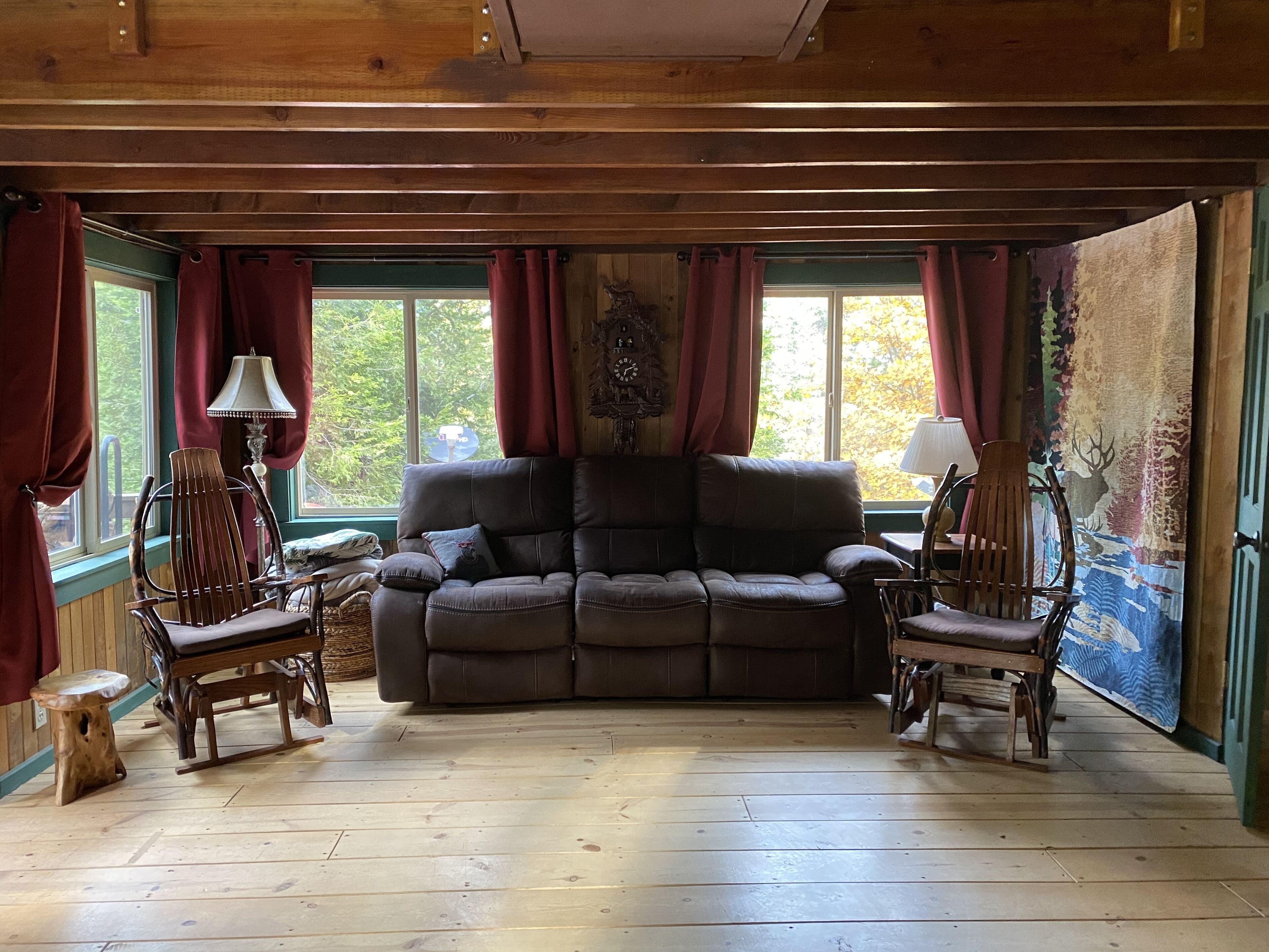 Woodland Hideaway This cabin has a cozy living room with a wood burning stove and a beautiful rock wall and spacious kitchen to cook your meals. Sit and drink your coffee or tea in the sun room, looking out at the mountain side where you will see several different types of birds. The master bedroom nook with a queen size bed is tucked behind the bathroom. Climb up the attic ladder to two more sle...