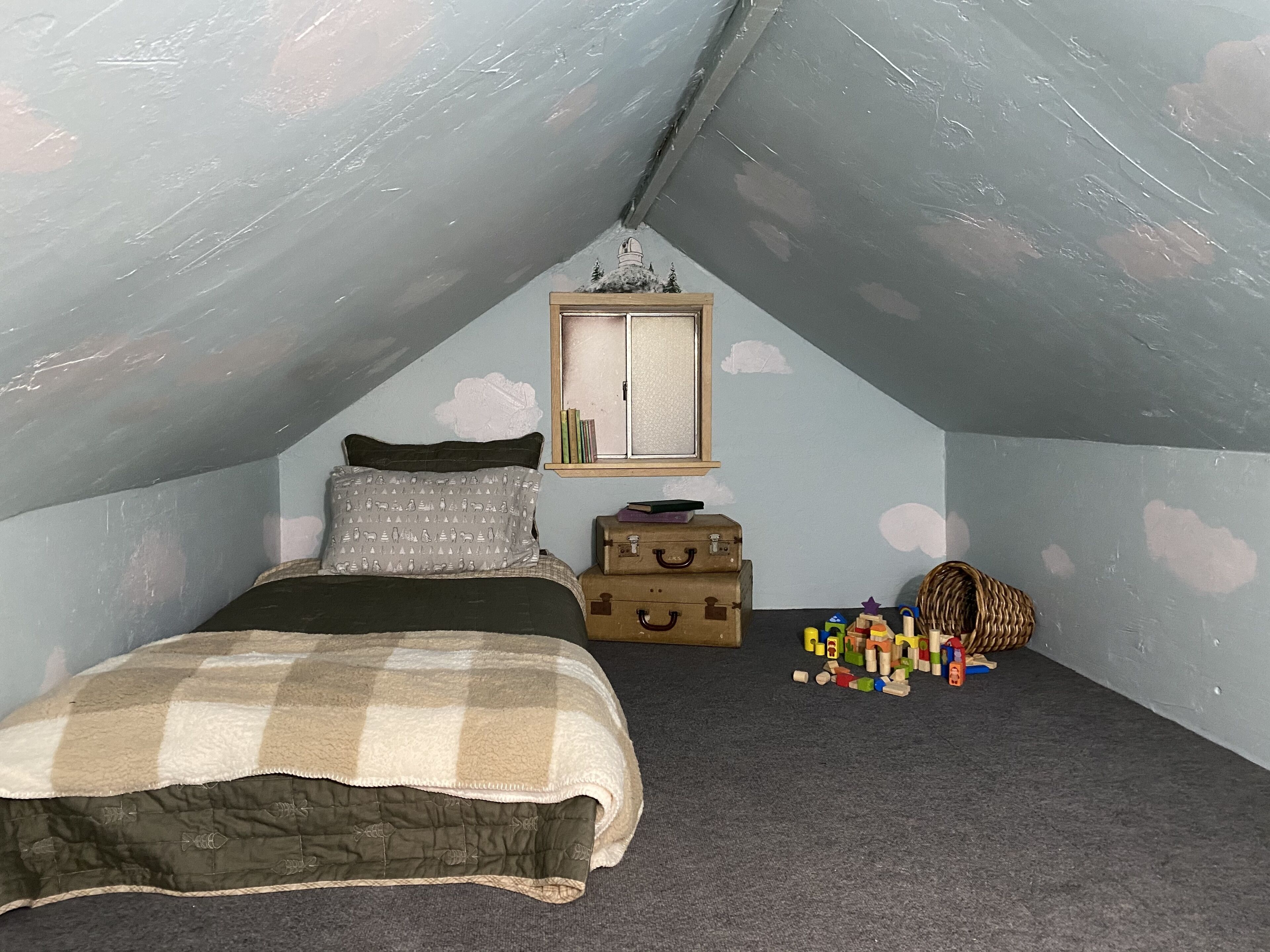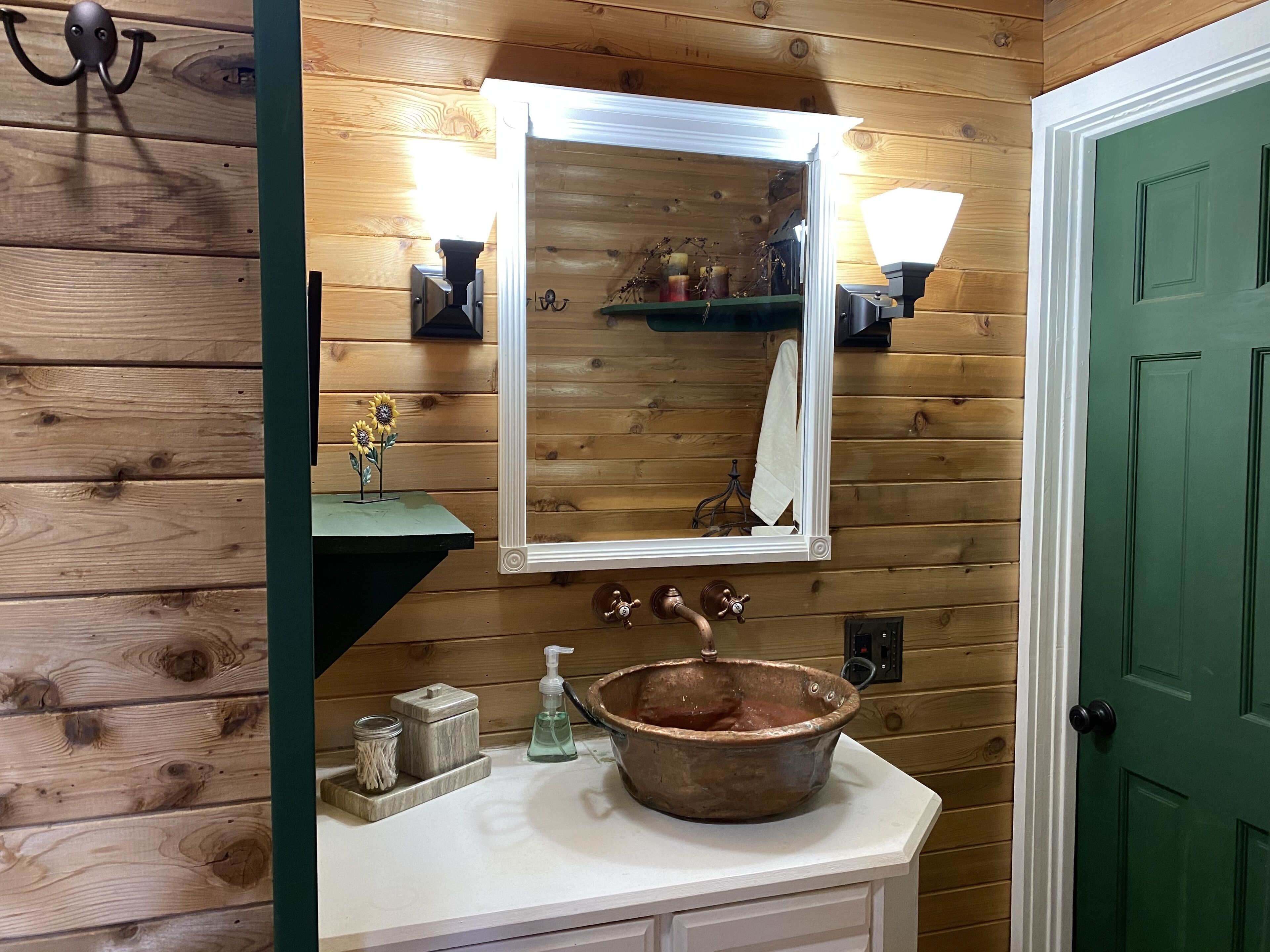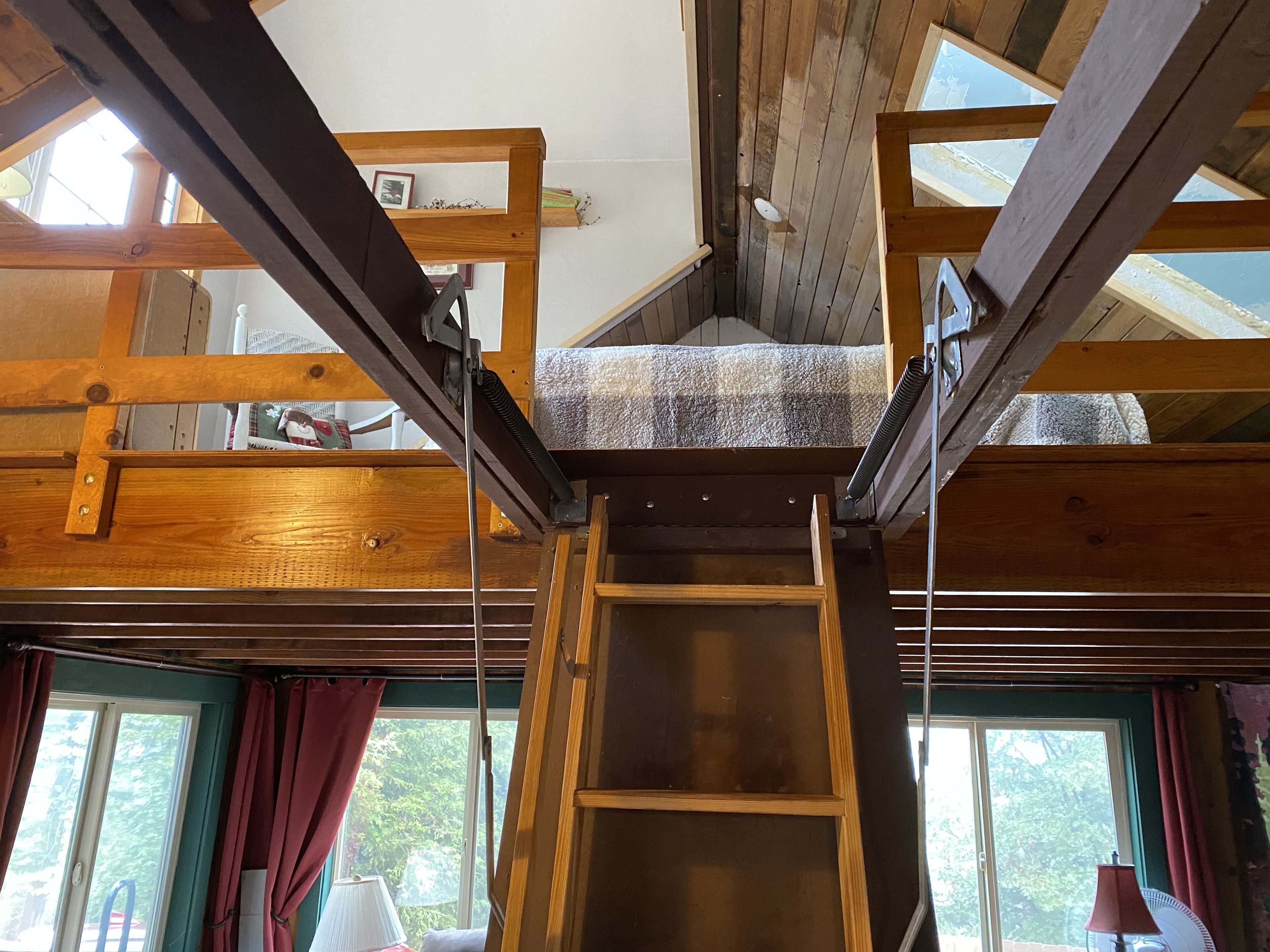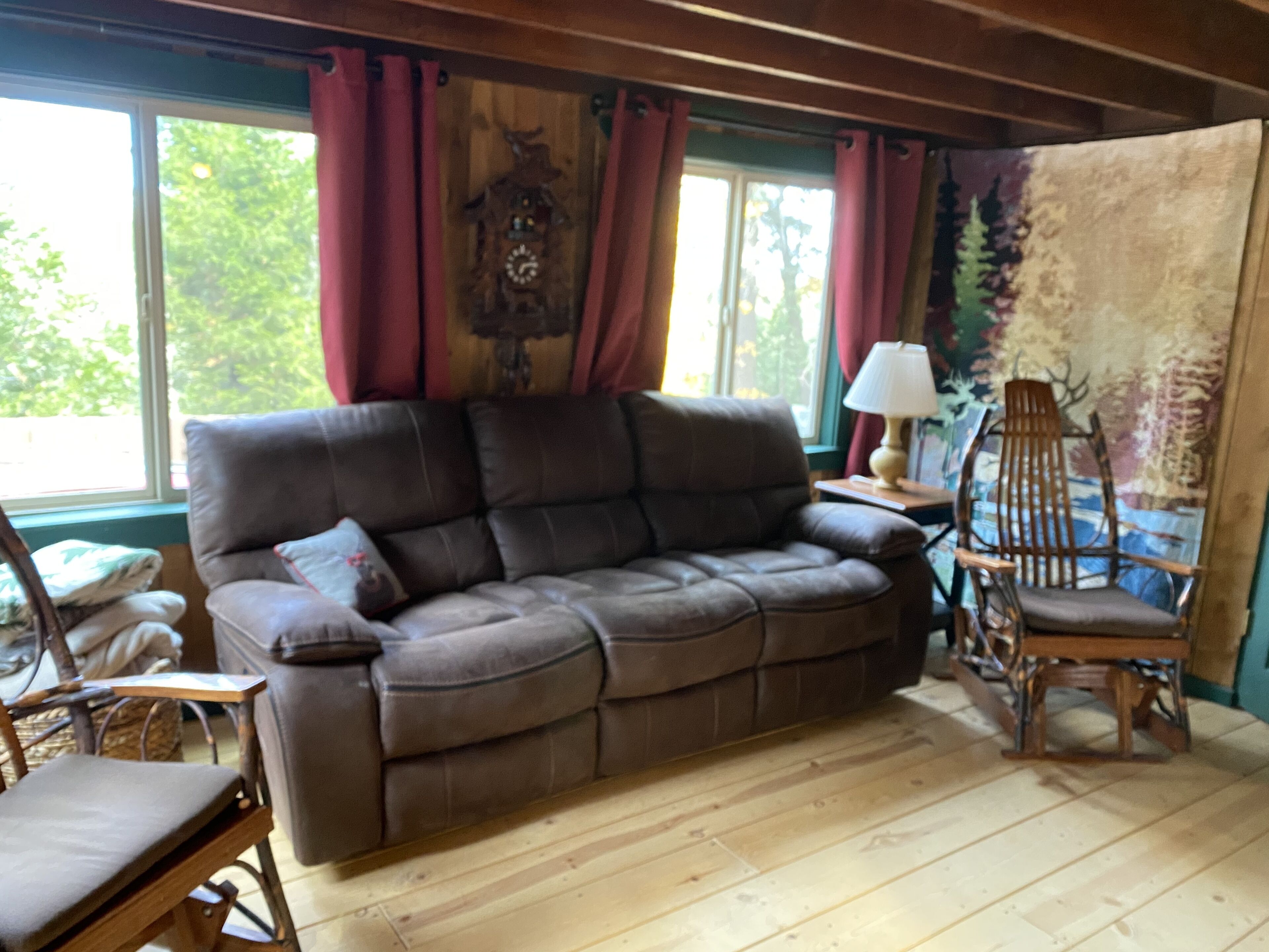 Woodland Hideaway This cabin has a cozy living room with a wood burning stove and a beautiful rock wall and spacious kitchen to cook your meals. Sit and drink your coffee or tea in the sun room, looking out at the mountain side where you will see several different types of birds. The master bedroom nook with a queen size bed is tucked behind the bathroom. Climb up the attic ladder to two more sle...