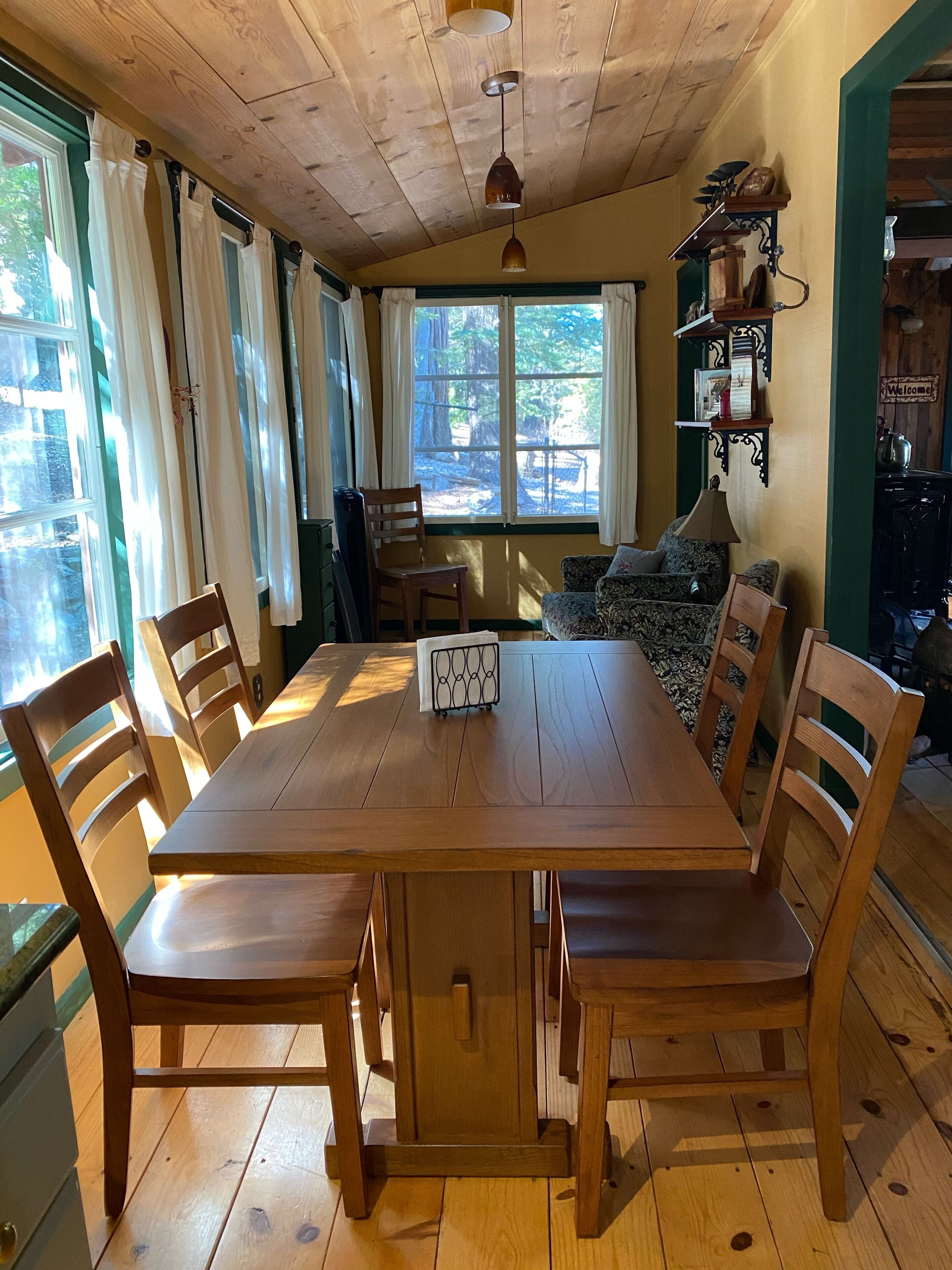 Woodland Hideaway This cabin has a cozy living room with a wood burning stove and a beautiful rock wall and spacious kitchen to cook your meals. Sit and drink your coffee or tea in the sun room, looking out at the mountain side where you will see several different types of birds. The master bedroom nook with a queen size bed is tucked behind the bathroom. Climb up the attic ladder to two more sleeping spaces, a loft with another queen bed and an attic room with a twin.The cell coverage up on Palomar Mountain is hit or miss. At this cabin, we have an AT&T booster but most other carriers do not get service. **We do not have WIFI. ** Our family enjoys being disconnected from the rest of the world(as the cabin does not have internet); playing games, reading books and taking hikes. We do have a TV and a DVD player with variety movies. Our cabin located down a dirt road and 4wd is required to drive and park at the cabin, and for all other vehicles we have parking about 400 feet up the road. When it snows, all vehicles must park up the road at the parking spot.