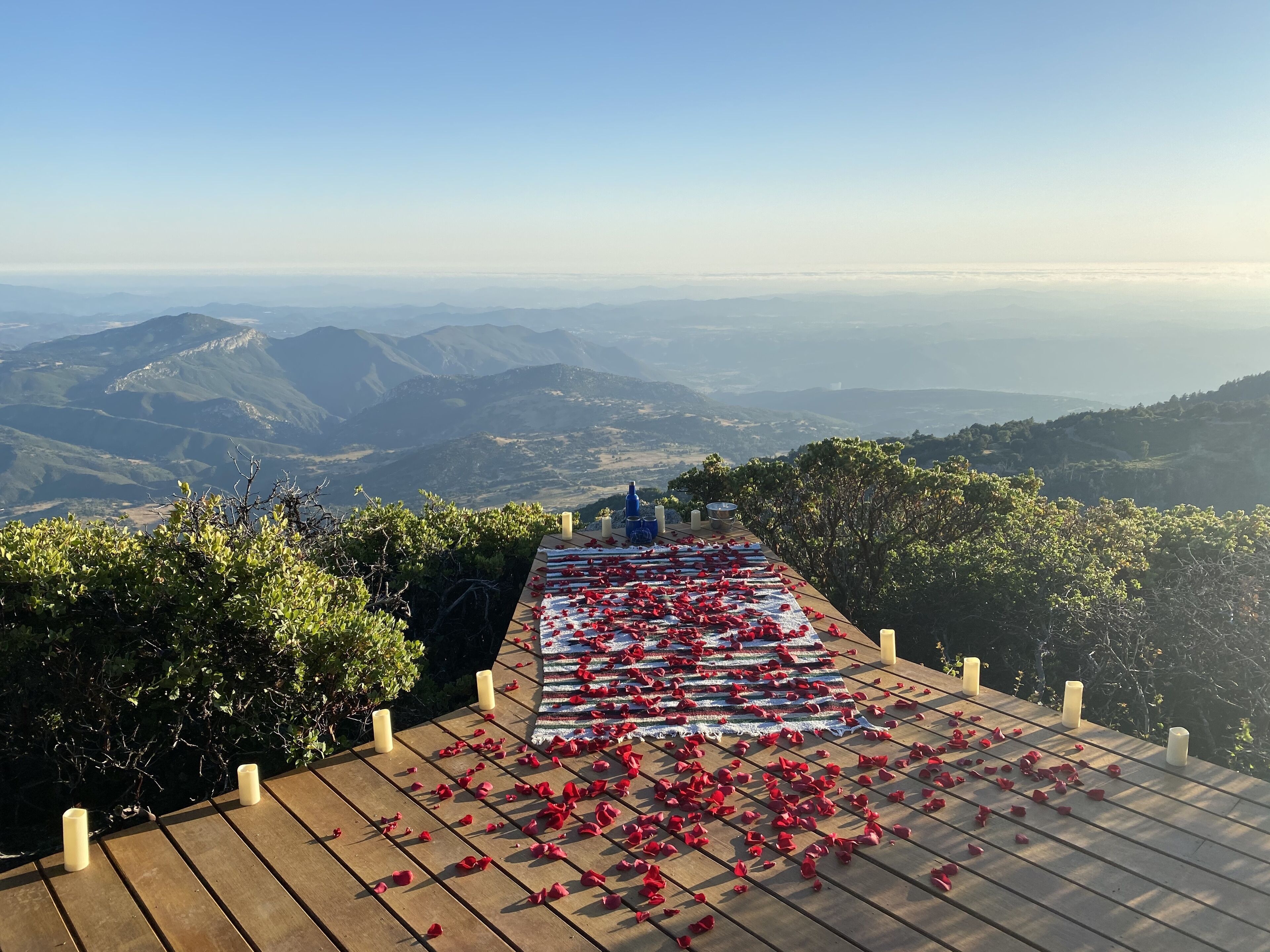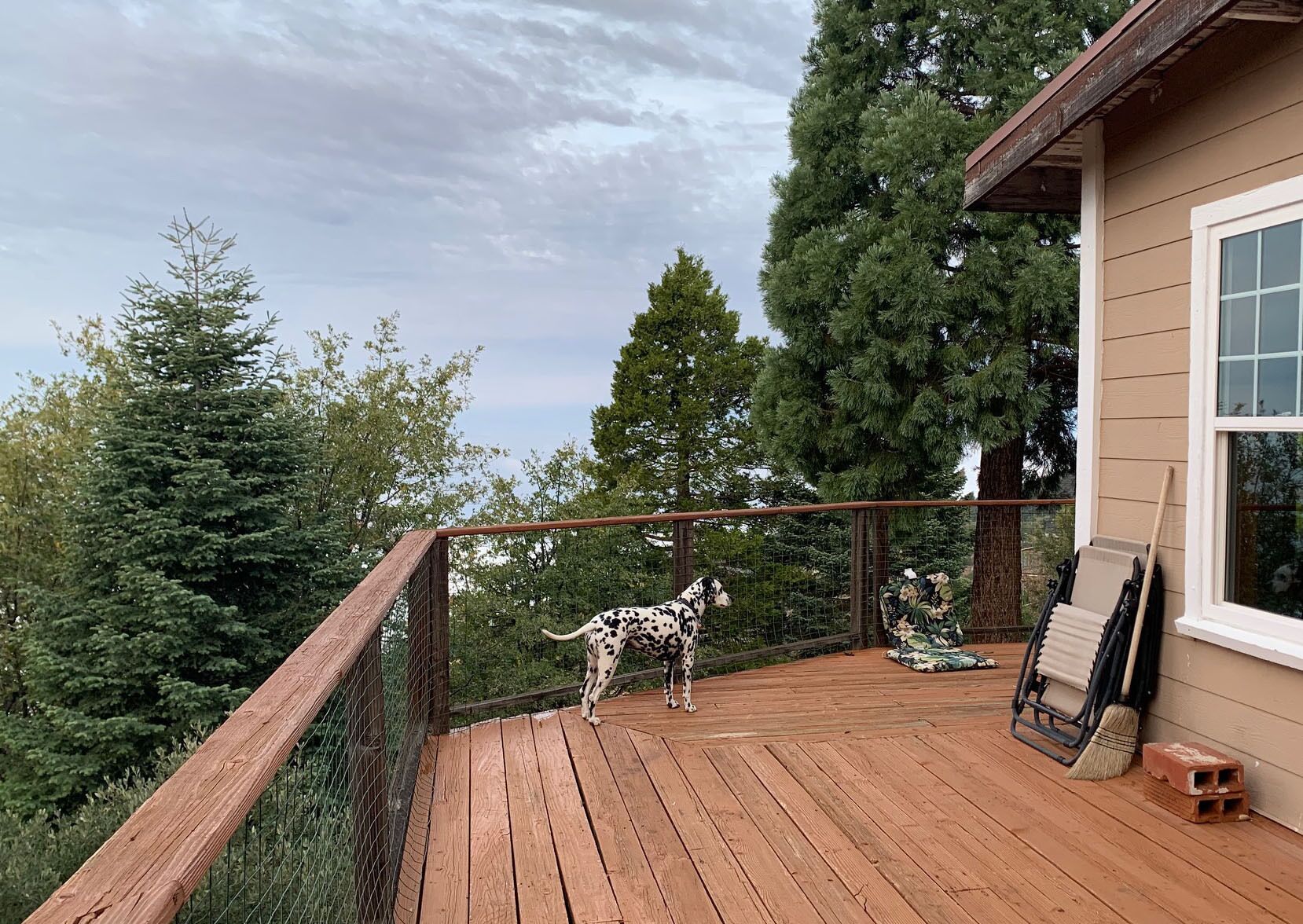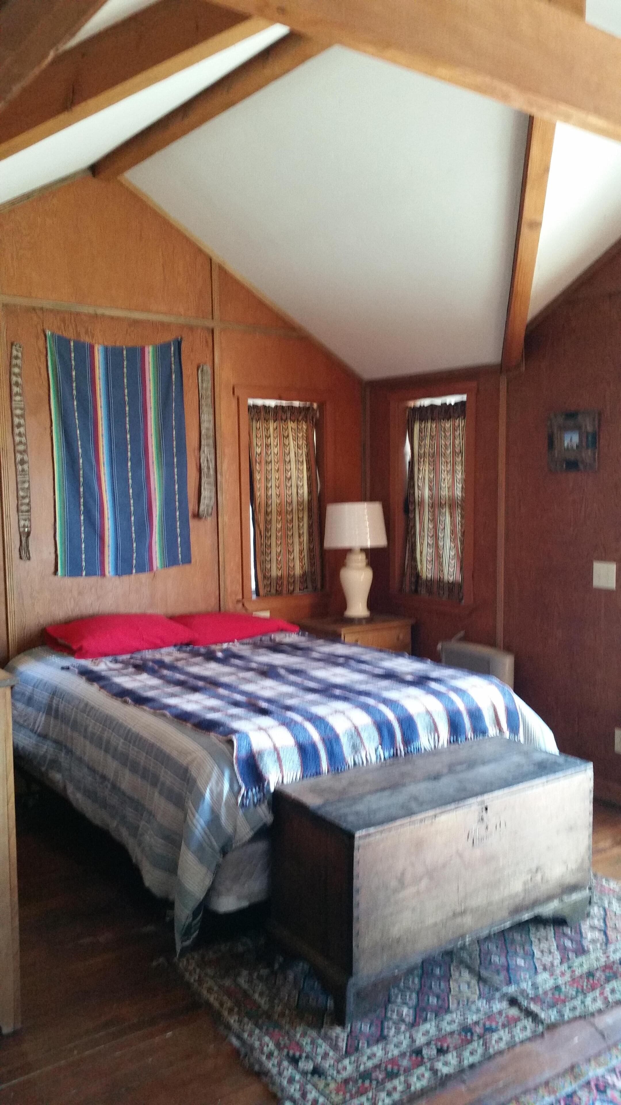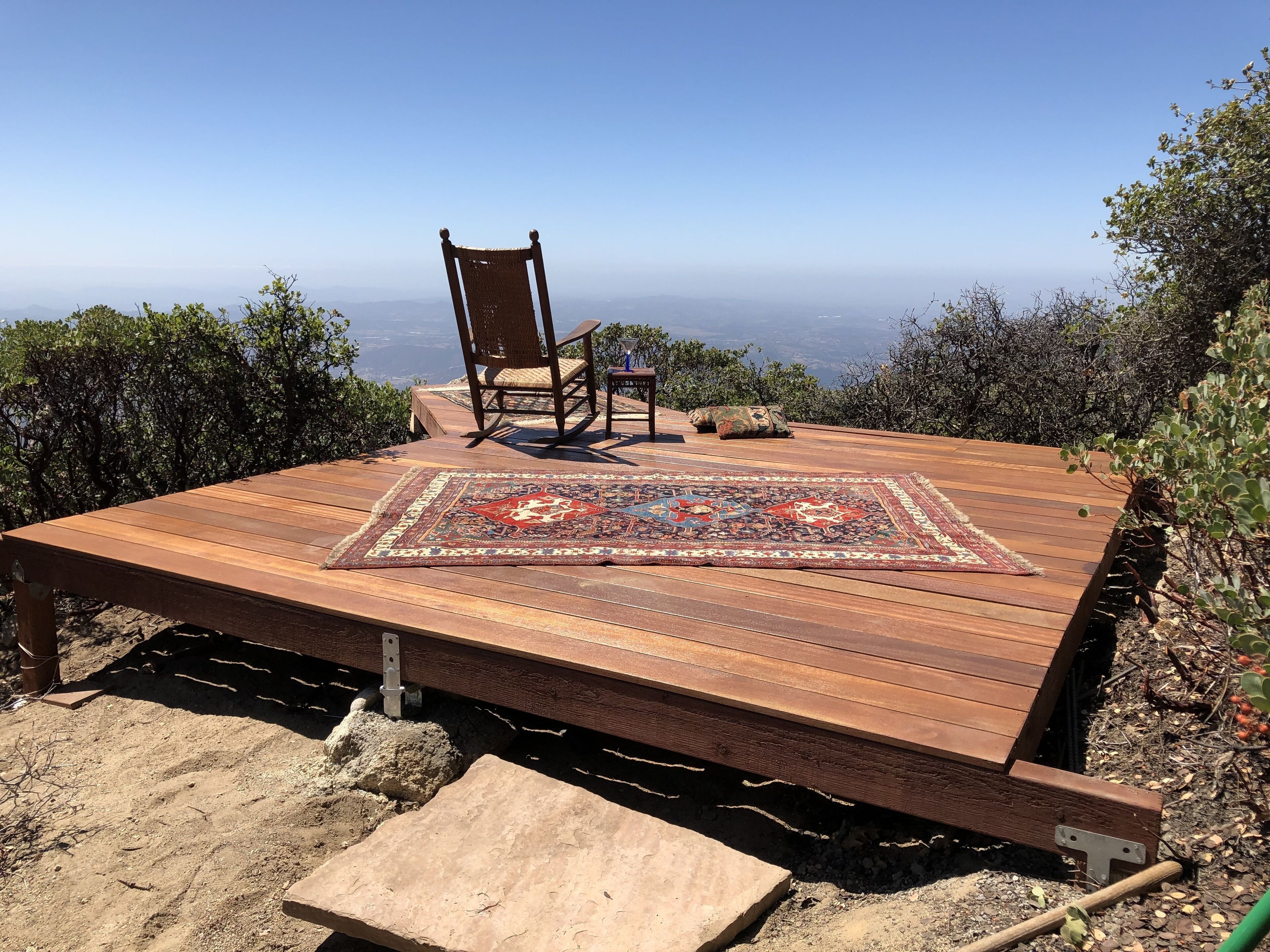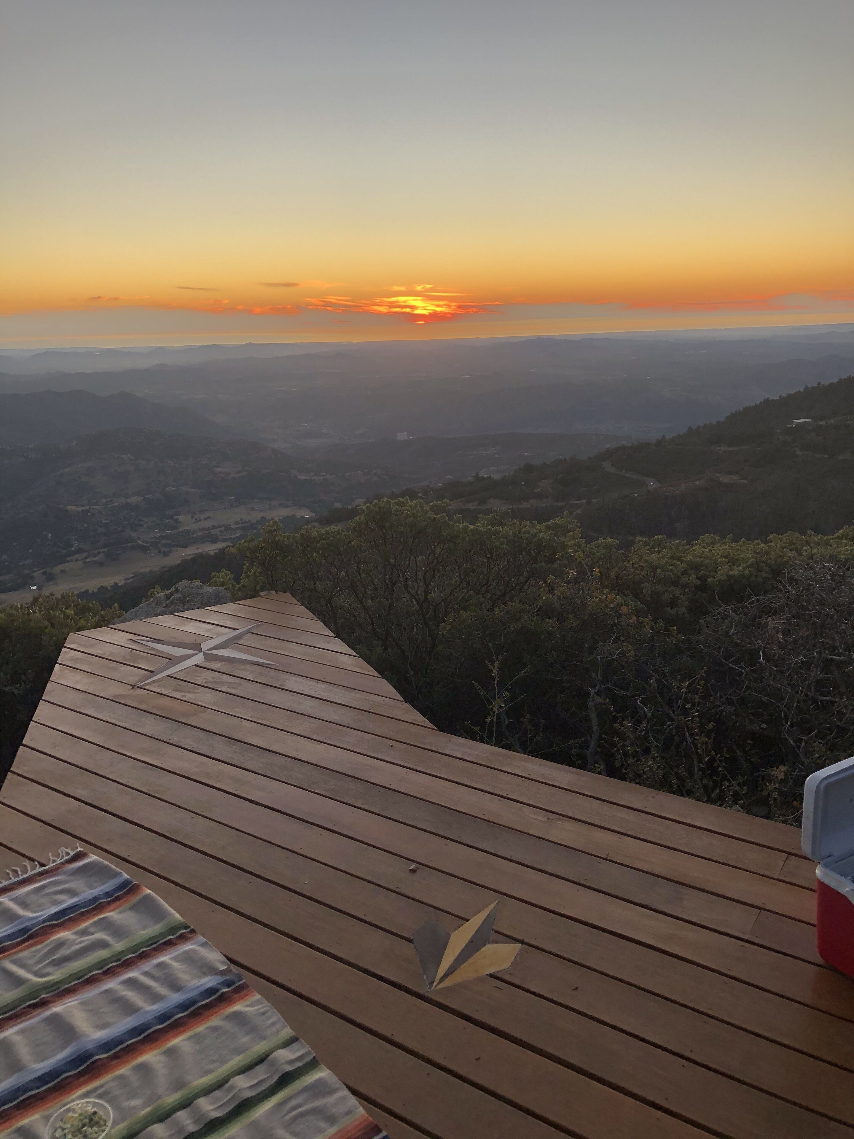 Spectacular view over San Diego County to Mt. Laguna, downtown, Catalina Island. Please note, 3 night minimums for Tgiving, Xmas, New Year's. Private cabin in the trees built in the early 1900s has been upgraded but retains all its rustic original charm. Watch eagles fly at eye level, clouds roll in, sunsets and moonsets in the ocean. Bobcats, wild turkeys, and deer regularly walk through the property. Decorated by owner with antiques and comfortable furniture (not all in pristine, new condition!) , large view deck for grilling and sitting in the sun, sauna. Dramatic infinity deck on mountain edge for sunset cocktails, morning yoga. Fully equipped kitchen, propane grill, tv, dvd player. Three bedrooms each with a queen or full bed, two couches could accommodate kids. Short drive from hiking, the Palomar Observatory, fishing at Lake Henshaw, entertainment at Harrah's Rincon Casino. Wonderful place to spend a snowy weekend, but 4 wheel drive and chains are needed on the few occasions when snow is deep. Some guest complaints: cluttered [cluttered with board games, coloring materials, telescopes, astronomy, bird, Palomar history books, maybe cluttered just a little]; cobwebs [if you search, you can probably find one or two, cleaned thoroughly after every guest]; feels like we're housesitting [hmmmm- this is a complaint?]. Best guest comment ever: 'It's clearly a well-loved and special place.' BINGO. Thanks, Emily. No dishwasher, I'm afraid.Note: 3 night minimum for Xmas, New Years, Thanksgiving, Memorial Day, 4th of July, and Labor Day weekends.CONTACT OWNER FOR EXTENDED STAY (more than 3 nights) RATES.WINTER BOOKING ADVISORY!!!Winter is snow time, which is good and bad. Caltrans has a station up on the mountain and they start plowing the paved roads very quickly when snow starts. Unfortunately, there is nobody up on the mountain who plows private drives, and my cabin is about 500 feet up a dirt branch road that is not plowed. If you plan to be there at a time when snow is predicted, your options are to park near the paved road (but be sure not to park right on side of the road where your car will interfere with plowing or be covered by snow pushed aside by the plow), or plan a long day of shoveling yourself out by hand. I’ve done this shoveling myself before, and it takes a good while. One guest last winter took 8 hours to do this, and they were not happy campers by the end of the day. If you have long time existing reservations and there is a massive storm predicted to hit just before or during your stay, I will of course promise a no penalty cancellation if you chose not to go. Being up there with snow is a wonderful experience, as long as you have supplies and can relax and enjoy. House rules: treat this old place with courtesy and common sense: recycle, clean up reasonably after yourself, turn off lights and cooling/heating when not needed and on departure, close and lock doors and windows when leaving- sometimes I don't get up to clean for several days.