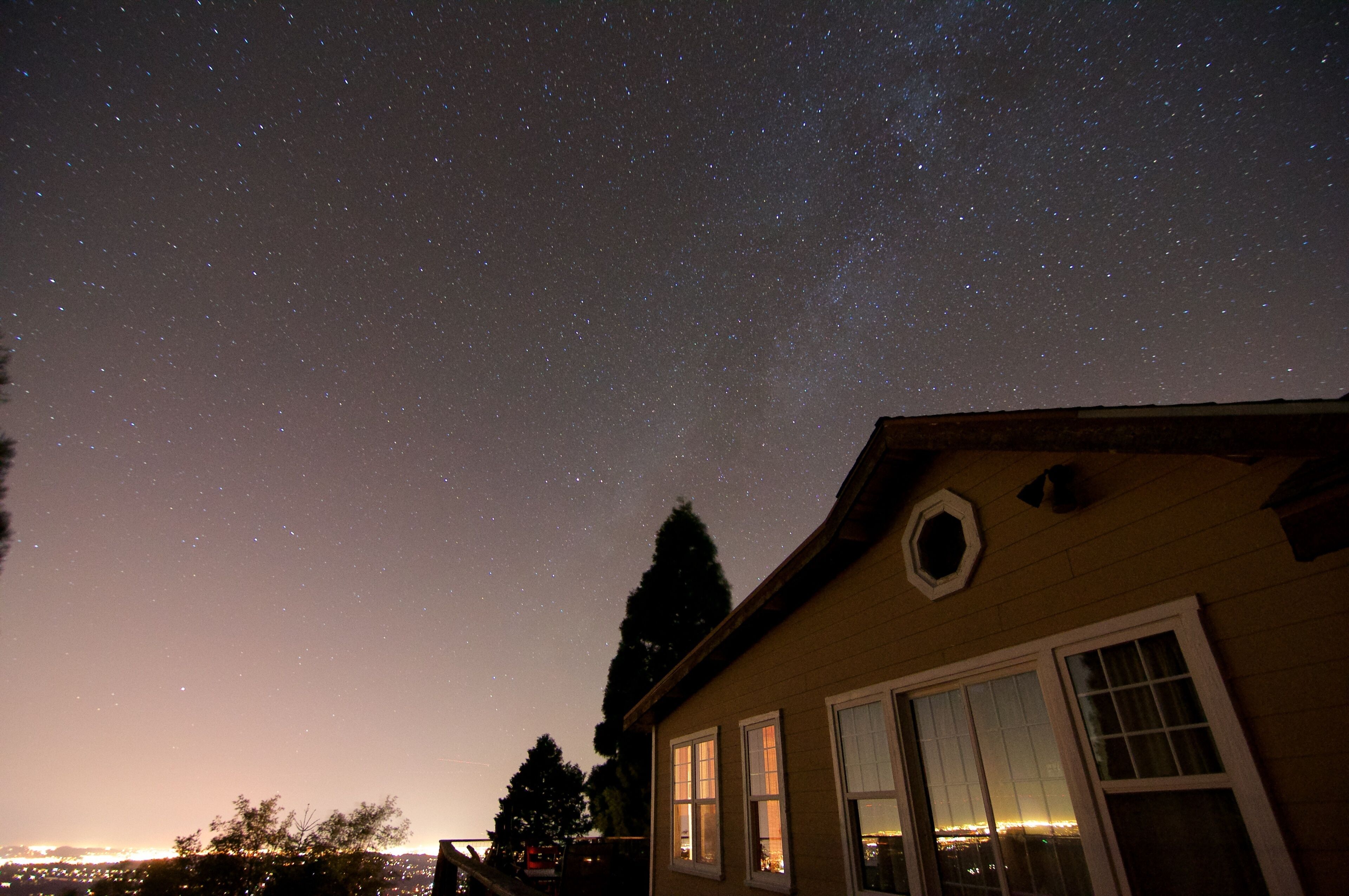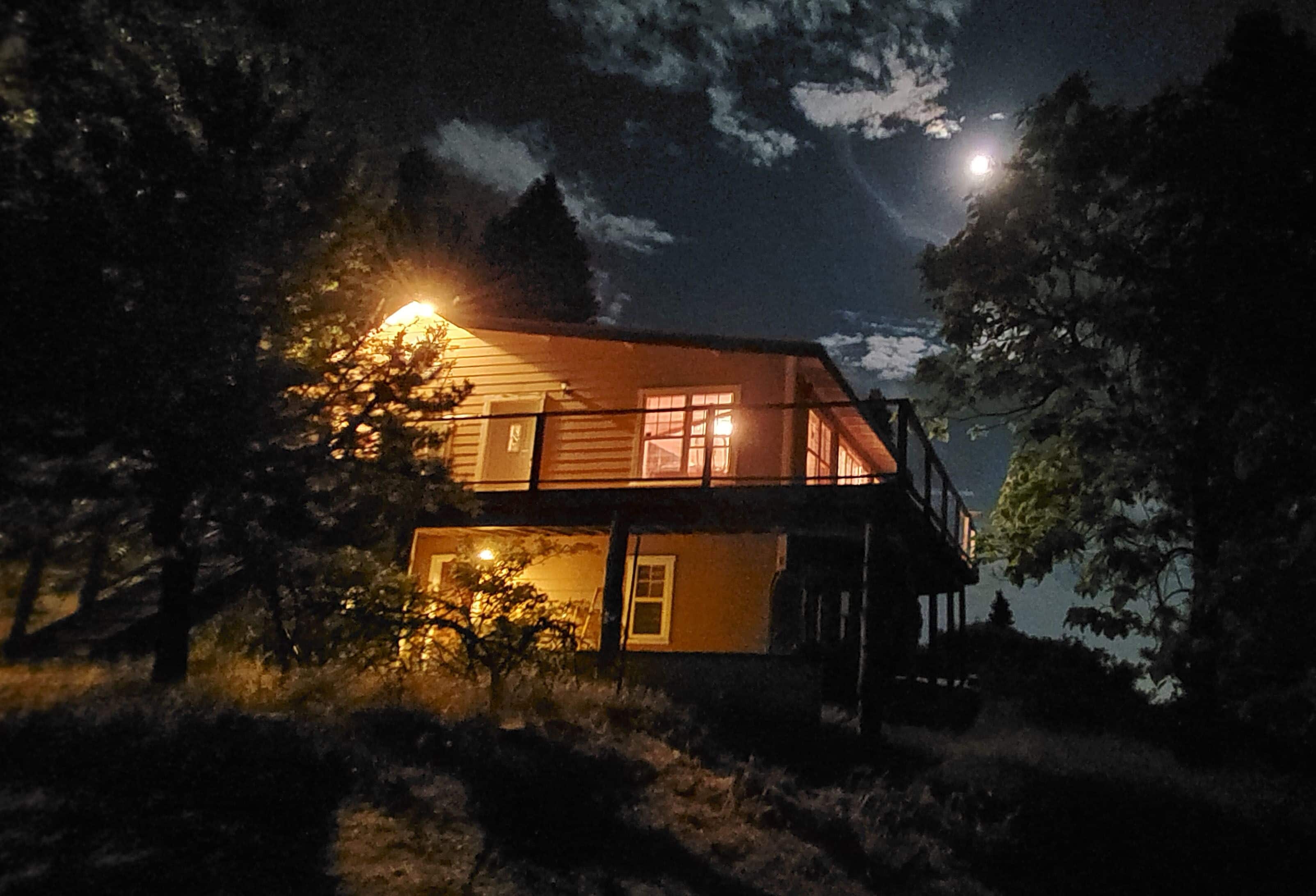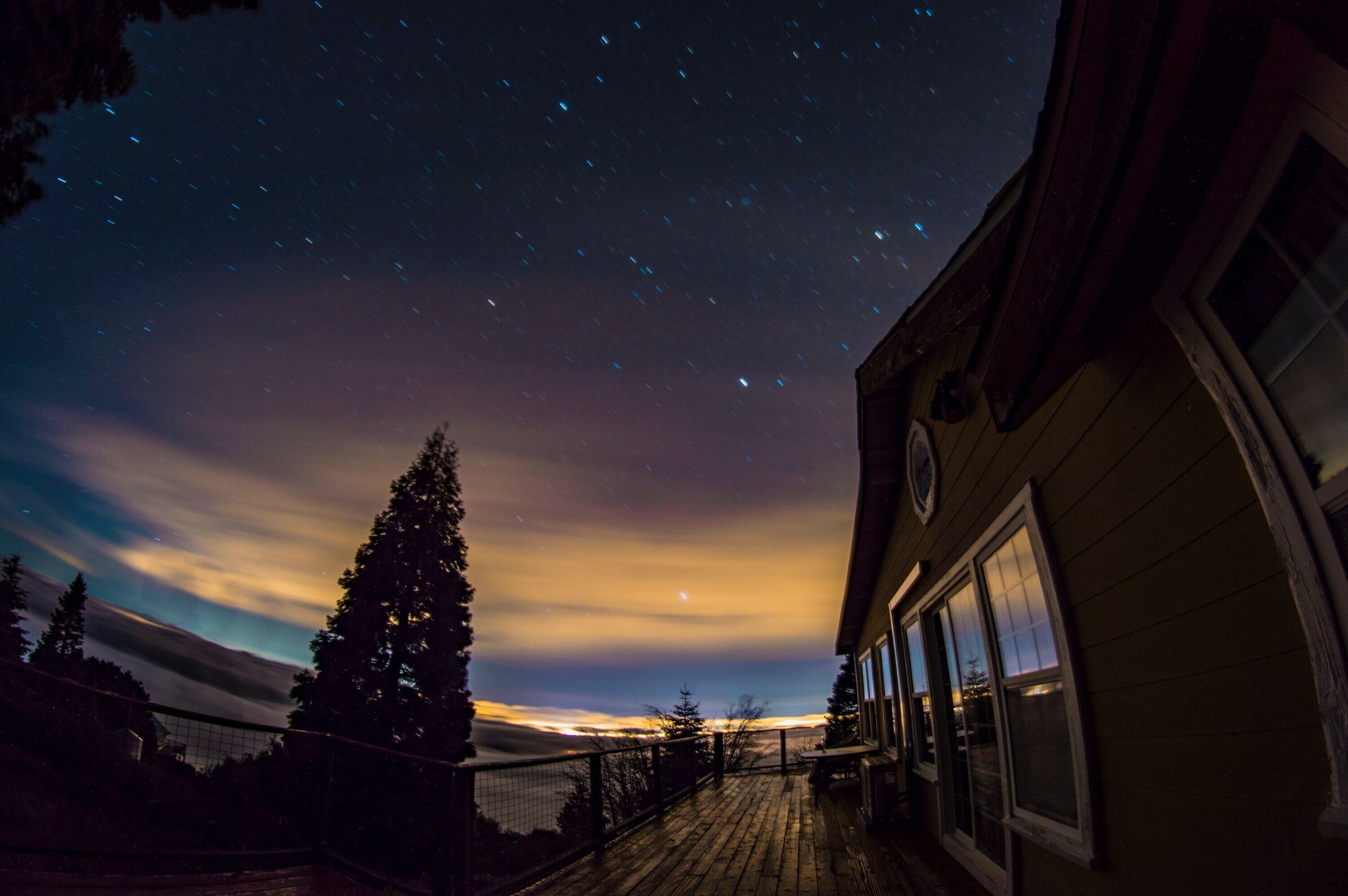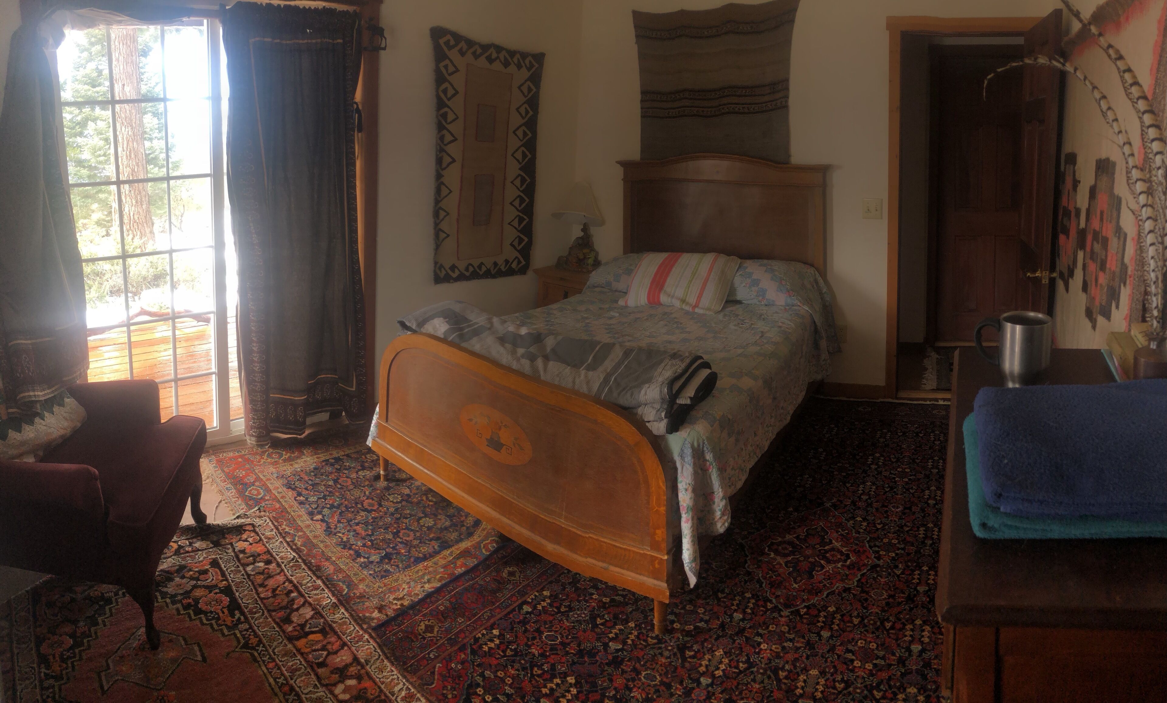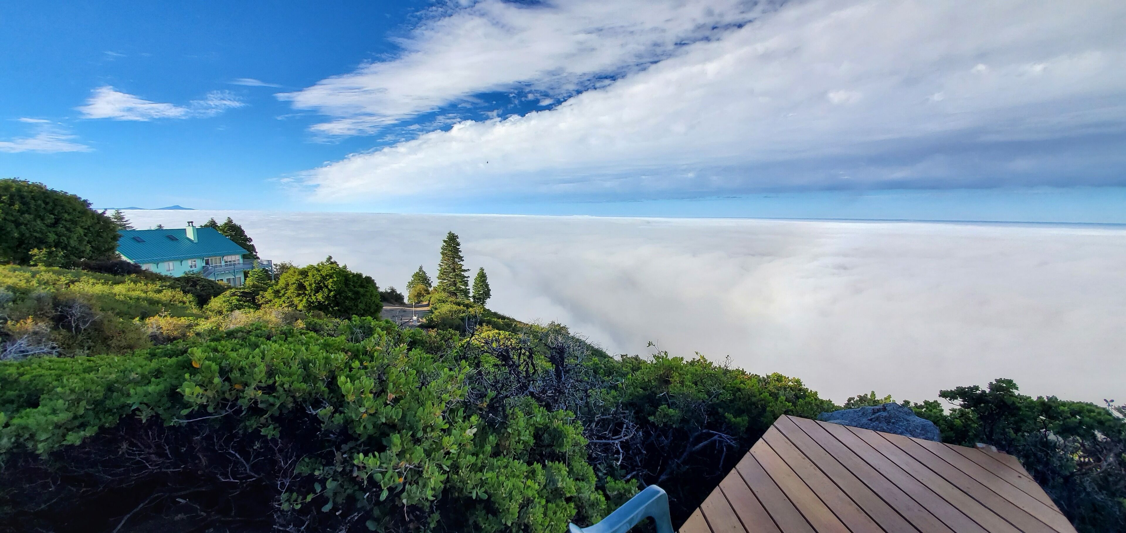 Spectacular view over San Diego County to Mt. Laguna, downtown, Catalina Island. Please note, 3 night minimums for Tgiving, Xmas, New Year's. Private cabin in the trees built in the early 1900s has been upgraded but retains all its rustic original charm. Watch eagles fly at eye level, clouds roll in, sunsets and moonsets in the ocean. Bobcats, wild turkeys, and deer regularly walk through the property. Decorated by owner with antiques and comfortable furniture (not all in pristine, new condition!) , large view deck for grilling and sitting in the sun, sauna. Dramatic infinity deck on mountain edge for sunset cocktails, morning yoga. Fully equipped kitchen, propane grill, tv, dvd player. Three bedrooms each with a queen or full bed, two couches could accommodate kids. Short drive from hiking, the Palomar Observatory, fishing at Lake Henshaw, entertainment at Harrah's Rincon Casino. Wonderful place to spend a snowy weekend, but 4 wheel drive and chains are needed on the few occasions when snow is deep. Some guest complaints: cluttered [cluttered with board games, coloring materials, telescopes, astronomy, bird, Palomar history books, maybe cluttered just a little]; cobwebs [if you search, you can probably find one or two, cleaned thoroughly after every guest]; feels like we're housesitting [hmmmm- this is a complaint?]. Best guest comment ever: 'It's clearly a well-loved and special place.' BINGO. Thanks, Emily. No dishwasher, I'm afraid.Note: 3 night minimum for Xmas, New Years, Thanksgiving, Memorial Day, 4th of July, and Labor Day weekends.CONTACT OWNER FOR EXTENDED STAY (more than 3 nights) RATES.WINTER BOOKING ADVISORY!!!Winter is snow time, which is good and bad. Caltrans has a station up on the mountain and they start plowing the paved roads very quickly when snow starts. Unfortunately, there is nobody up on the mountain who plows private drives, and my cabin is about 500 feet up a dirt branch road that is not plowed. If you plan to be there at a time when snow is predicted, your options are to park near the paved road (but be sure not to park right on side of the road where your car will interfere with plowing or be covered by snow pushed aside by the plow), or plan a long day of shoveling yourself out by hand. I’ve done this shoveling myself before, and it takes a good while. One guest last winter took 8 hours to do this, and they were not happy campers by the end of the day. If you have long time existing reservations and there is a massive storm predicted to hit just before or during your stay, I will of course promise a no penalty cancellation if you chose not to go. Being up there with snow is a wonderful experience, as long as you have supplies and can relax and enjoy. House rules: treat this old place with courtesy and common sense: recycle, clean up reasonably after yourself, turn off lights and cooling/heating when not needed and on departure, close and lock doors and windows when leaving- sometimes I don't get up to clean for several days.