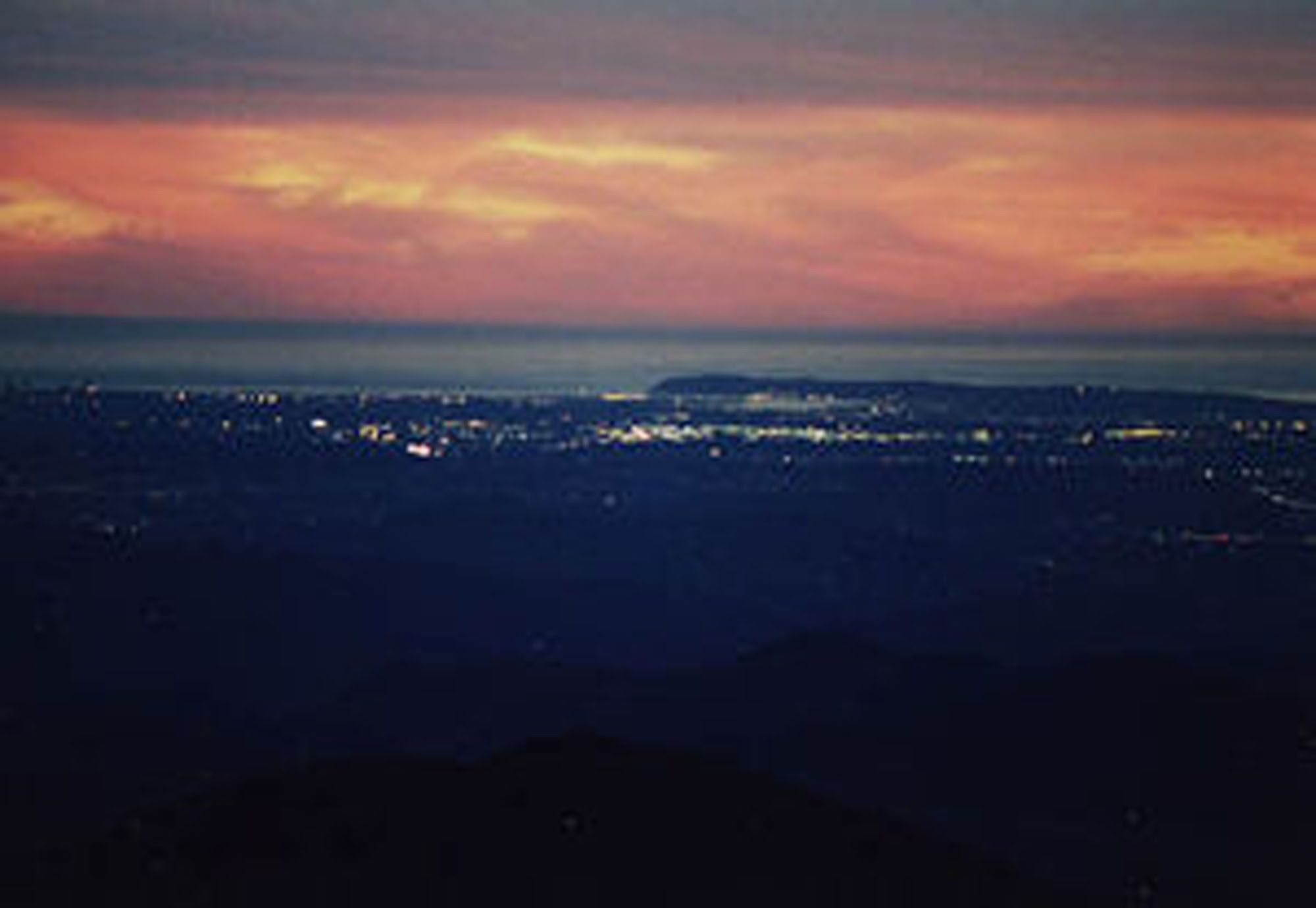 Spectacular view over San Diego County to Mt. Laguna, downtown, Catalina Island.